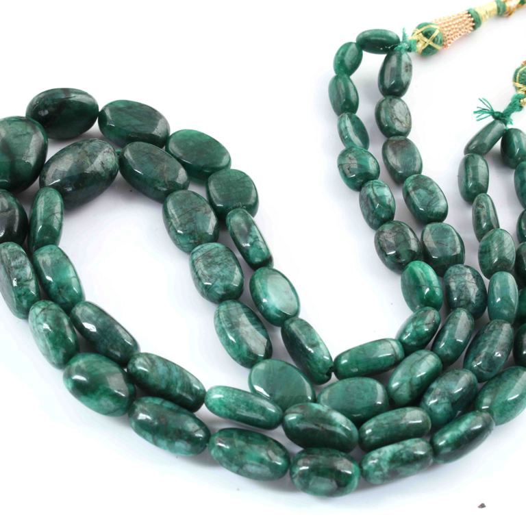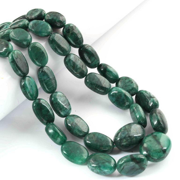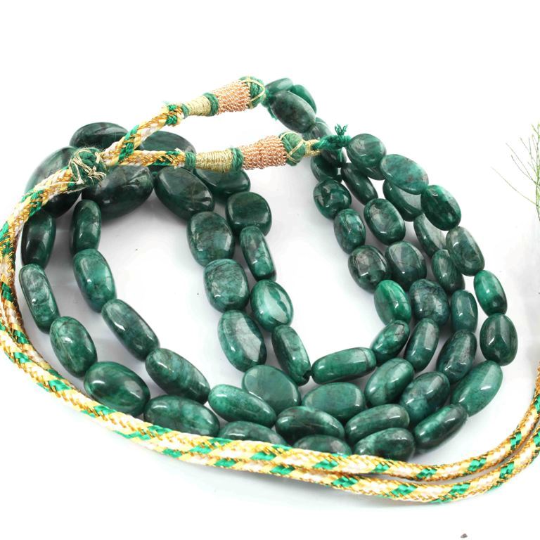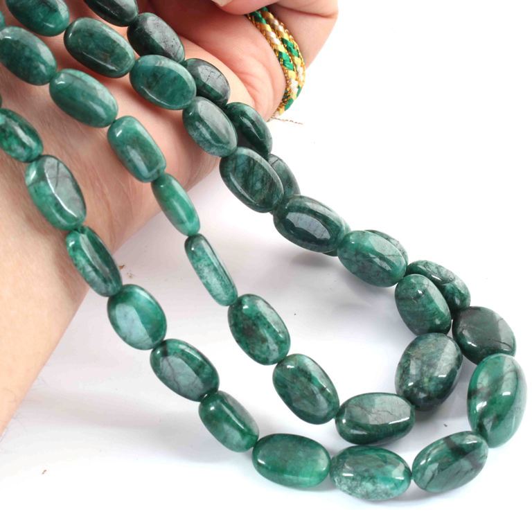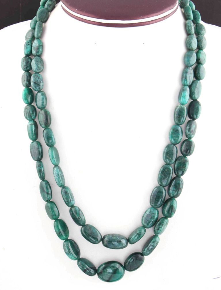 485 Carats 2 Strands Of Precious Genuine Natural Emerald Necklace - Smooth oval Beads - Rare & Natural Emerald Necklace - Stunning Elegant Necklace SPB0175