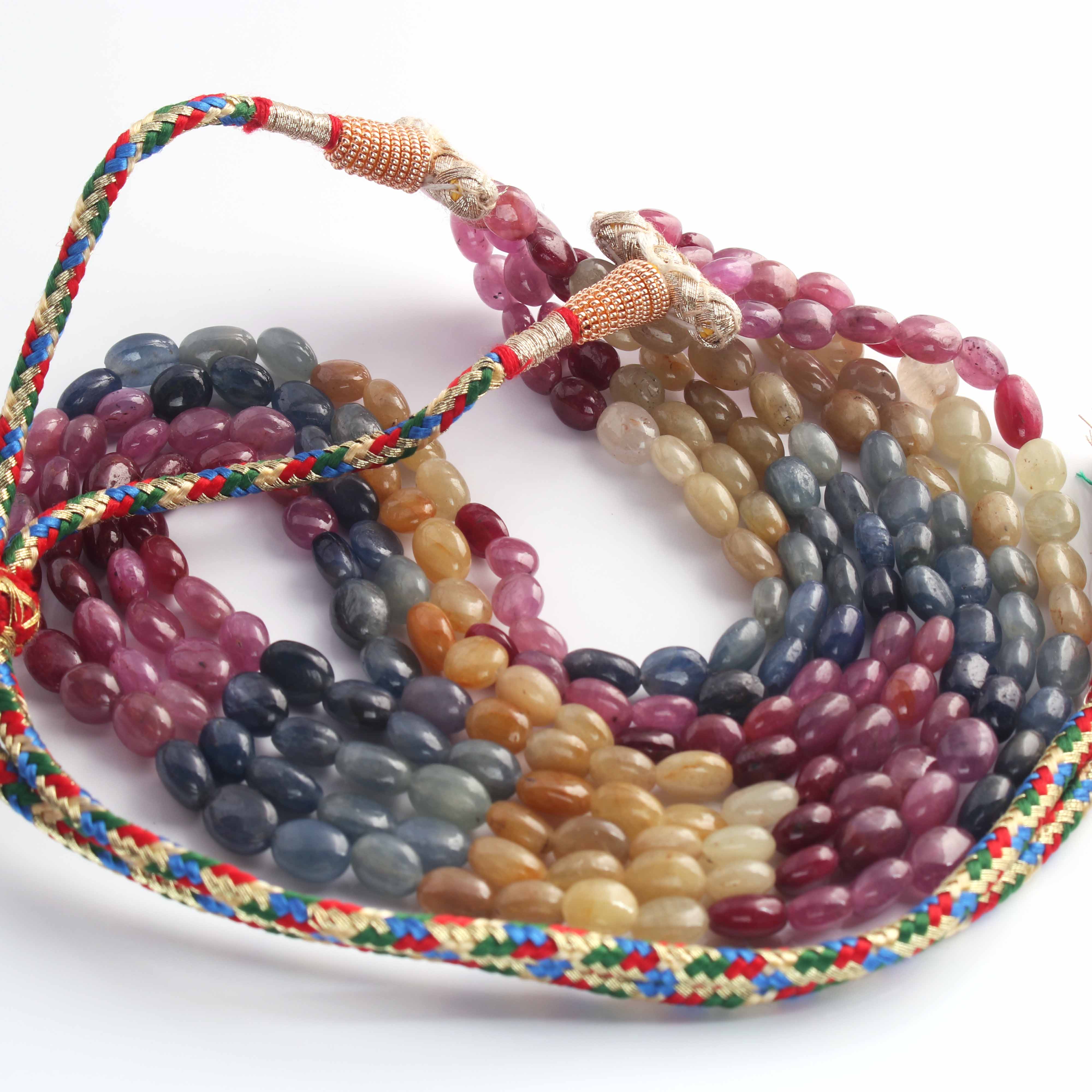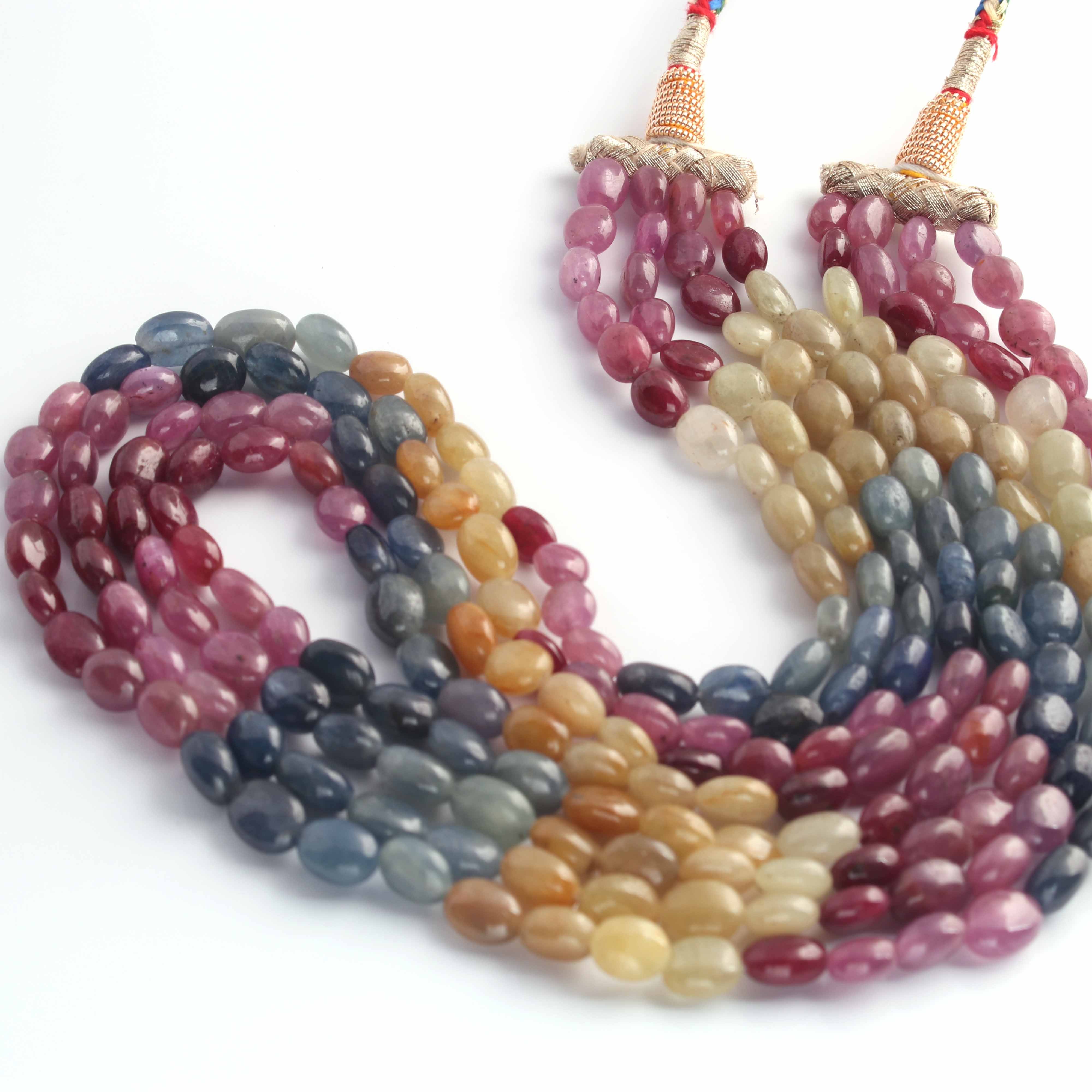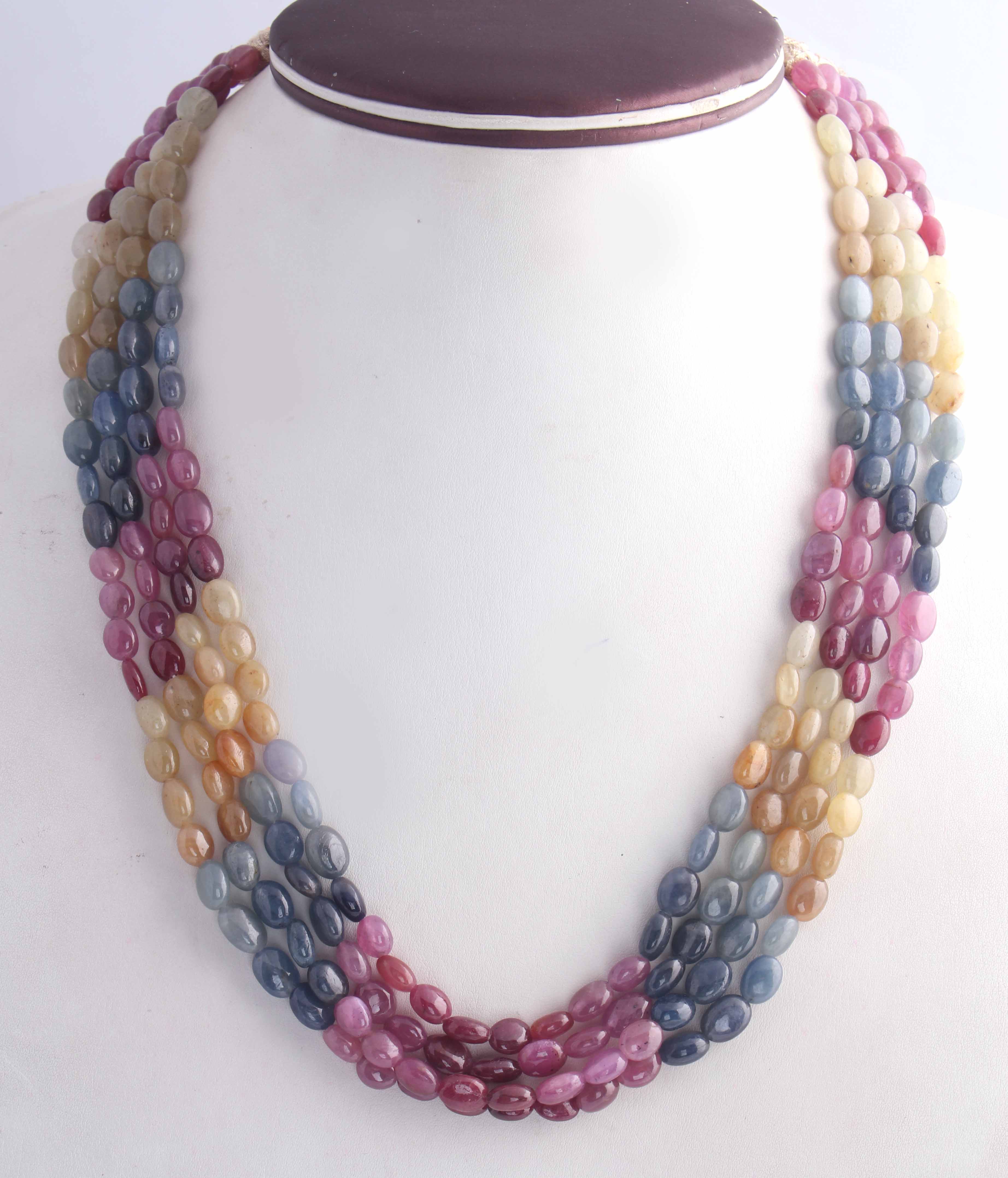 515ct. 4 Strands Of Genuine Multi Sapphire Necklace - Smooth Oval Precious - Rare & Natural Necklace - Stunning Elegant Necklace SPB0243