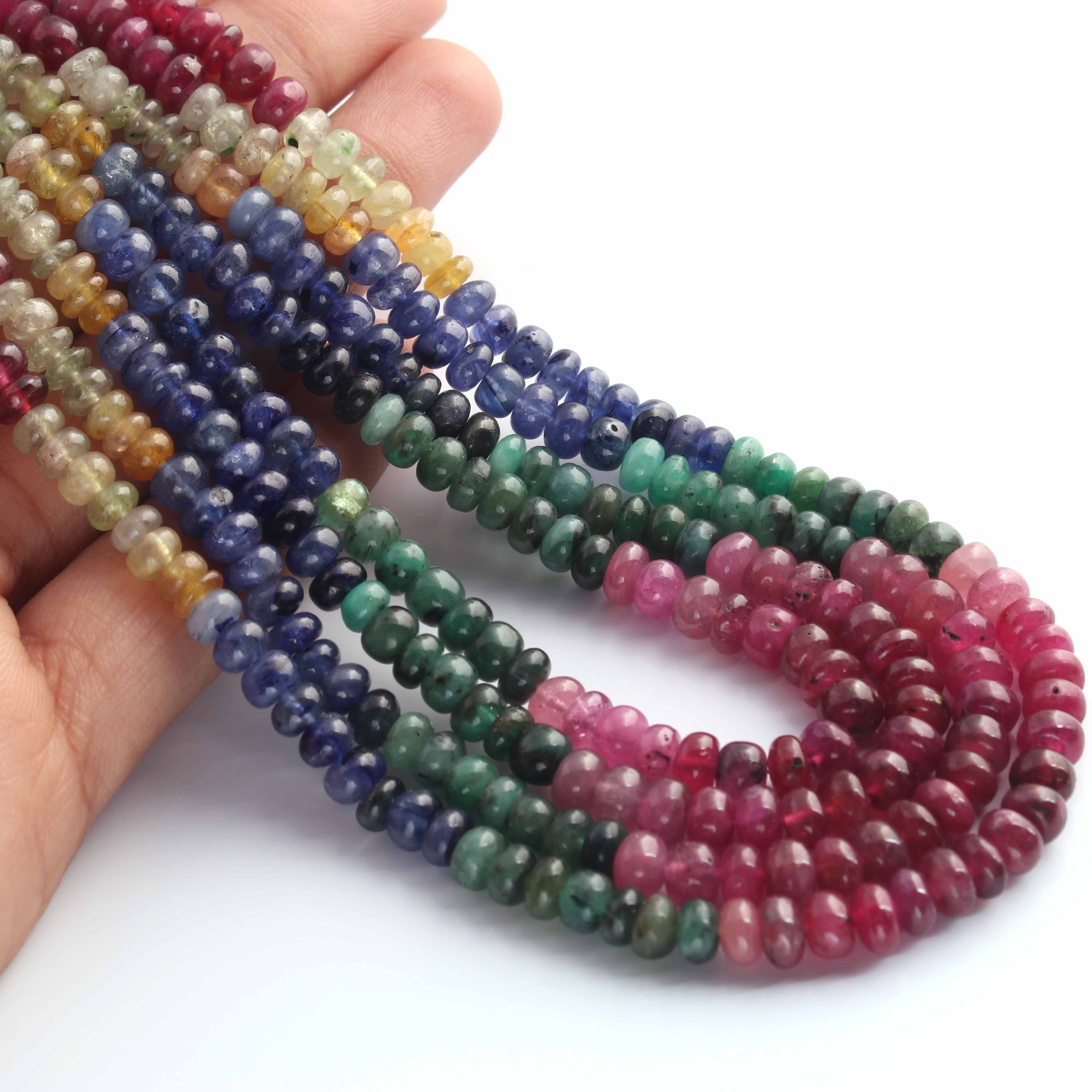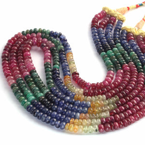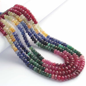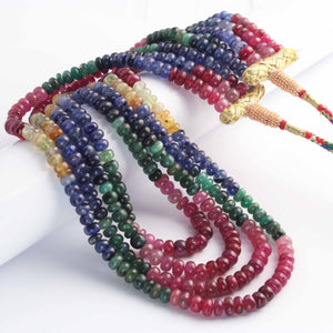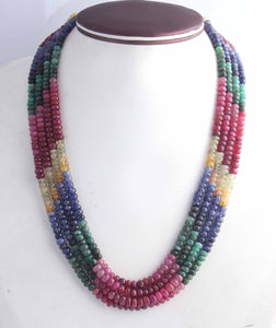 615ct. 4 Strands Of Genuine Multi Sapphire Necklace -Smooth Rondelle Beads - Rare & Natural Sapphire Necklace - Stunning Elegant Necklace -SPB0249
