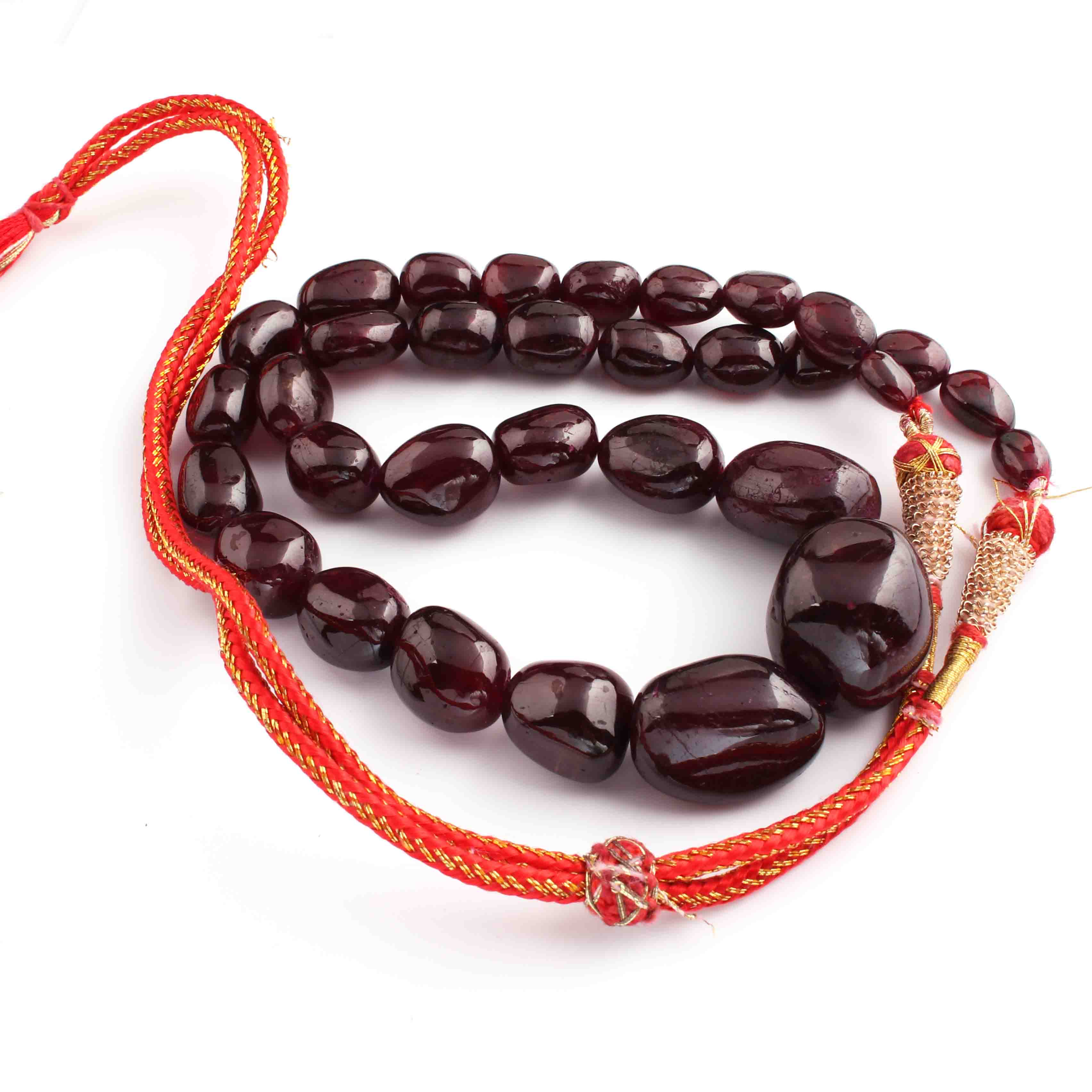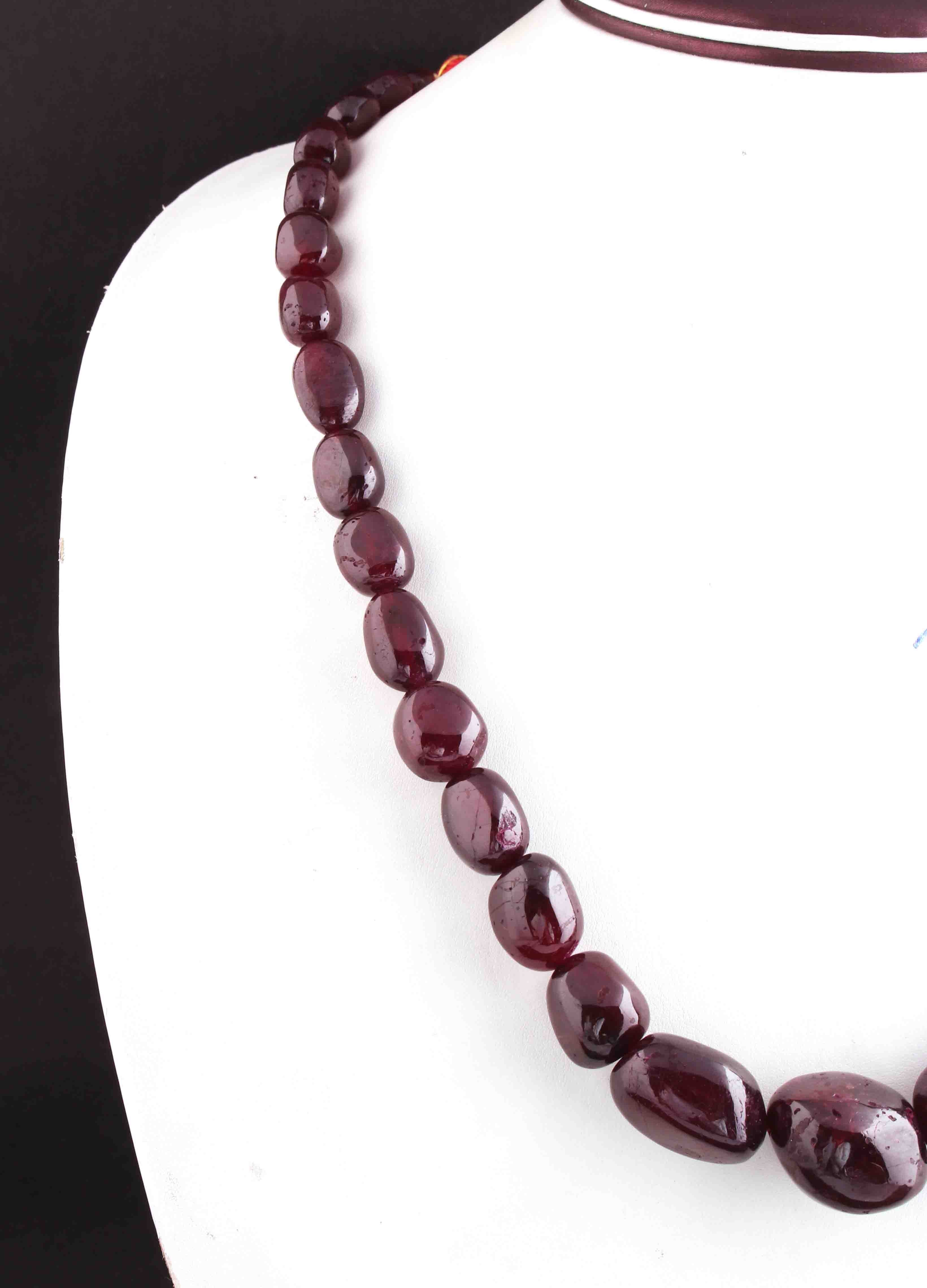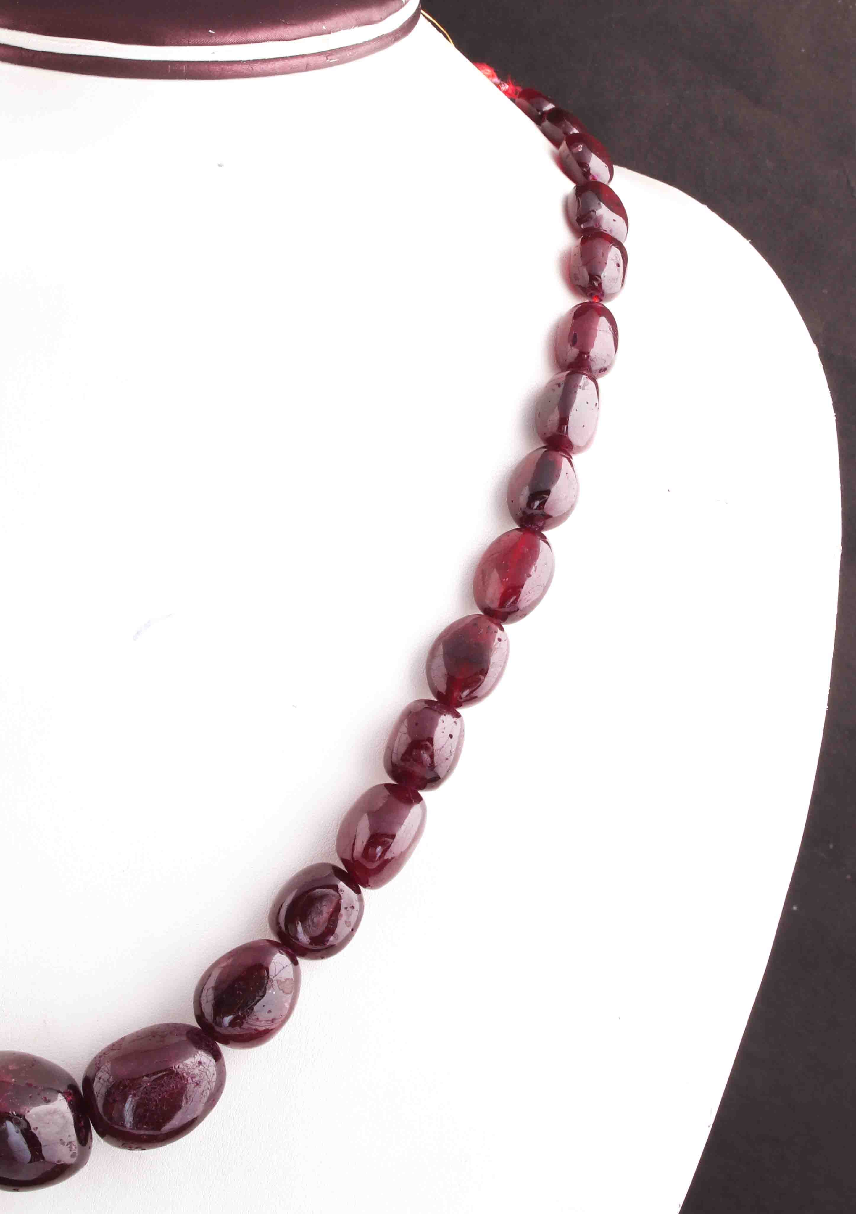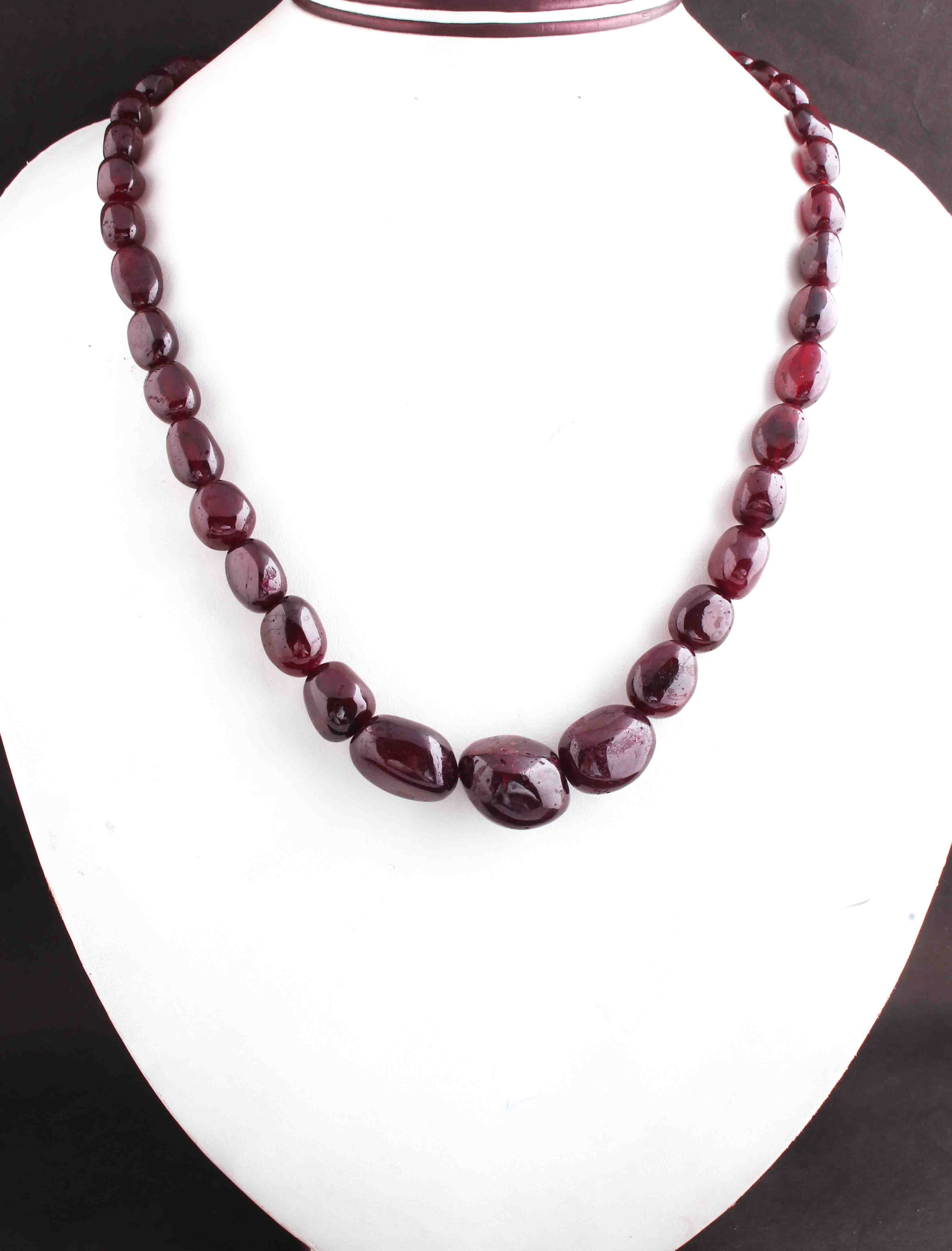 640 Ct. 1 Strand Of Genuine Garnet Necklace - Smooth Oval Beads - Rare & Natural Garnet Necklace - Stunning Elegant Necklace - BRU161