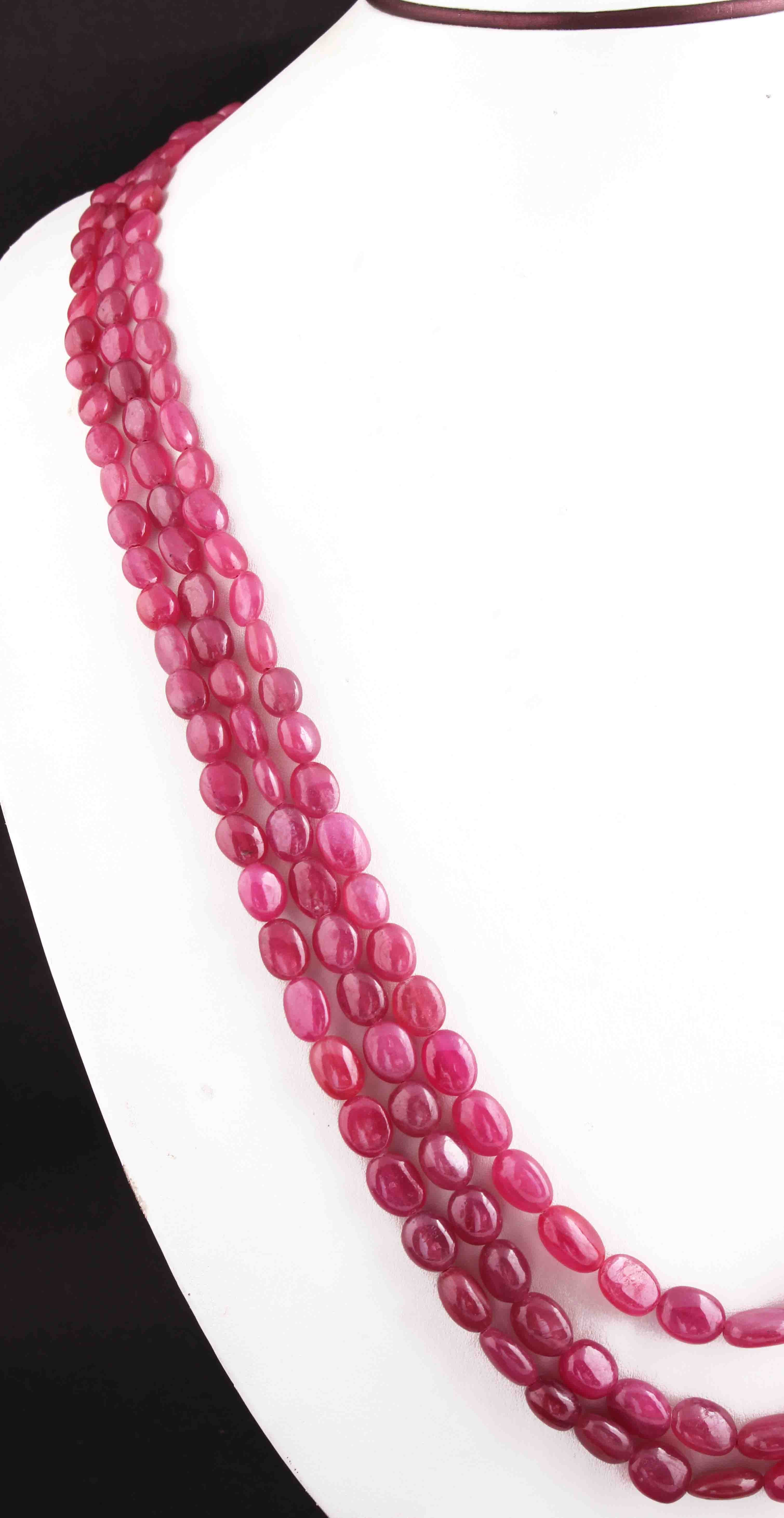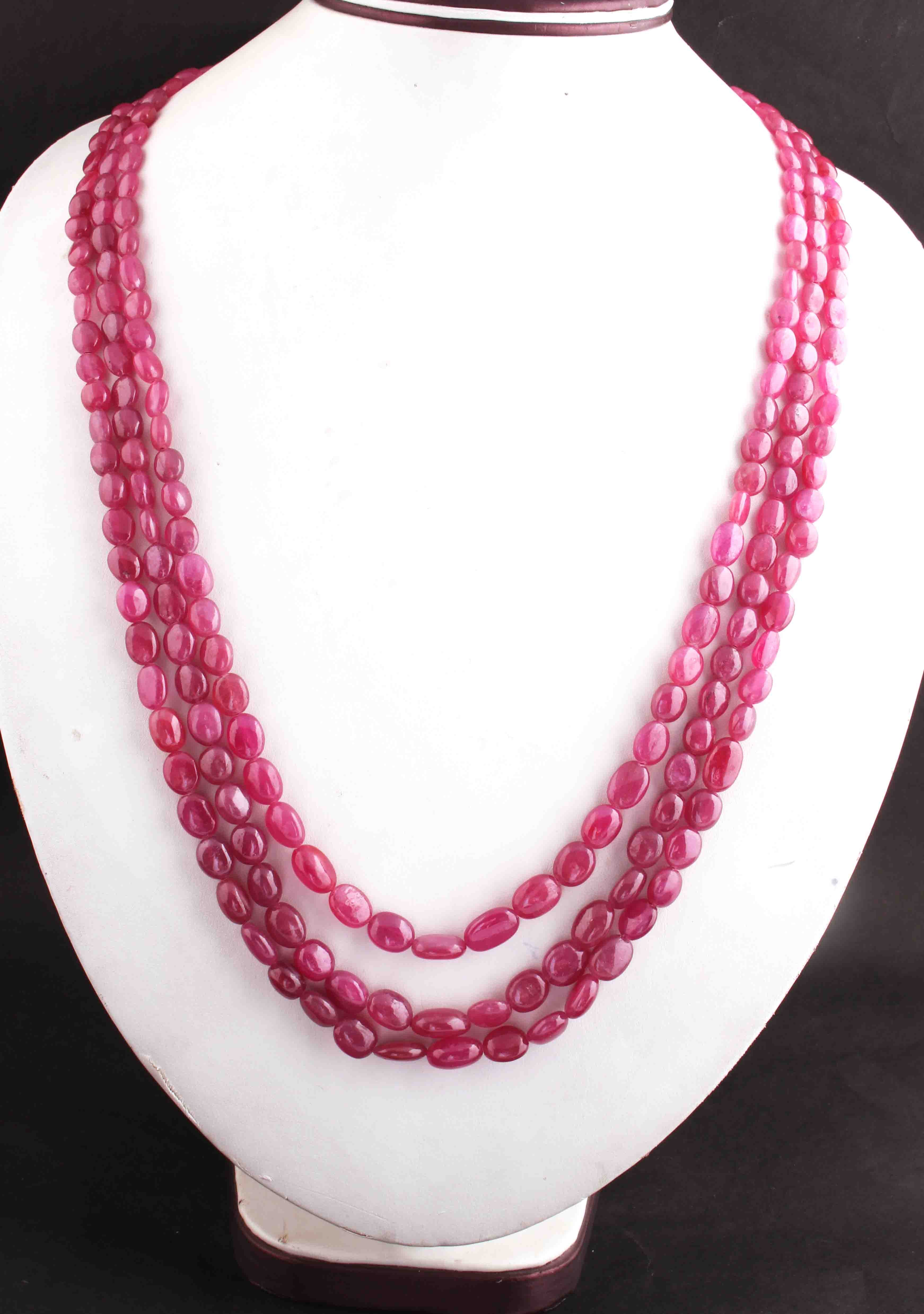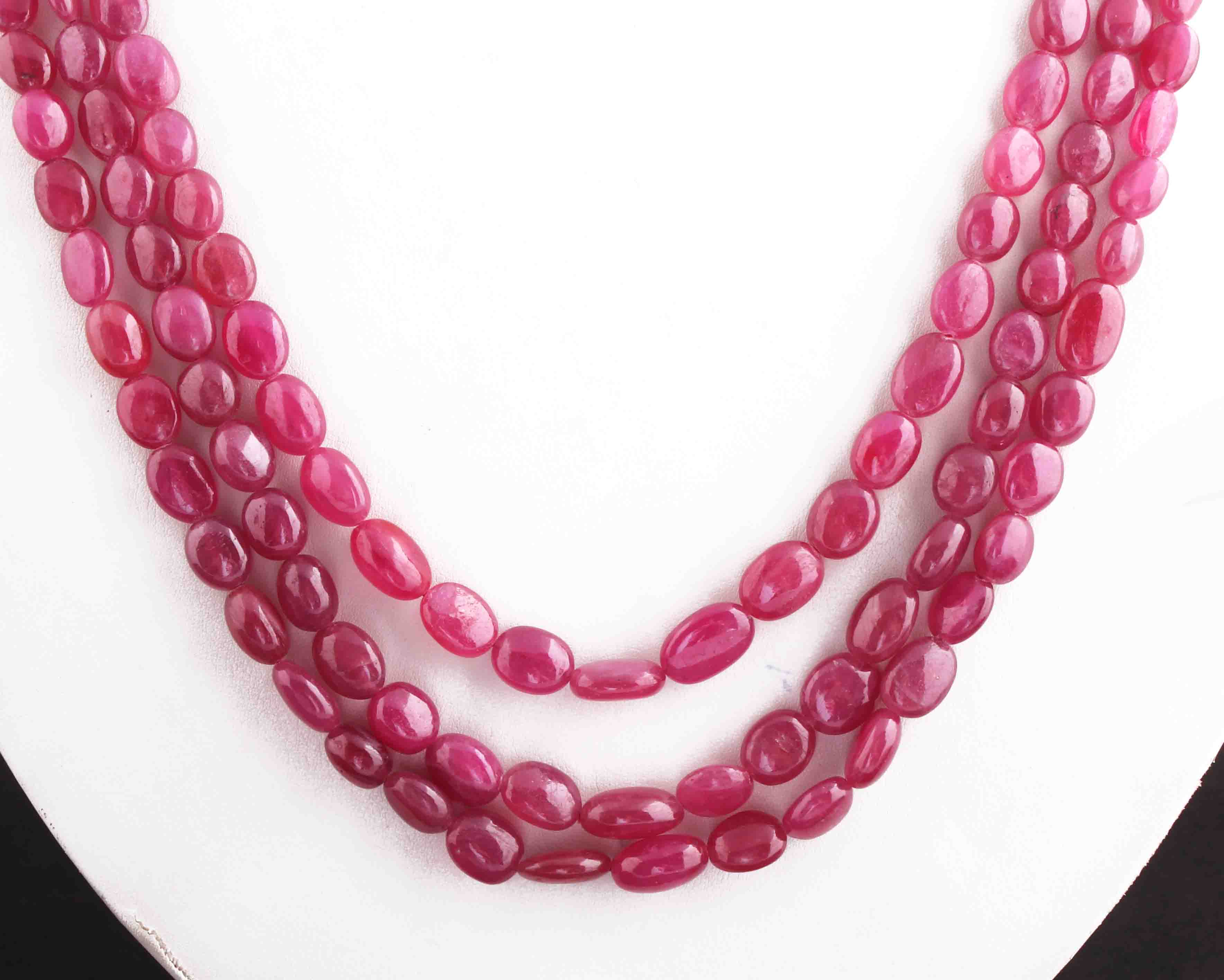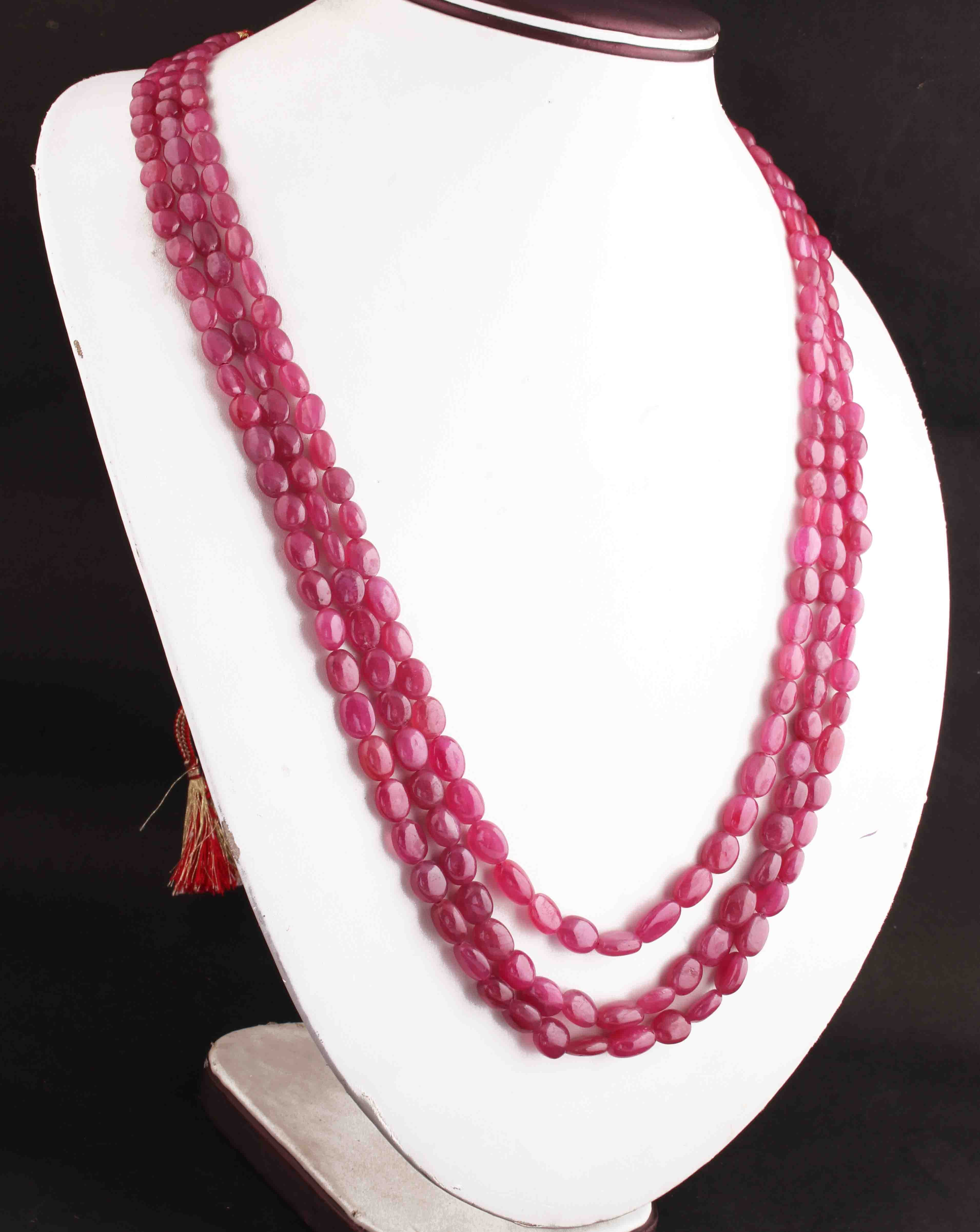 660 Ct. 3 Strand Of Genuine Garnet Necklace - Smooth Oval Beads - Rare & Natural Garnet Necklace - Stunning Elegant Necklace - BRU174