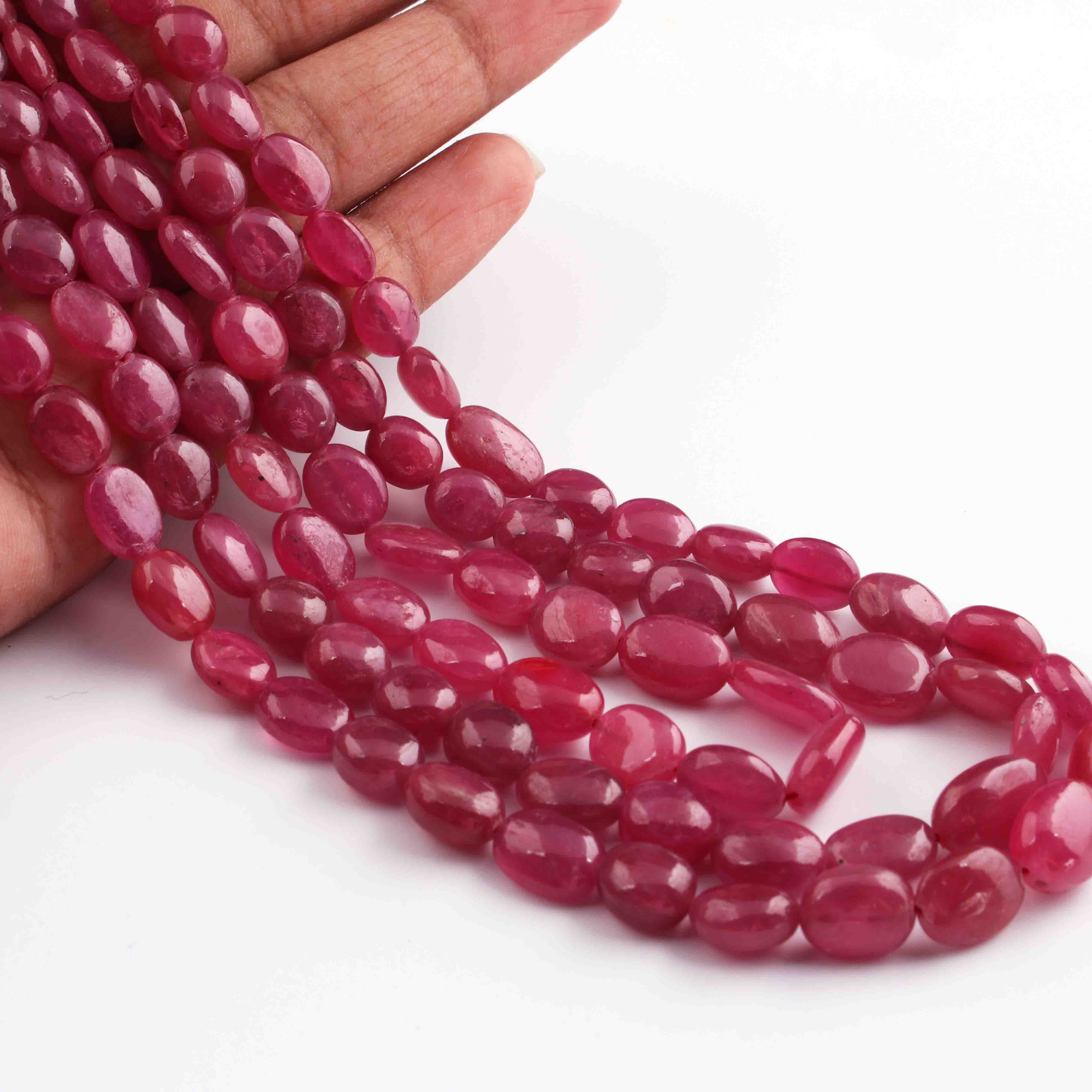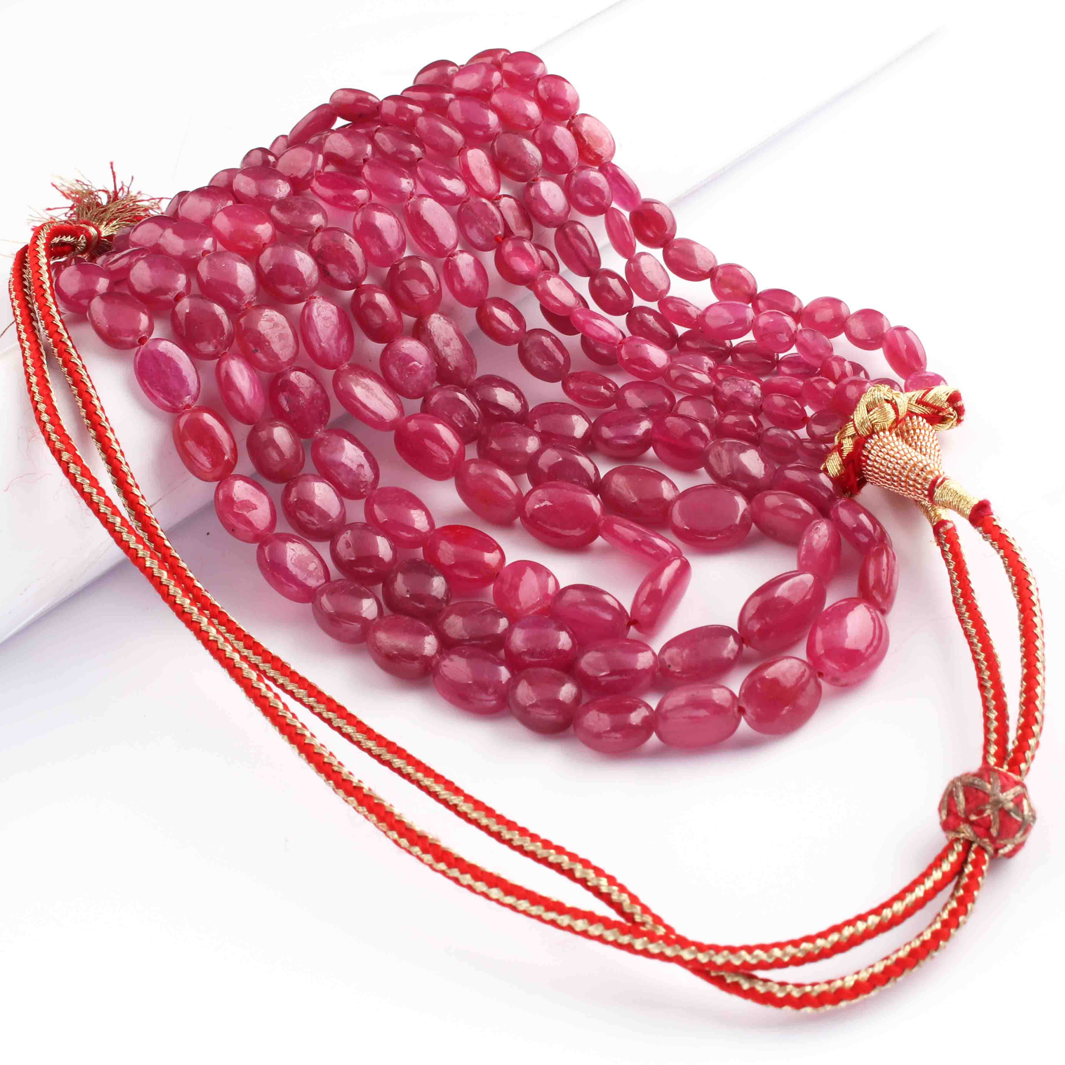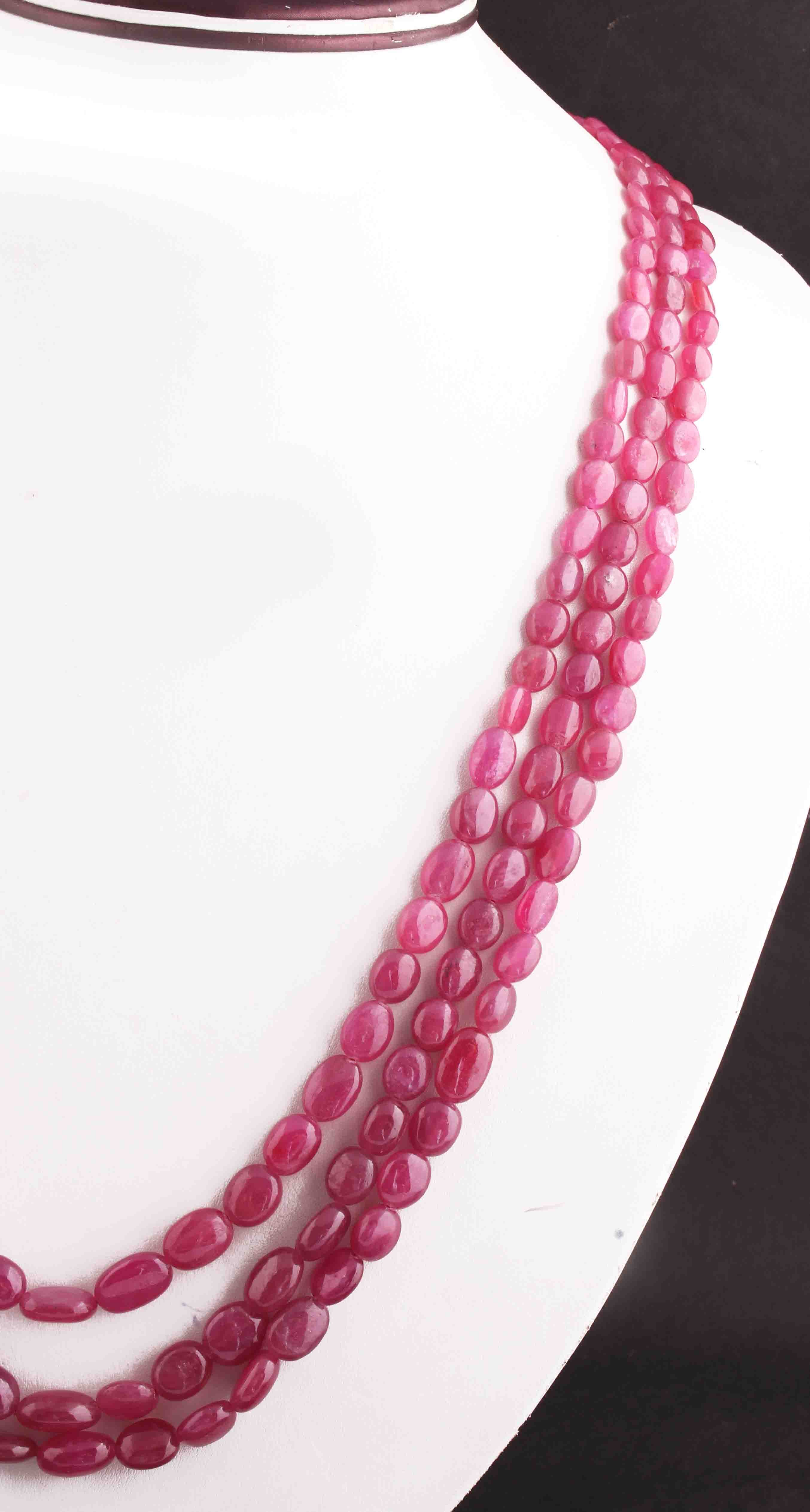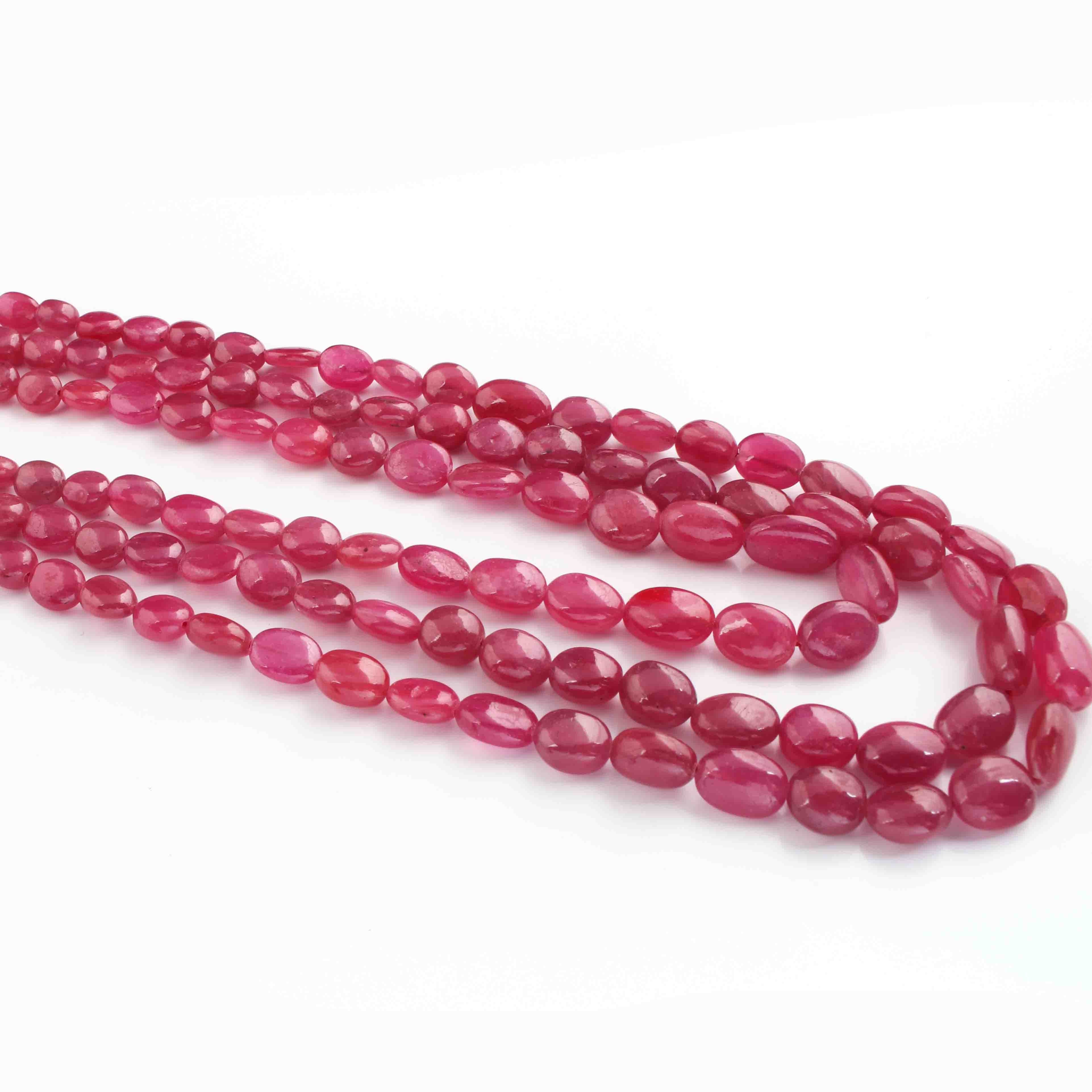 660 Ct. 3 Strand Of Genuine Garnet Necklace - Smooth Oval Beads - Rare & Natural Garnet Necklace - Stunning Elegant Necklace - BRU174