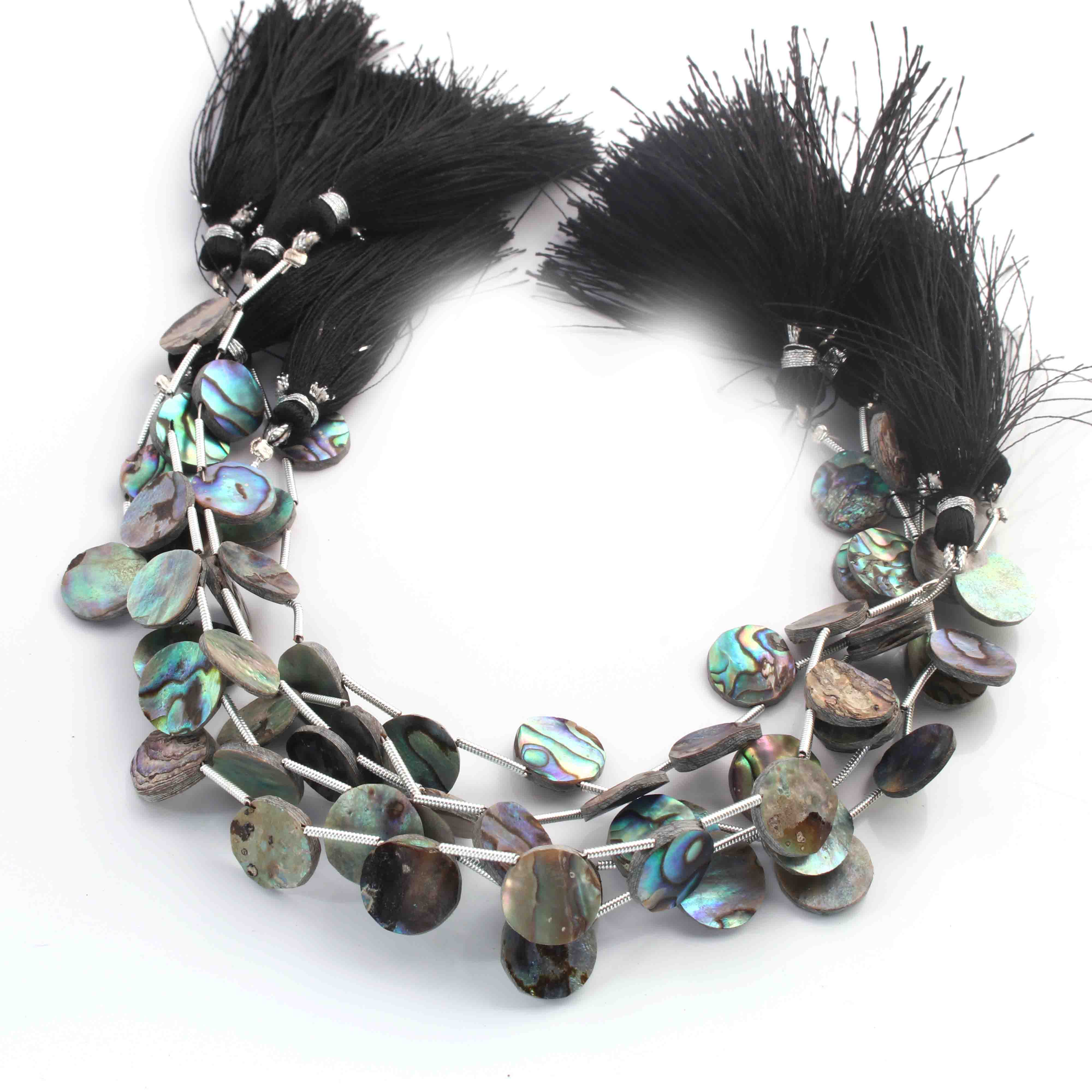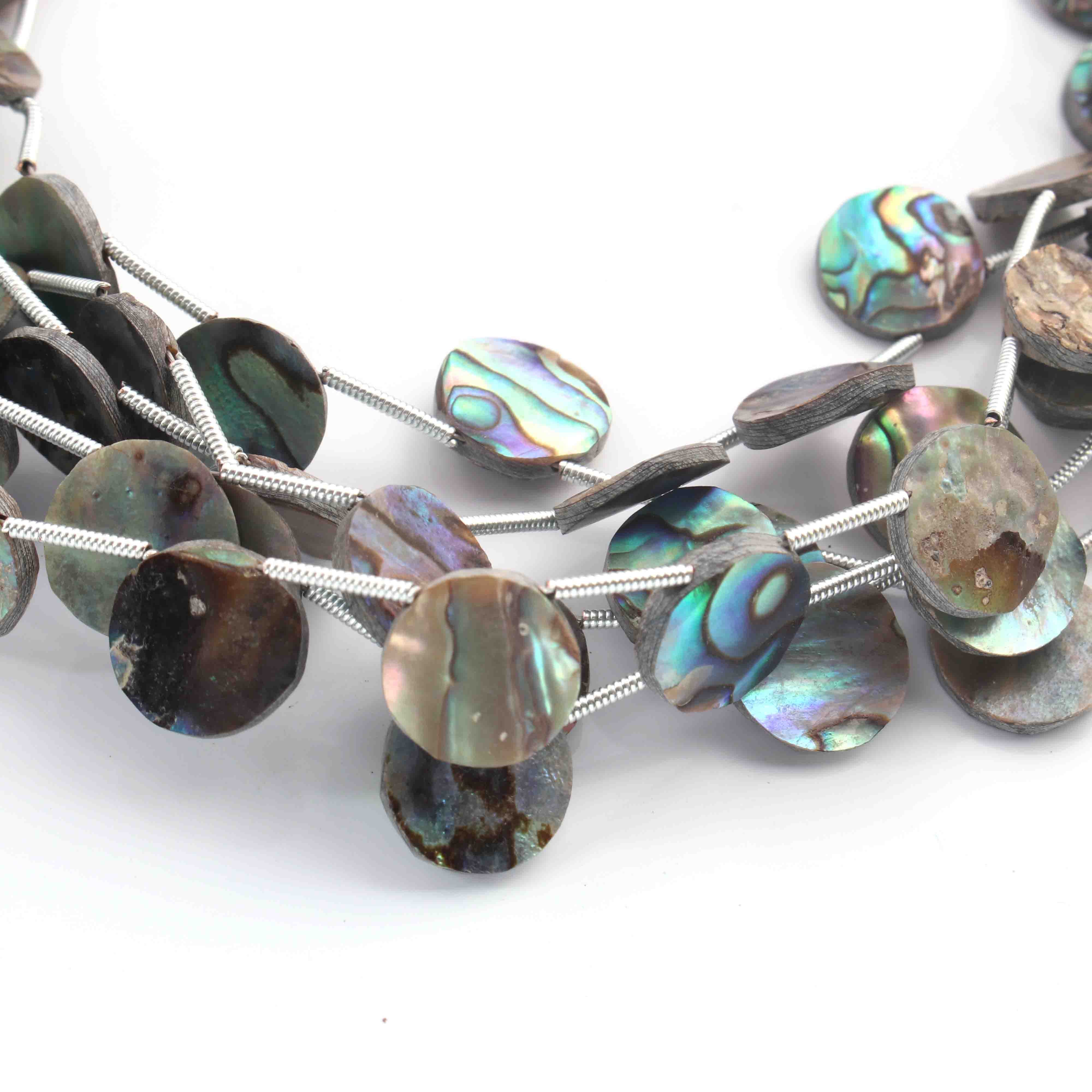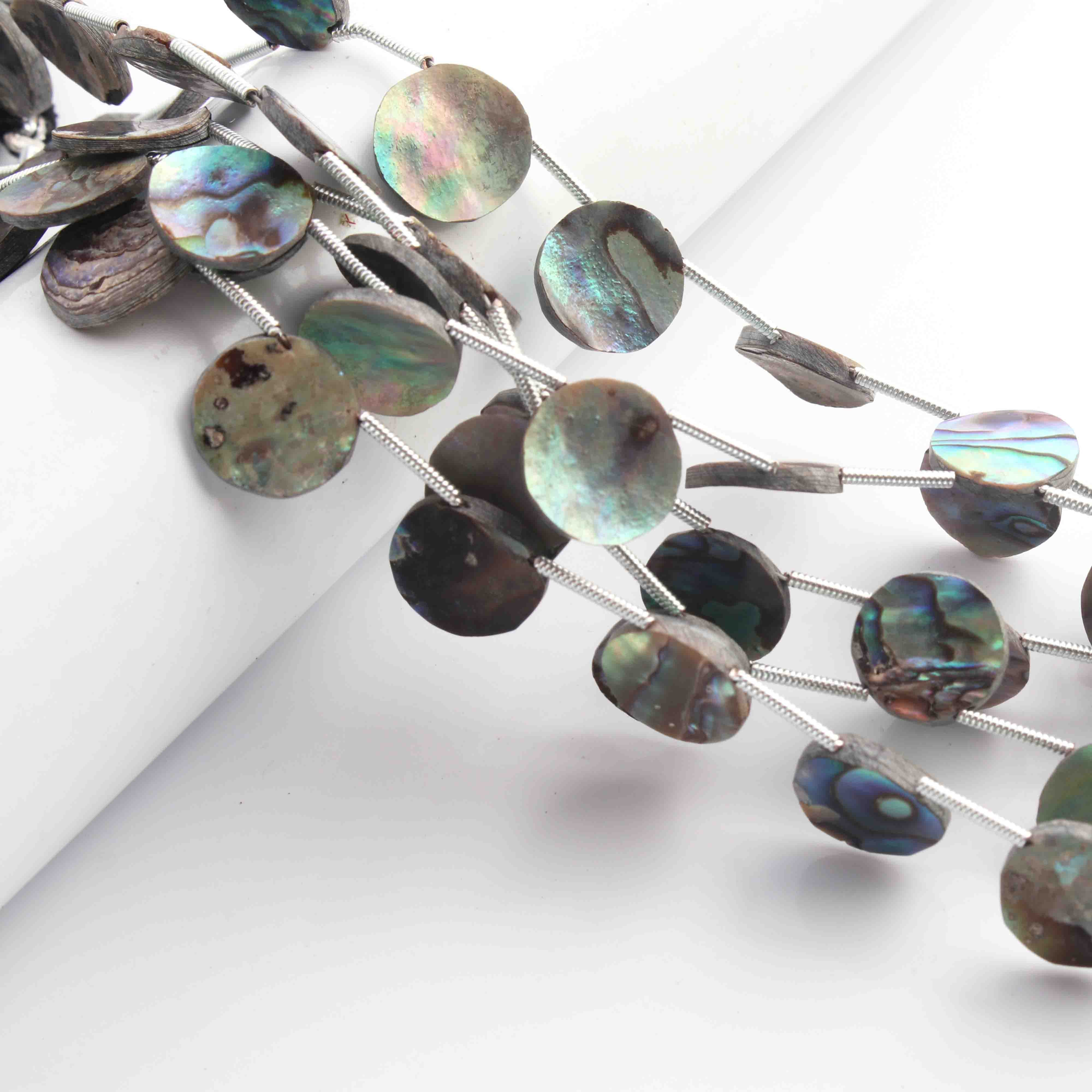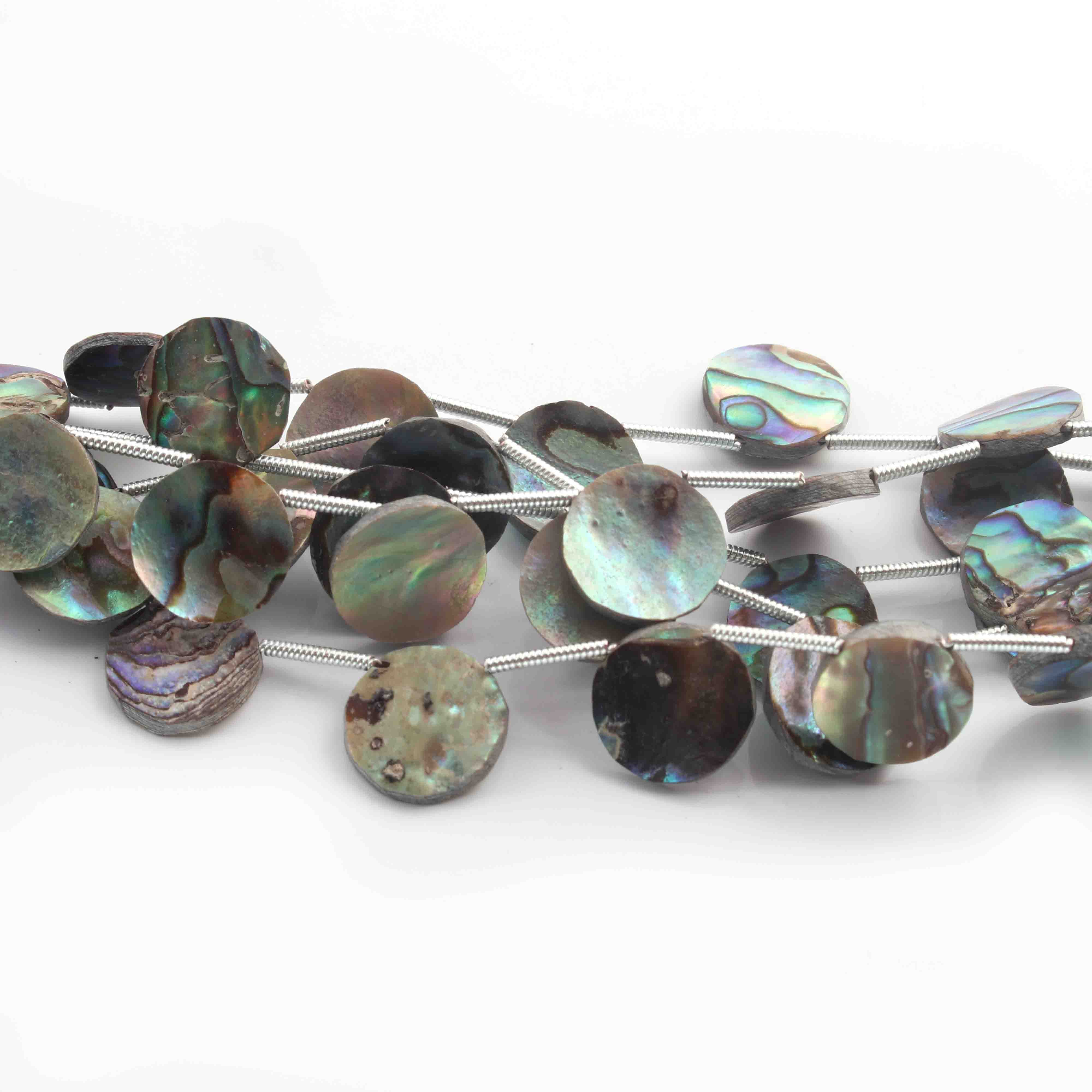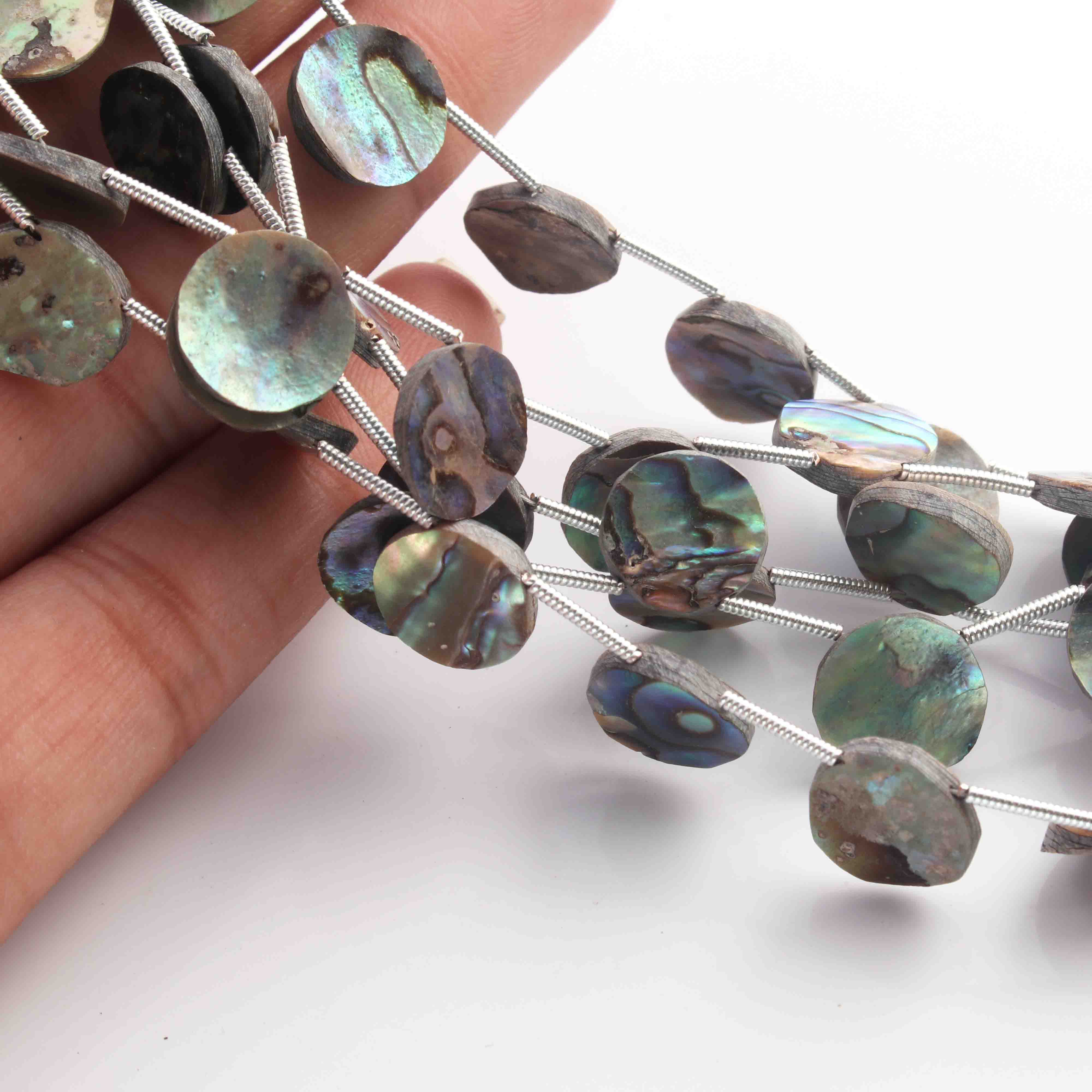1 Long Strand Abalone Shell Faceted Briolettes -Coin Shape Briolettes -11mm - 8.5 Inches BR01643