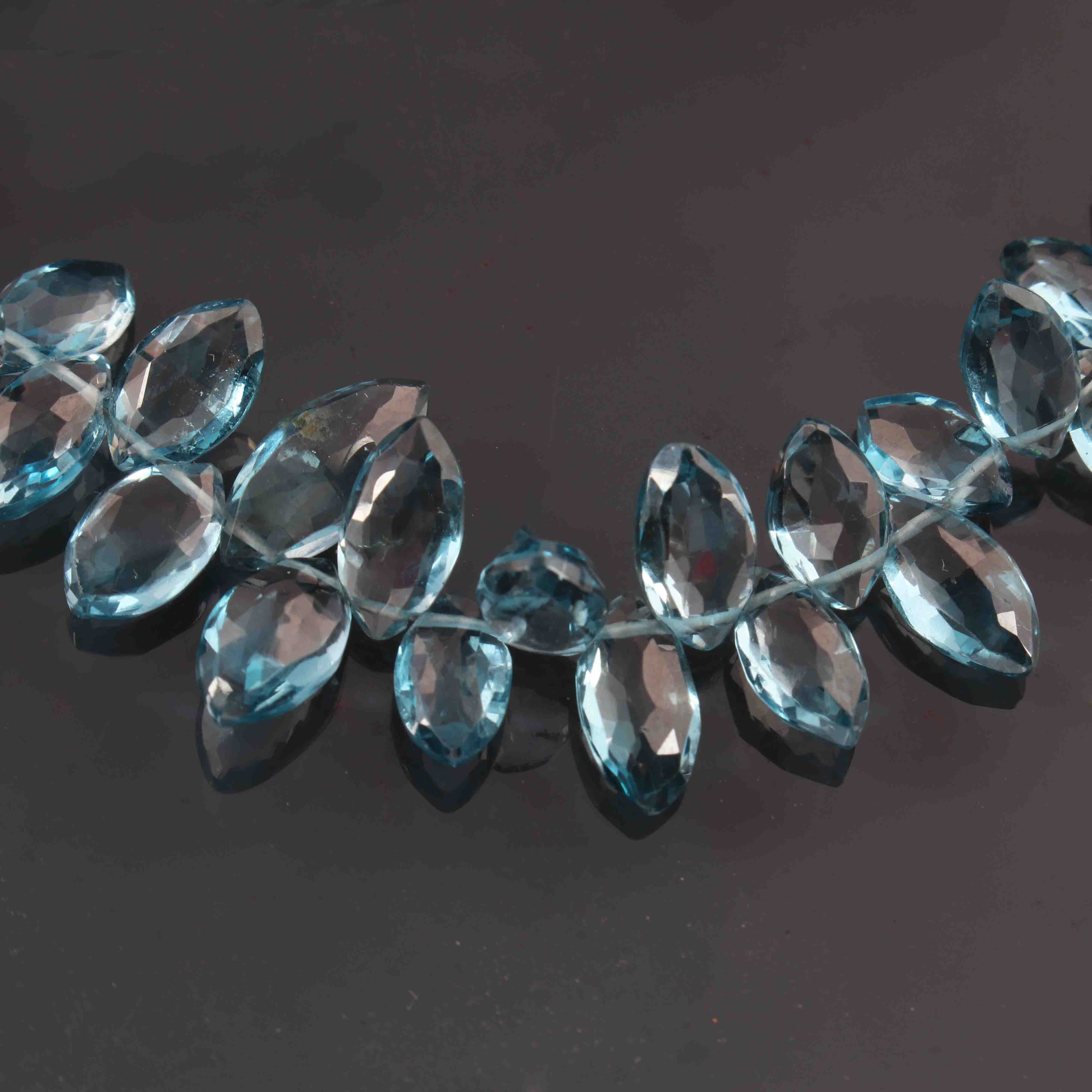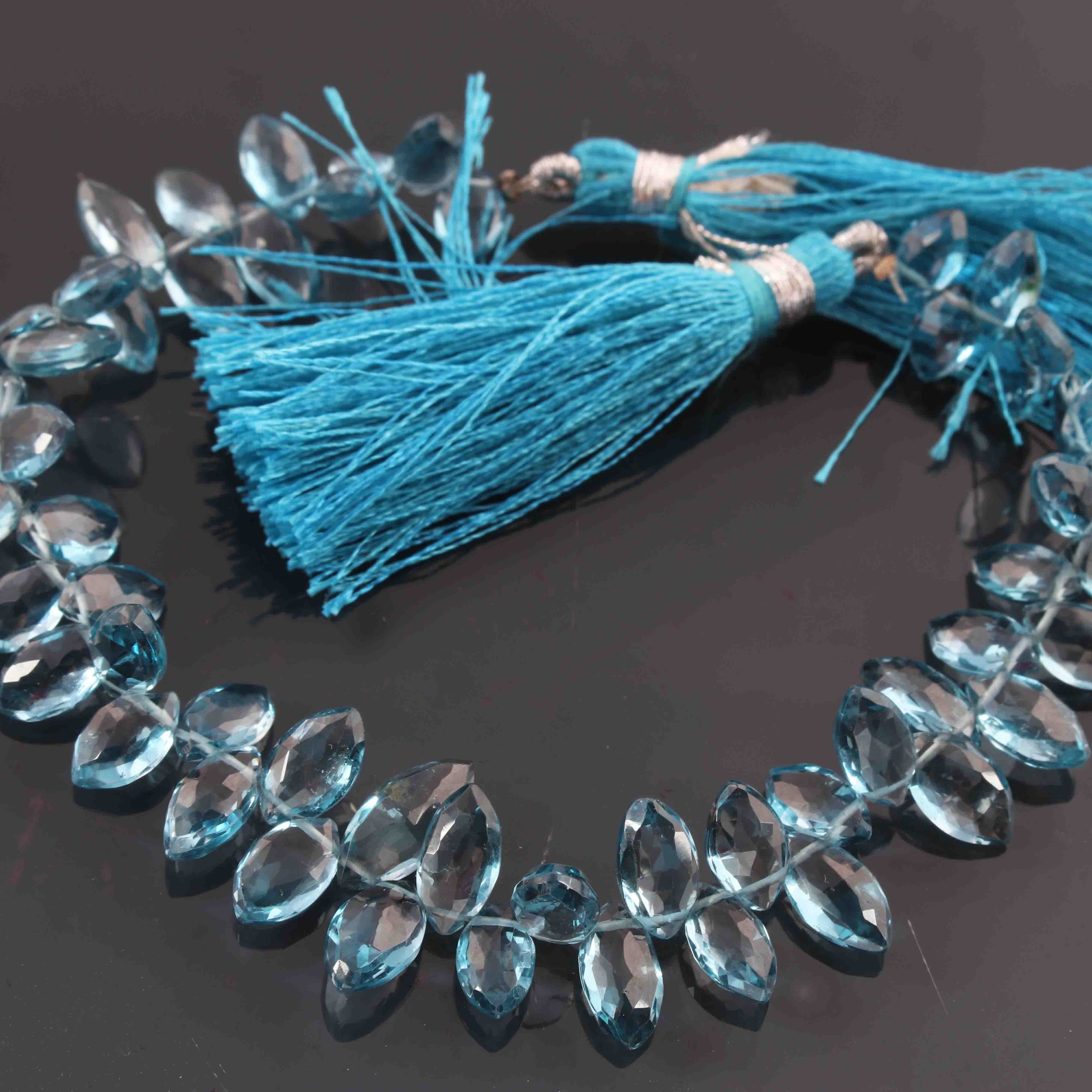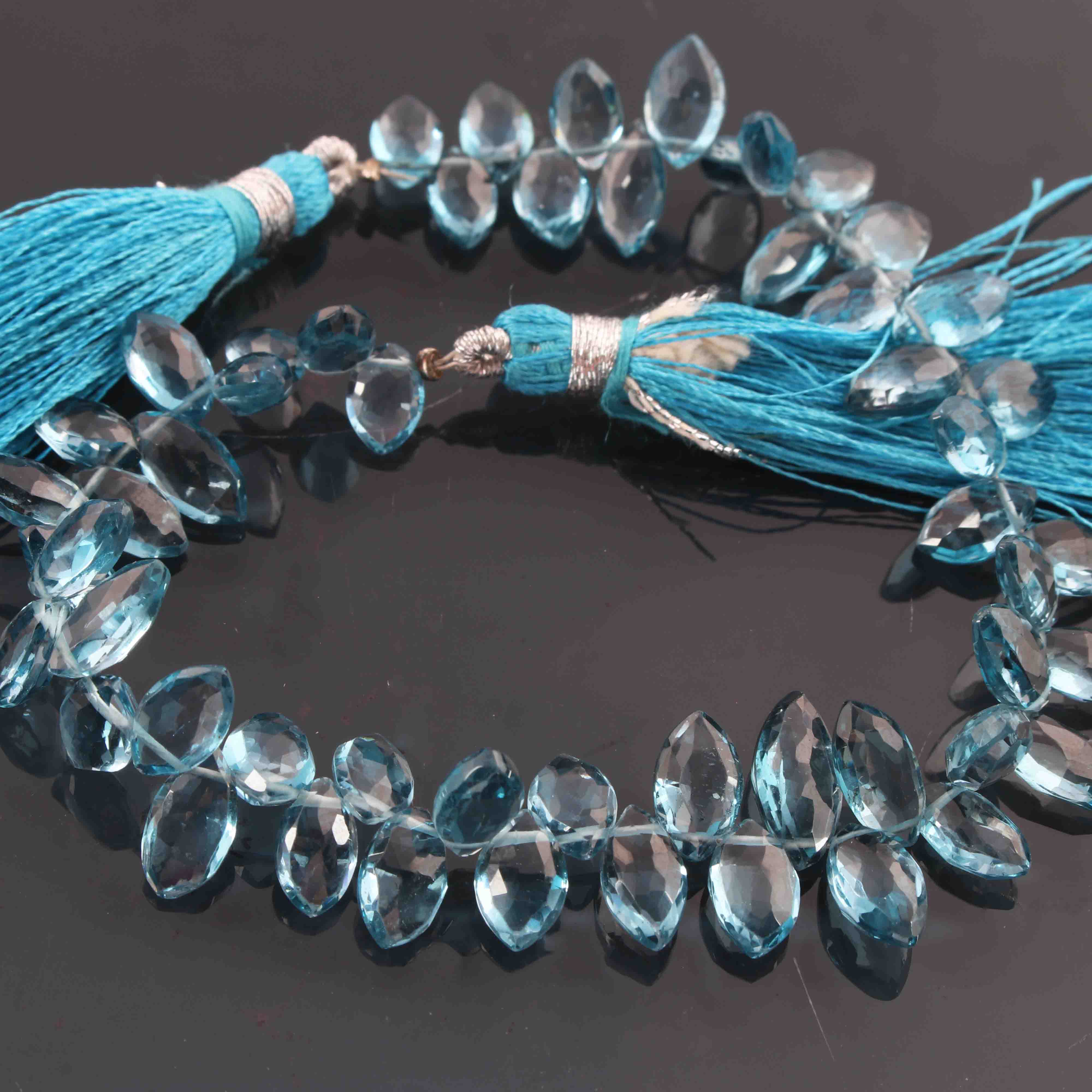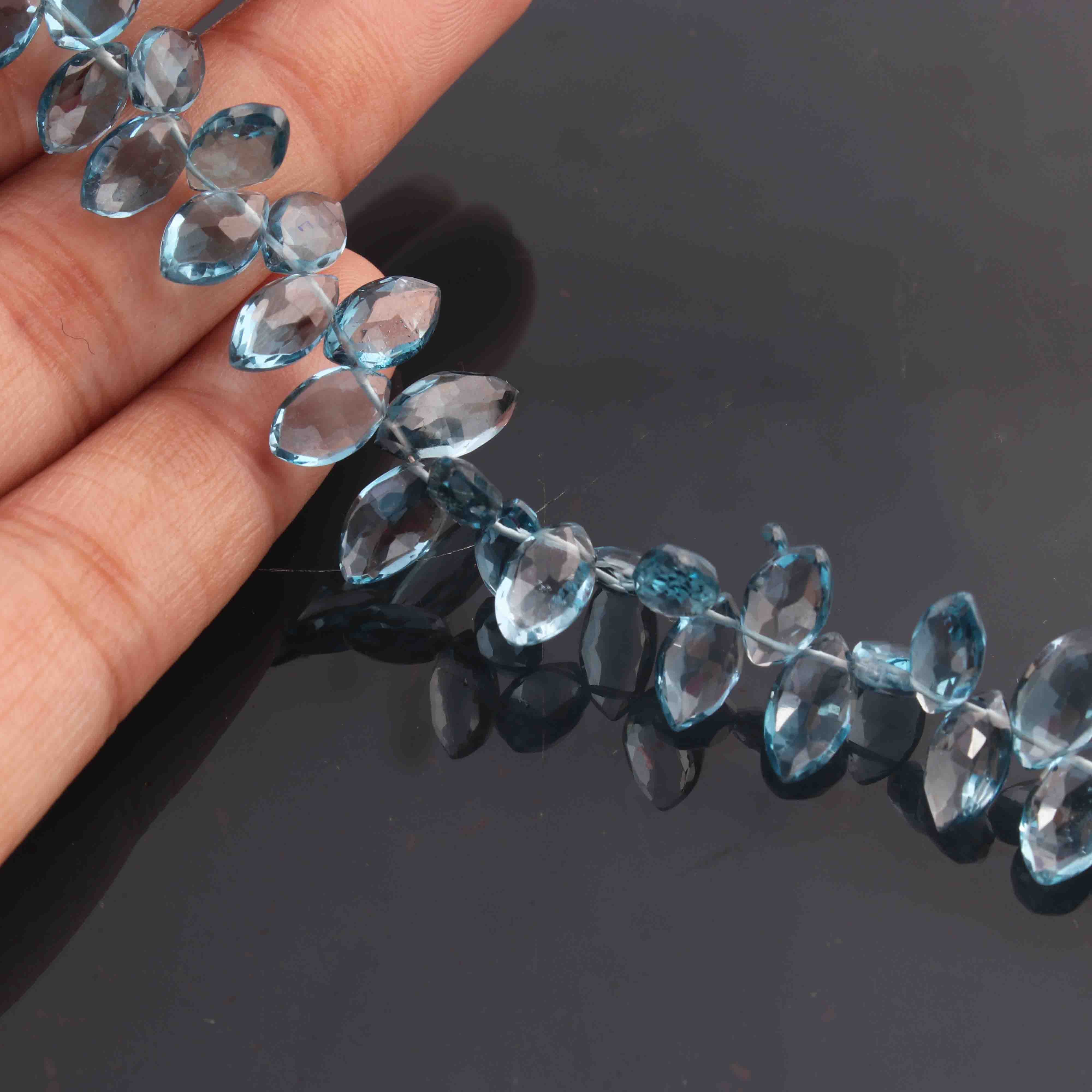 1 Long Strand Amazing Quality Natural London Blue Topaz Faceted Briolettes - Marquise Shape Briolettes 5mmx8mm 7.5 Inches BR1512