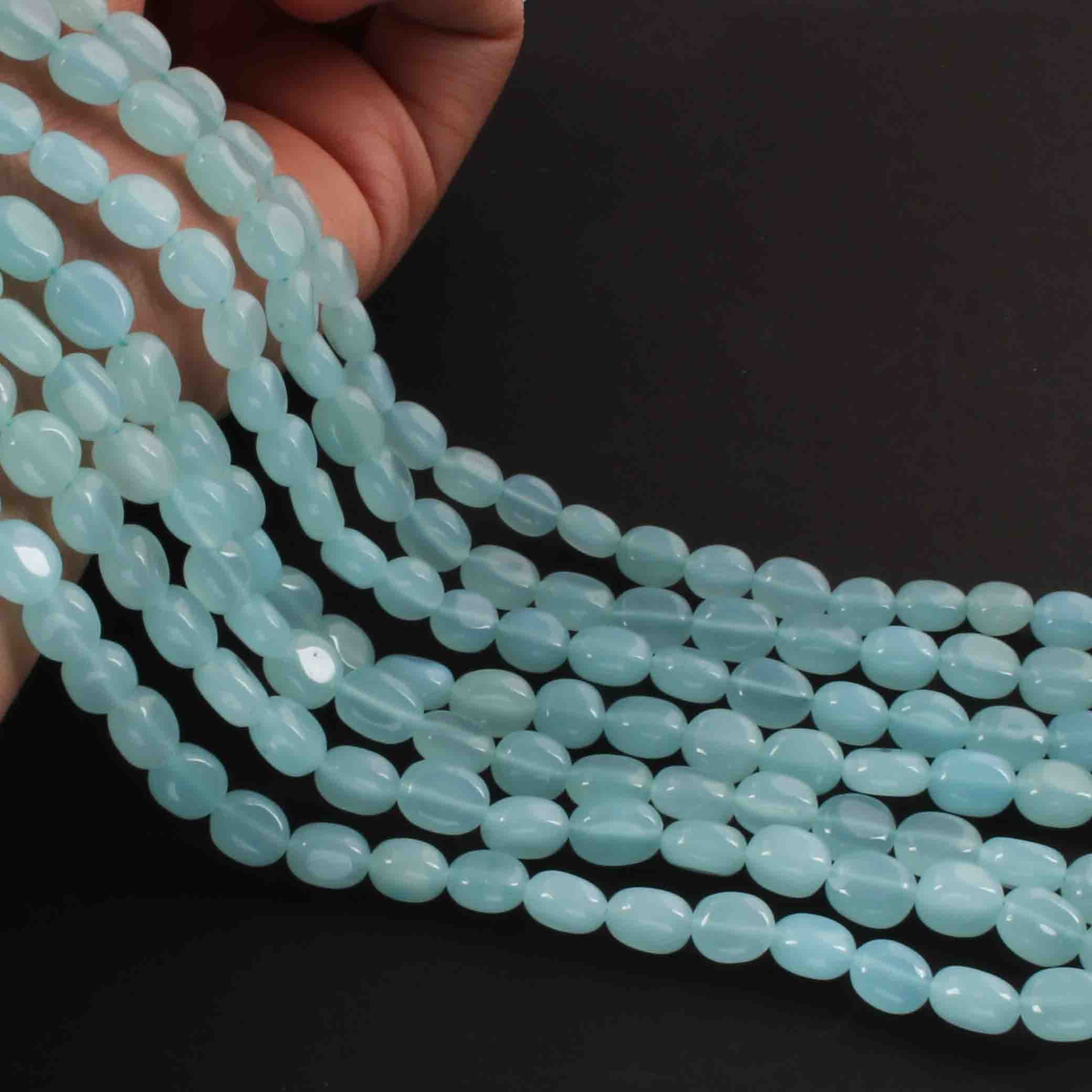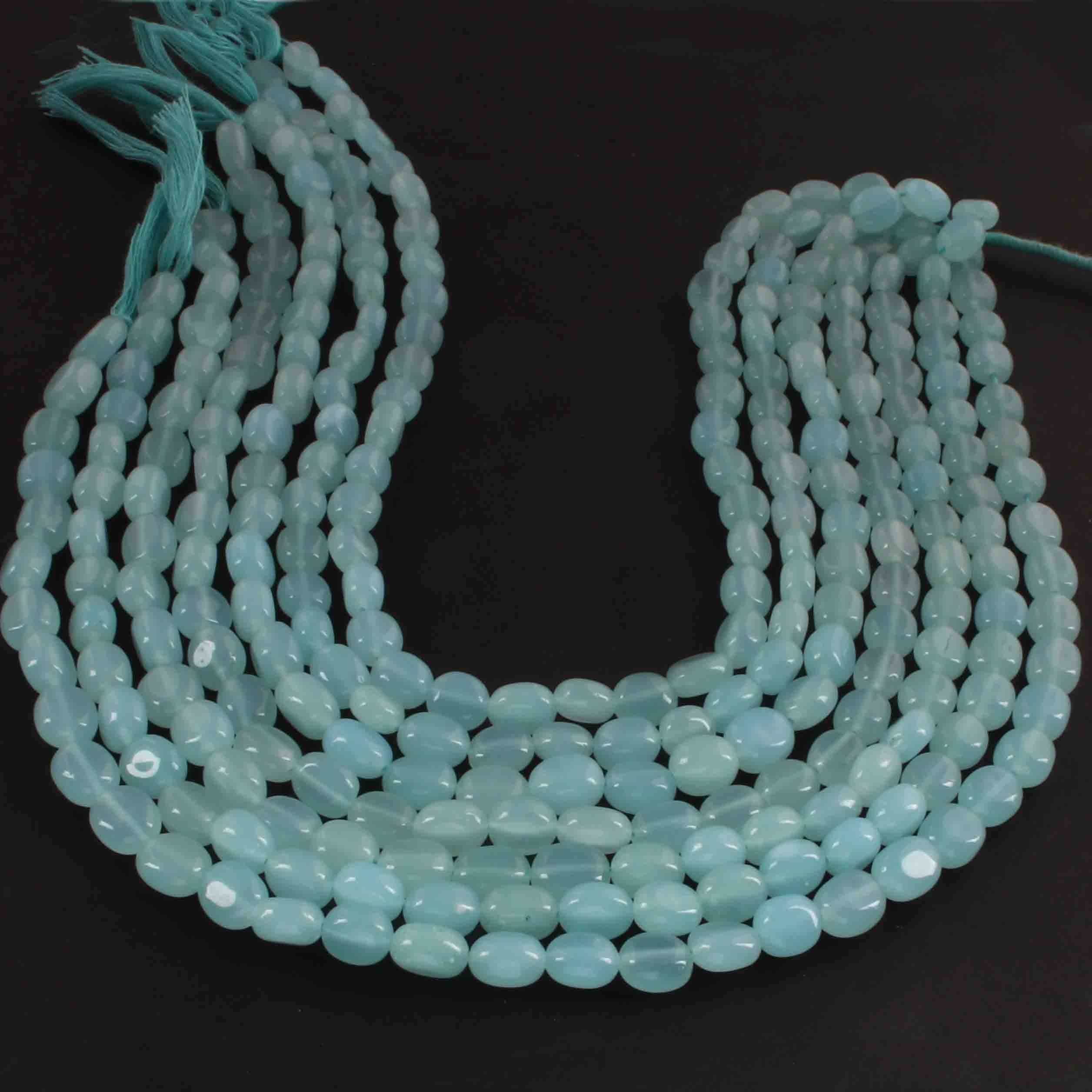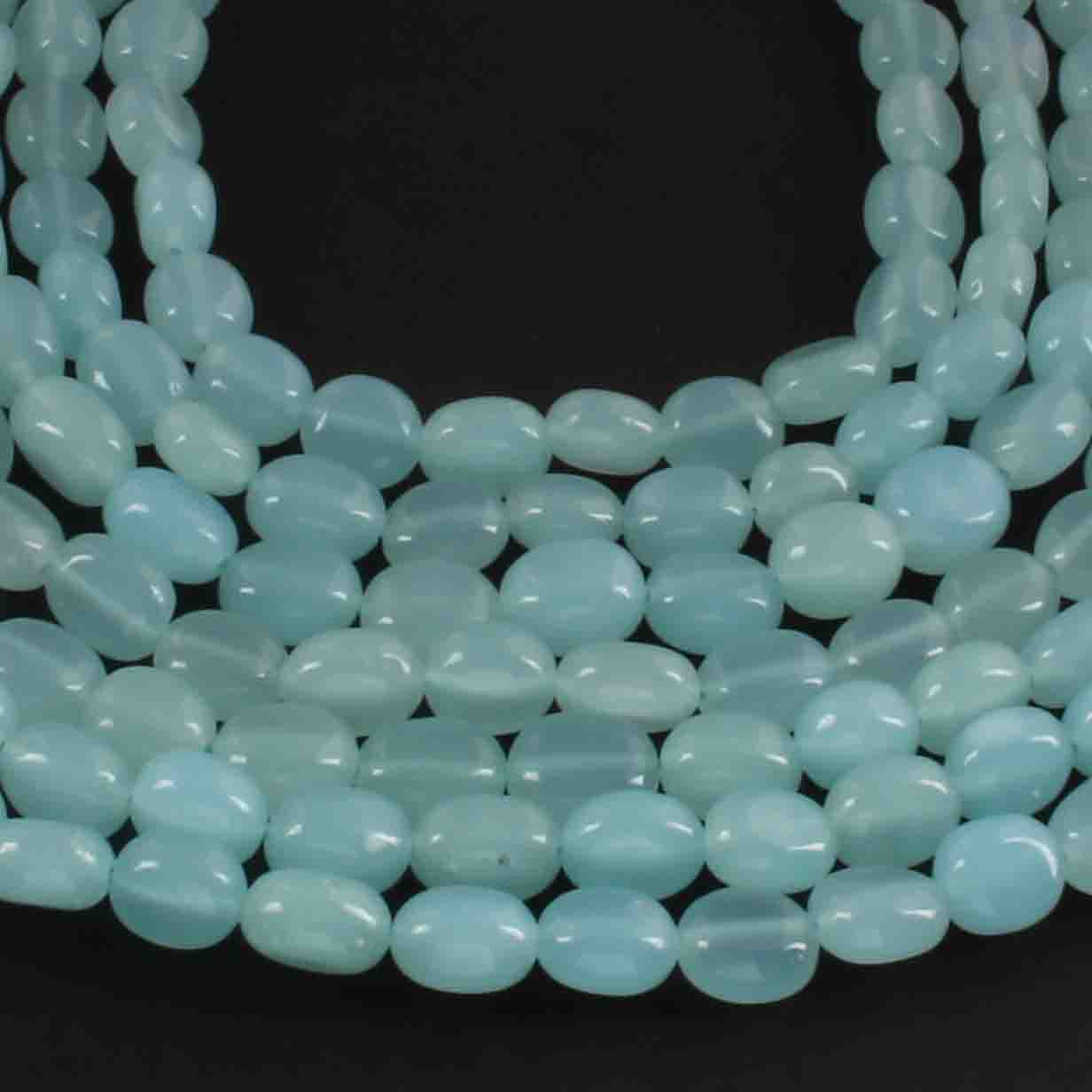 1 Long Strand Aqua Chalcedony Smooth Briolettes -Oval Shape Briolettes - 7mmx6mm-9mmx7mm - 12.5 Inches BR02149
