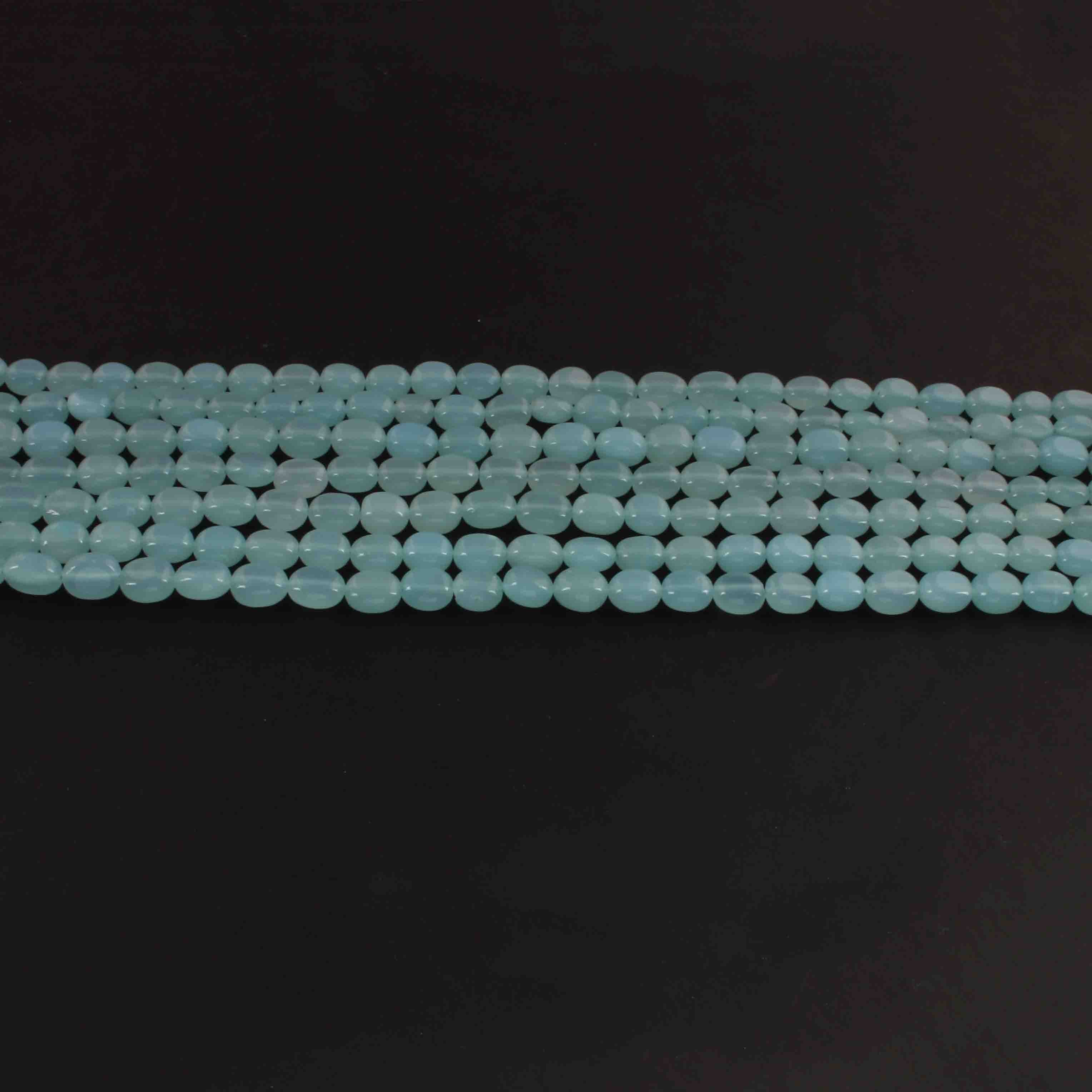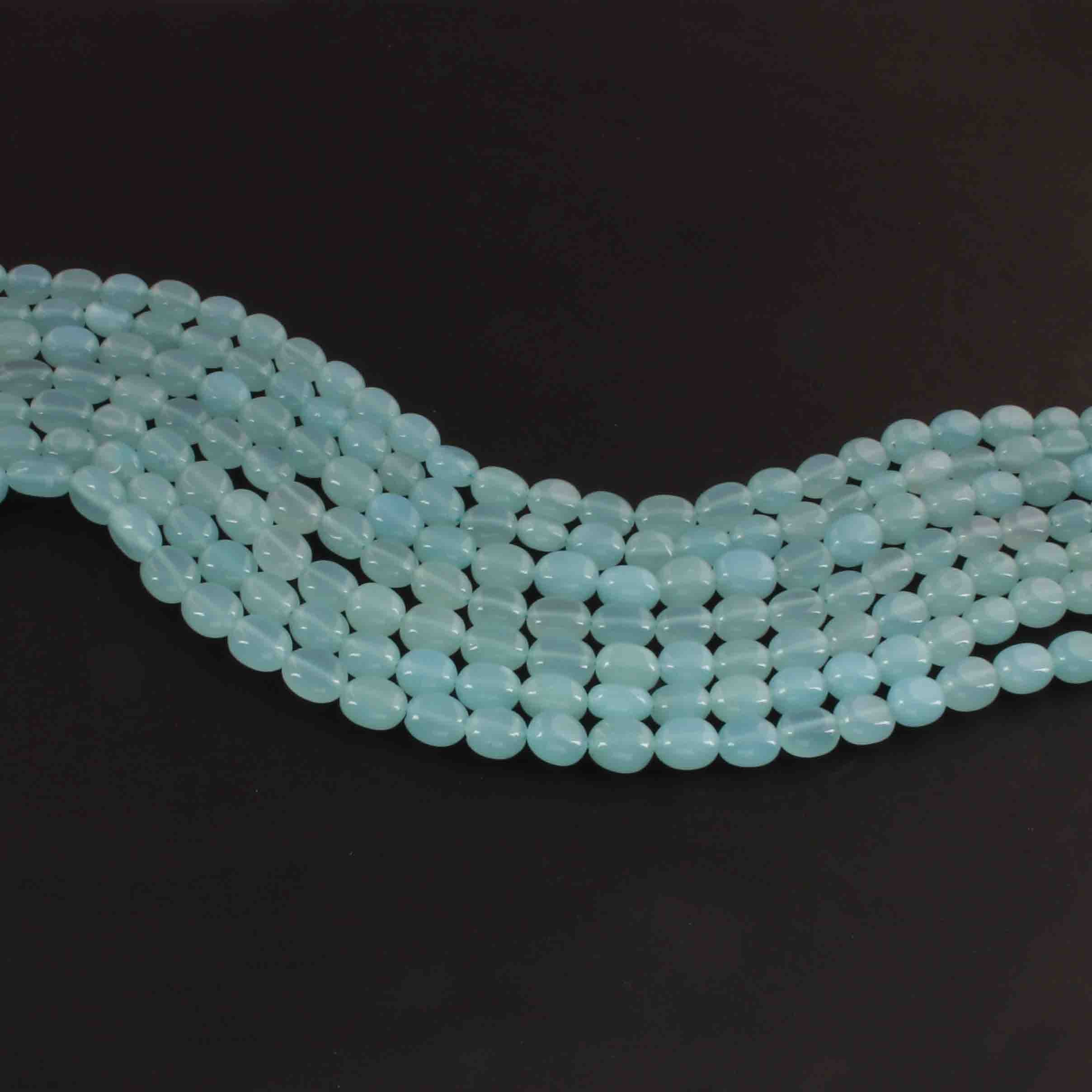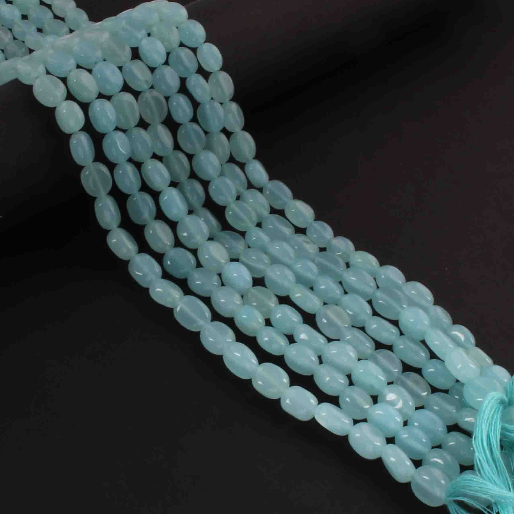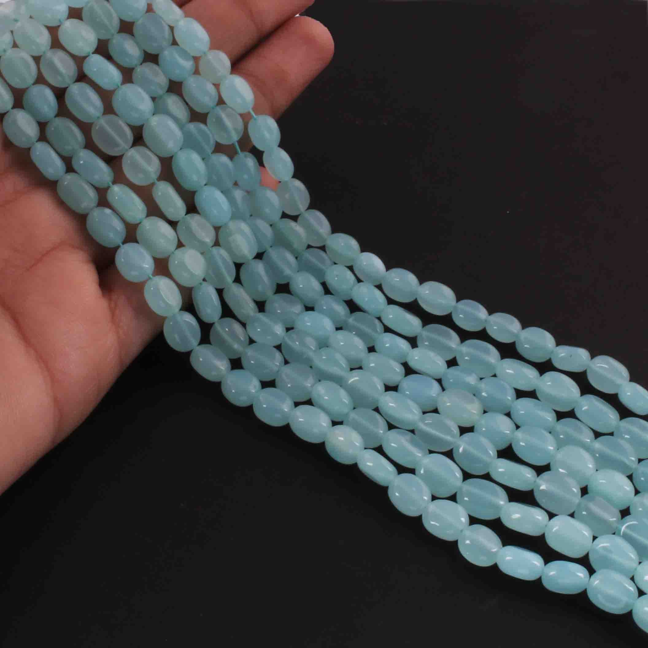 1 Long Strand Aqua Chalcedony Smooth Briolettes -Oval Shape Briolettes - 7mmx6mm-9mmx7mm - 12.5 Inches BR02149