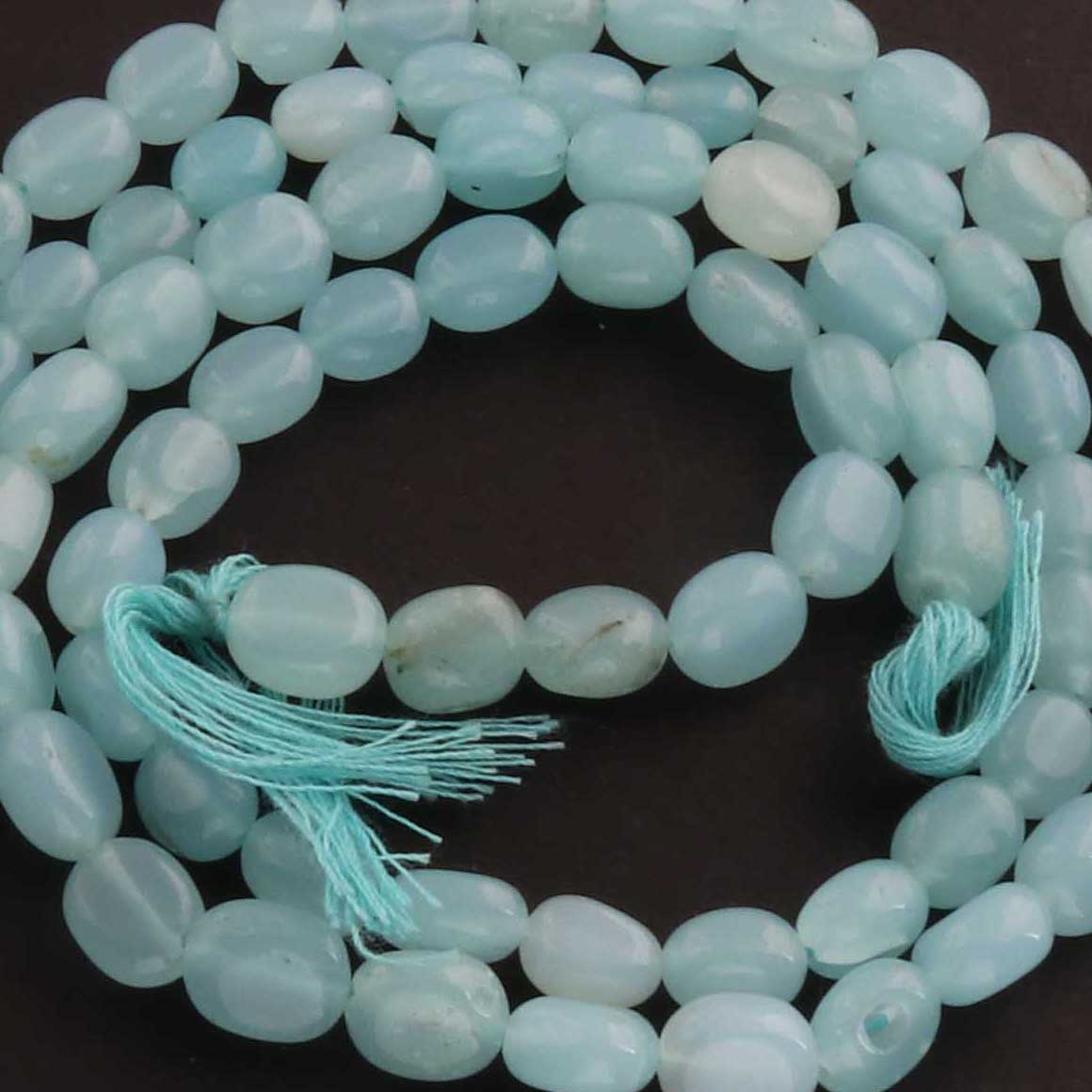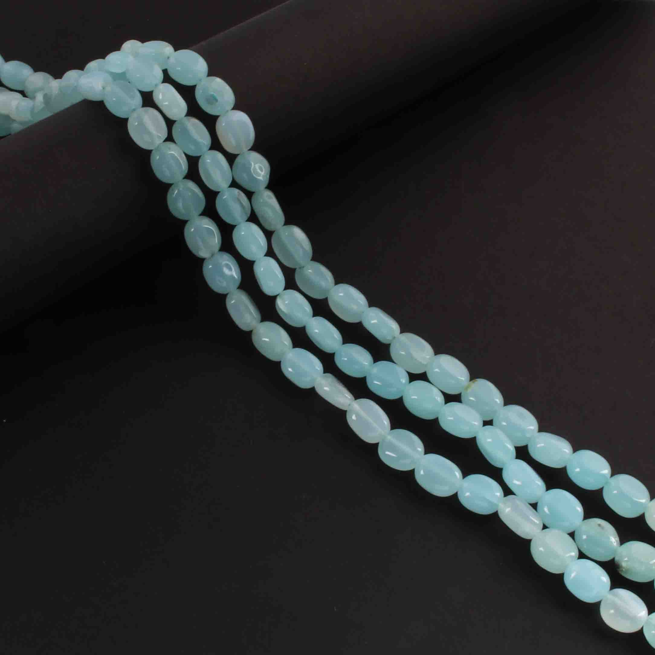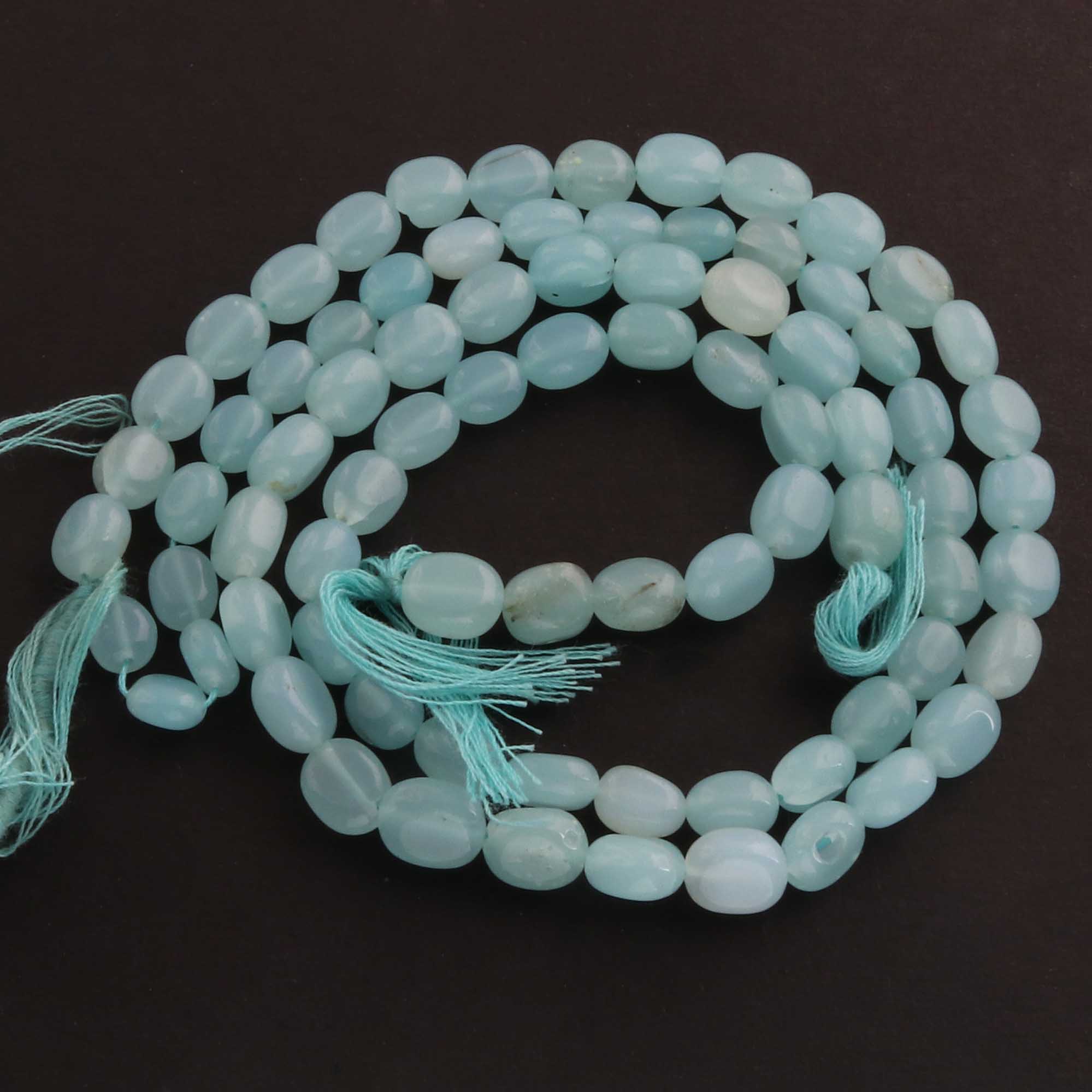 1 Long Strand Aqua Chalcedony Smooth Briolettes -Oval Shape Briolettes - 7mmx6mm-9mmx7mm - 12.5 Inches BR2144