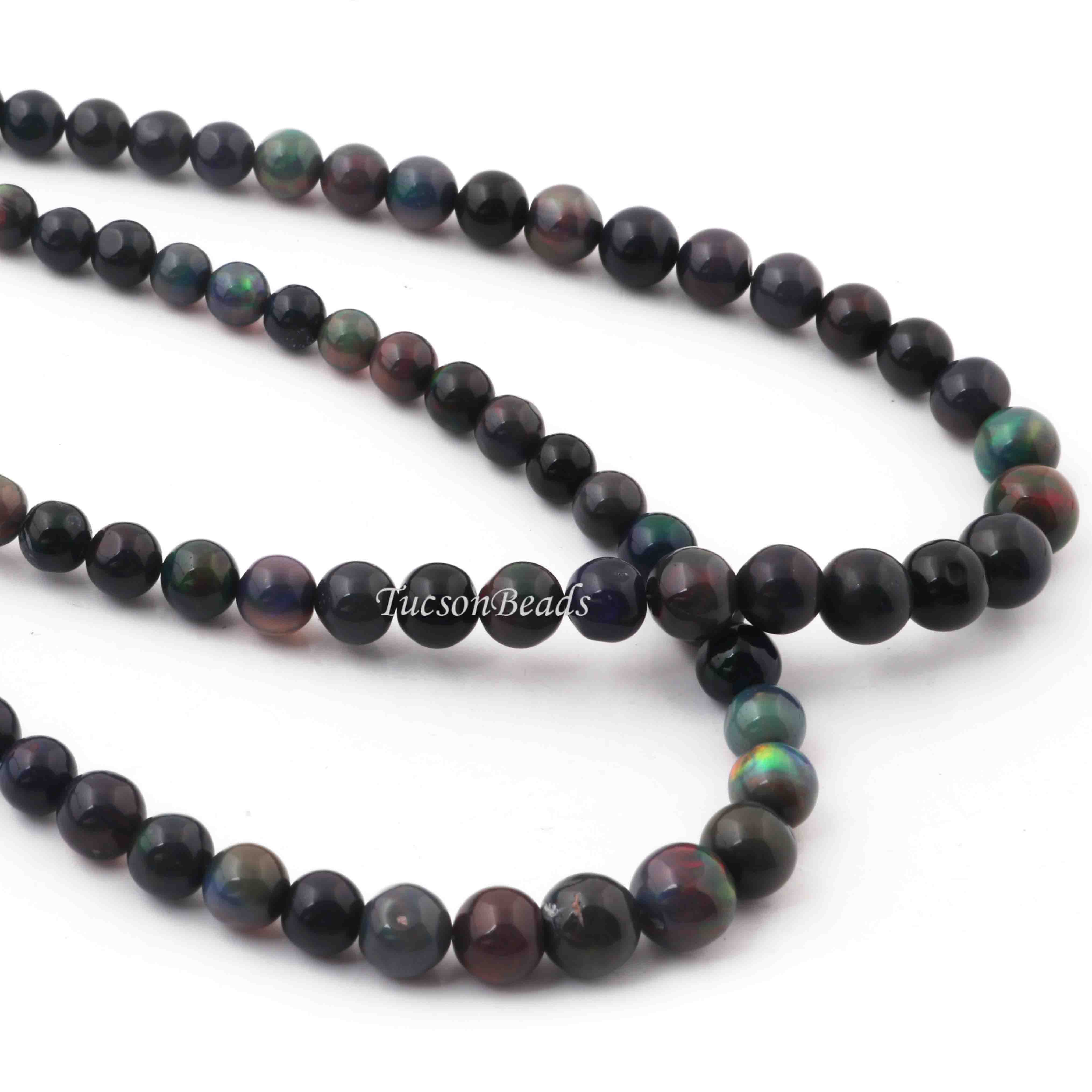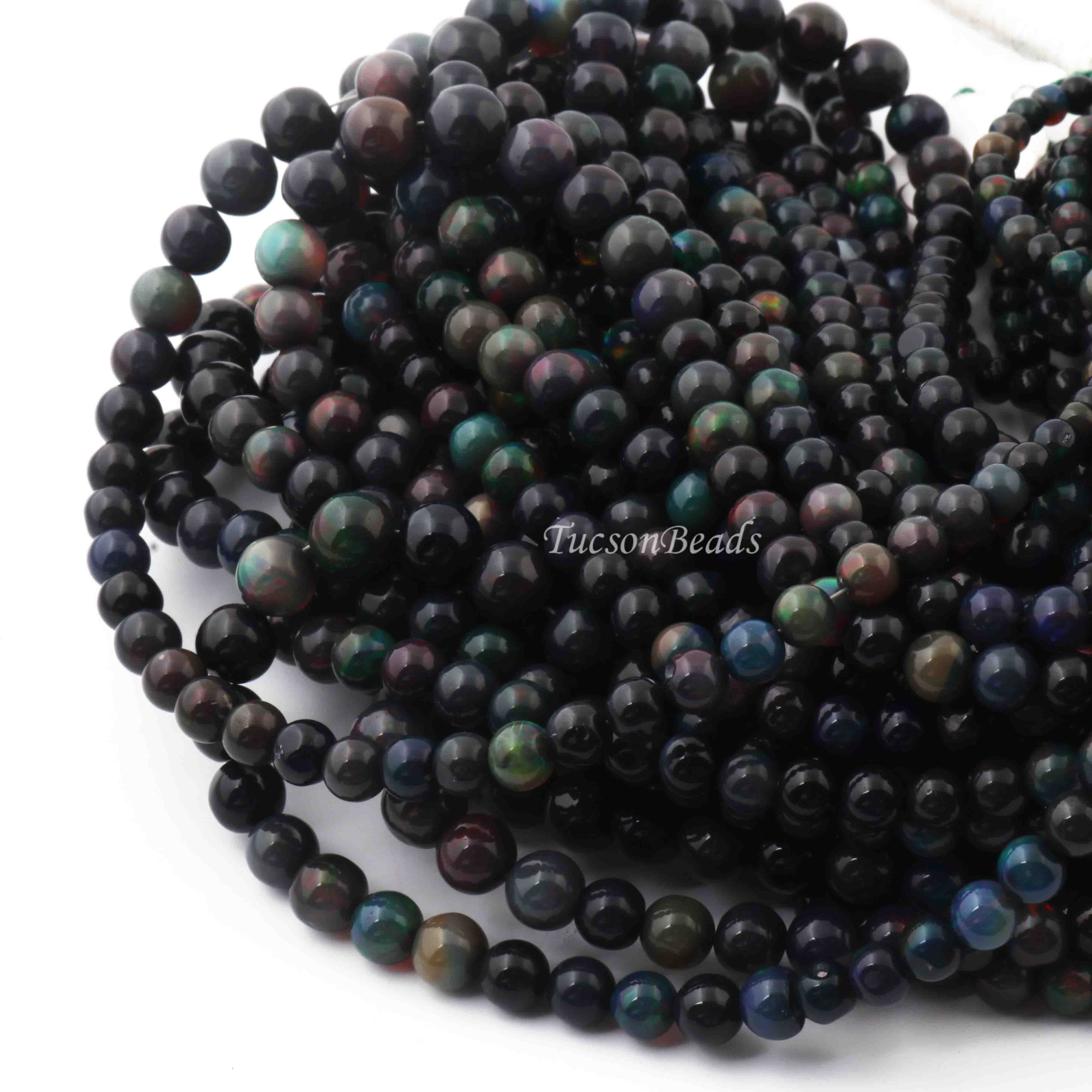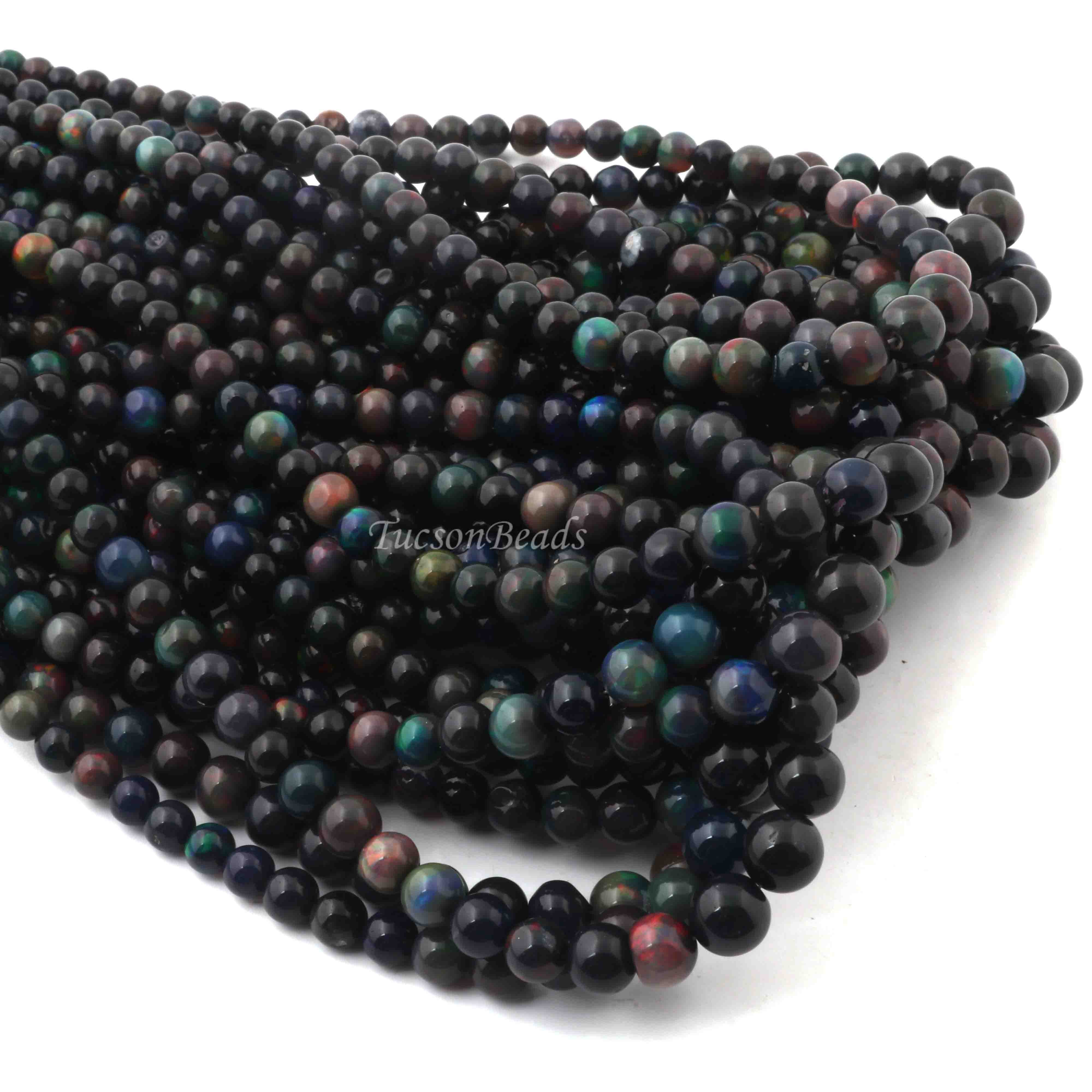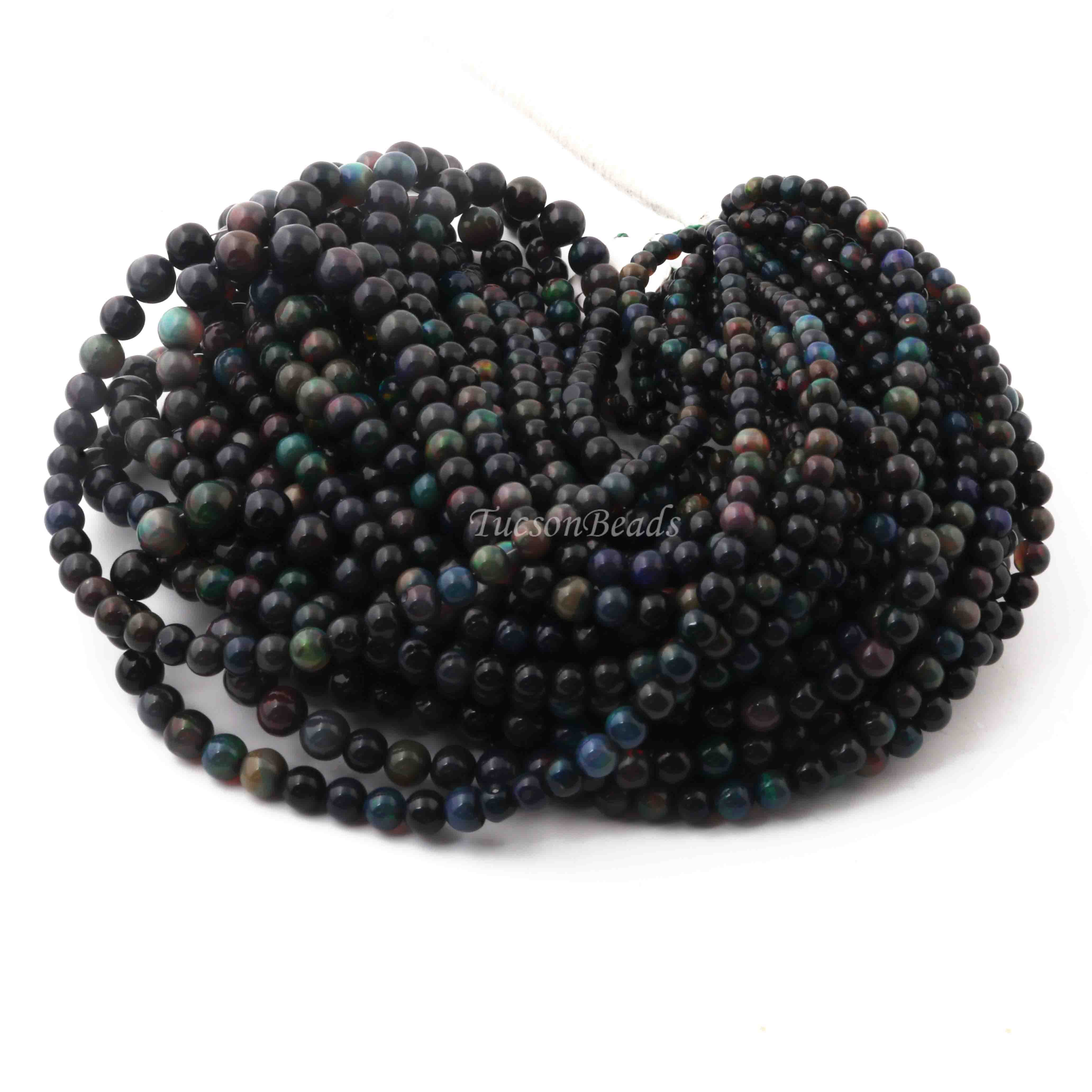 1 Long Strand Black Ethiopian Welo Opal Smooth Balls Beads 4mm-8mm 16 Inches BR0124