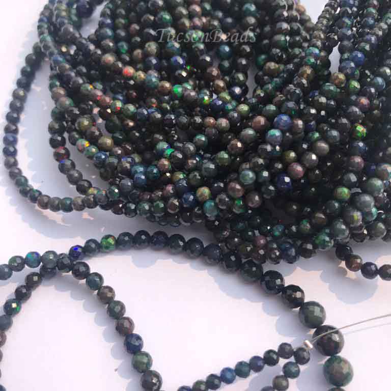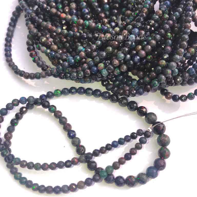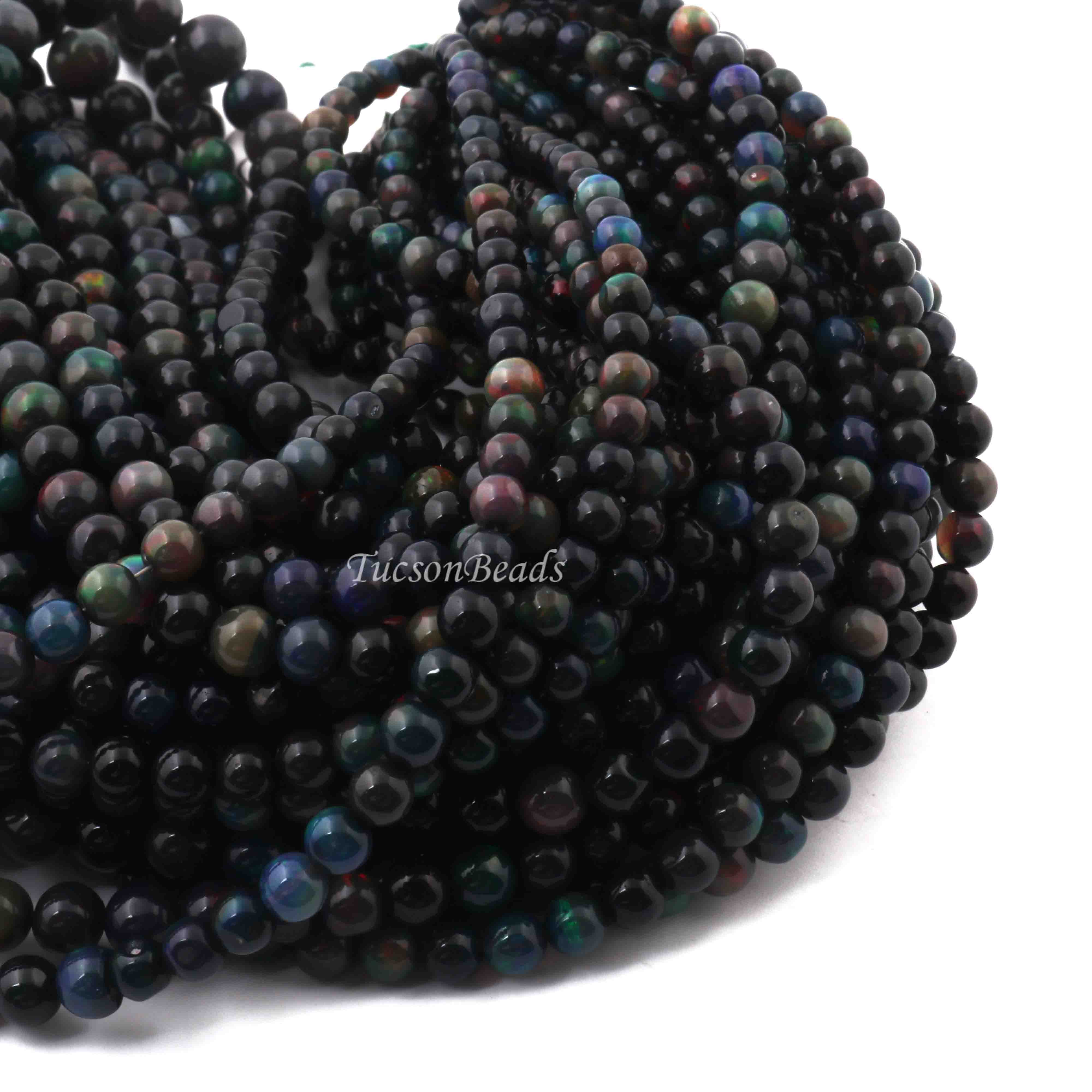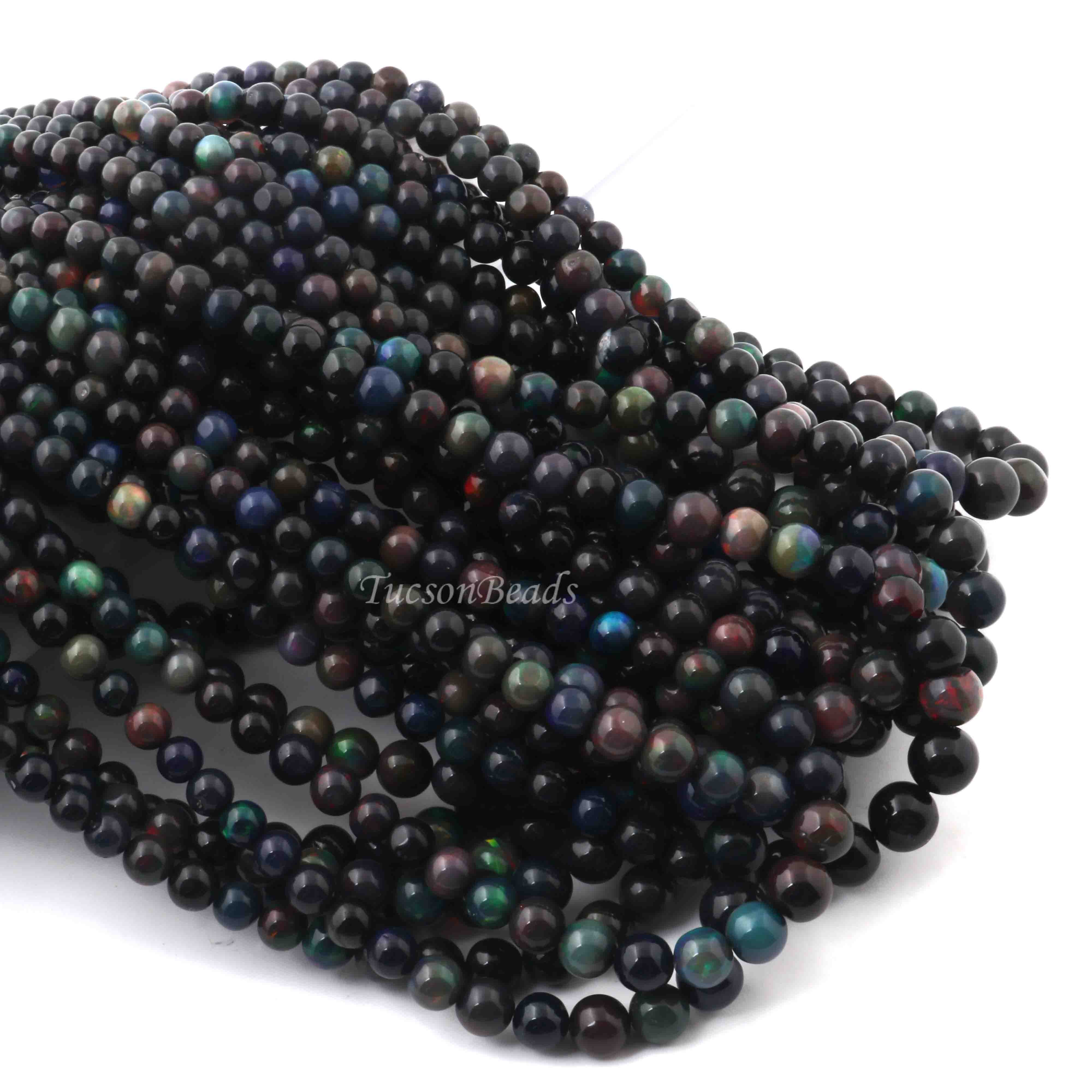 1 Long Strand Black Ethiopian Welo Opal Smooth Balls Beads 4mm-8mm 16 Inches BR0124