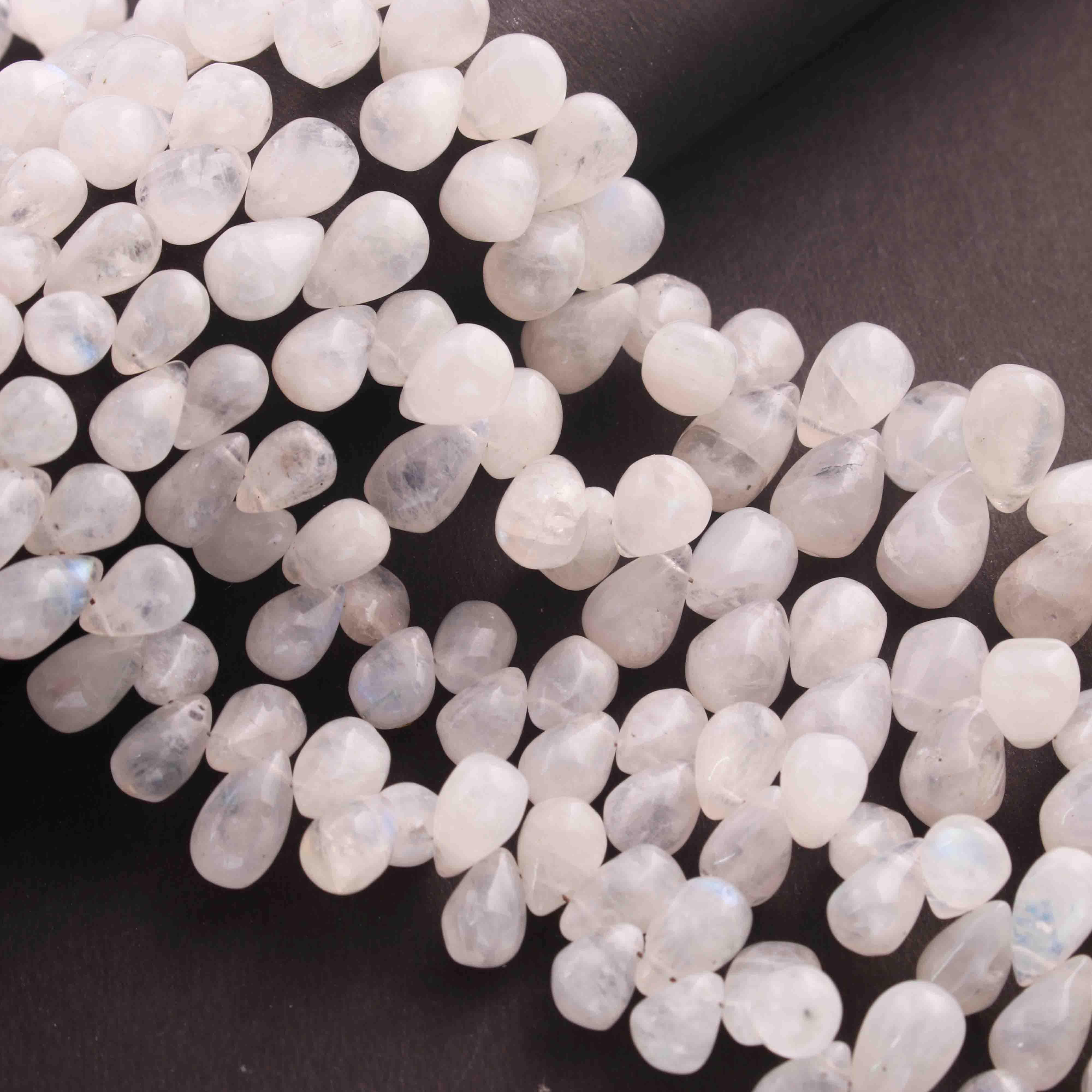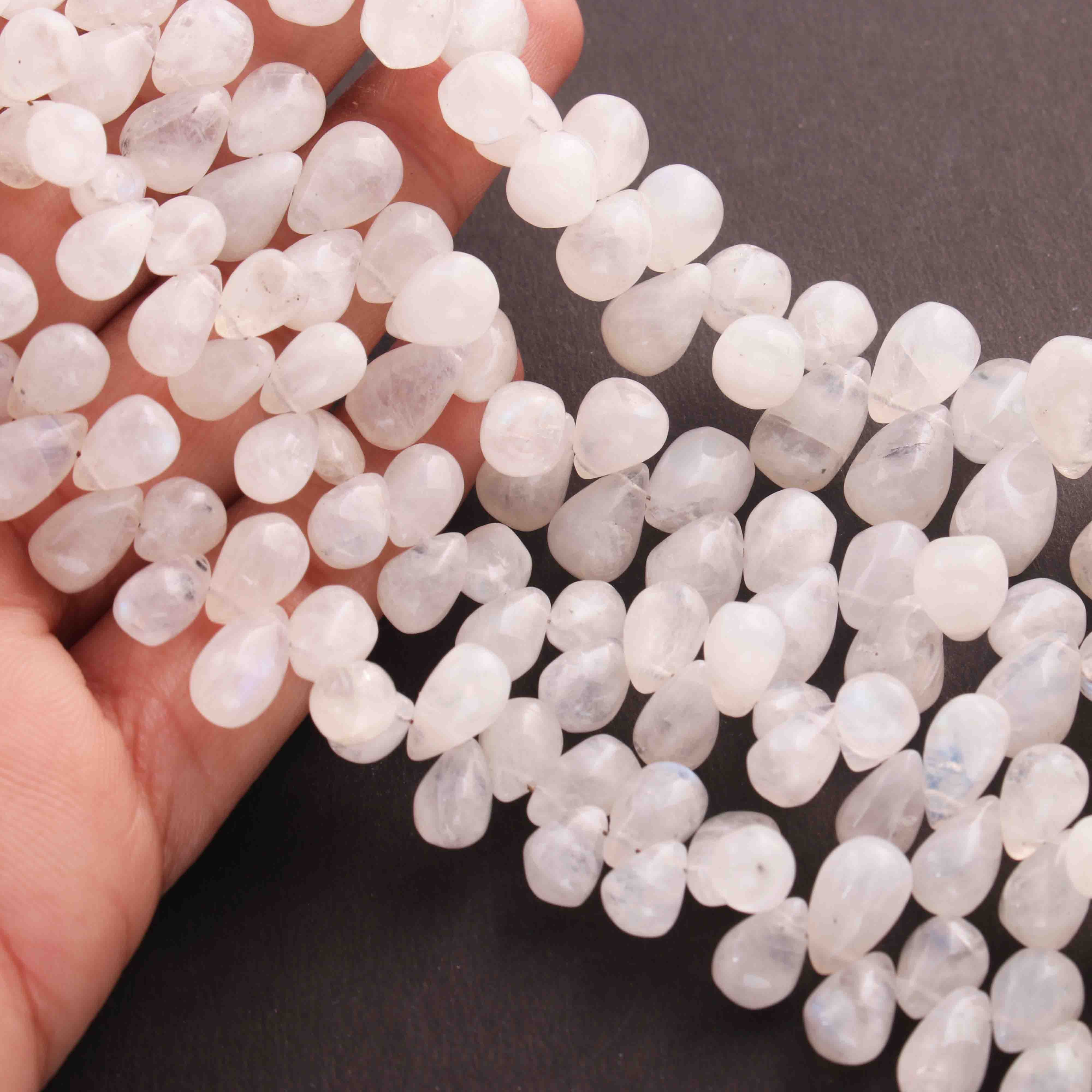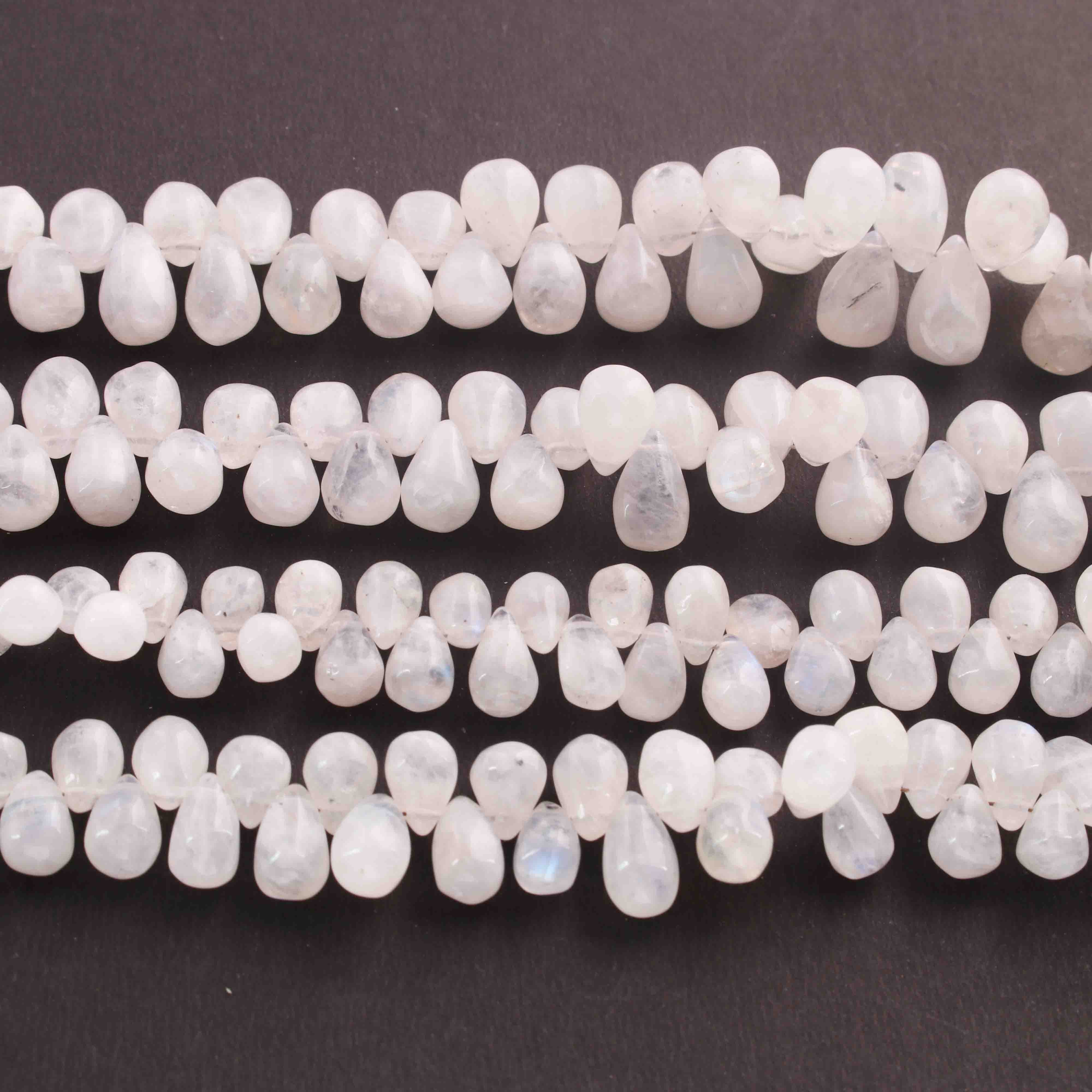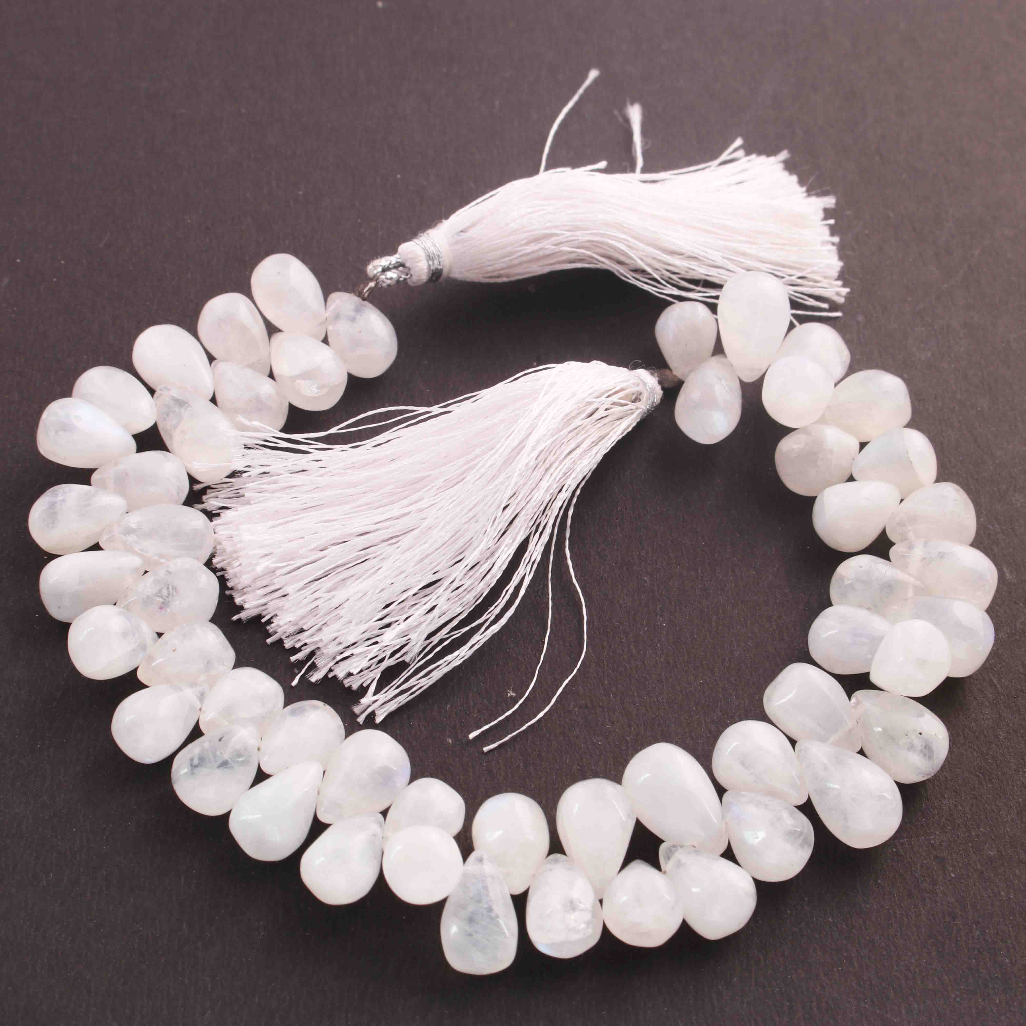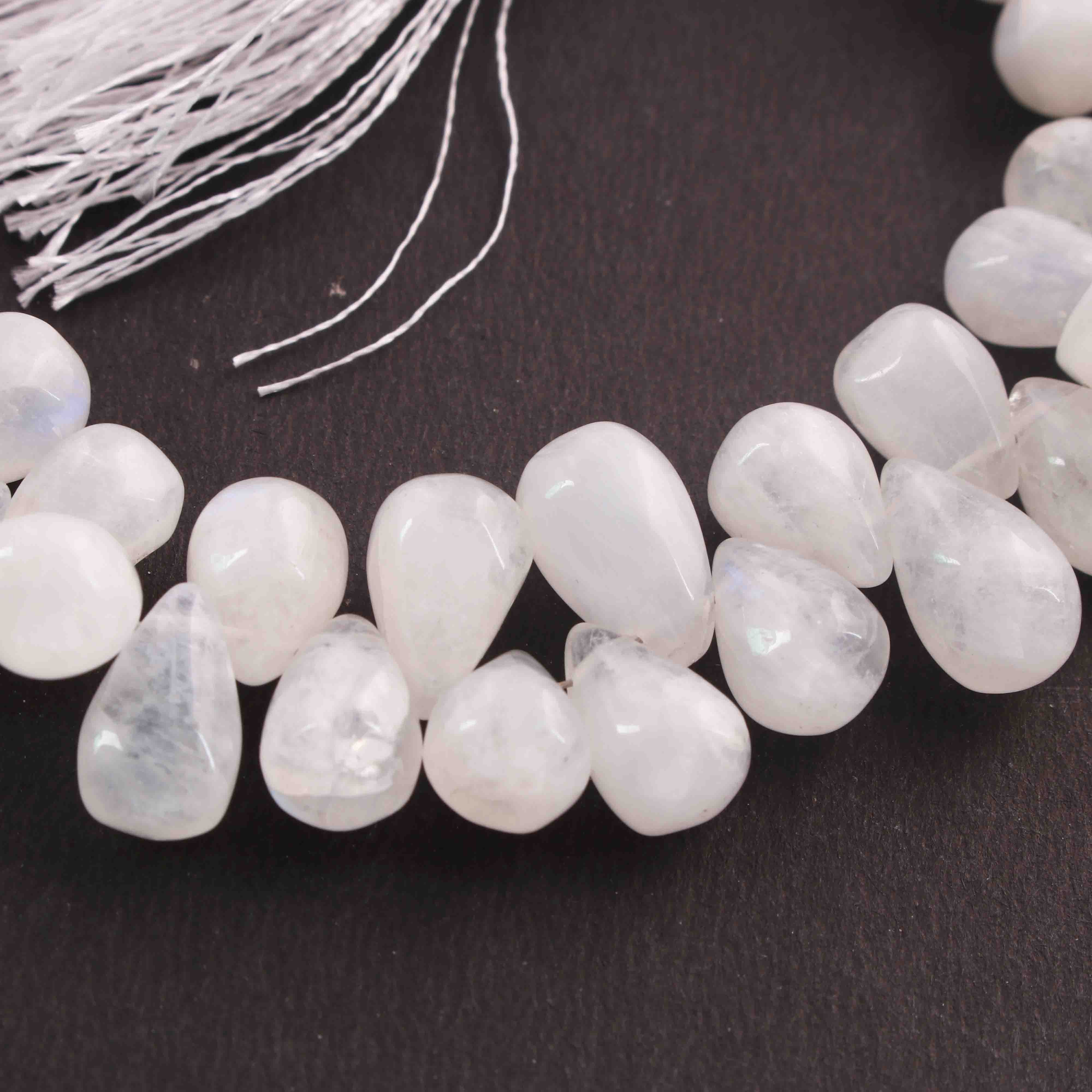 1 Long Strand White Rainbow Moonstone Smooth Briolettes -Tear Shape Briolettes -15mmx11mm-8mmx6mm-8 Inches BR01622