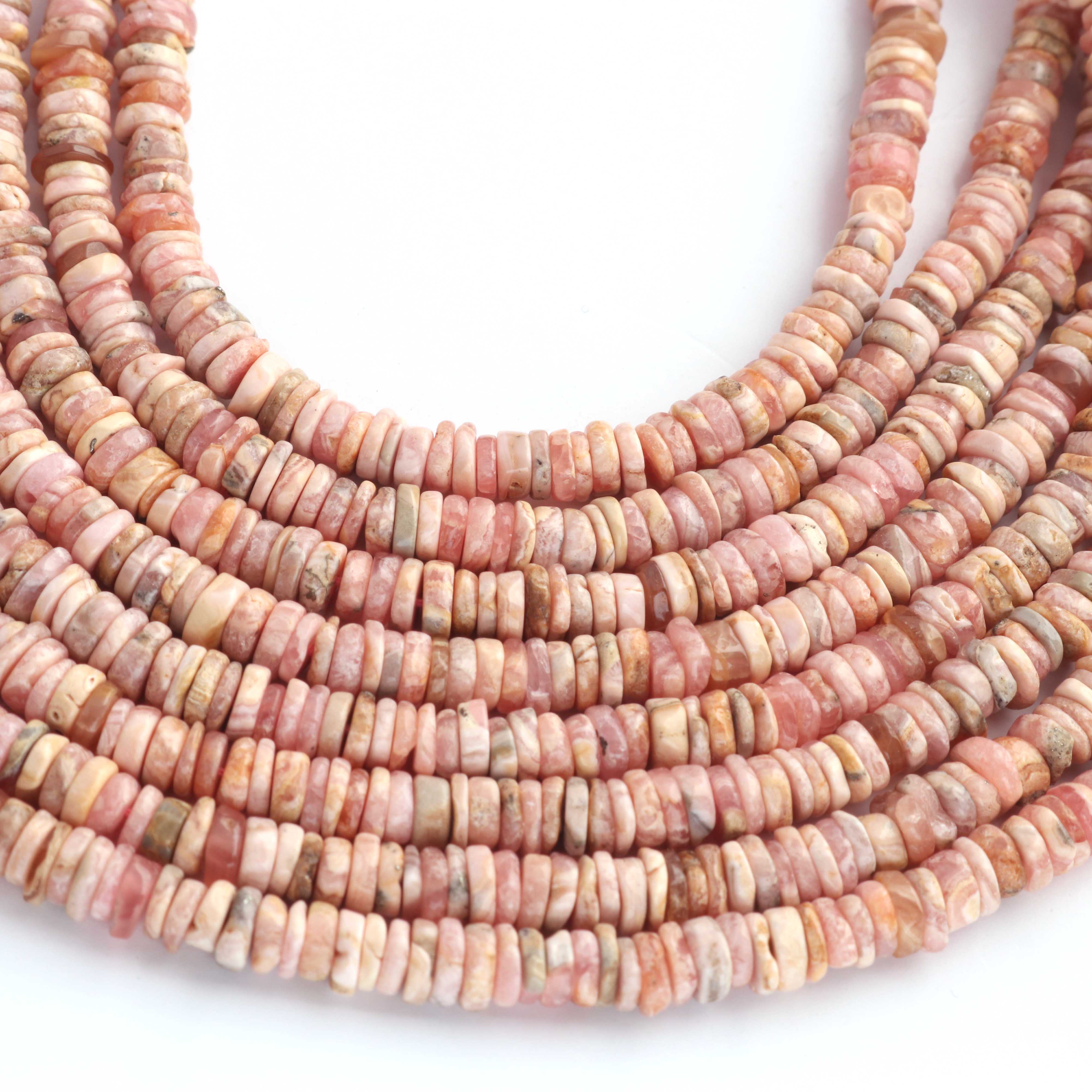 1 Strand AAA+ Rhodochrosite Smooth Tyre, Wheel Shape Beads - Heishi Shape Gemstone Beads 5mm-6mm 16 Inches BR03793