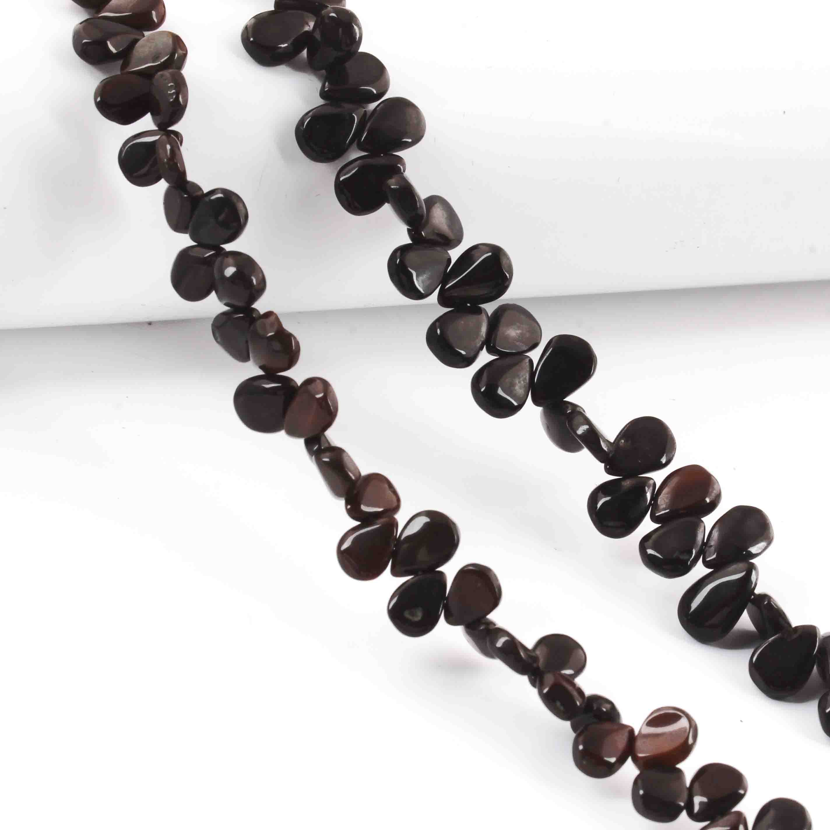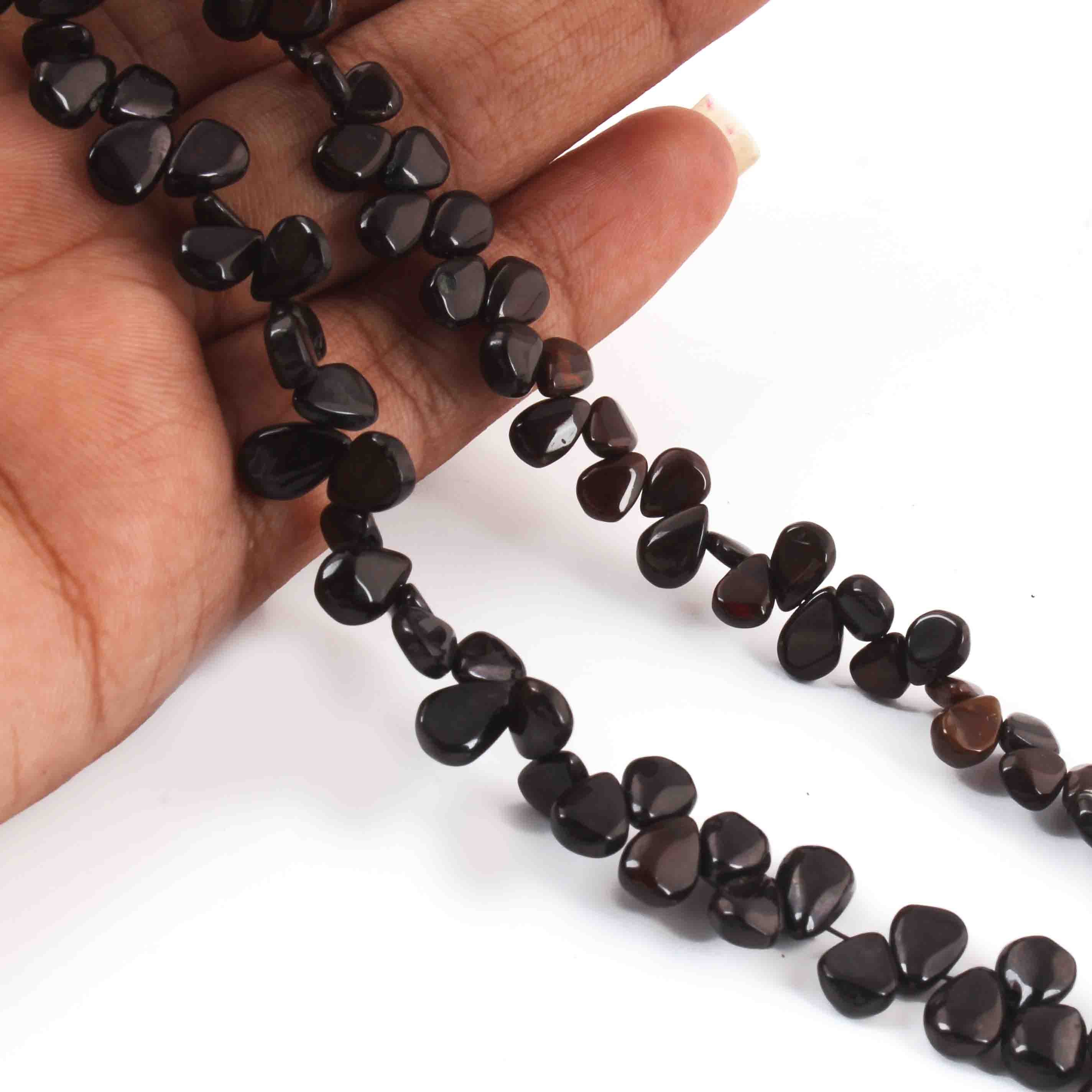 1 Strand Black Ethiopian Opal Smooth Briolettes - Pear Shape Rondelles Beads 6mmx4mm 8 Inches BR3855