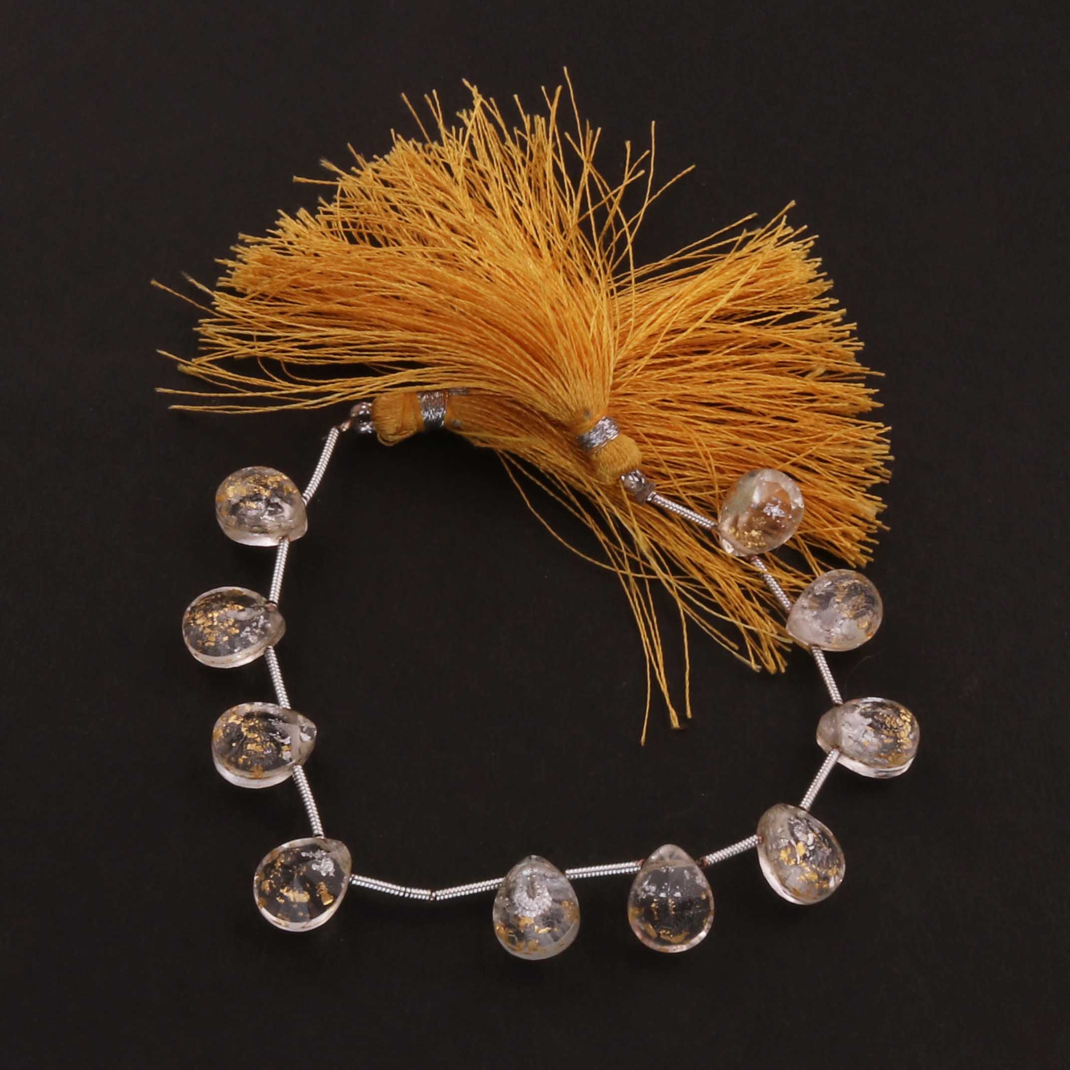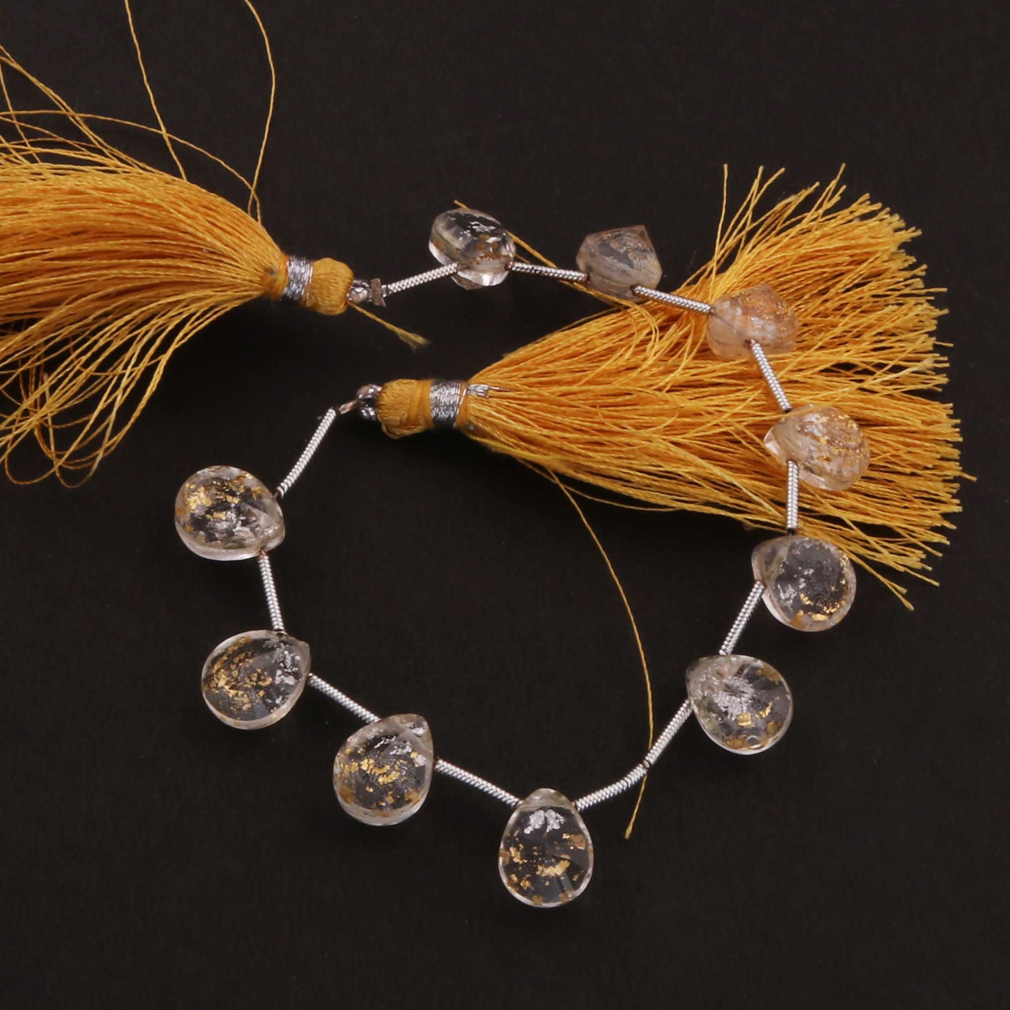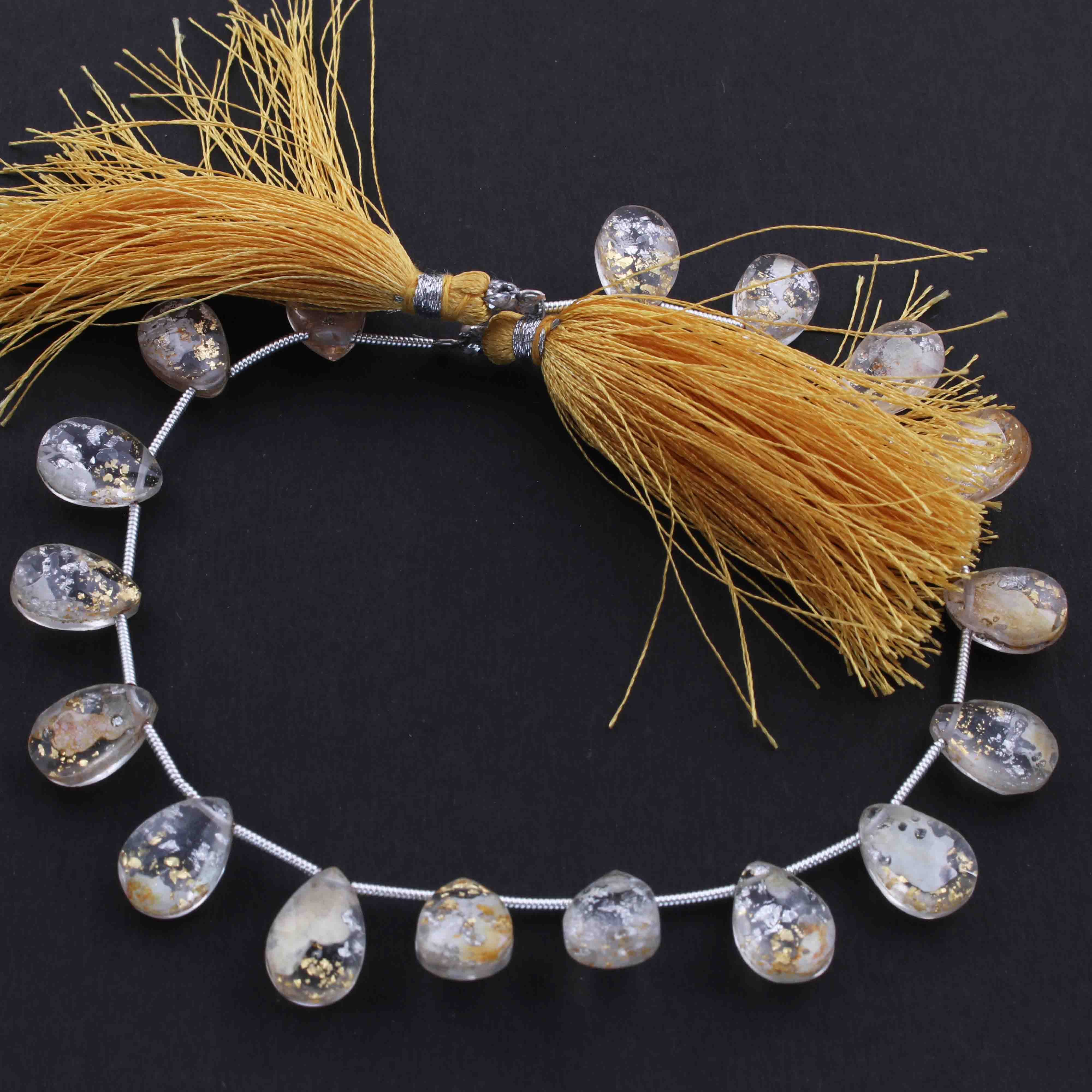 1 Strand Golden Rutile Faceted Briolettes -Pear Shape Briolettes - 12mmx 8mm -9/6 inch BR413