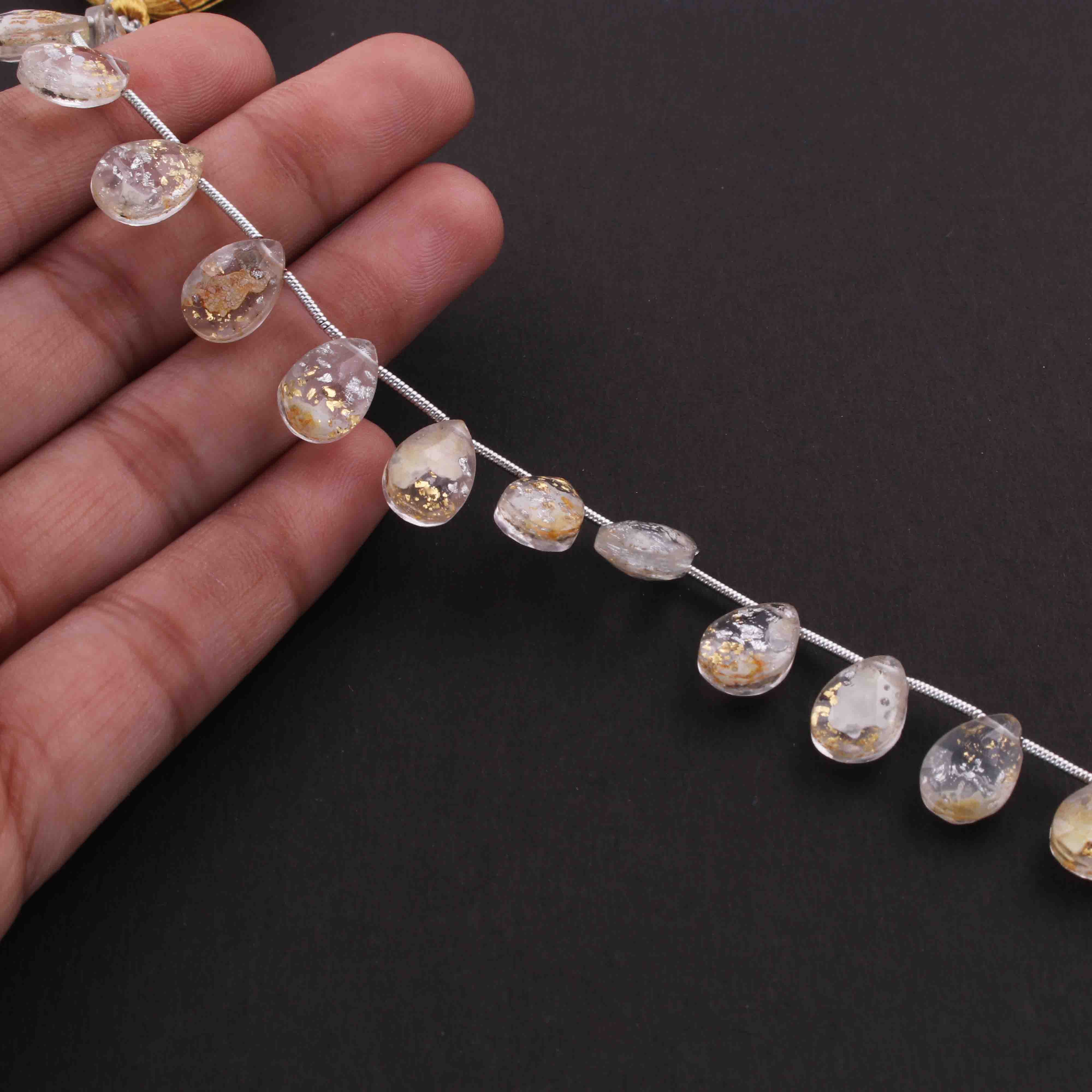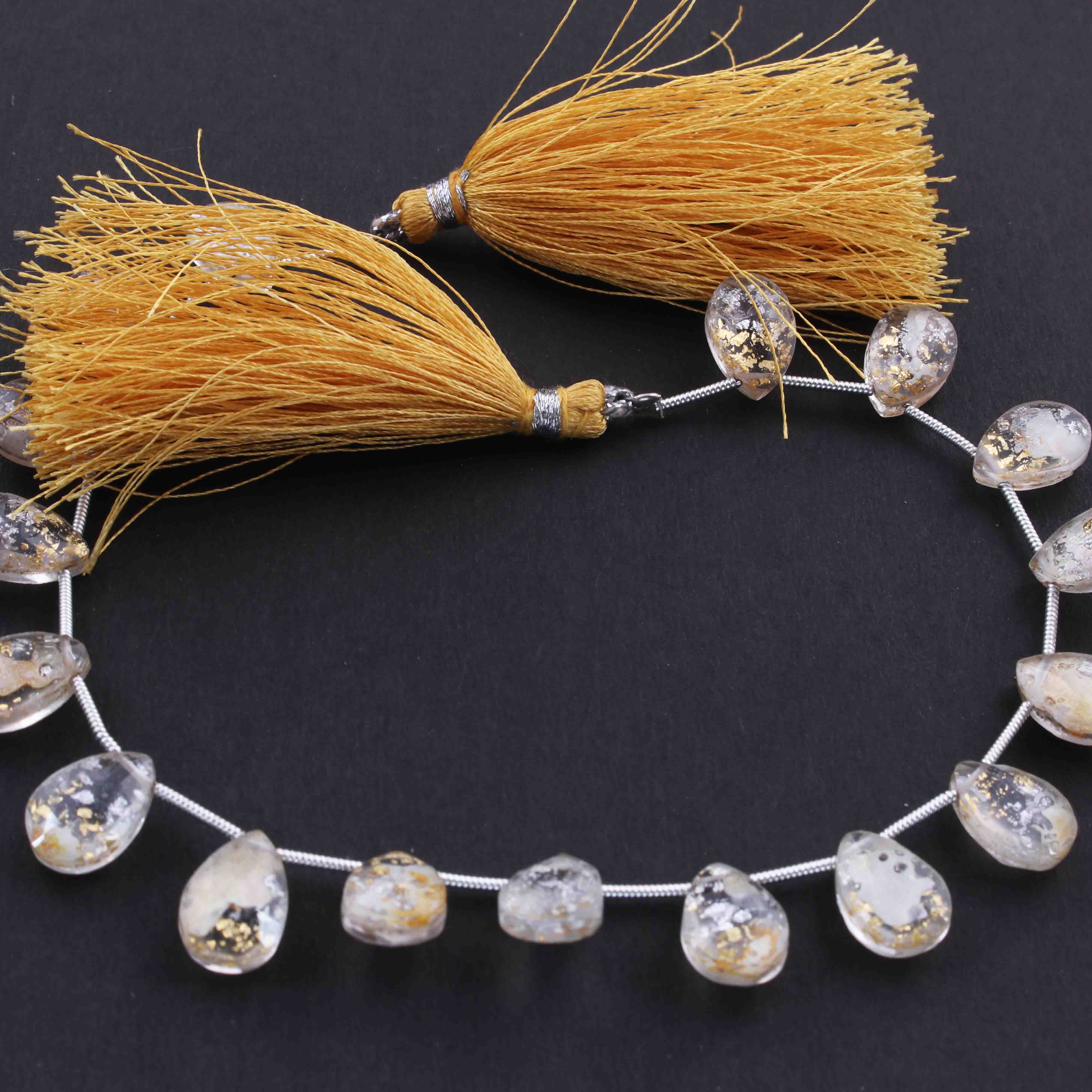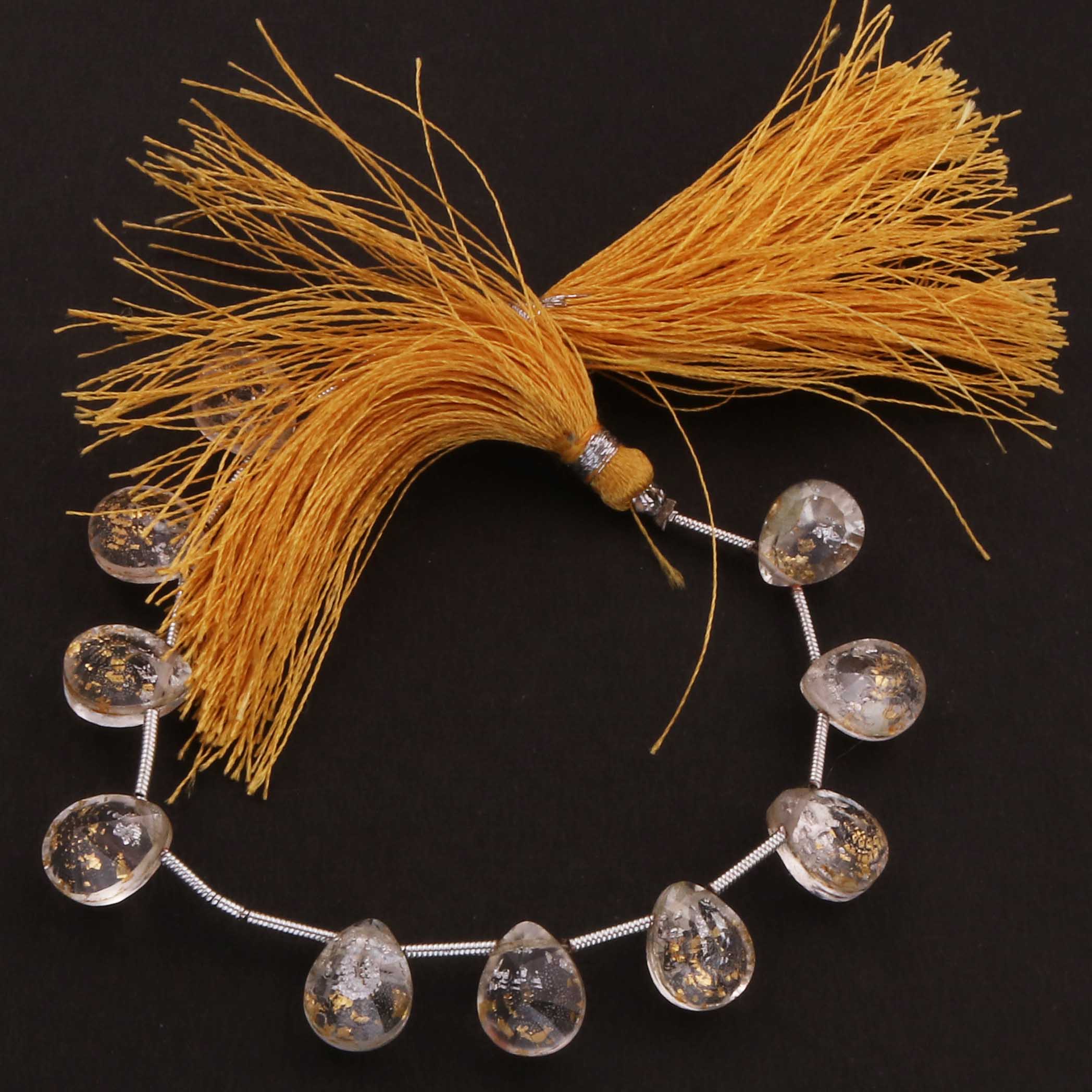 1 Strand Golden Rutile Faceted Briolettes -Pear Shape Briolettes - 12mmx 8mm -9/6 inch BR413