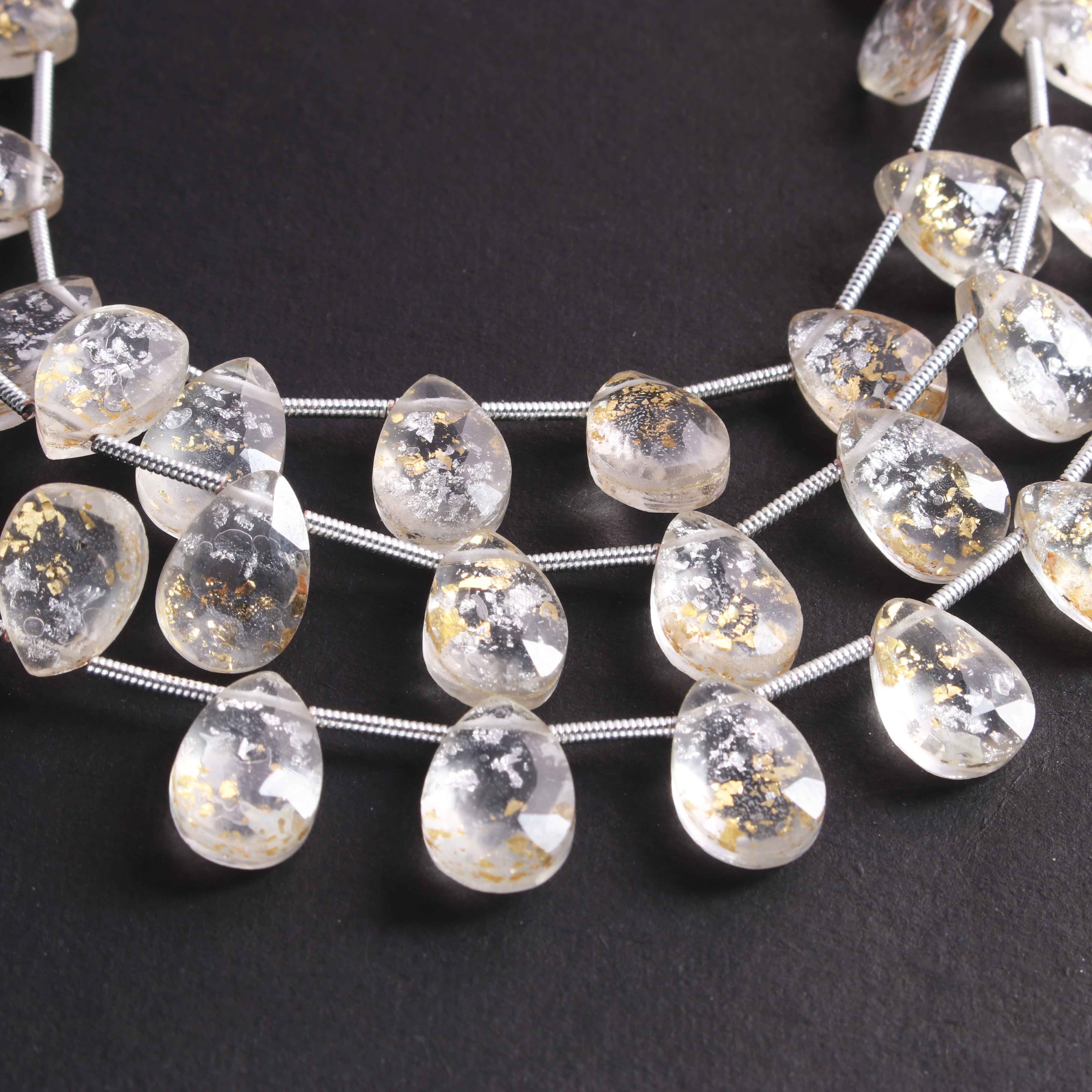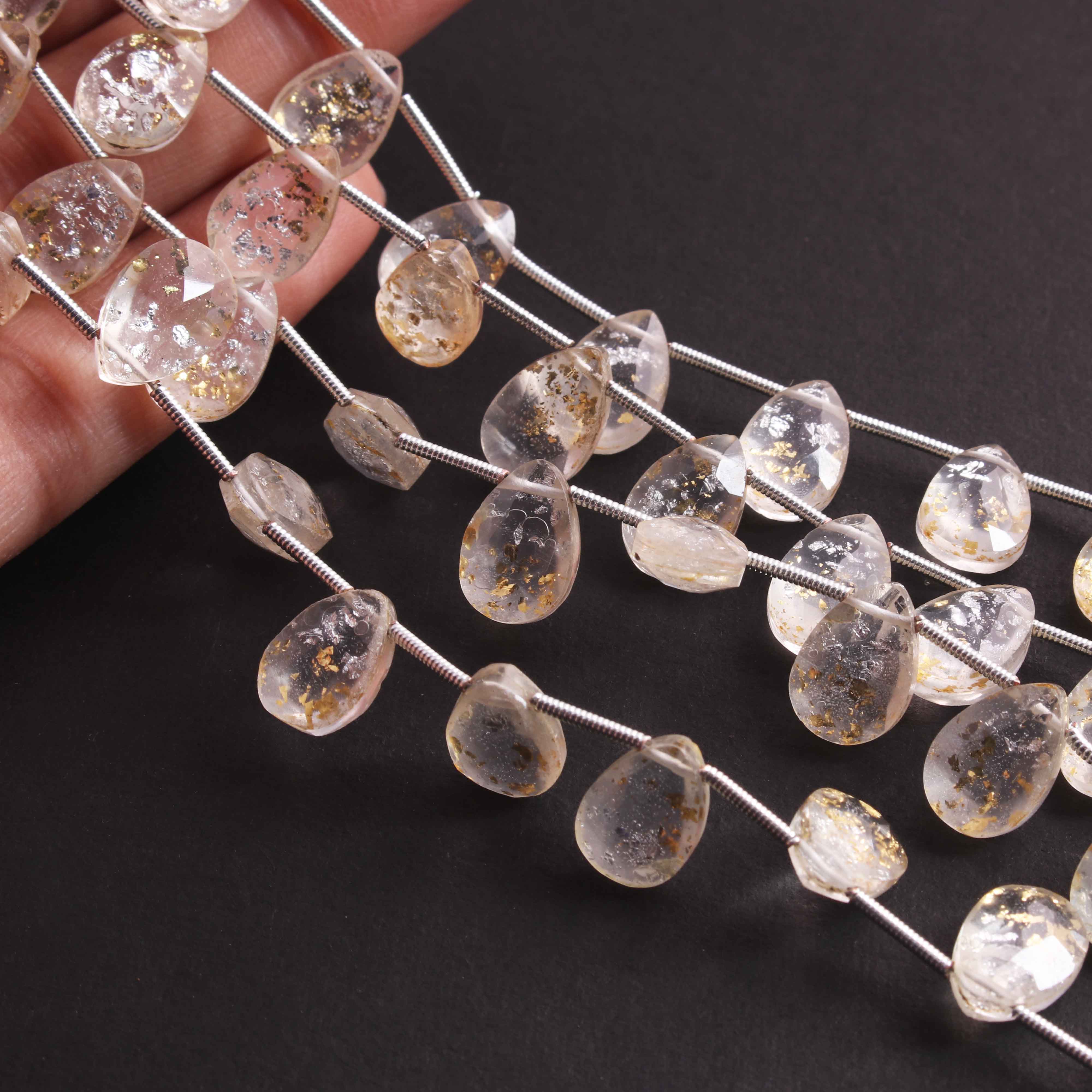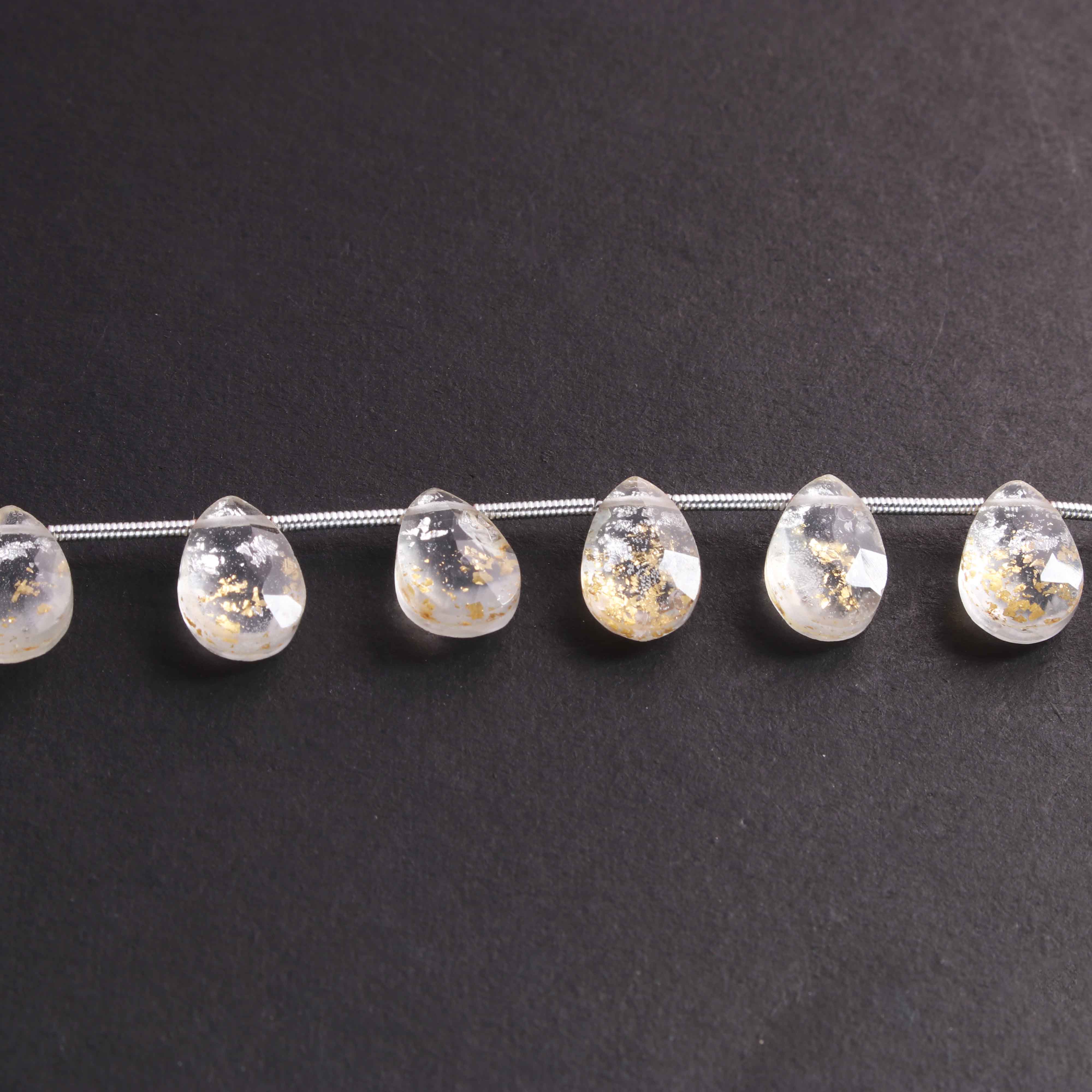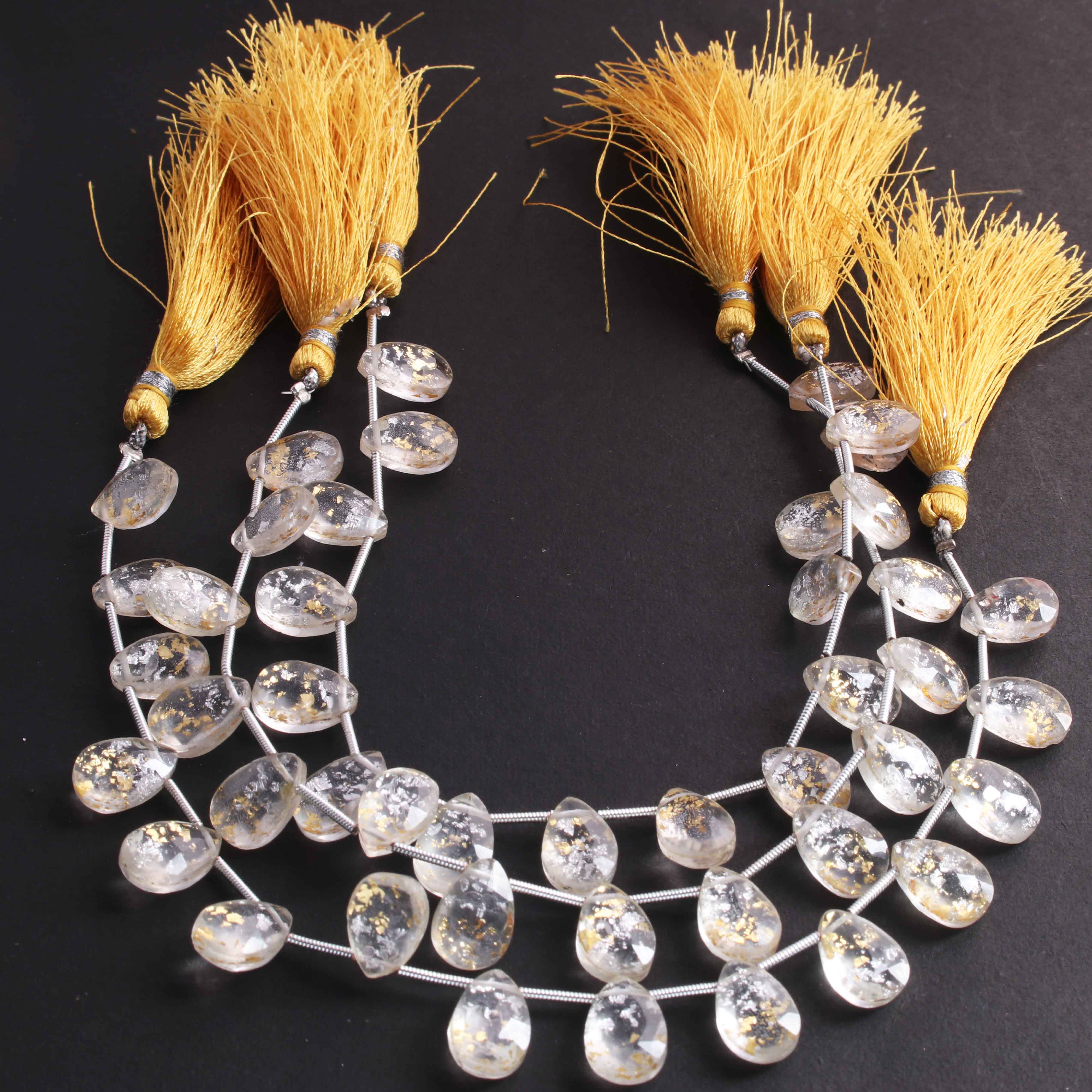 1 Strand Golden Rutile Faceted Briolettes -Pear Shape Briolettes -12mmx8mm- -8 Inches BR02352