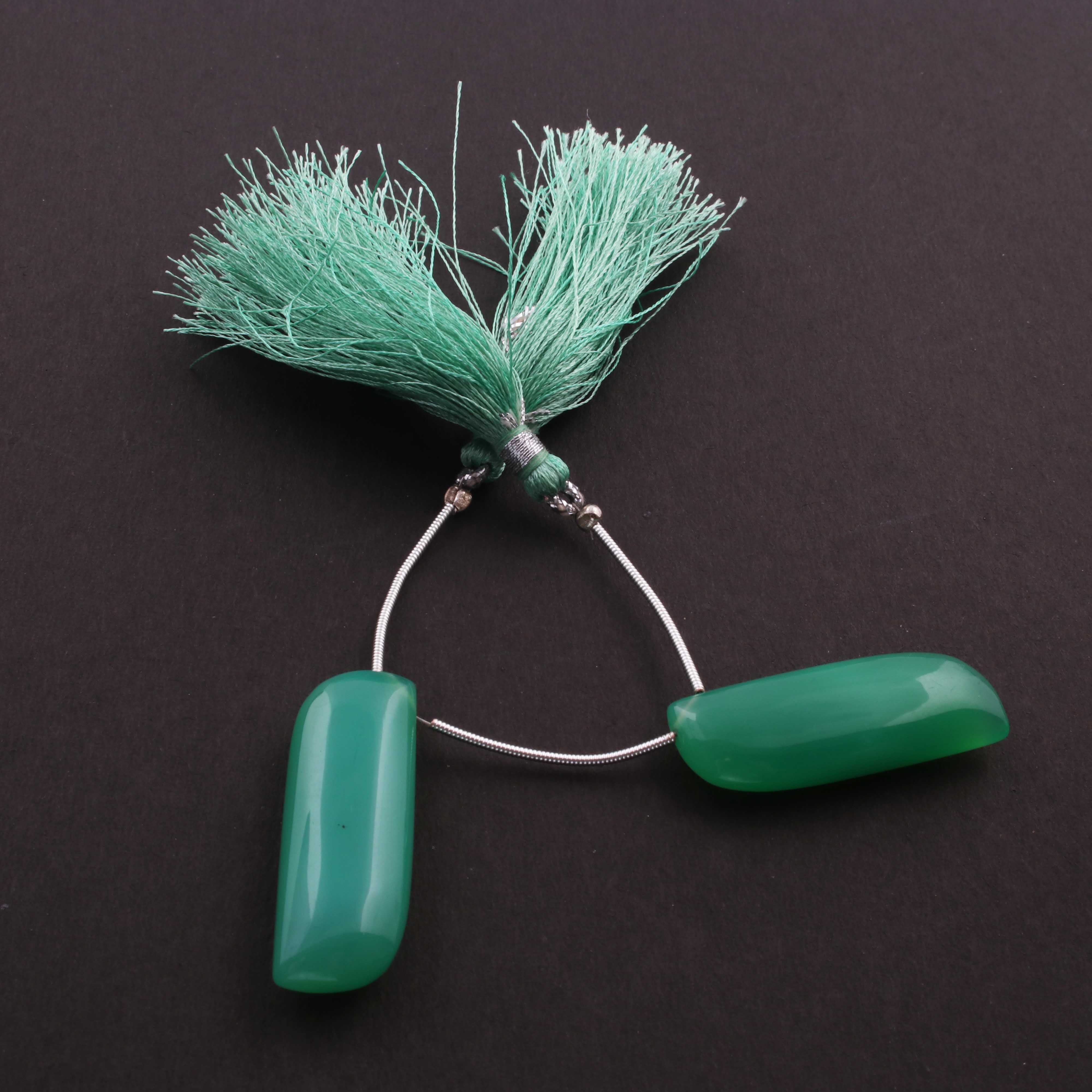 1 Strand Green Chalcedony Smooth Briolettes - Fancy Shape Briolettes - 33mmx11mm-34mmx11mm - 4 Inches BR2631