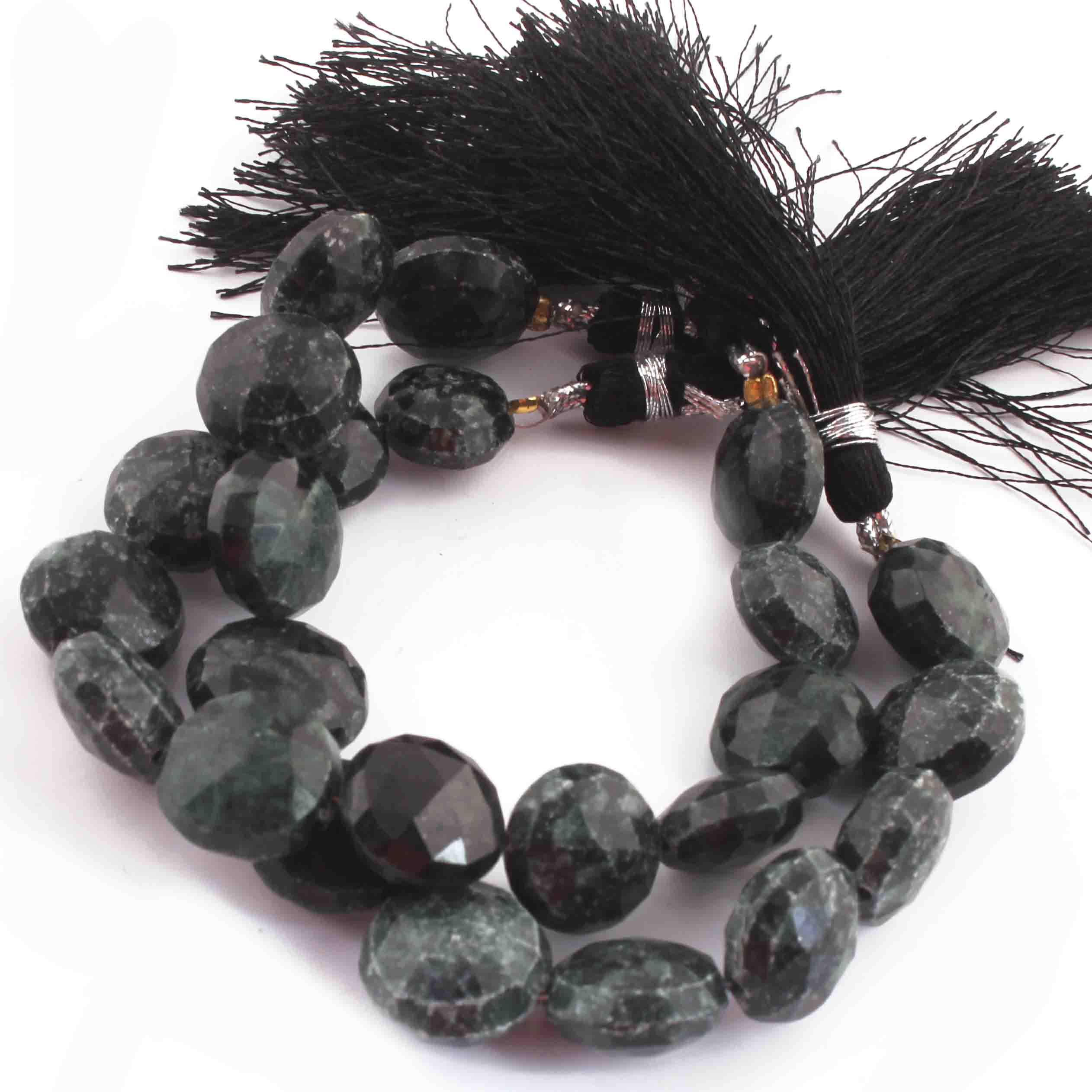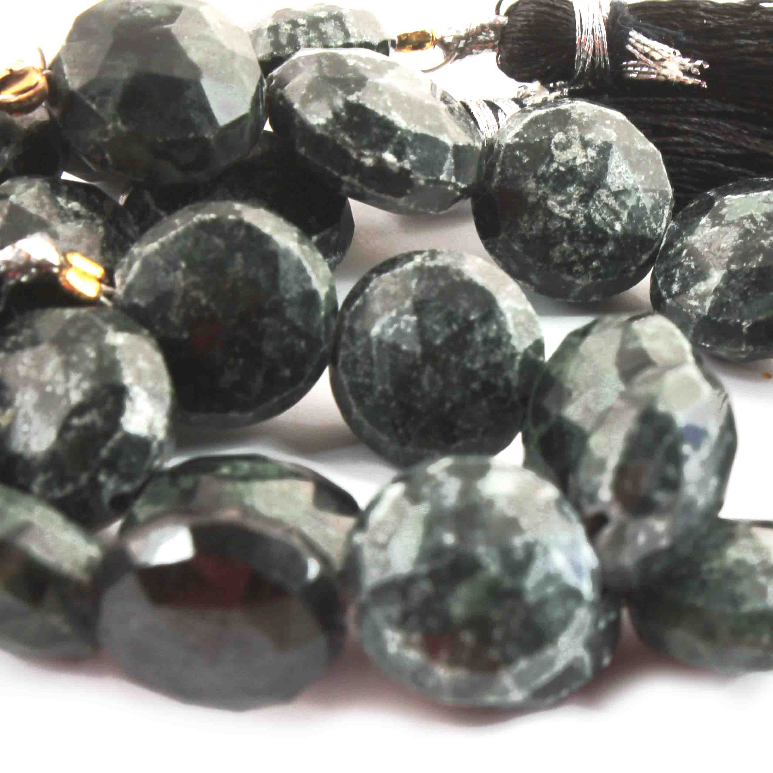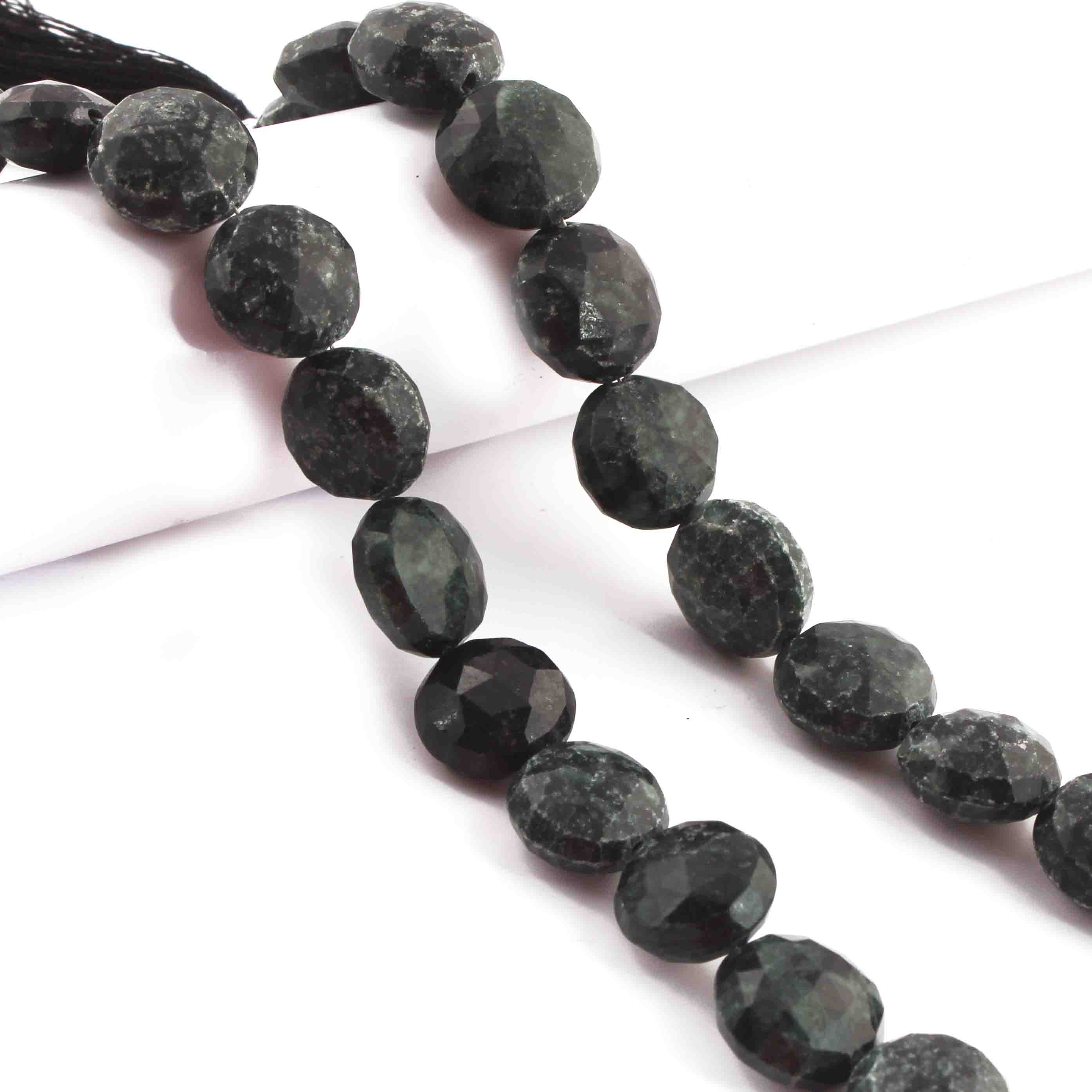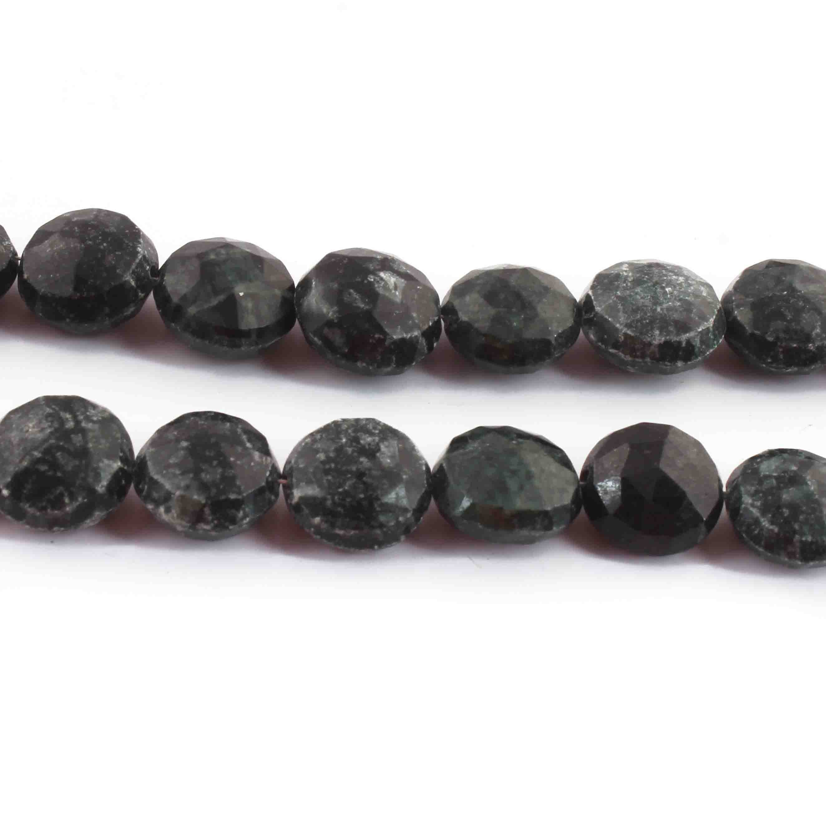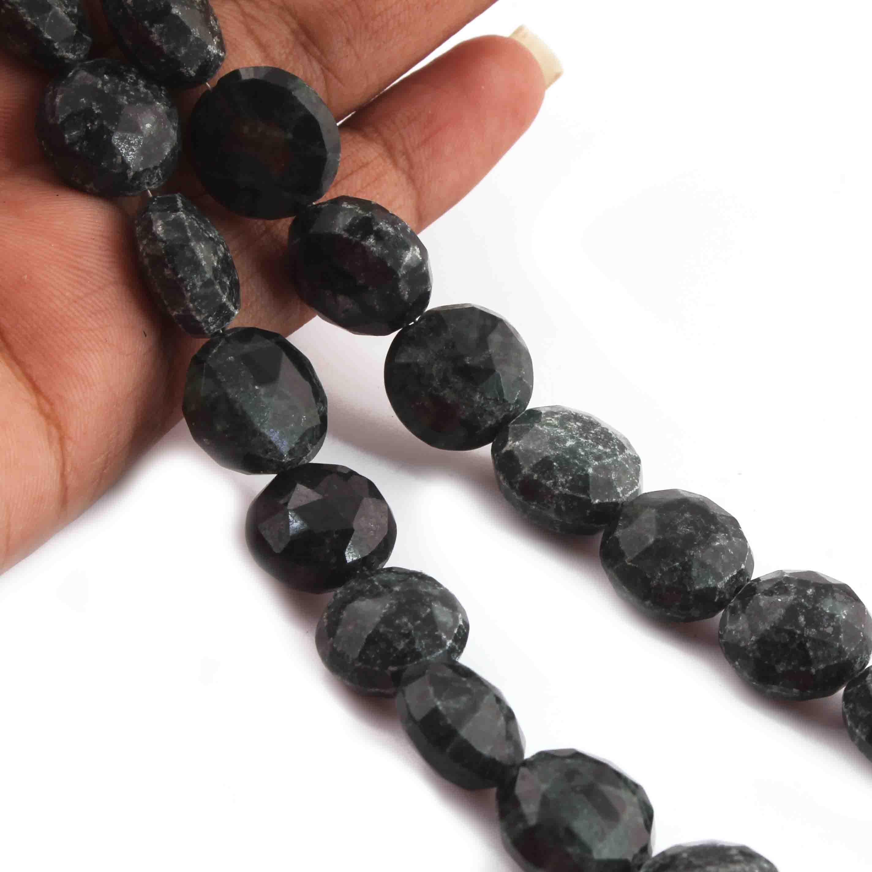1 Strand Green Nuggets Faceted Briolettes - Coin Shape Beads 14mm 6 Inches BR3885