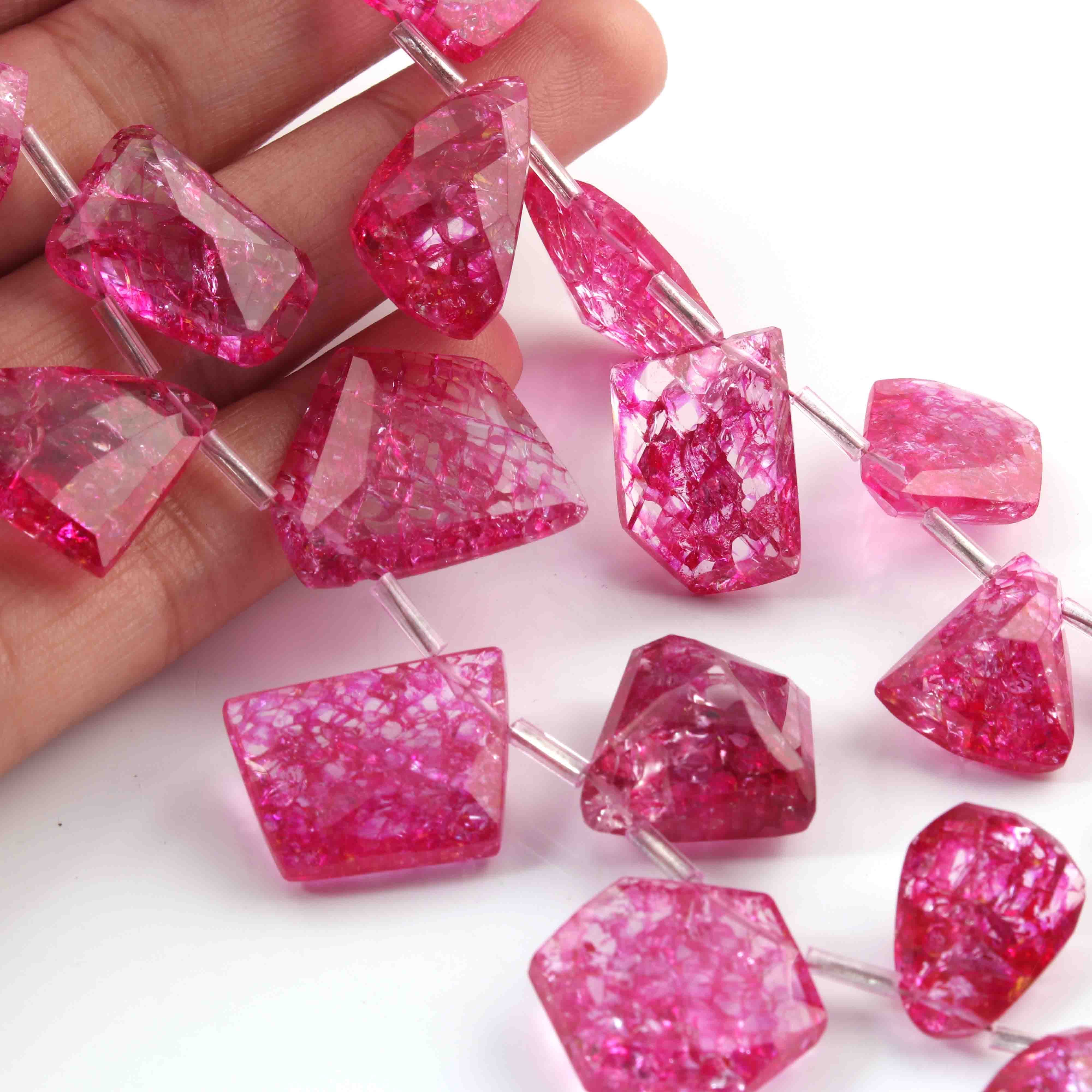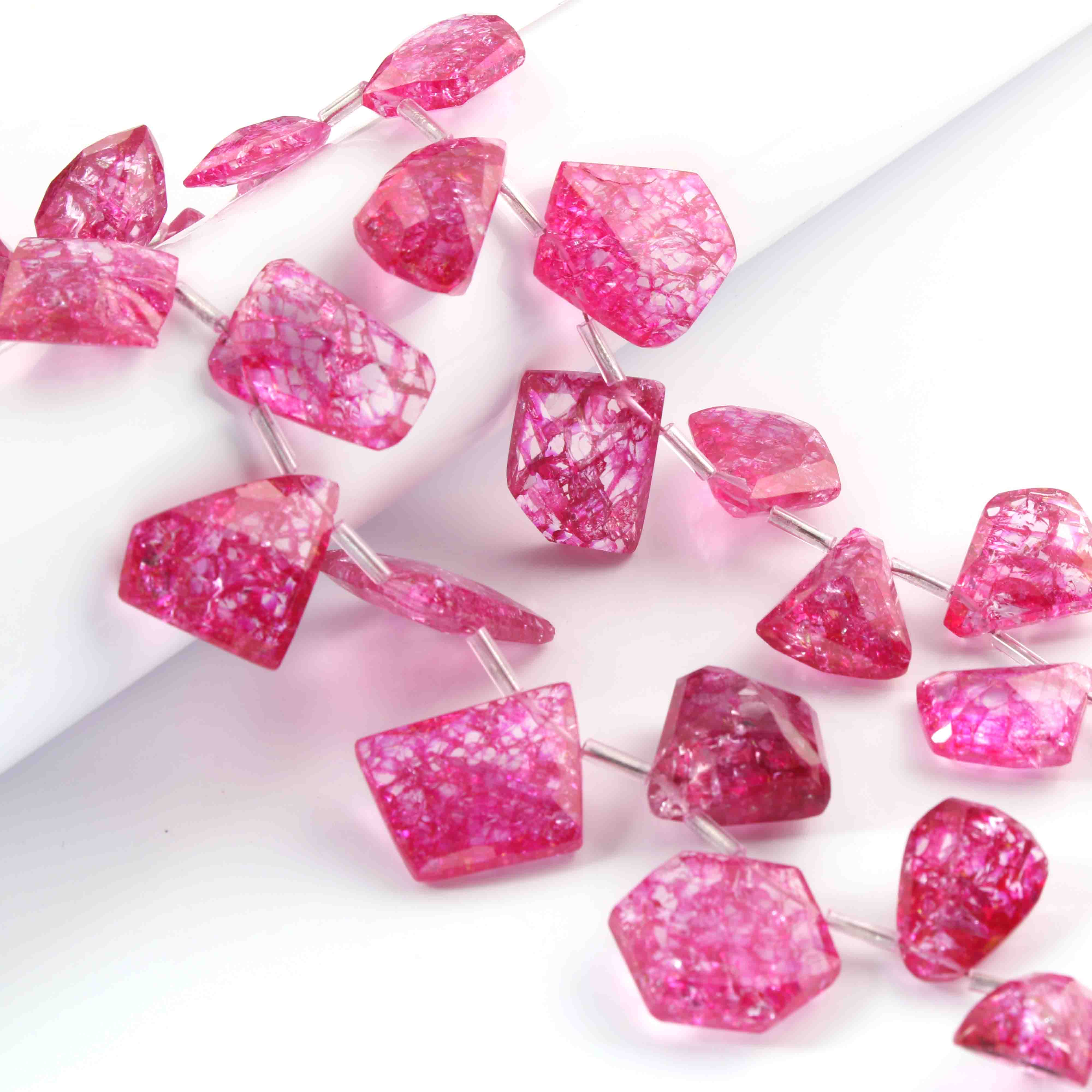 1 Strand Hot Pink Rutile Faceted Briolettes -Fancy Shape Briolettes - 13mmx12mm-24mmx23mm 8 Inches BR02234