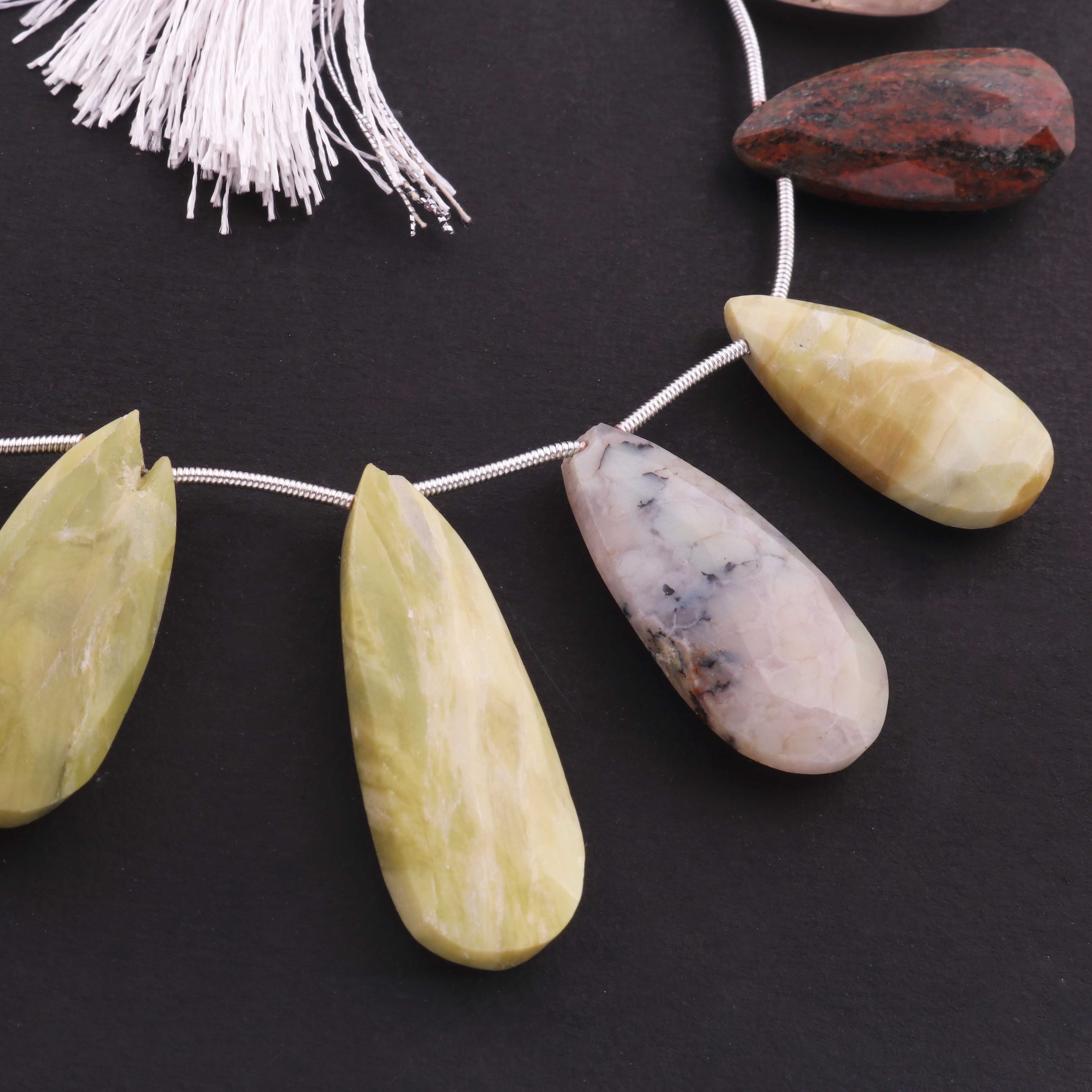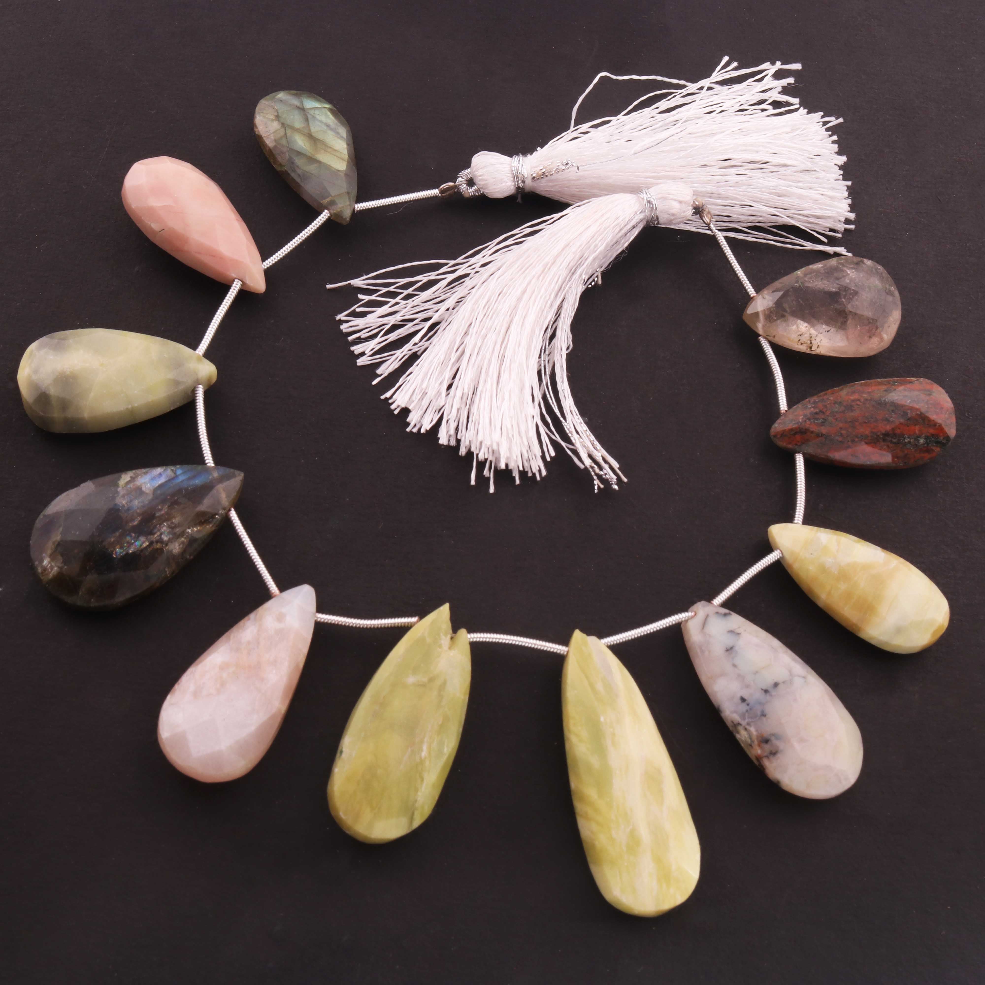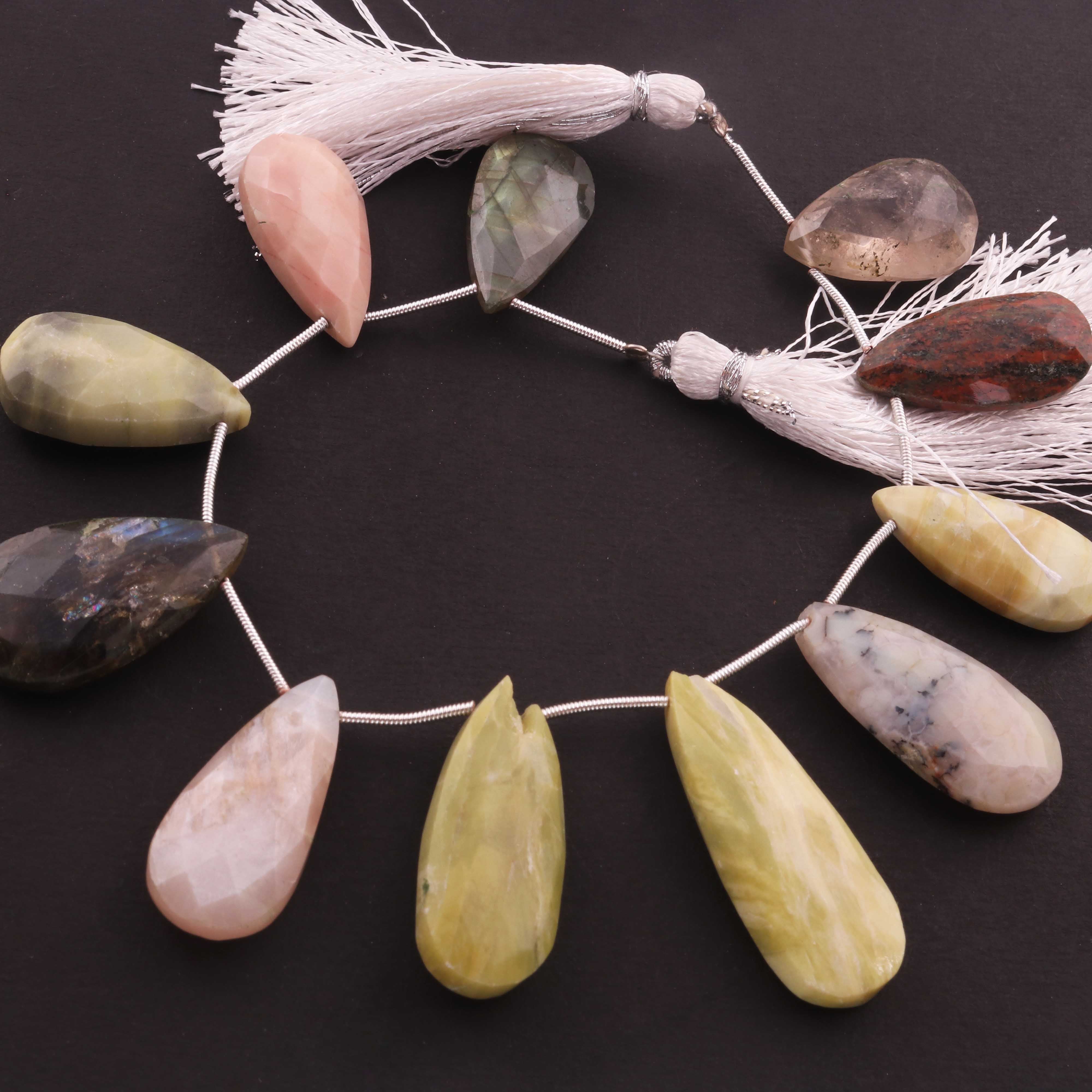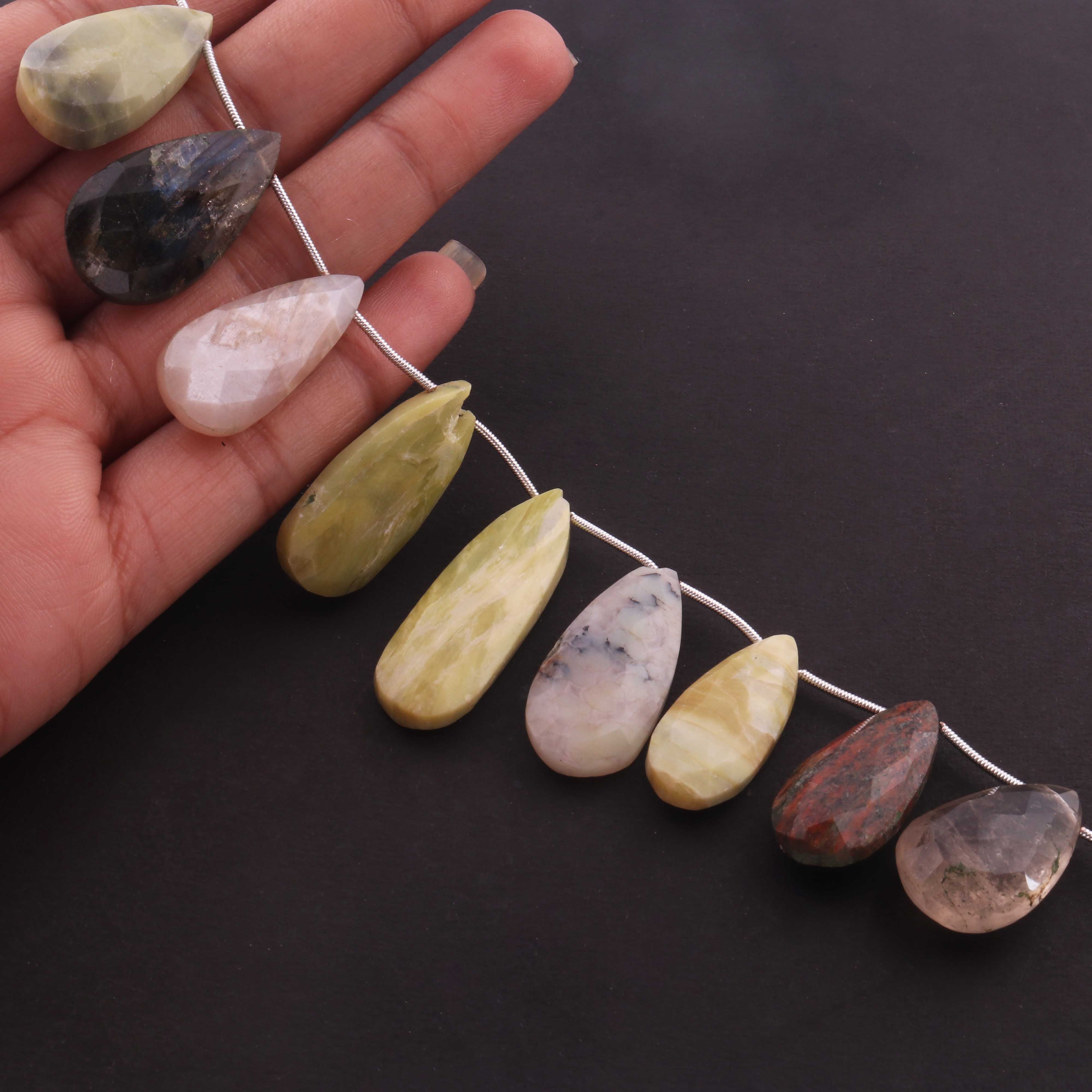 1 Strand Mix Stone Faceted Briolettes - Pear Shape Briolettes 23mmx15mm -37mmx13mm- 8.5 Inches -BR758
