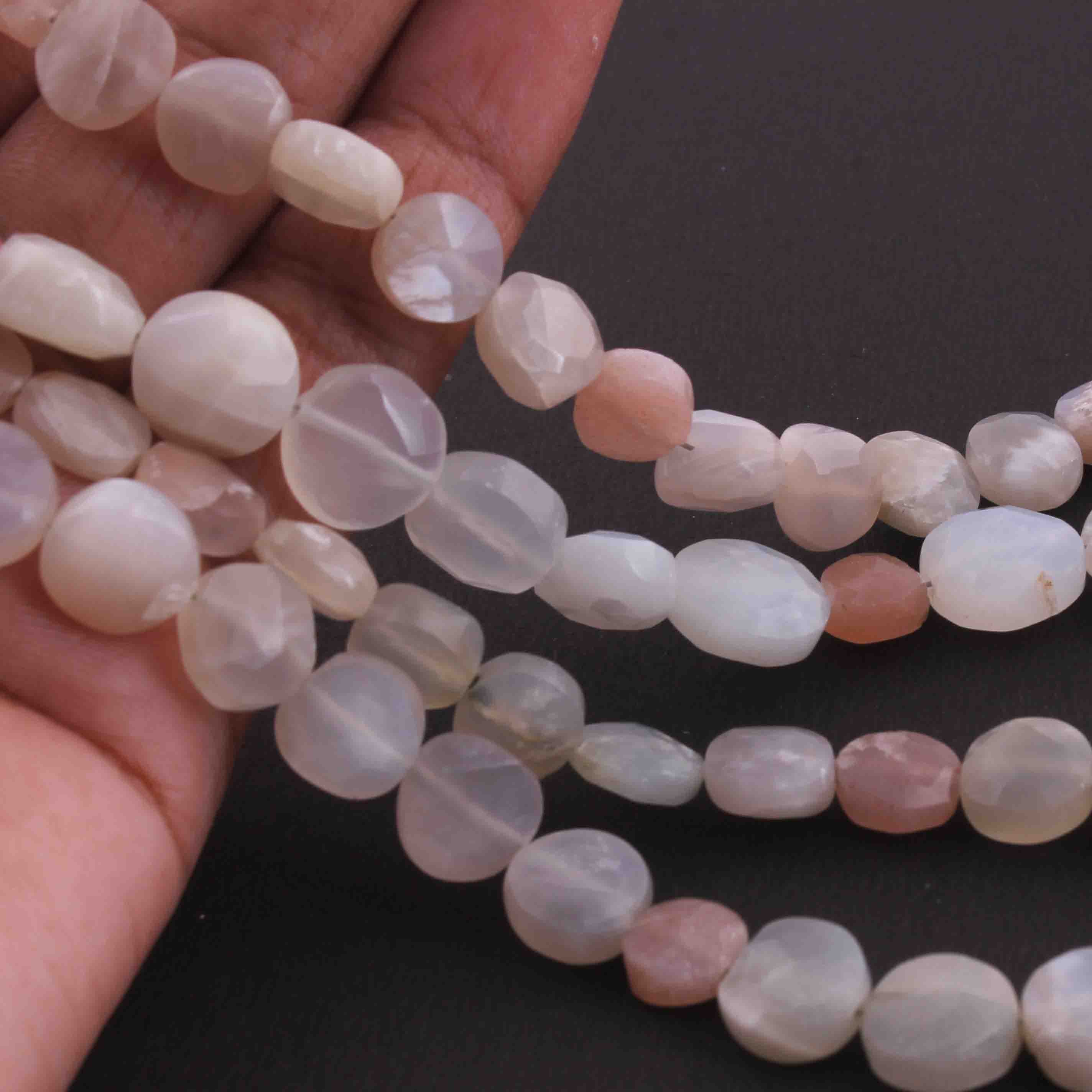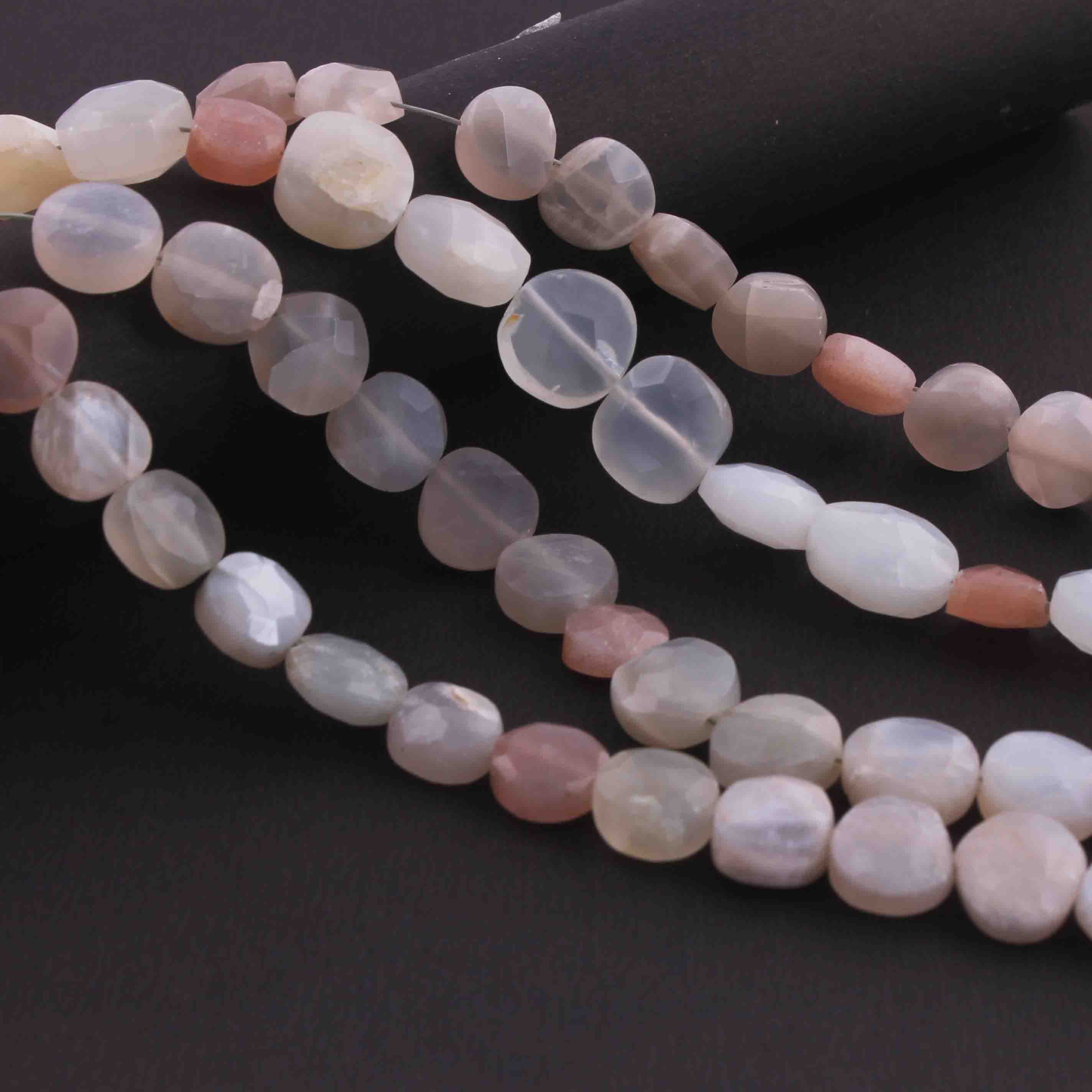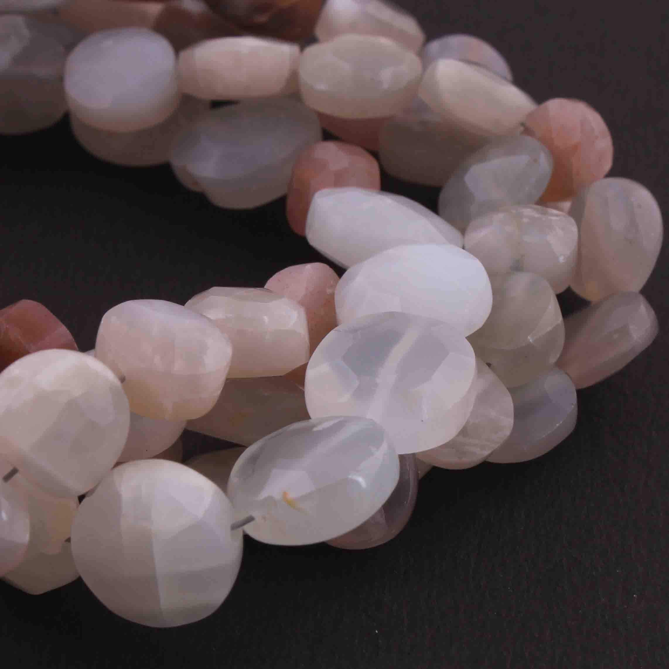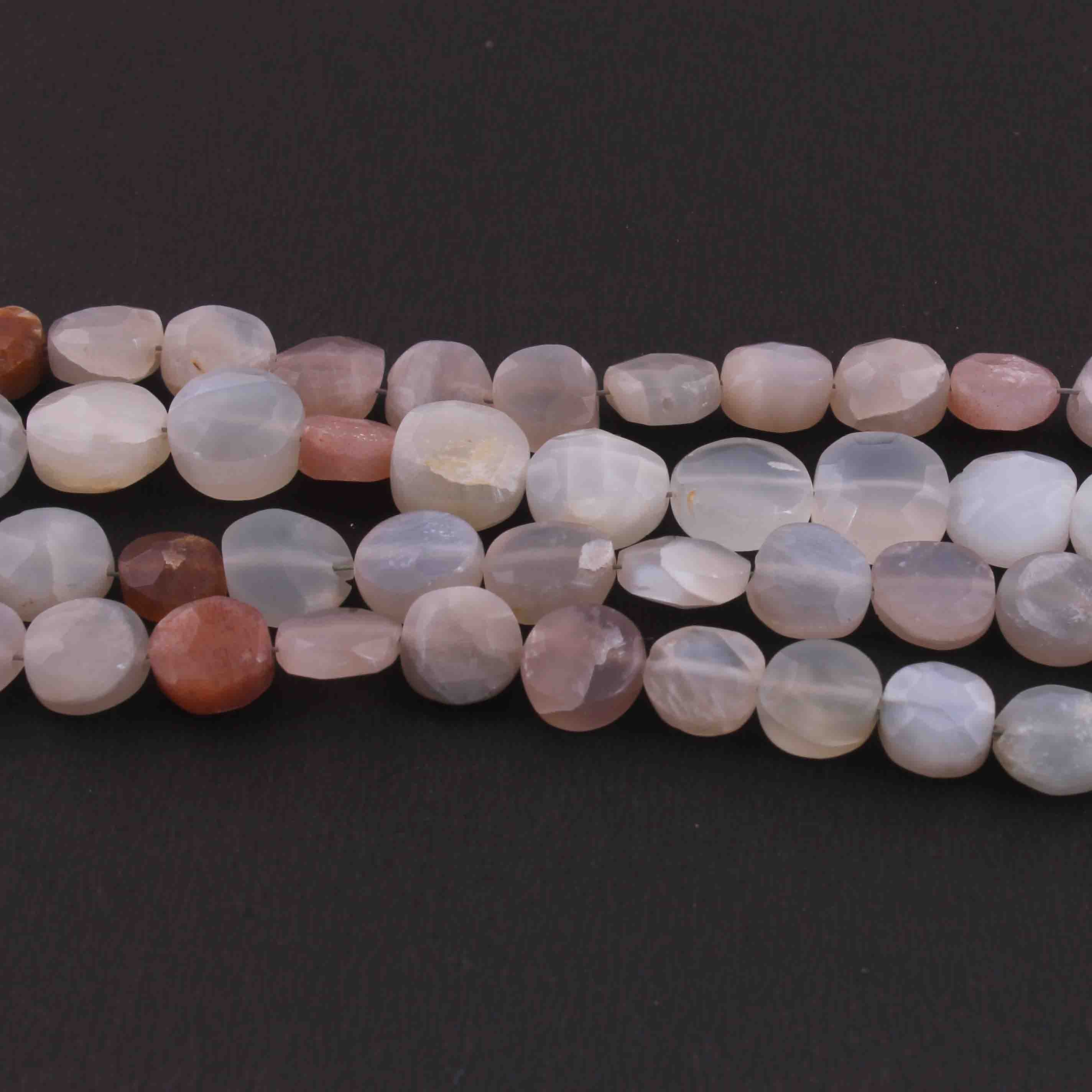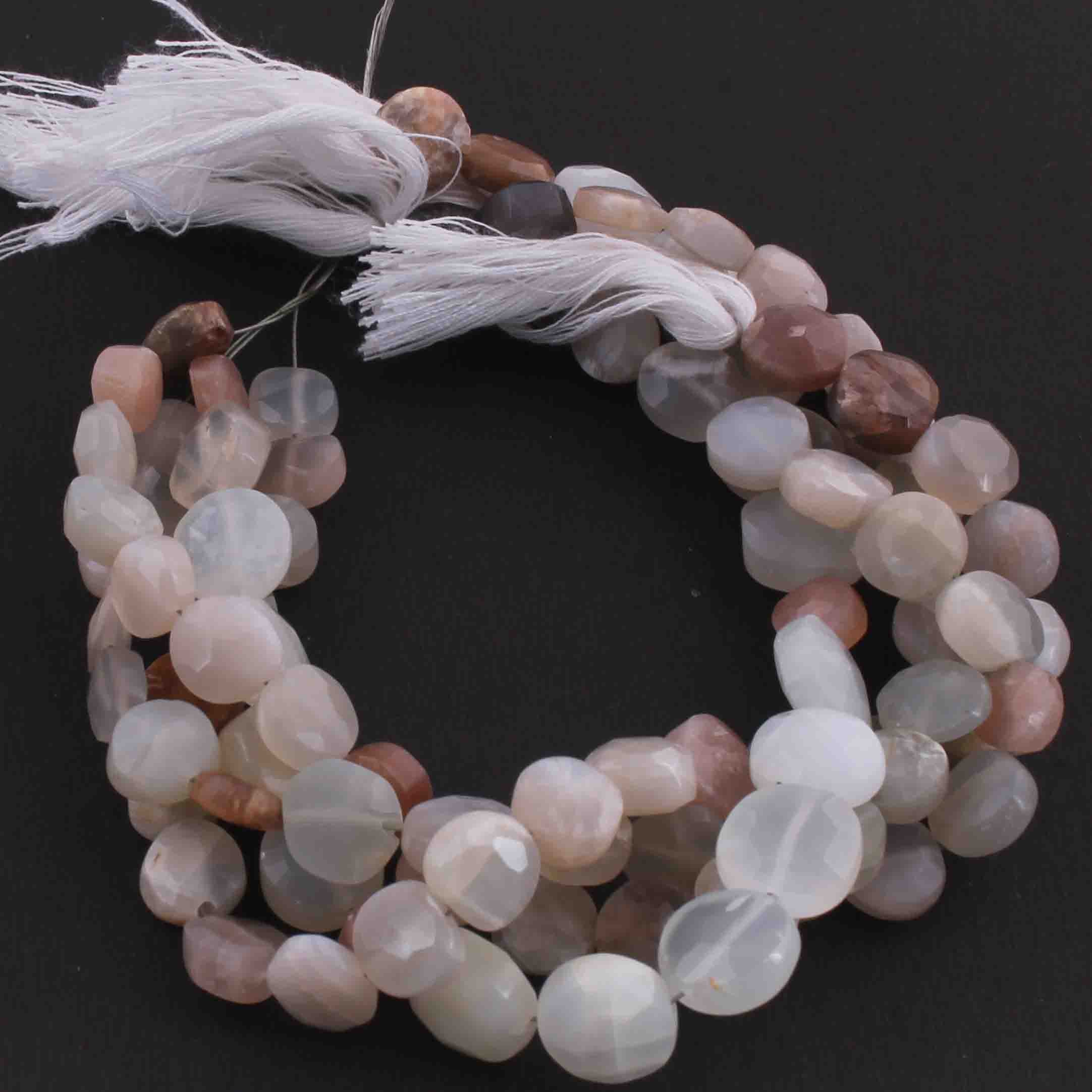 1 Strand Multi Moonstone Faceted Briolettes - Coin Shape Briolette , Jewelry Making Supplies 8mm 7 Inches BR3979