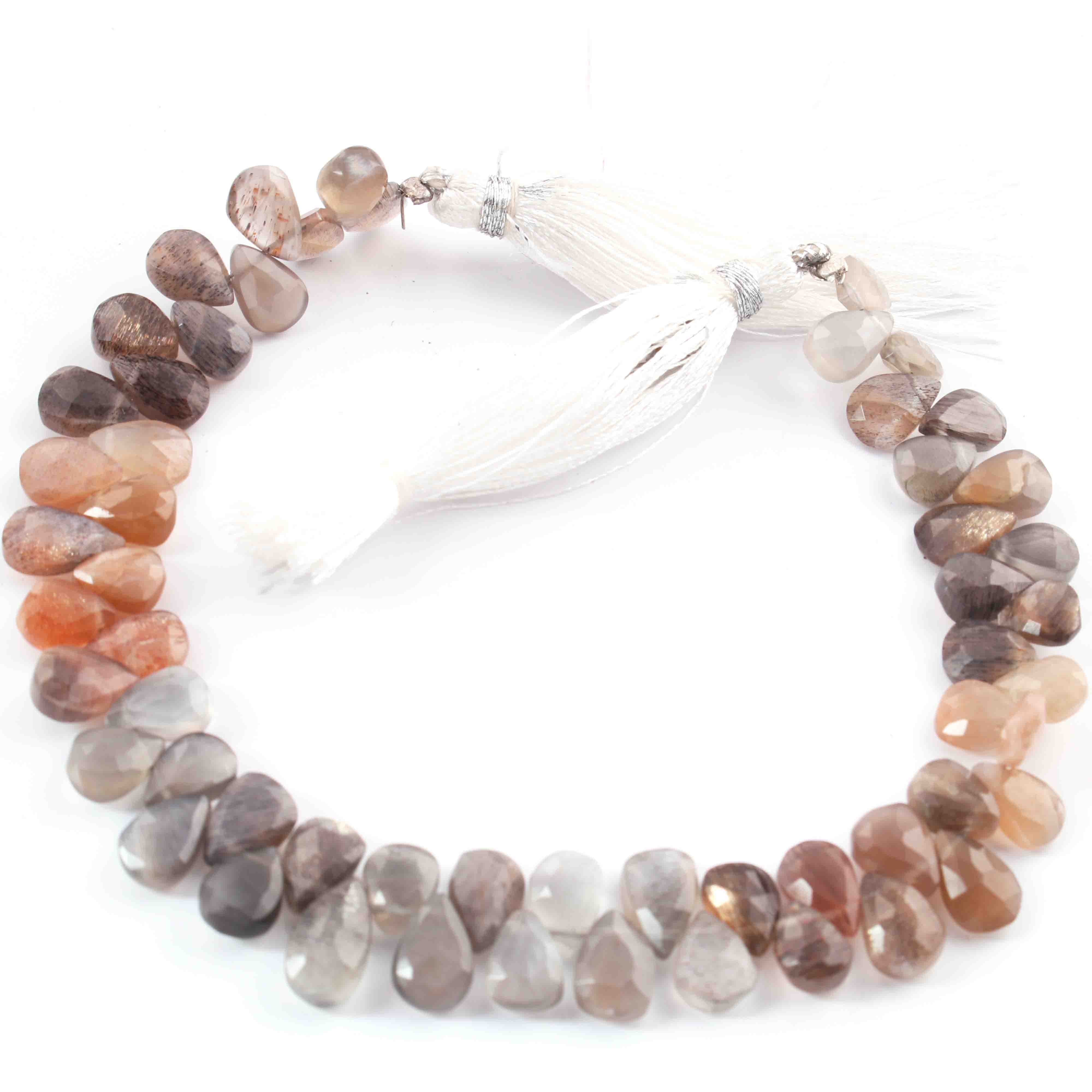 1  Strand Multi Moonstone Faceted Briolettes -Pear Shape  Briolettes  7mmx6mm-8mmx6mm- 8 Inches BR02296