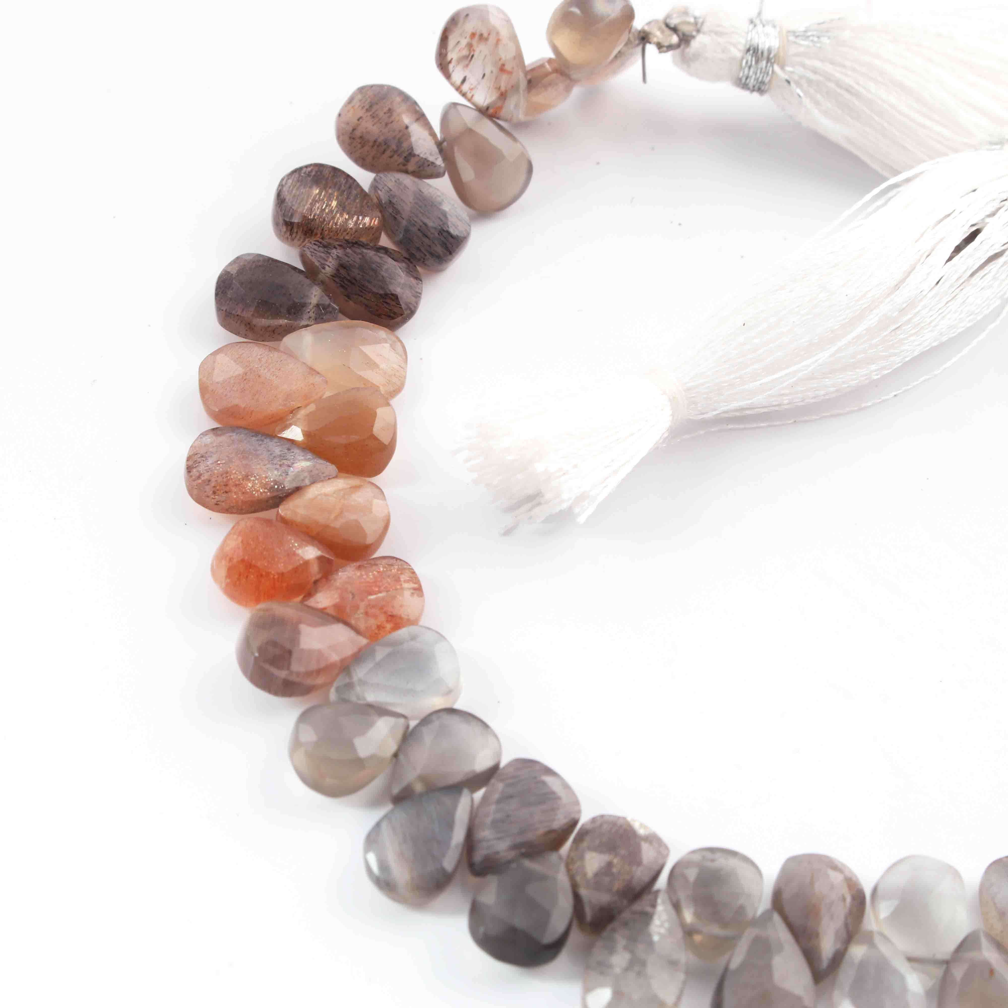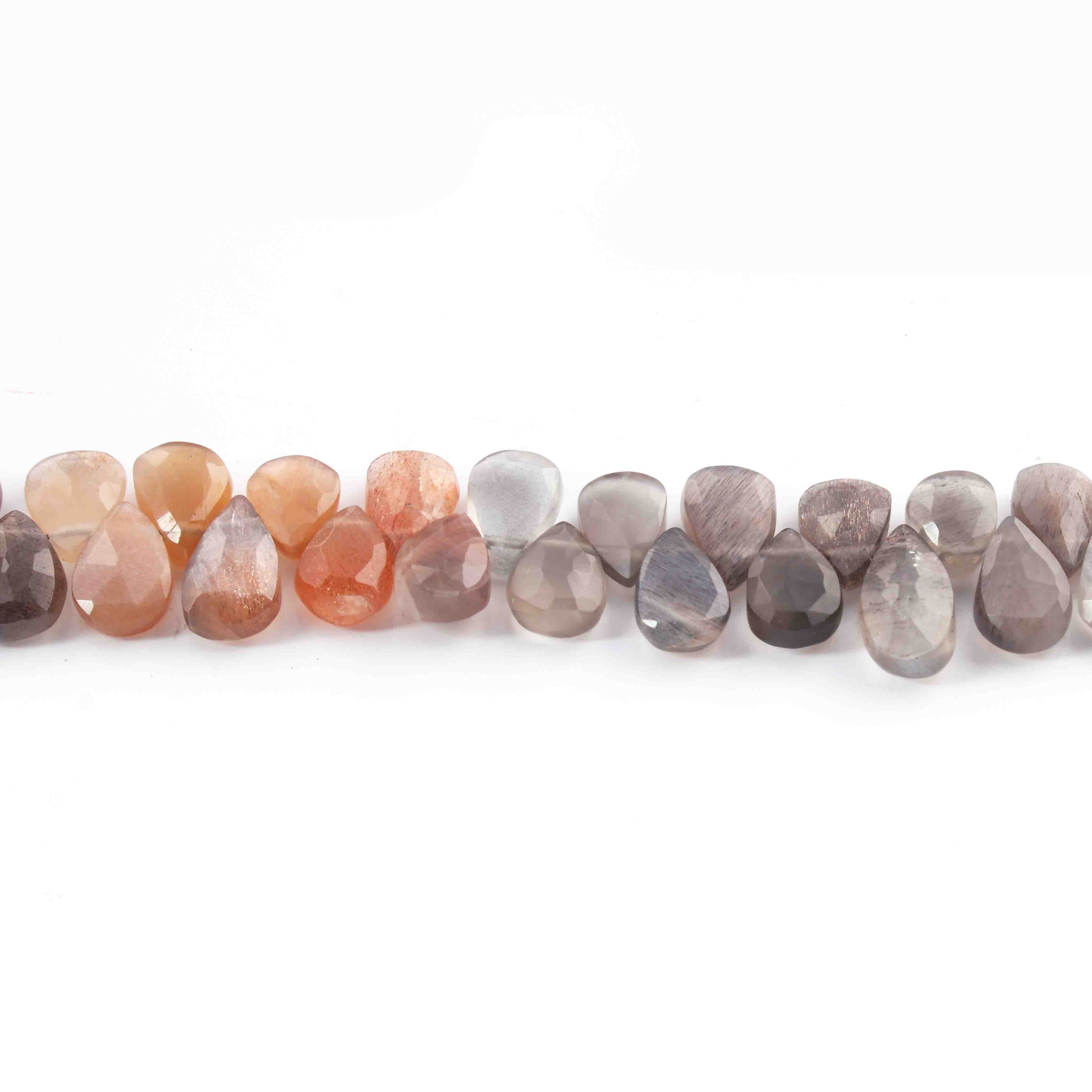 1 Strand Multi Moonstone Faceted Briolettes -Pear Shape Briolettes 7mmx6mm-8mmx6mm- 8 Inches BR02296