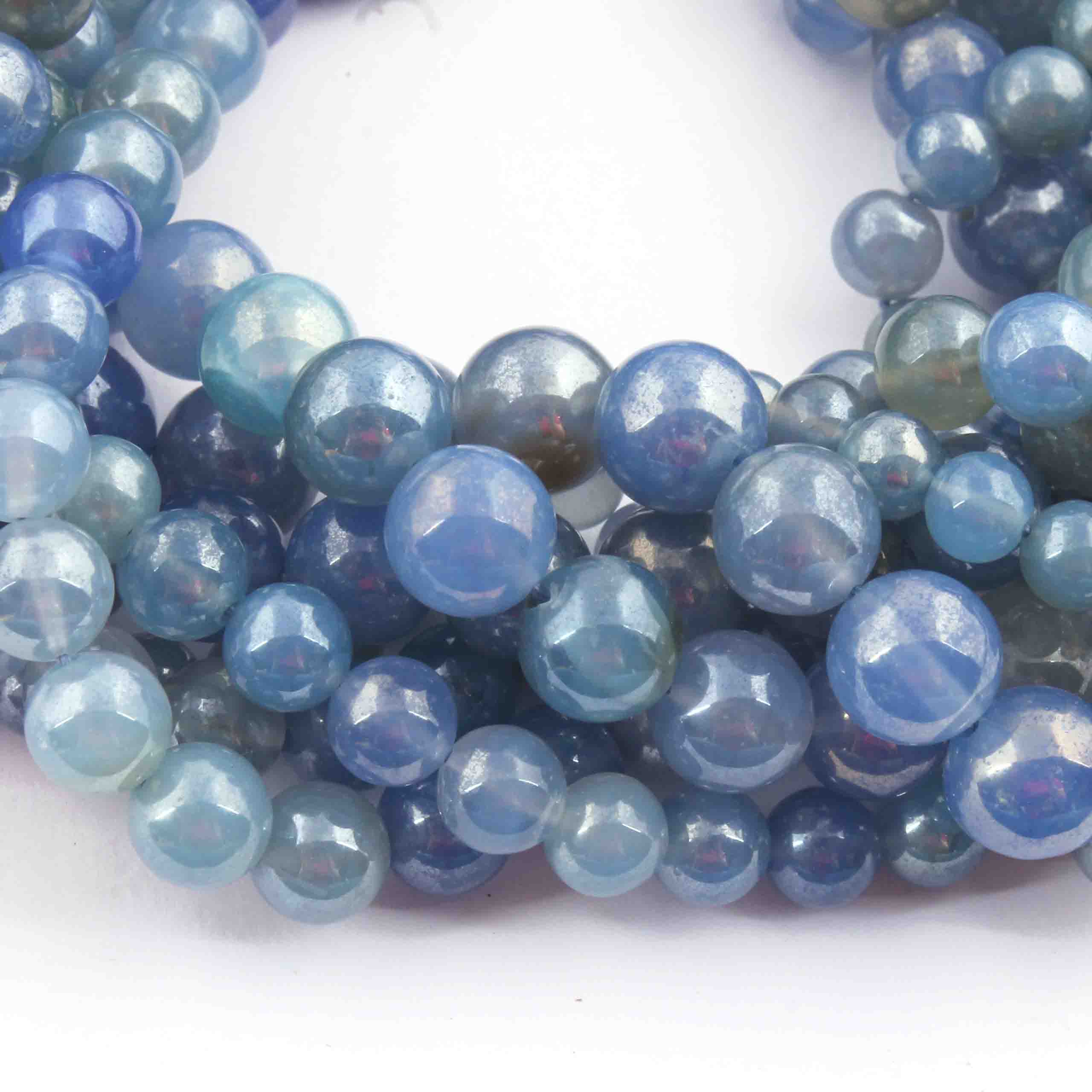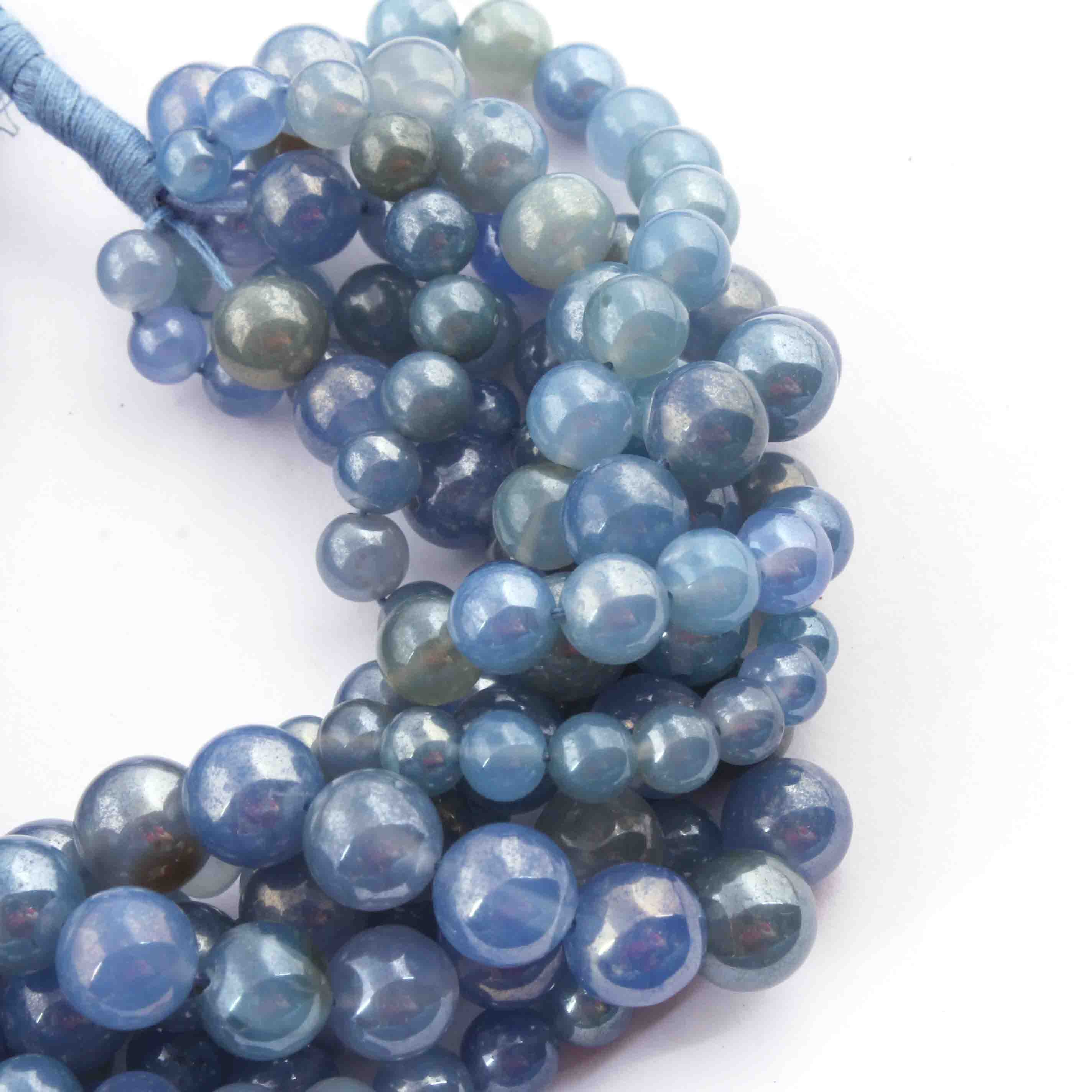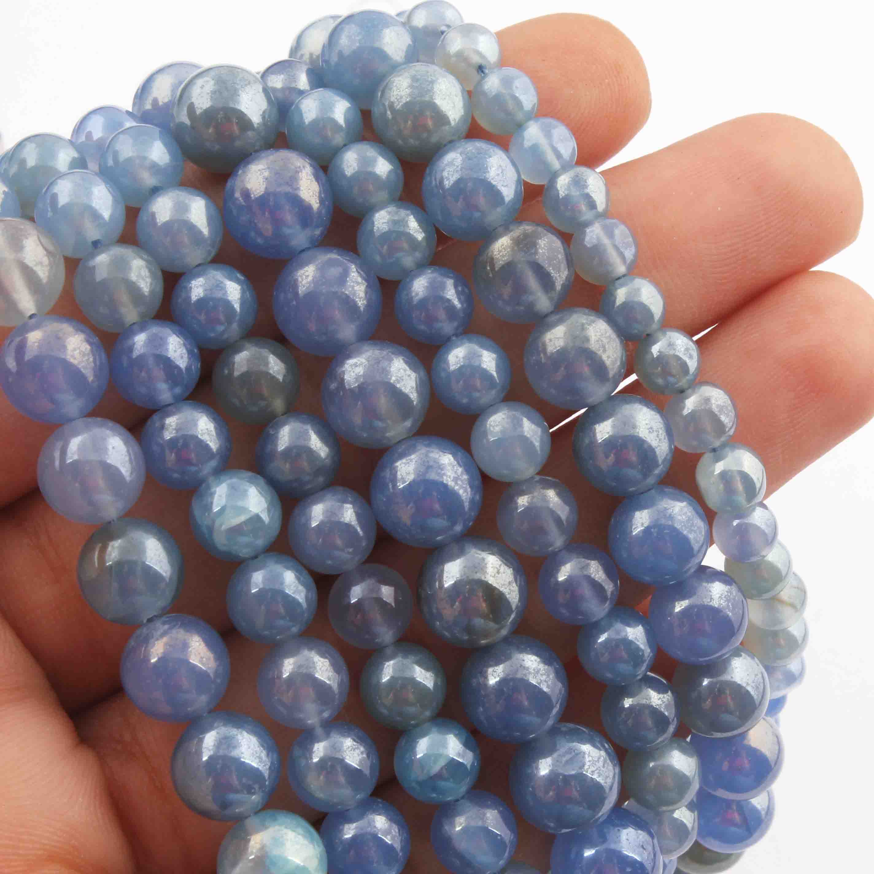 1 Strand Natural Blue Chalcedony Silver Coated Smooth Rondelles Beads 6mm-8mm 8 Inches BR3611