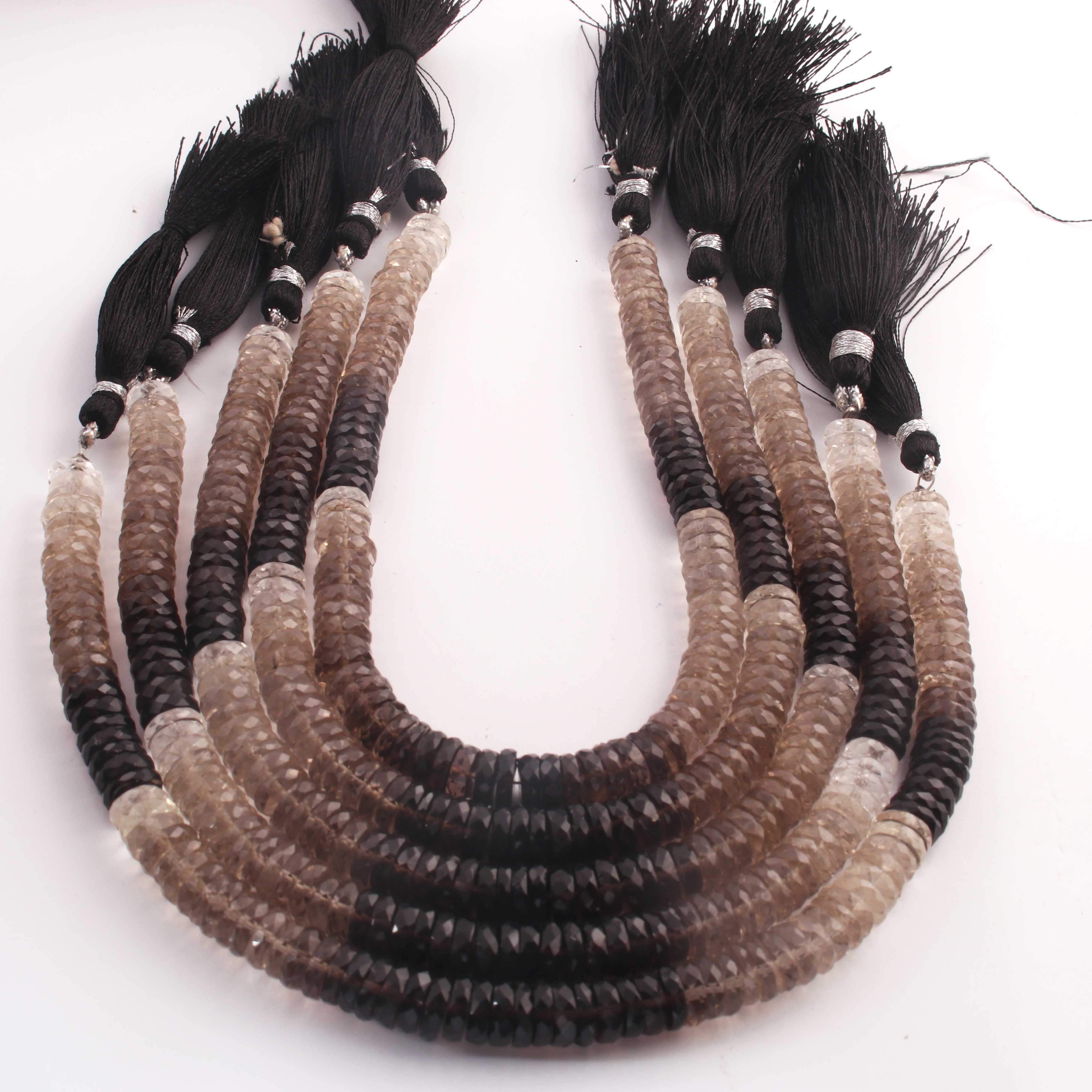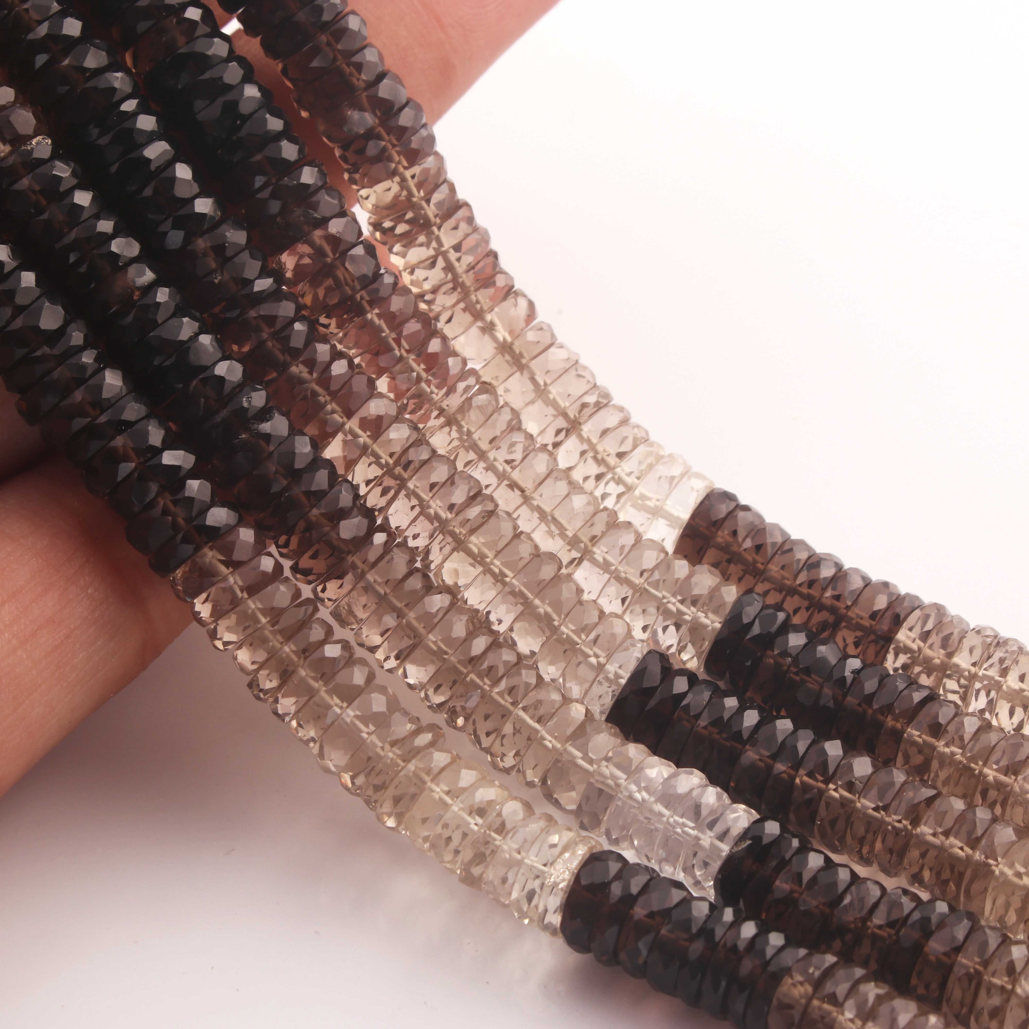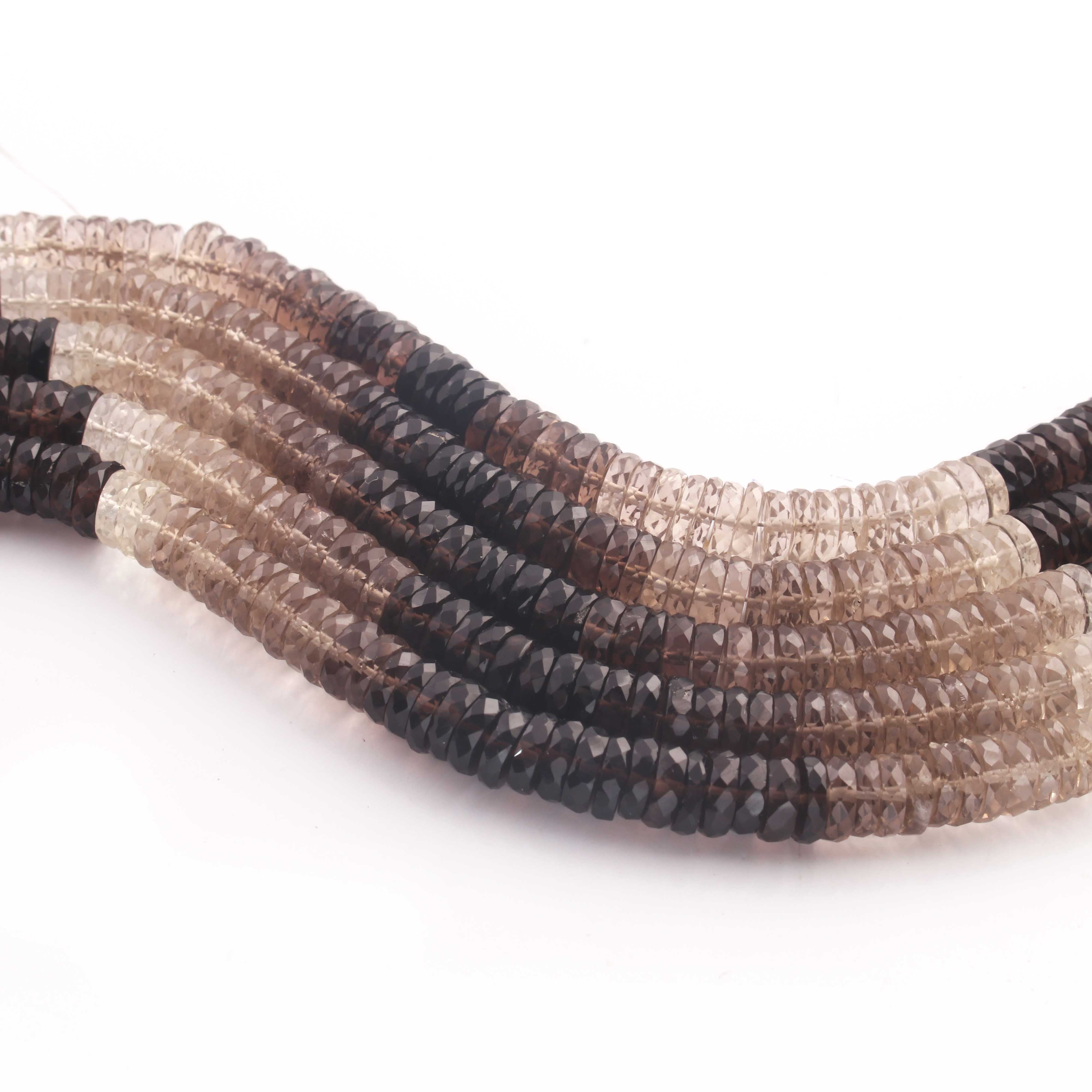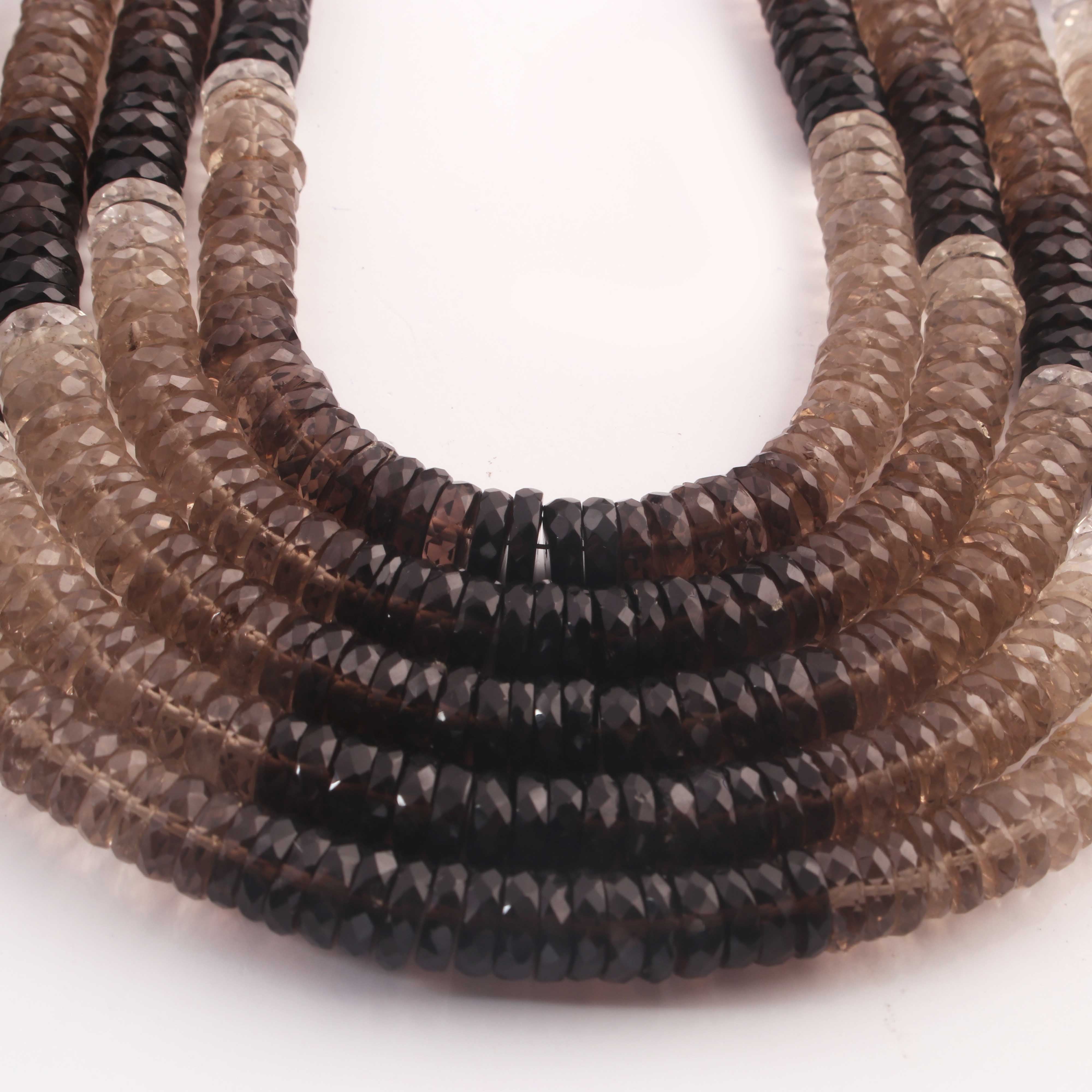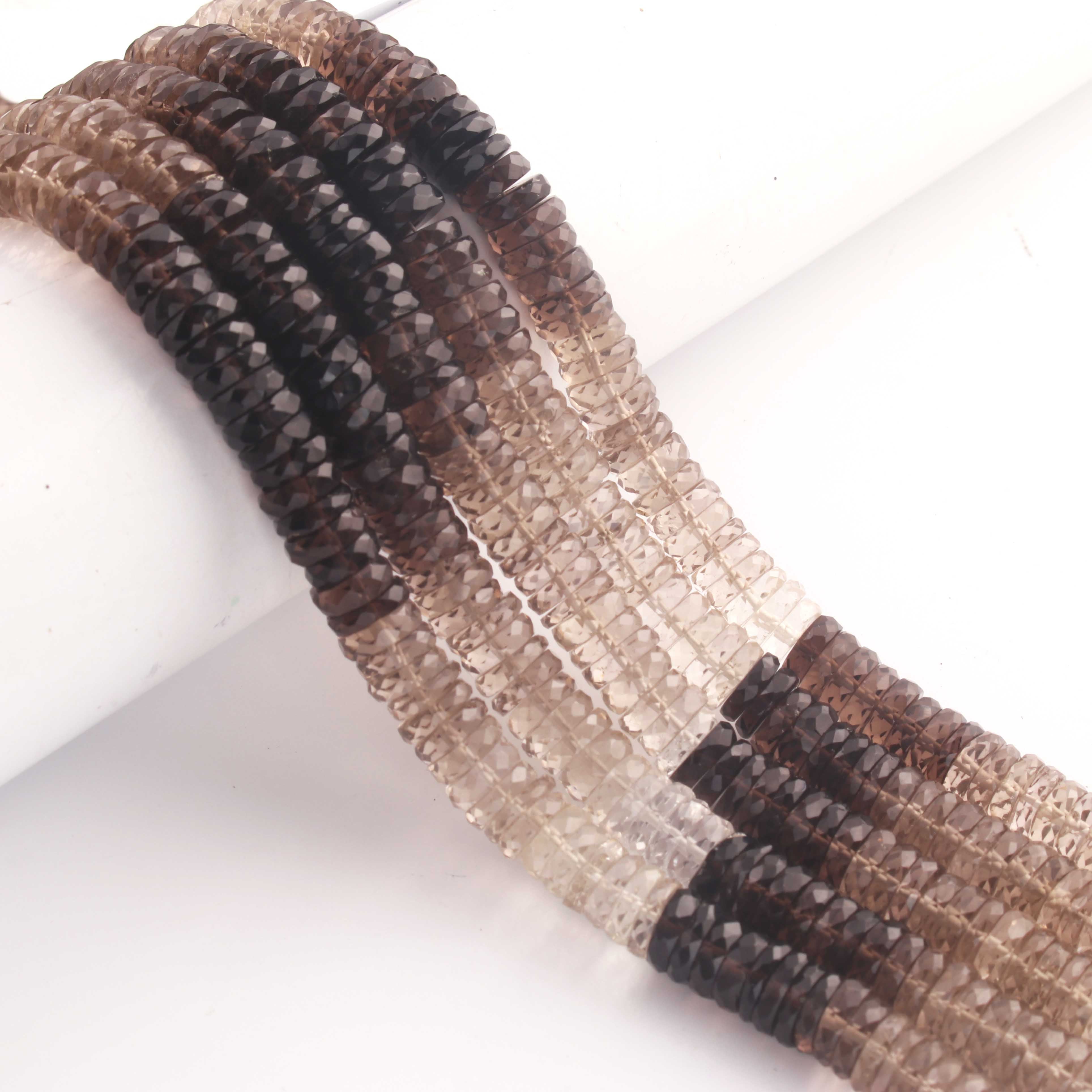 1 Strand Natural Shaded Smoky Quartz Faceted Heishi Tyre Shape Gemstone Beads, Shaded Smoky Quartz Tyre Wheel Rondelles Beads, 7mm 8 Inches BR02891