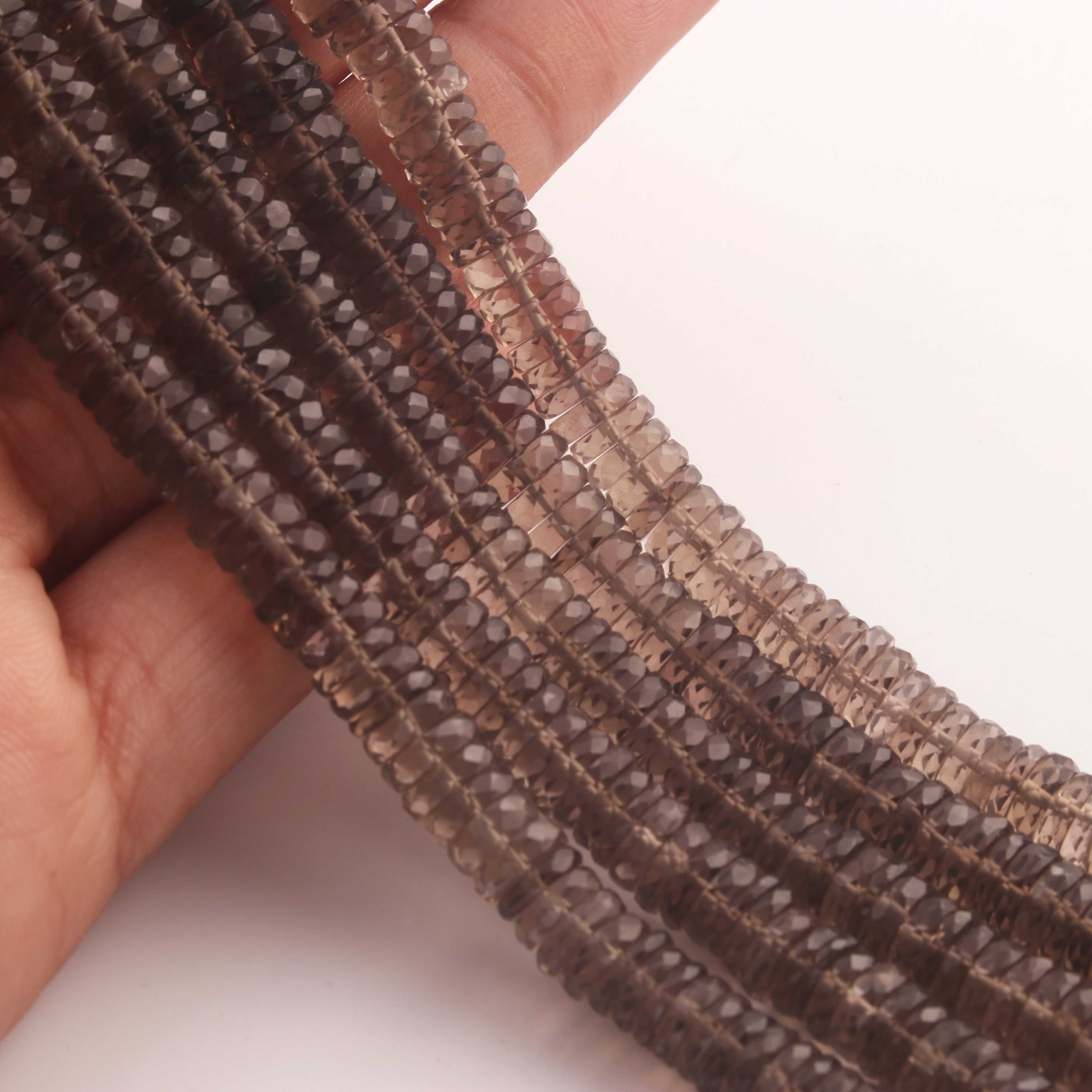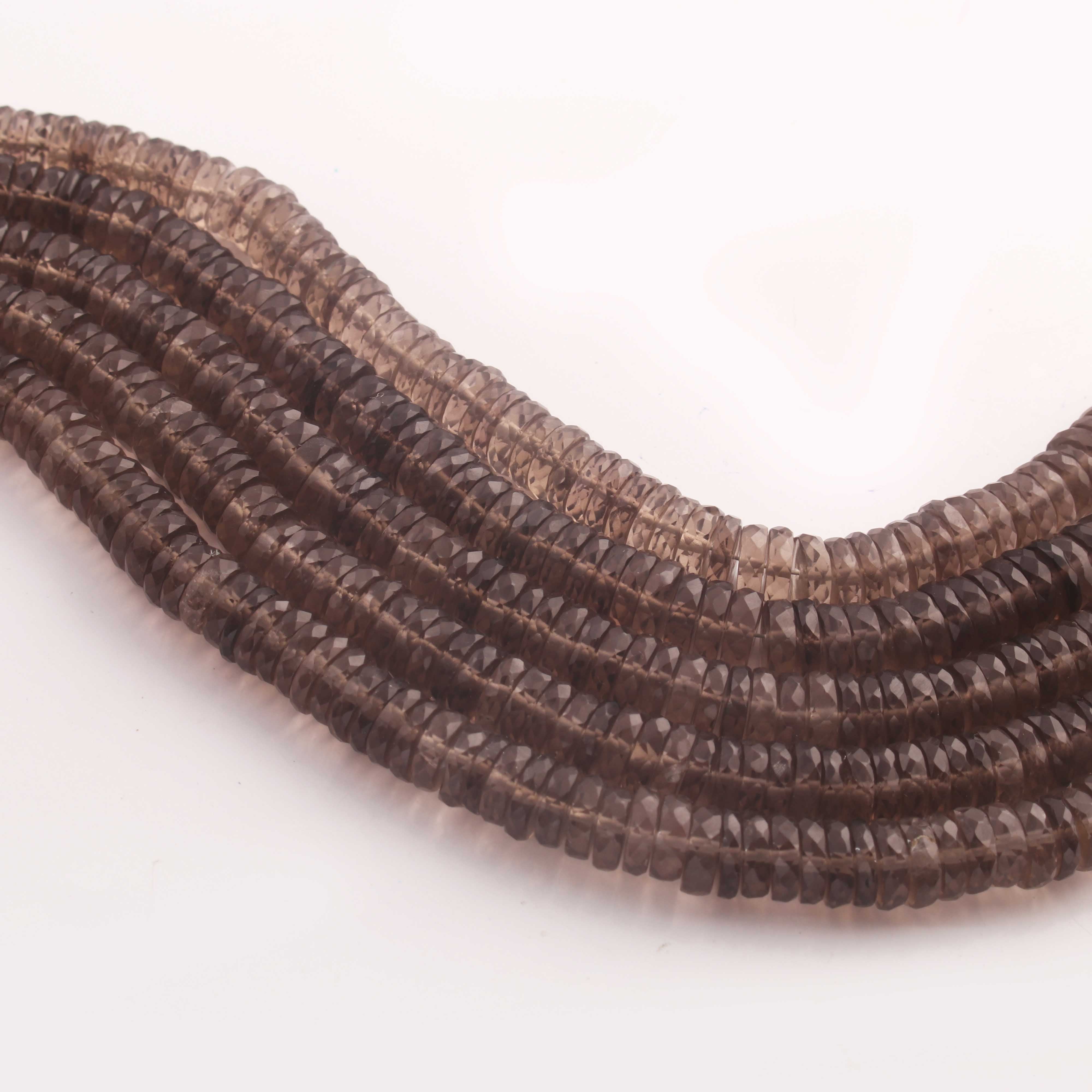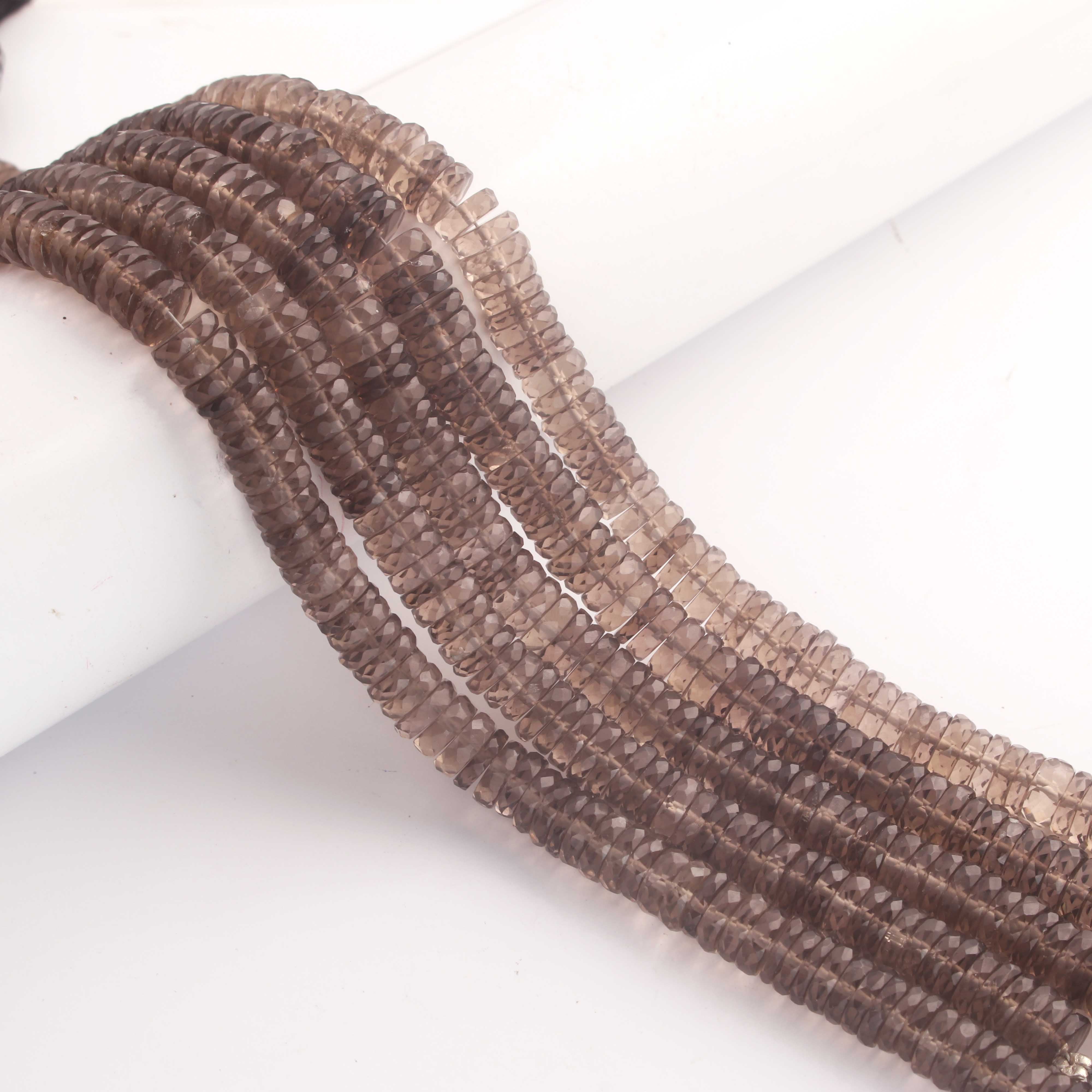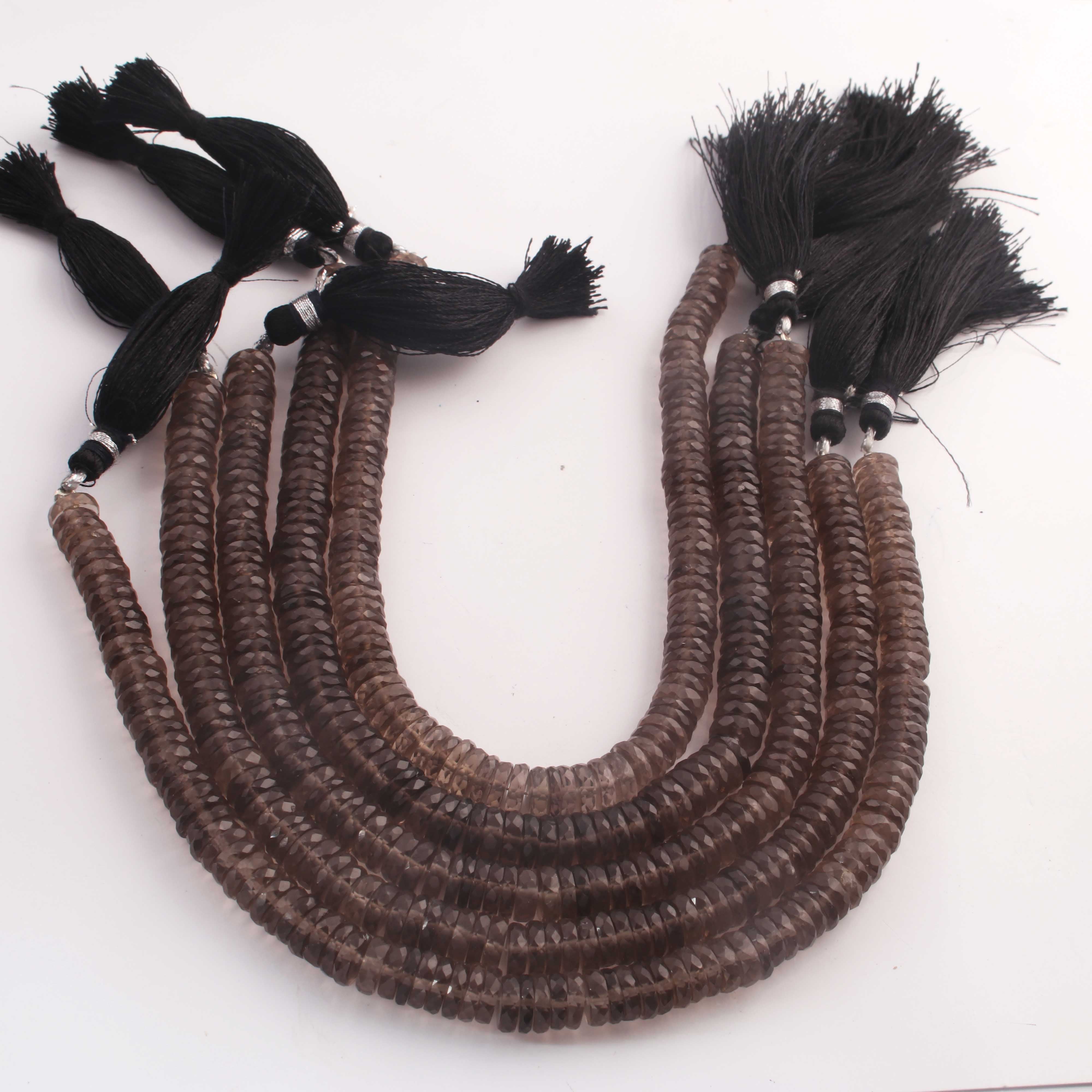 1 Strand Natural Smoky Quartz Faceted Heishi Tyre Shape Gemstone Beads, Smoky Quartz Tyre Wheel Rondelles Beads, 7mm 8 Inches BR02893