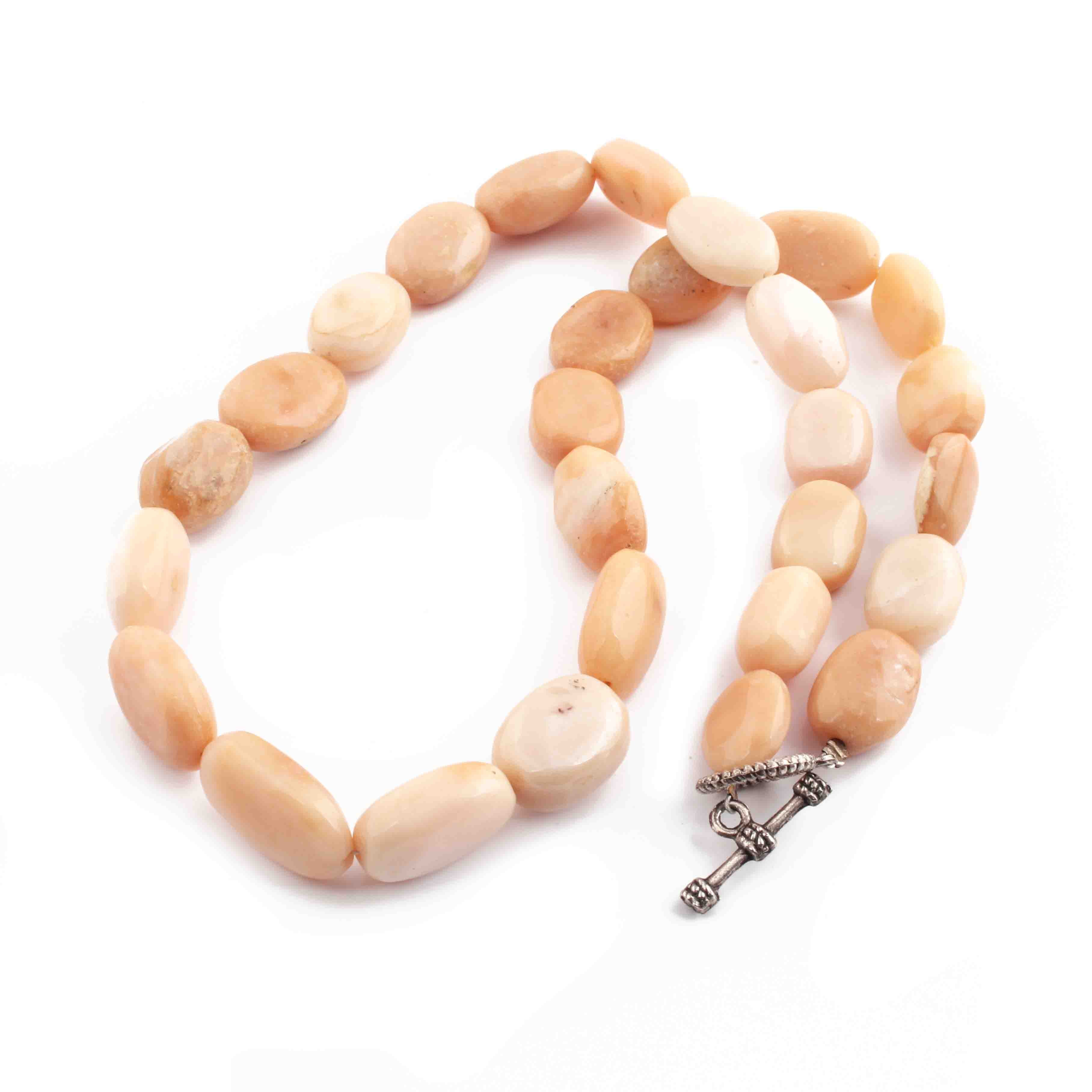 1 Strand Peach MoonStone Opal Smooth Necklace - Oval Shape -16mm-12mm- 16.5 Inches BR3346