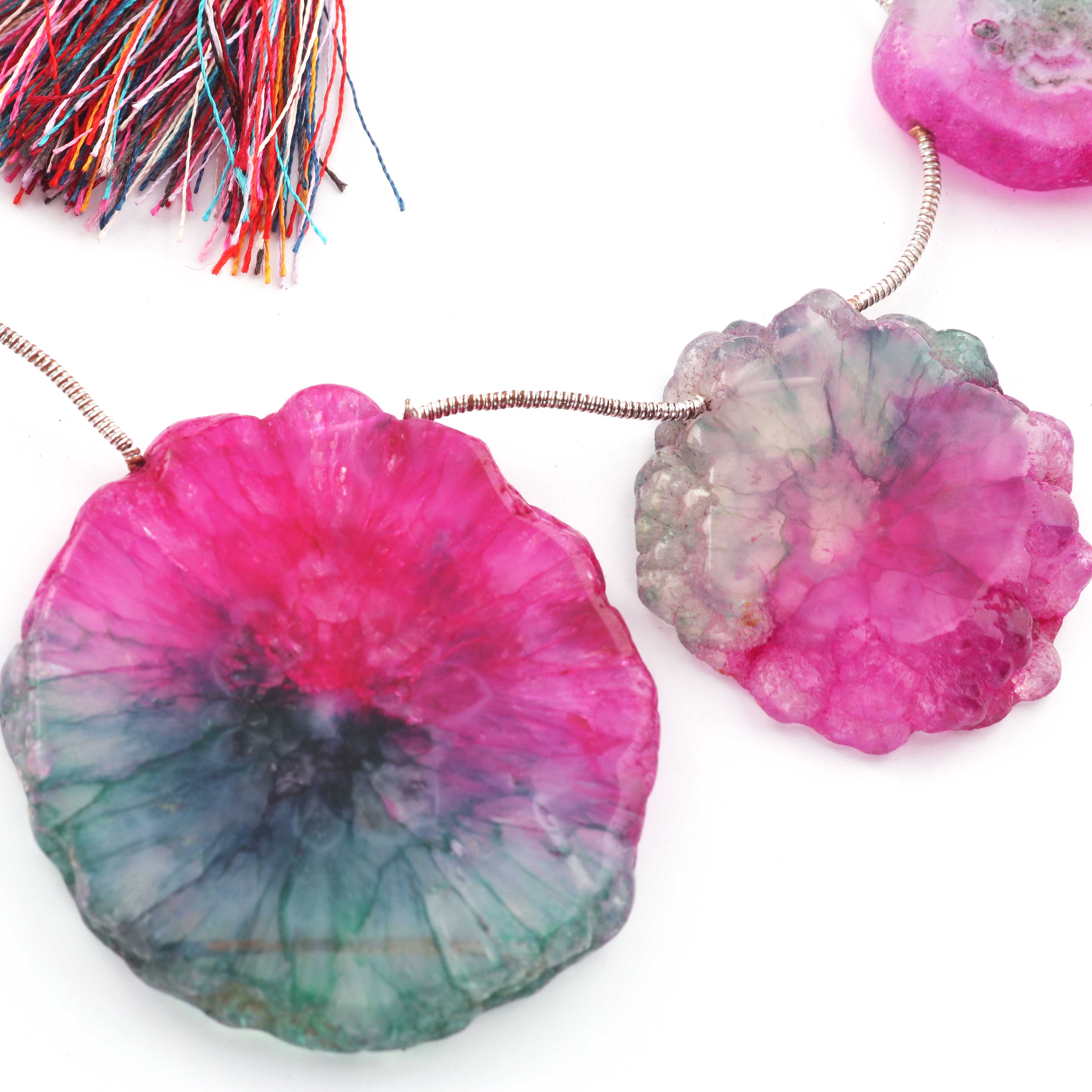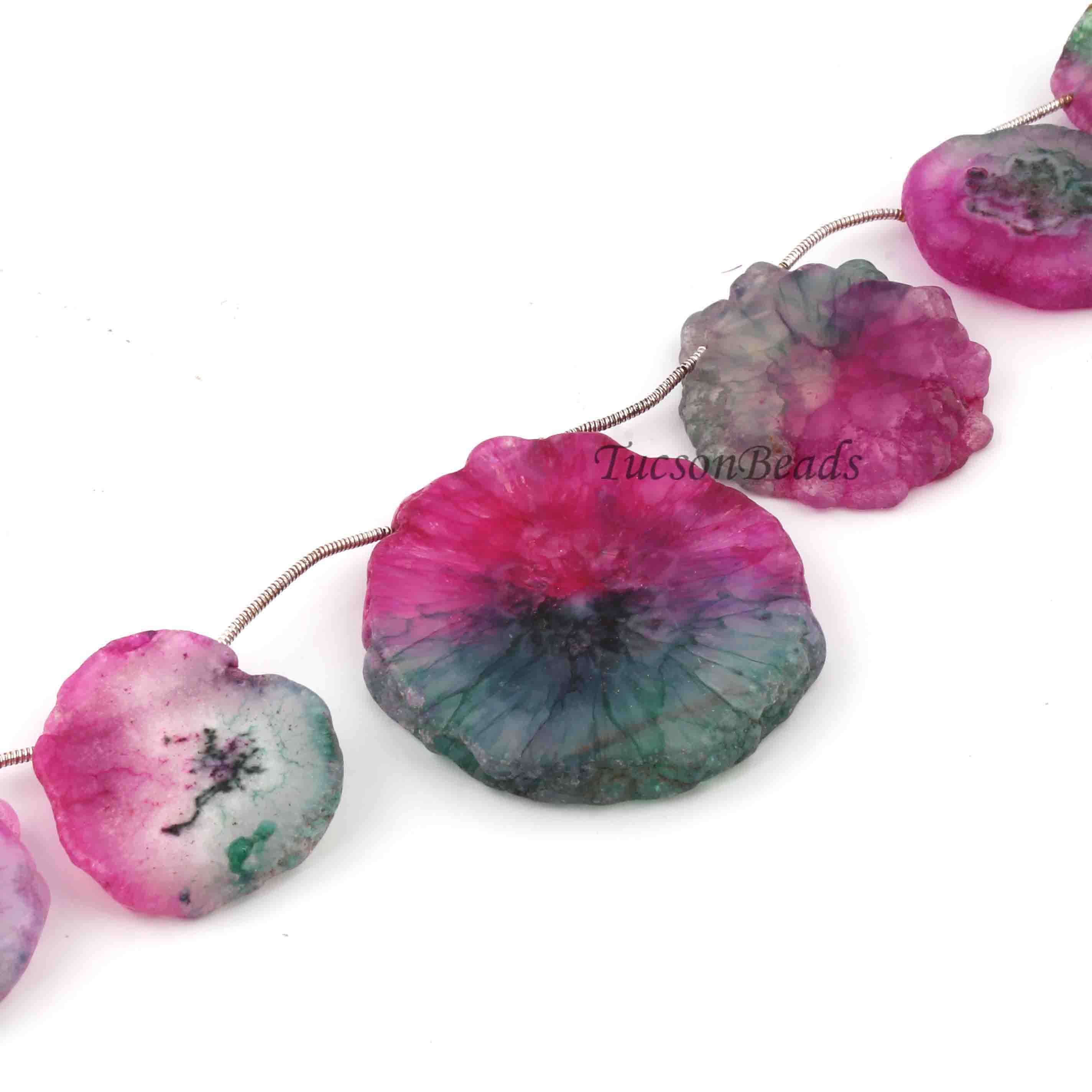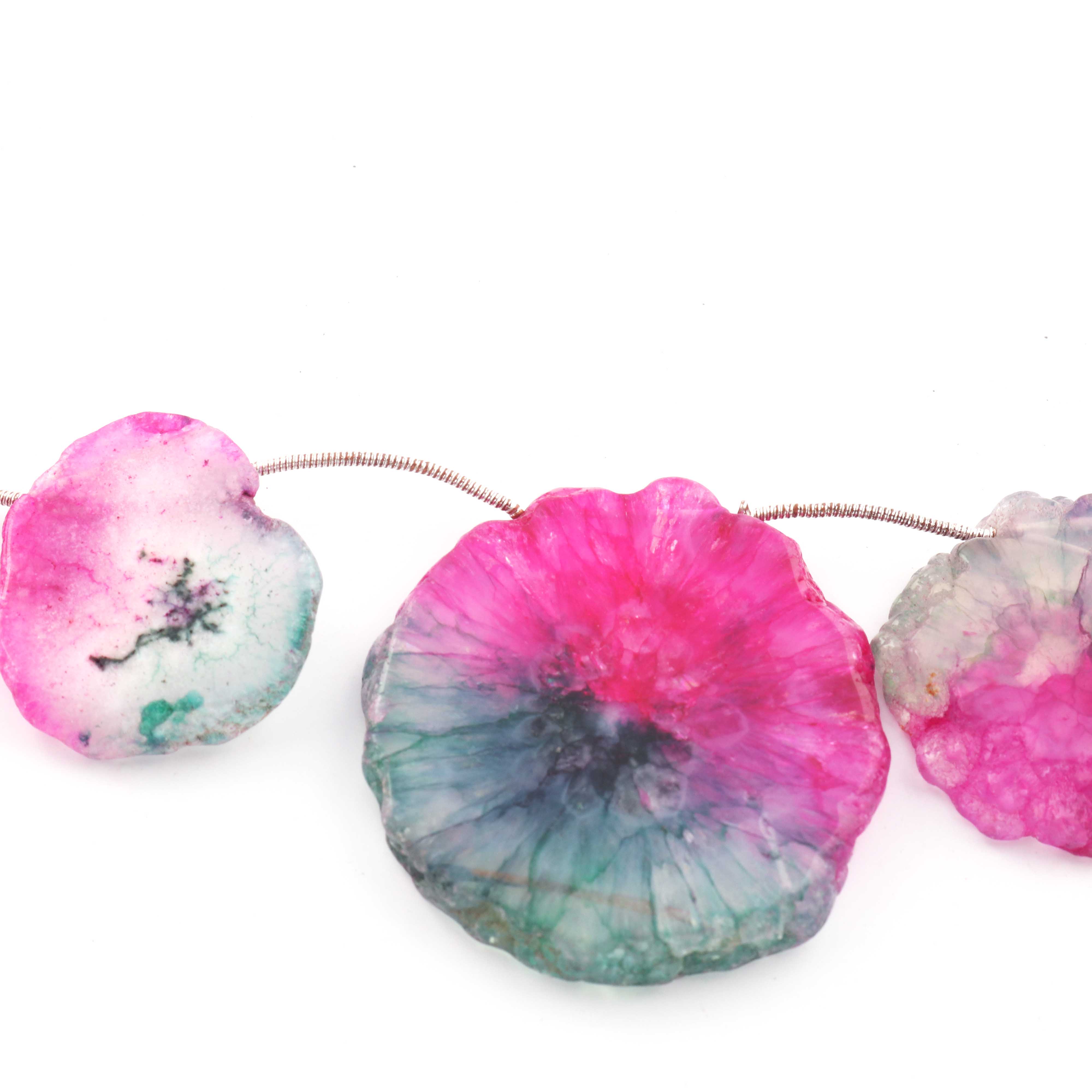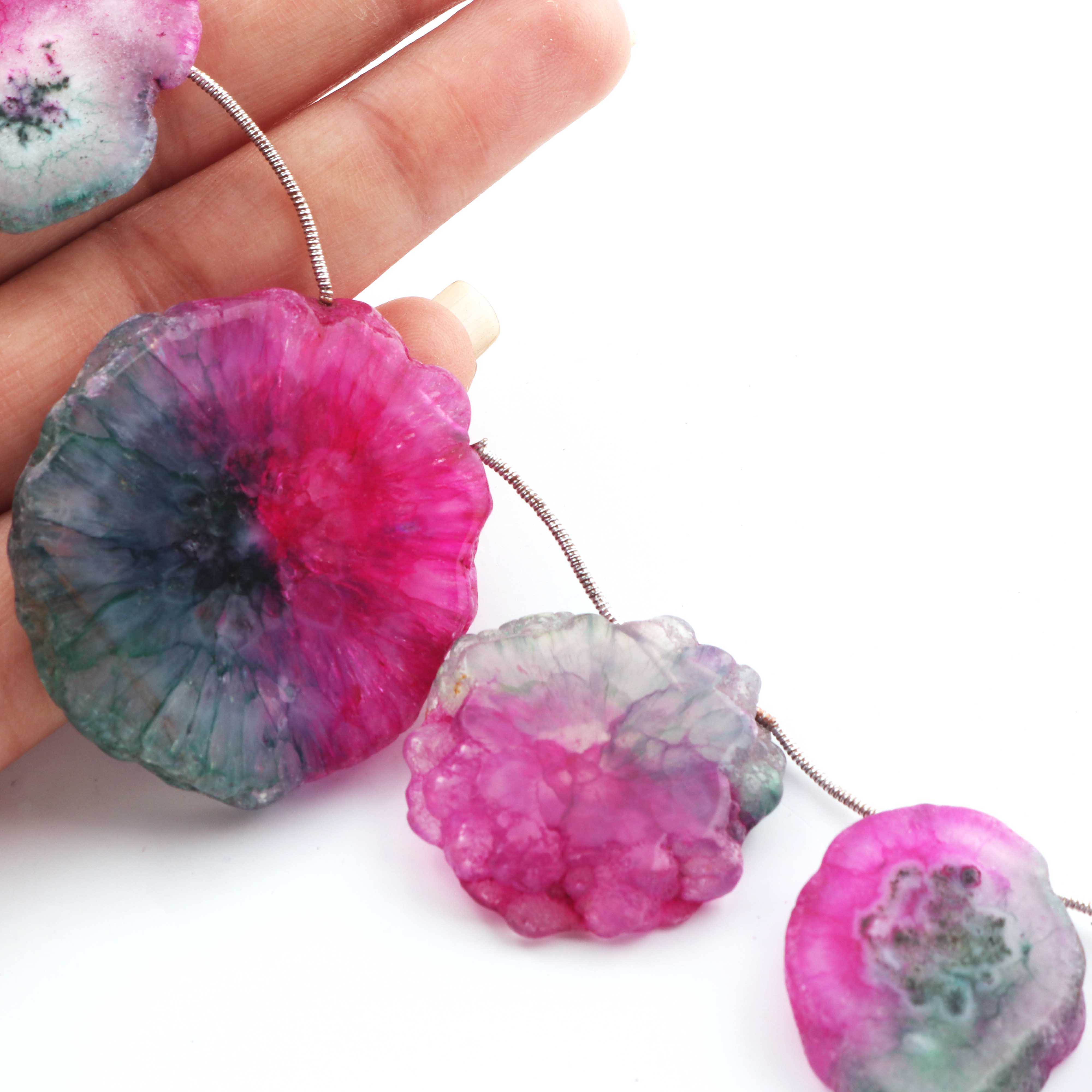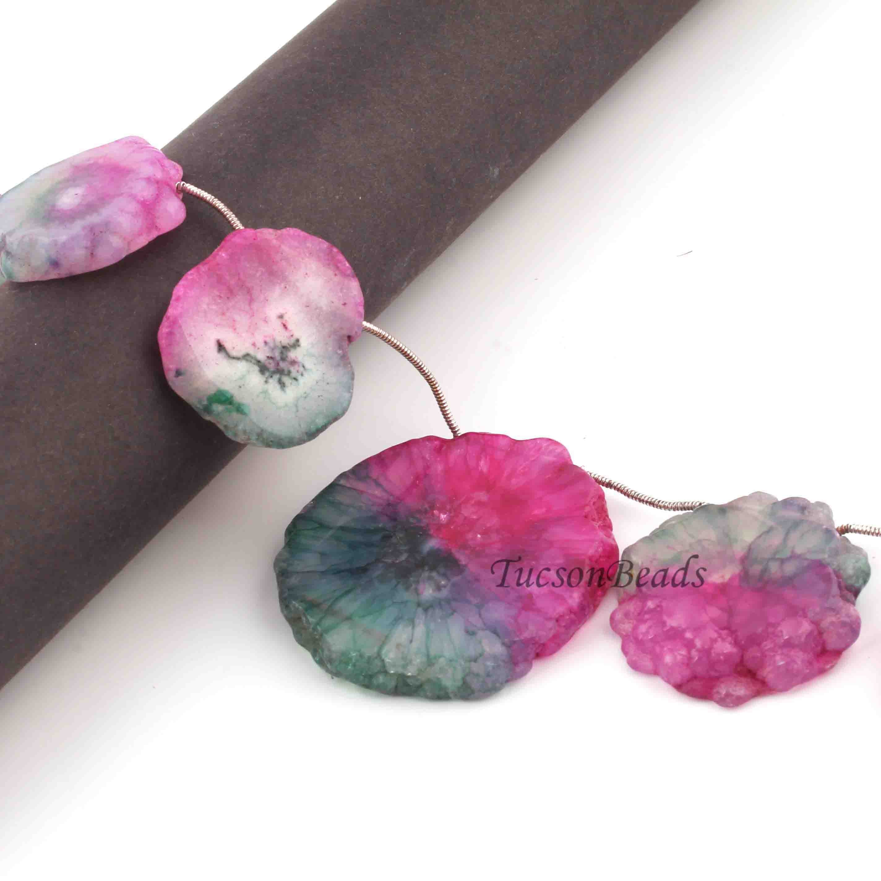 1 Strand Pink Green Drusy Briolettes - Druzy Side Drilled Briolette 44mm-26mm 8 Inches long br621