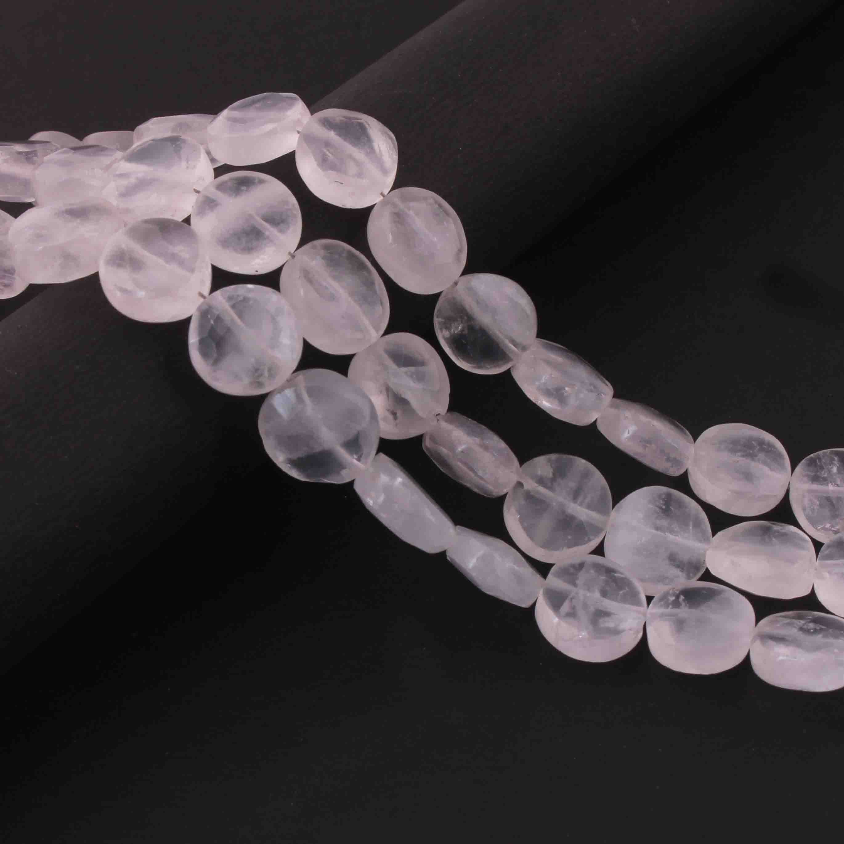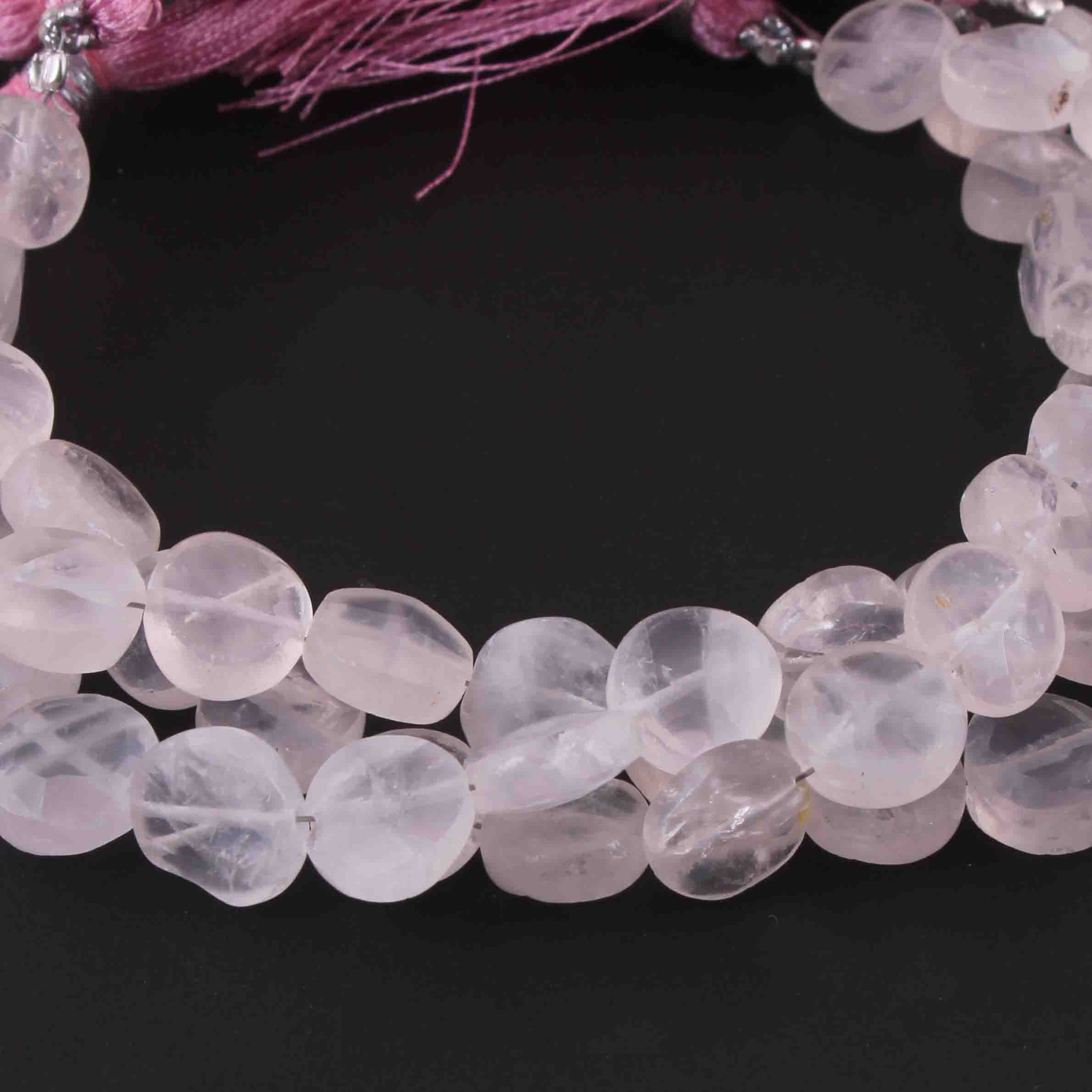 1 Strand Rose Quartz Faceted Coin Shape Beads , Gemstone Beads , Jewelry Making Supplies - 9mm 7 inch BR3850