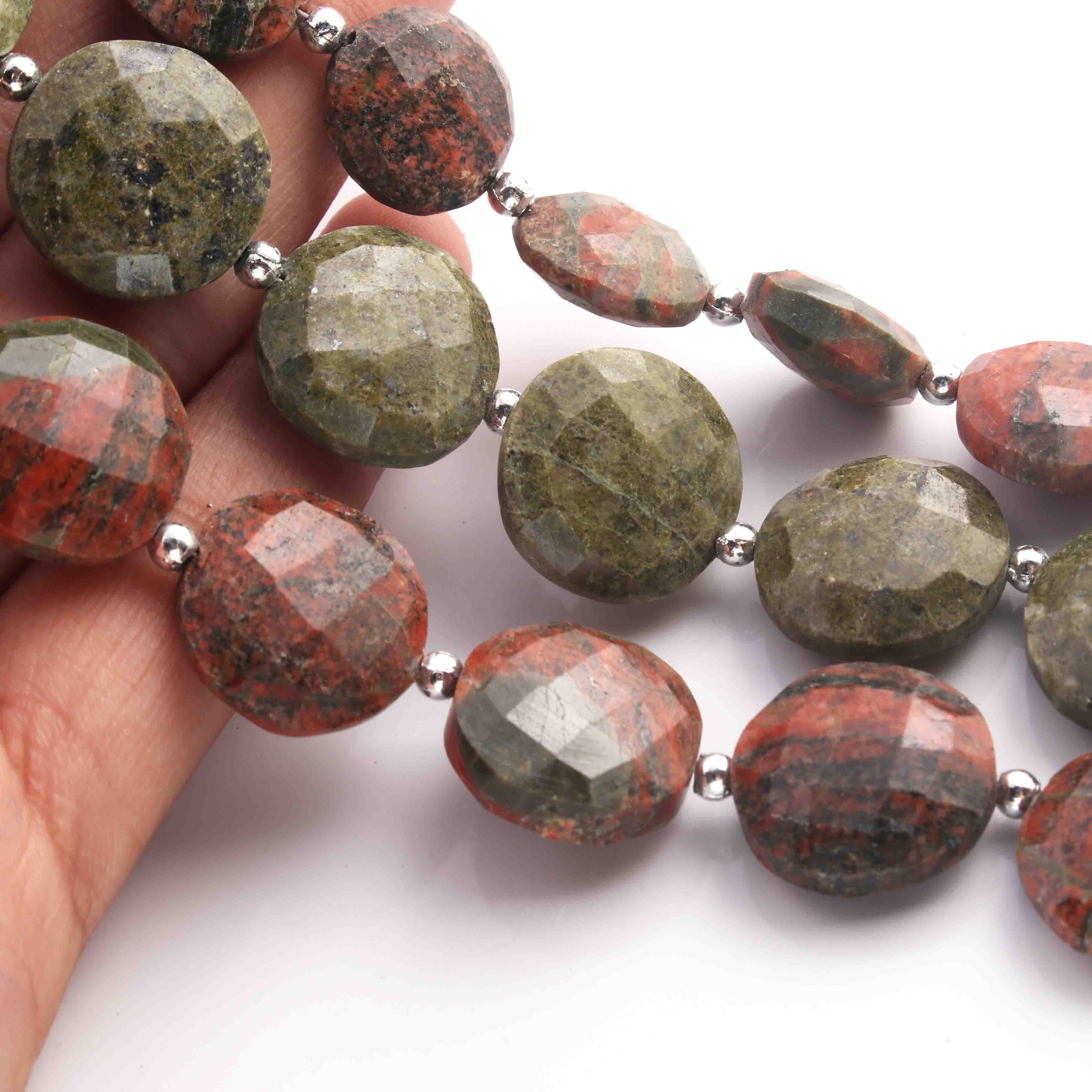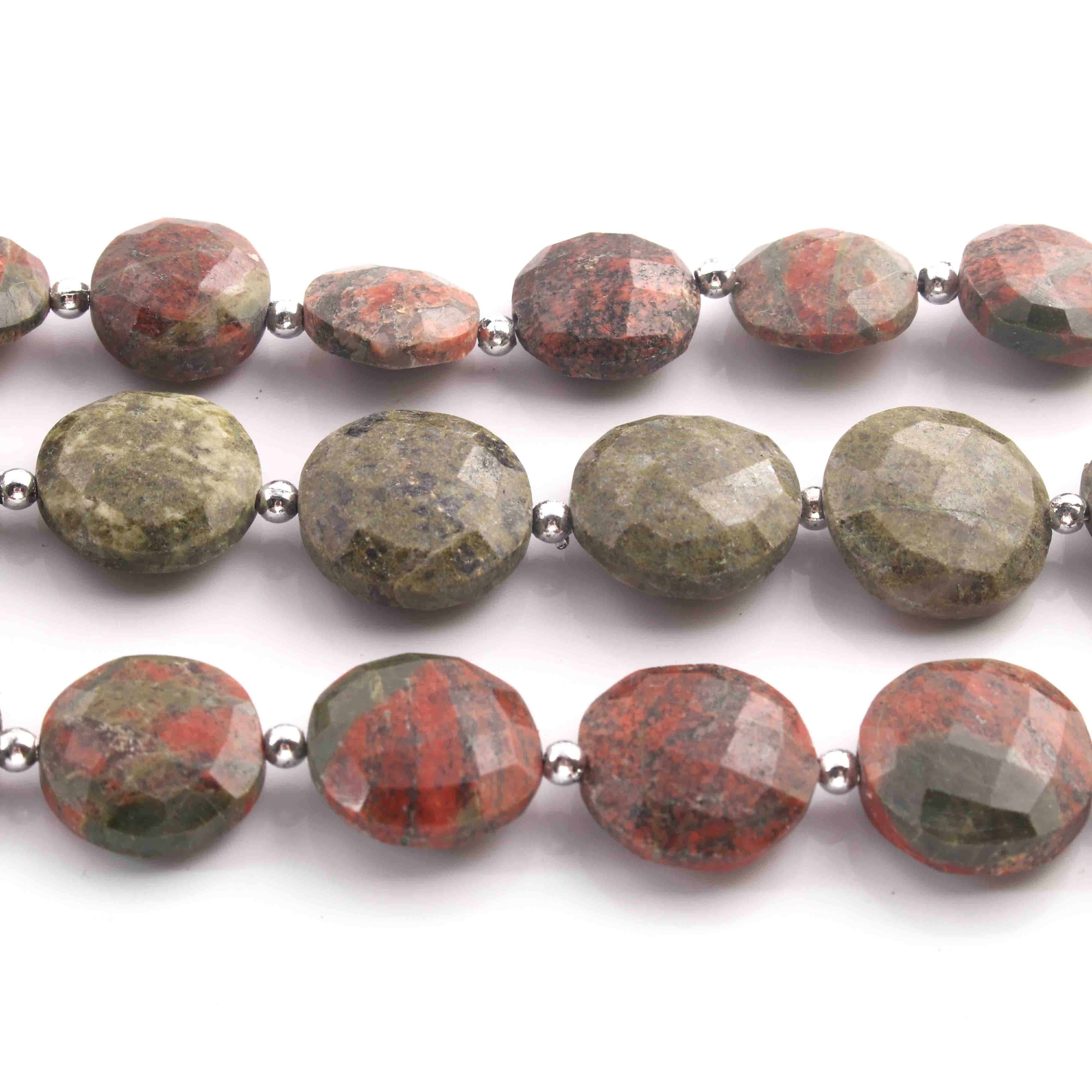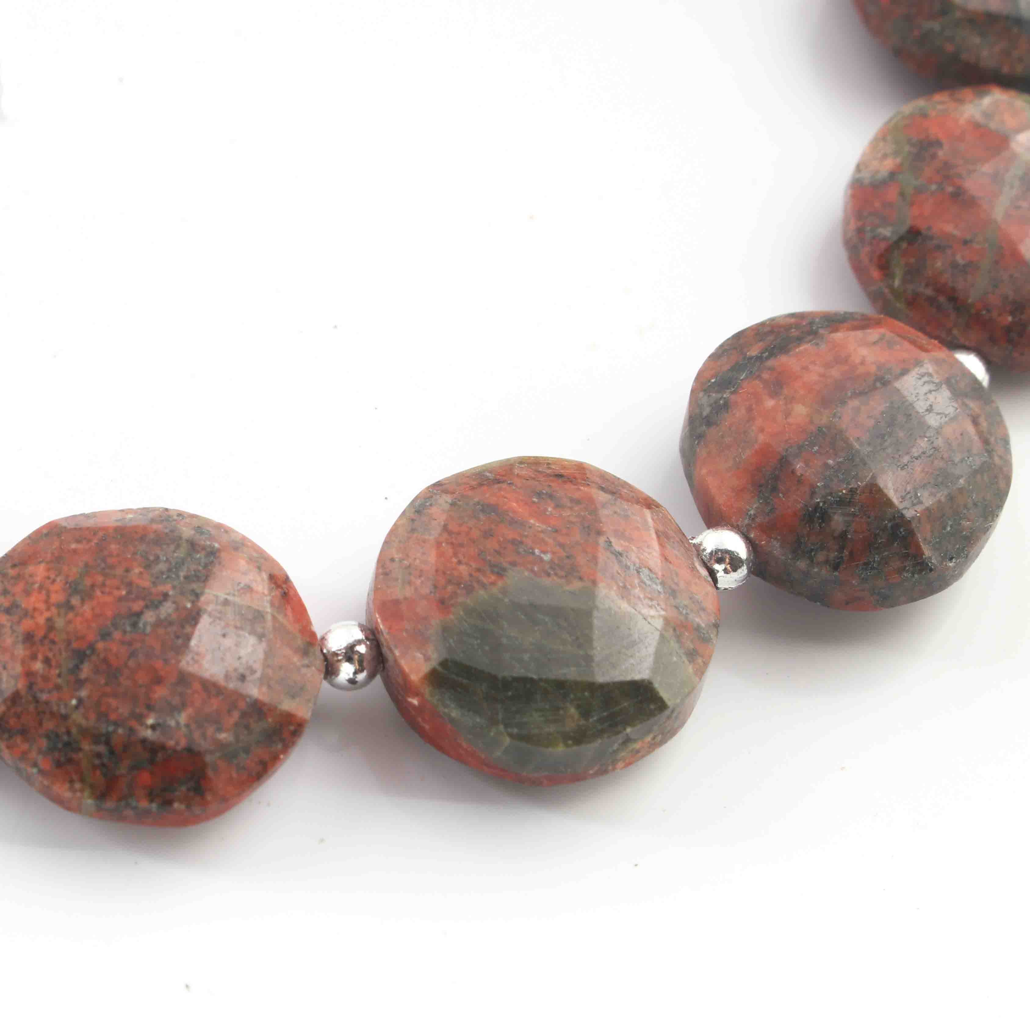 1 Strand Unakite Faceted Coin Briolettes - 18mm- 8 Inches BR01452