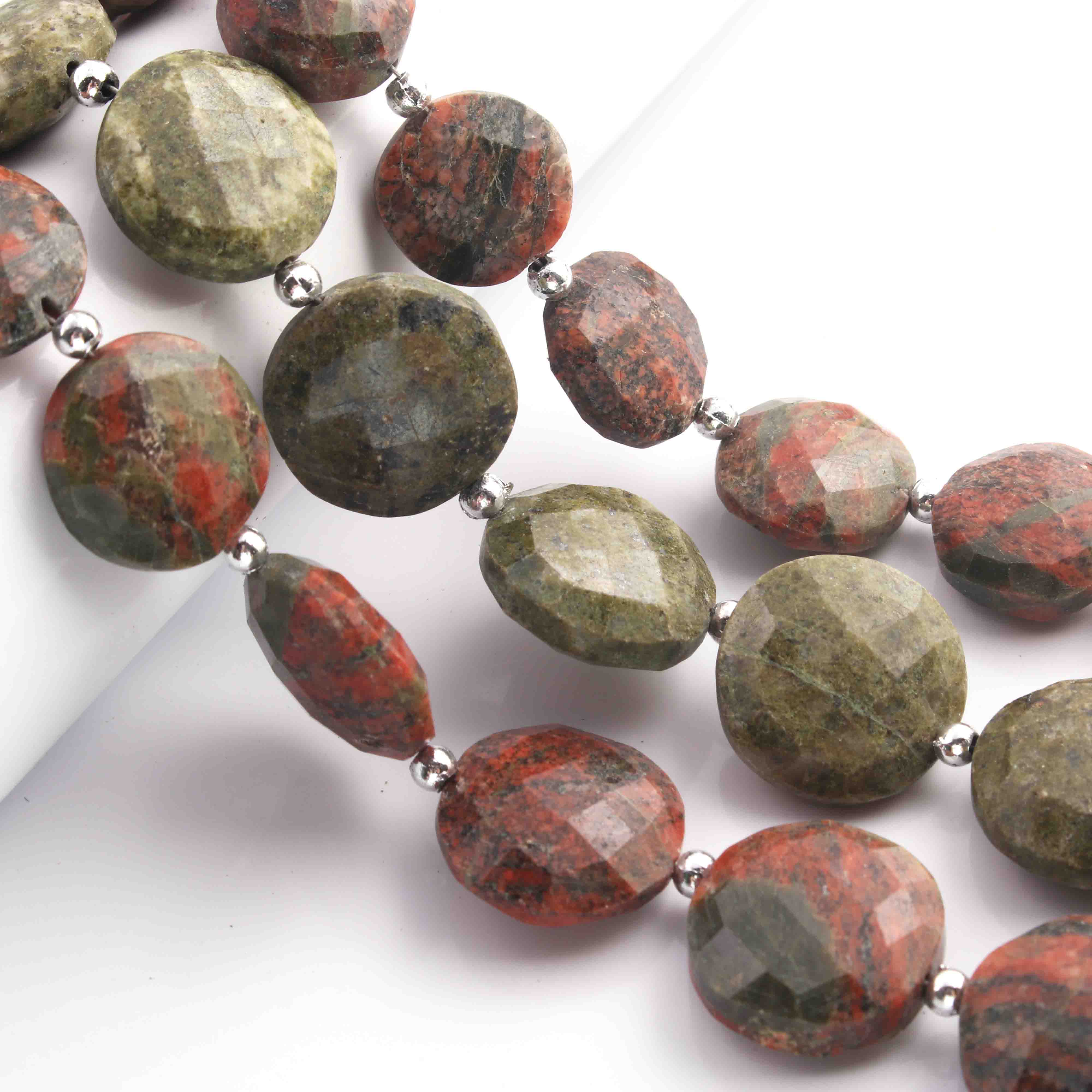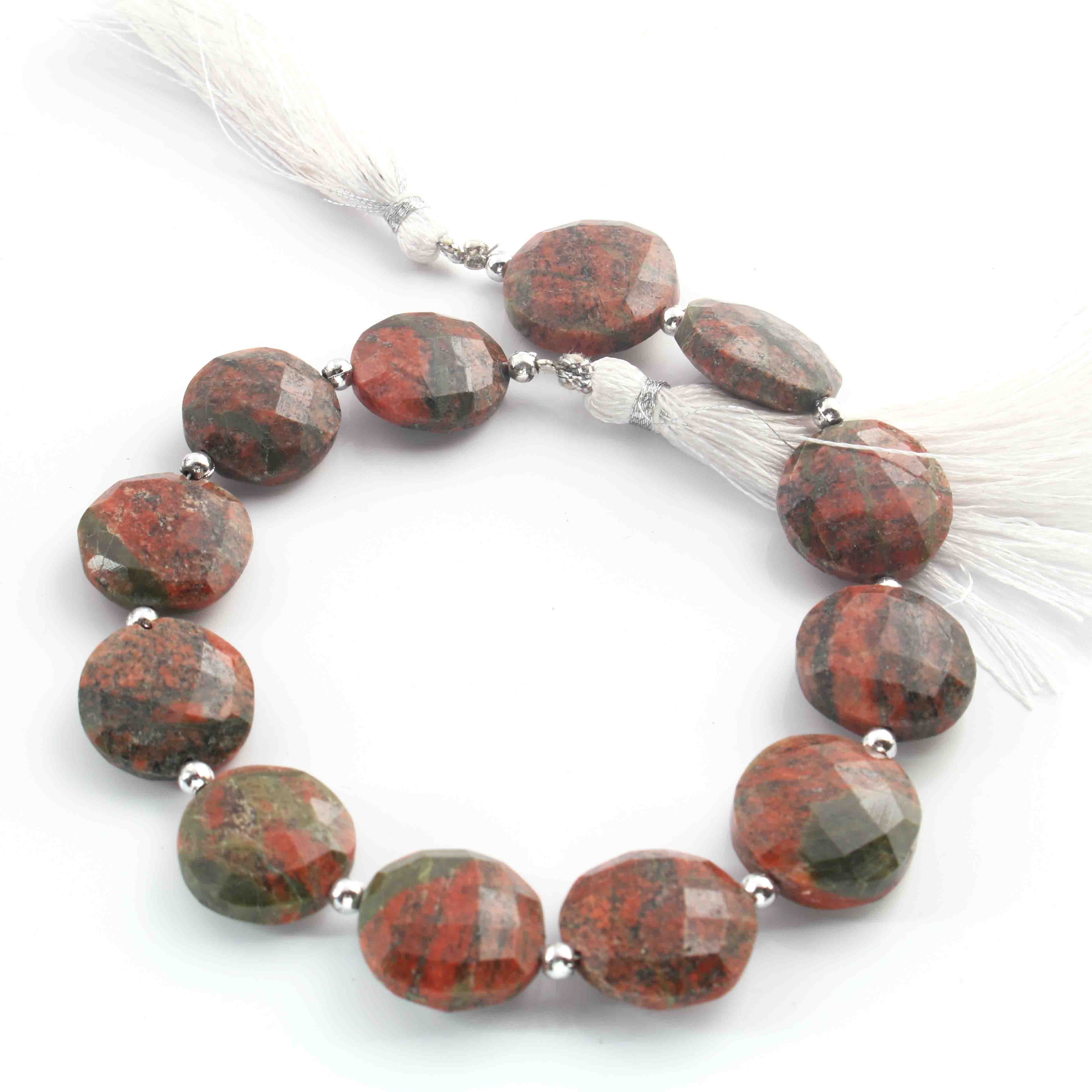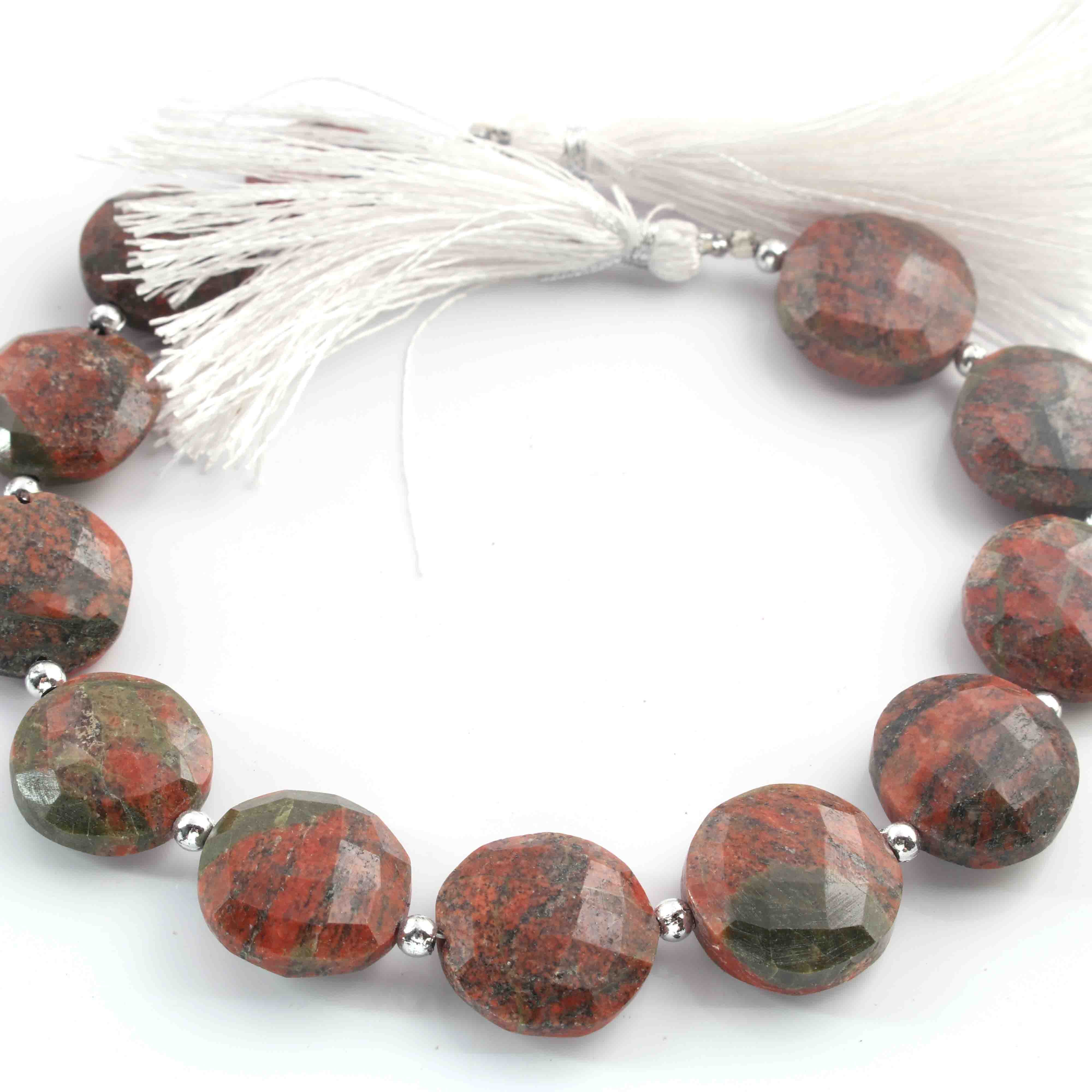 1 Strand Unakite Faceted Coin Briolettes - 18mm- 8 Inches BR01452