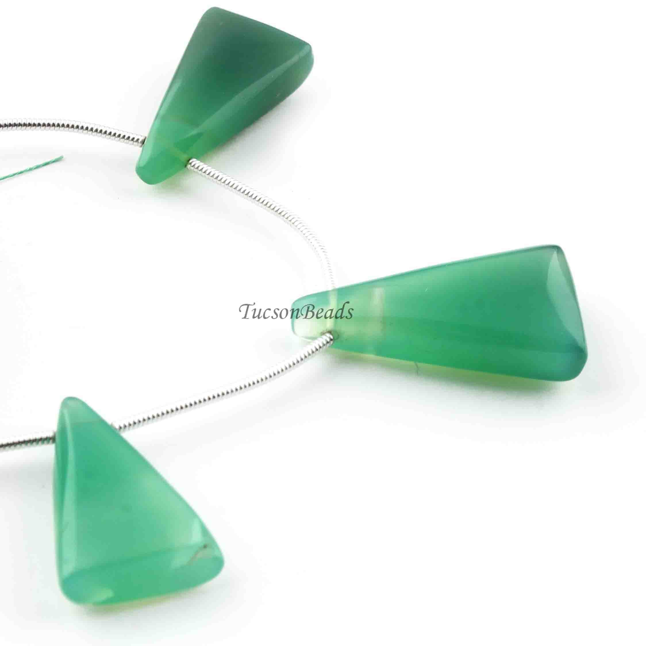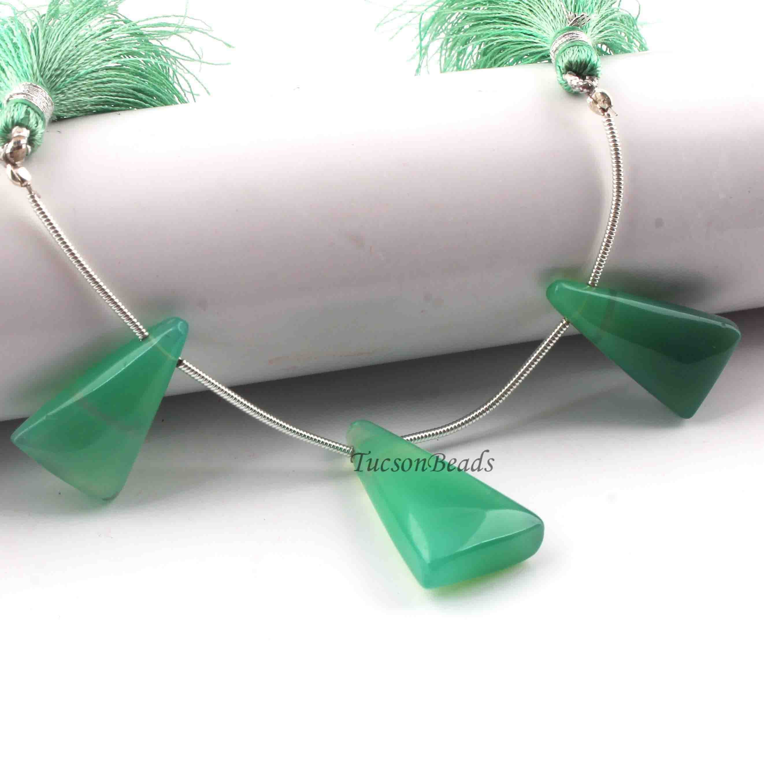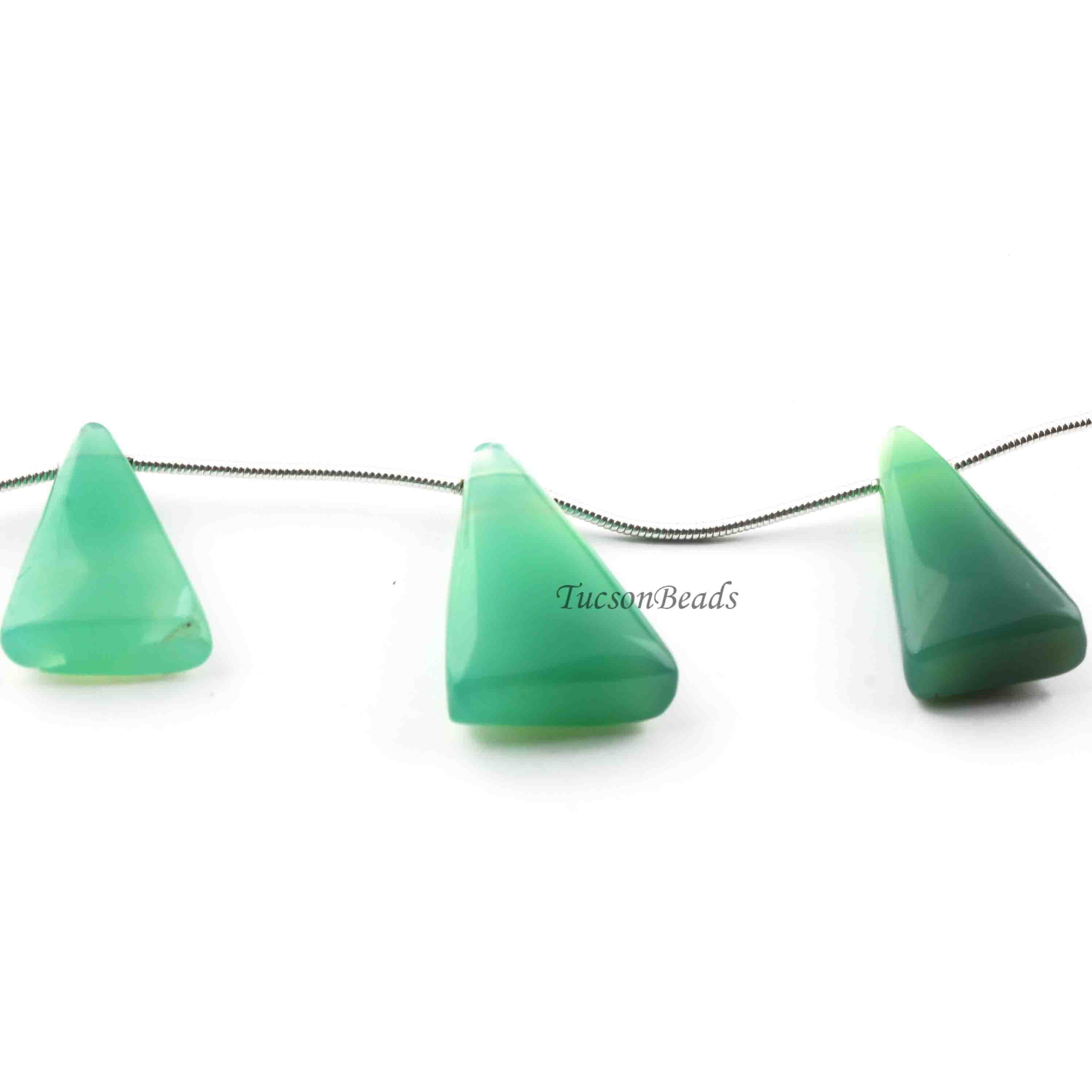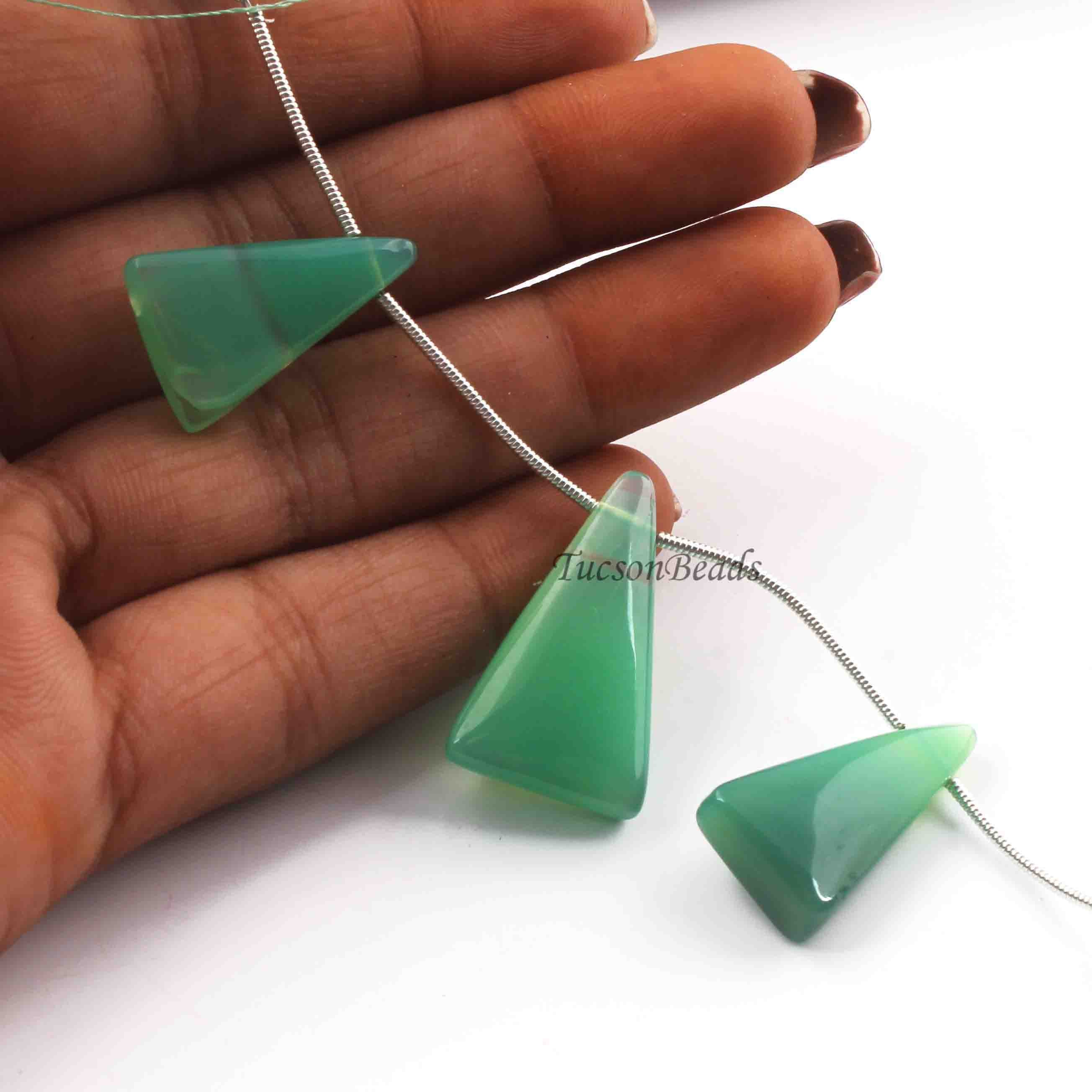 1 Strand Green Chalcedony Smooth Briolettes -Long Trillion Shape Briolettes - 21mmx13mm-26mmx14mm - 4.5 Inches BR2633