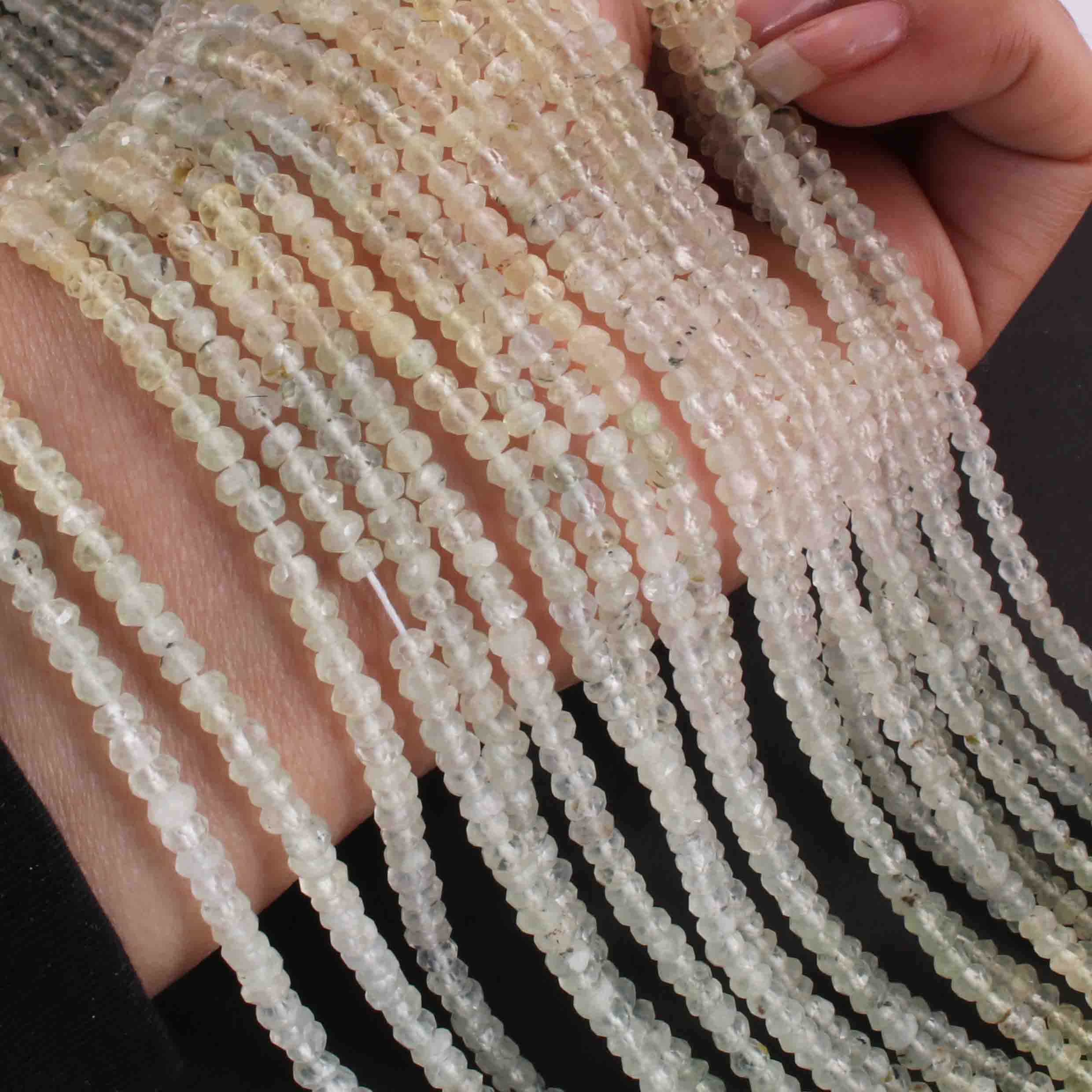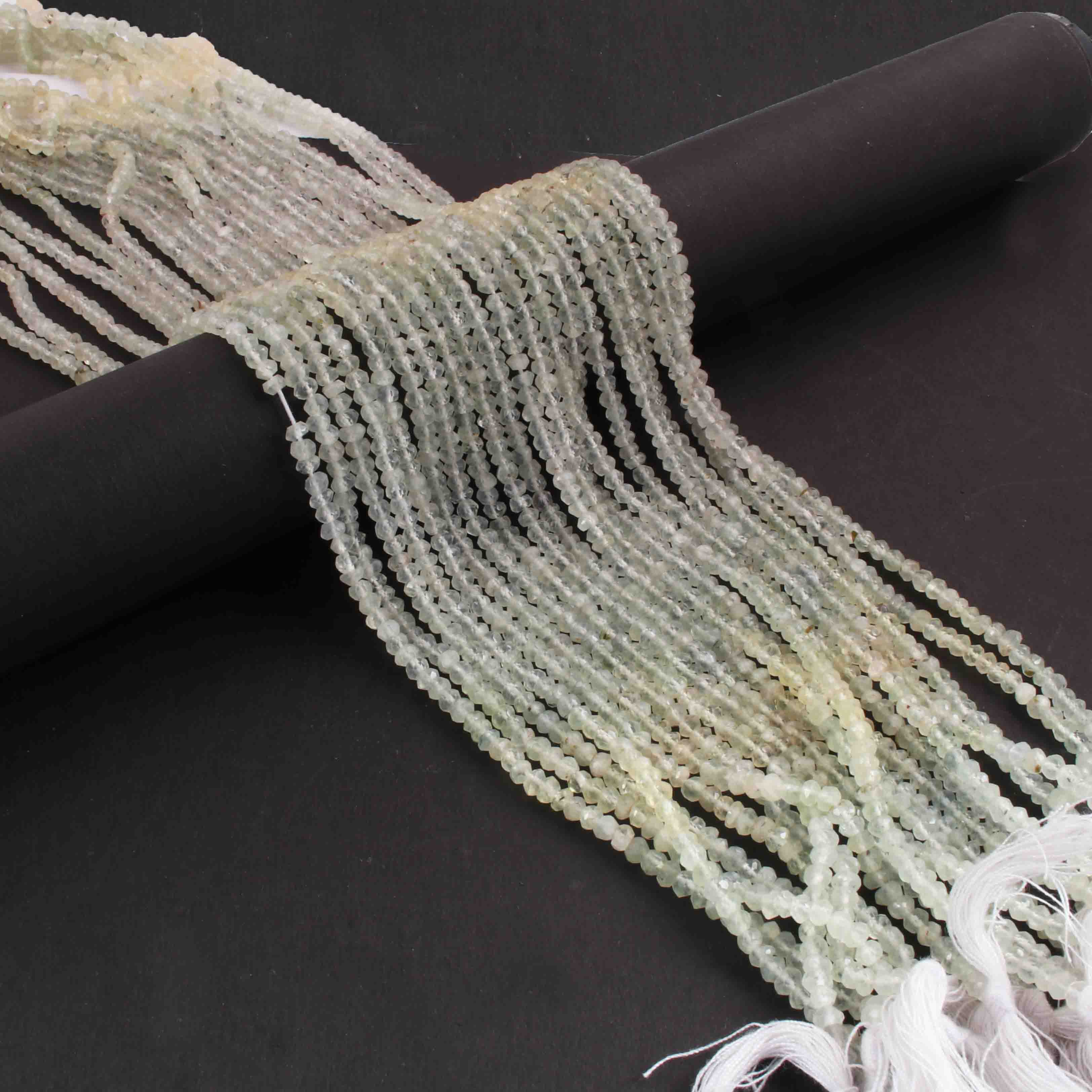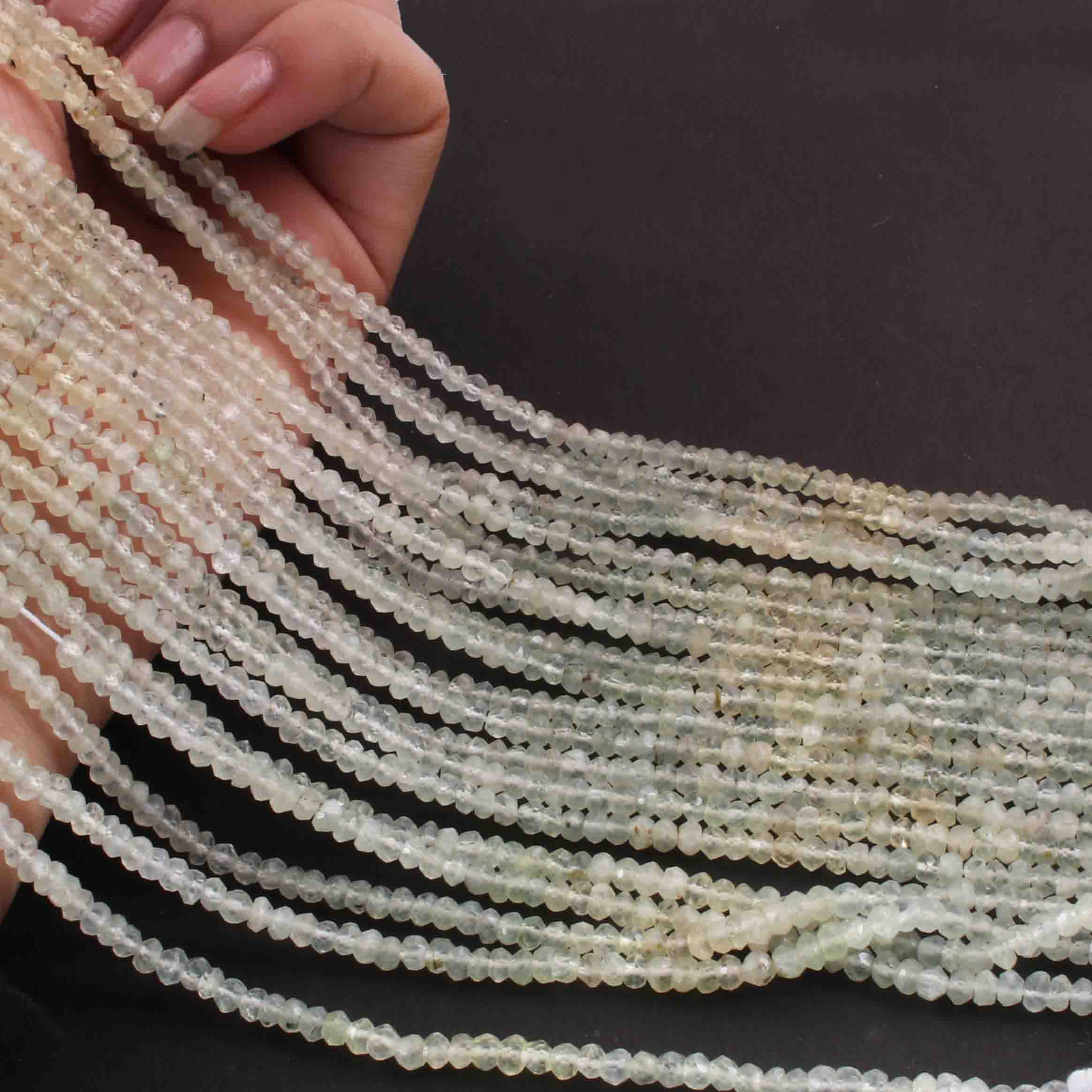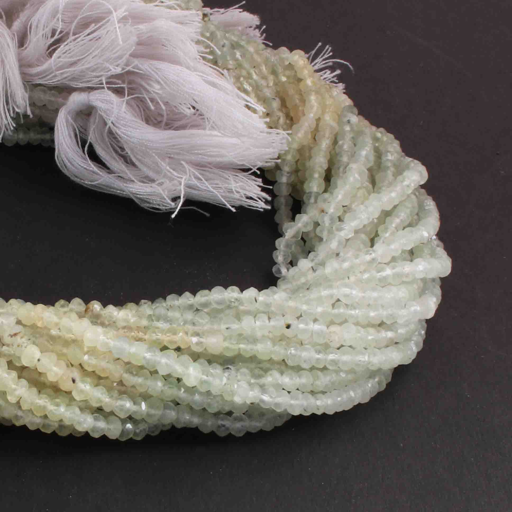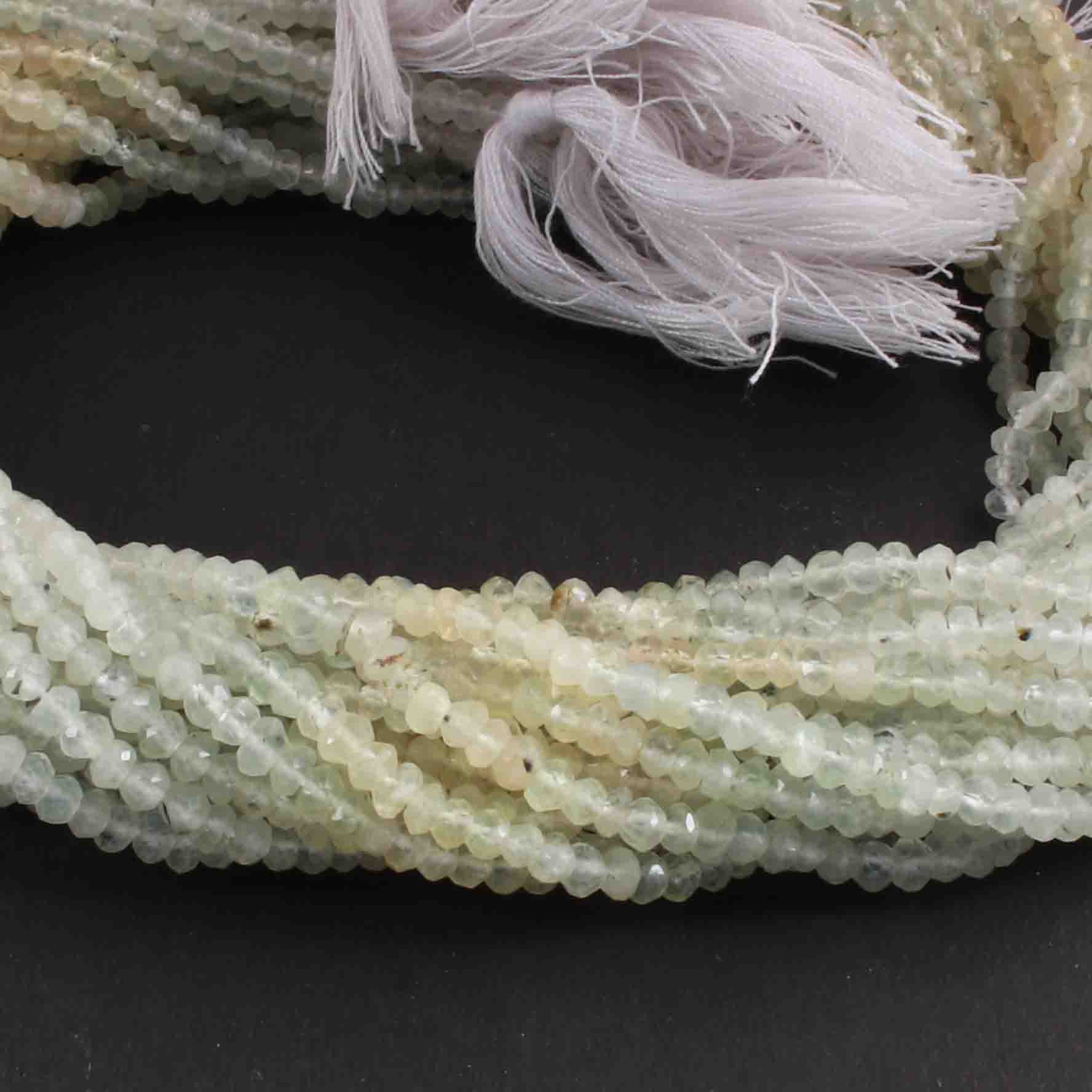 5 Strand Prehnite Faceted Rondelles -GemStone Beads 4mm -14 Inches RB517
