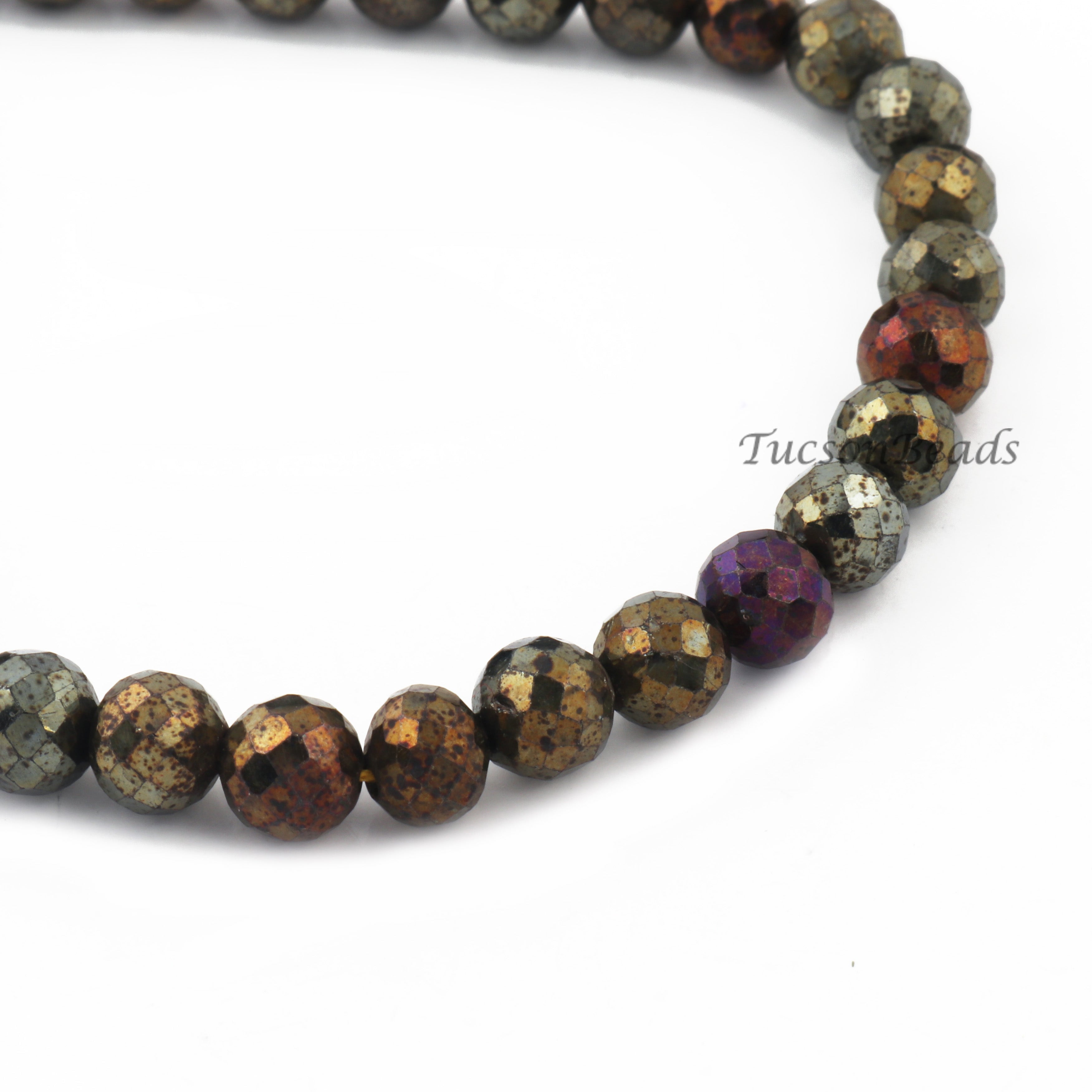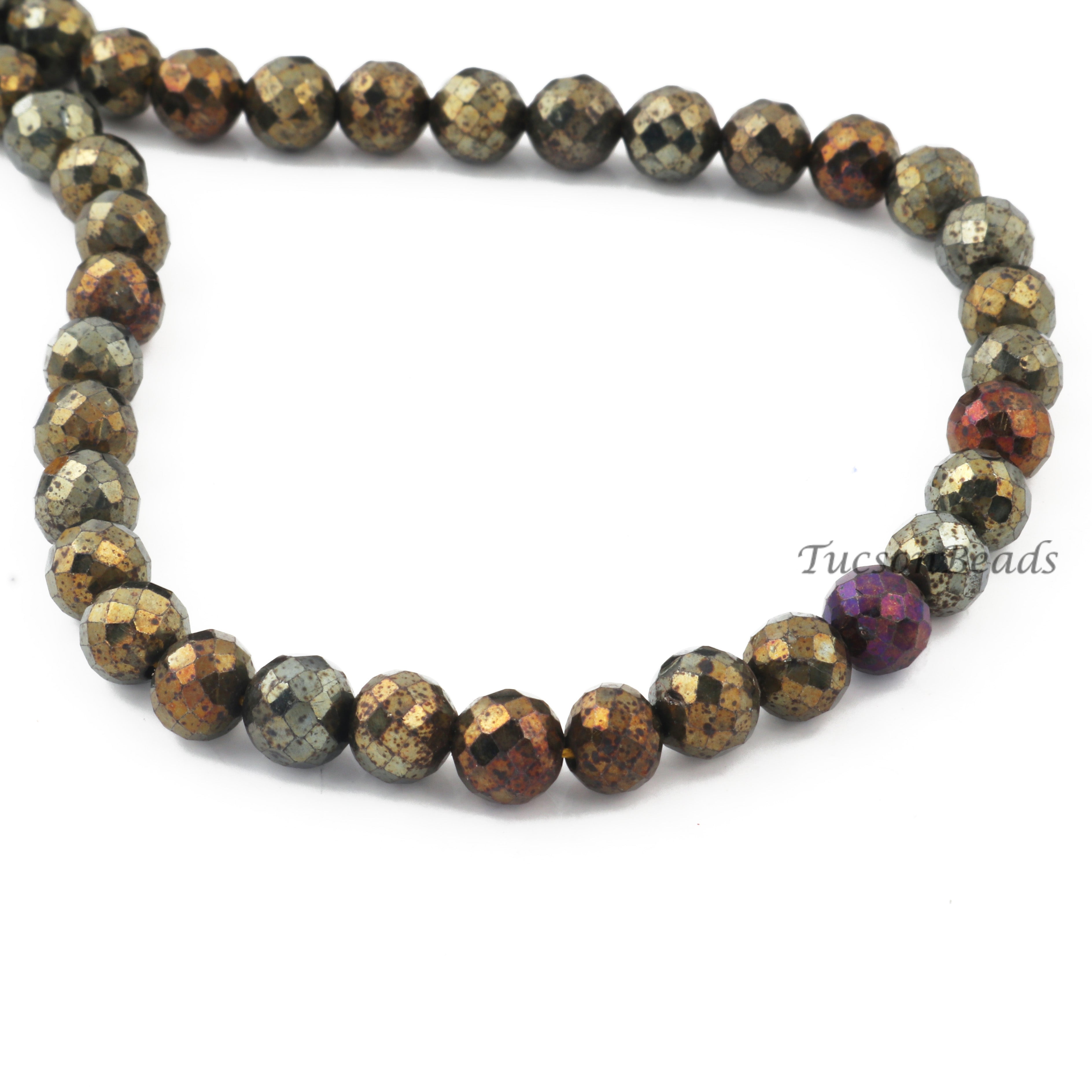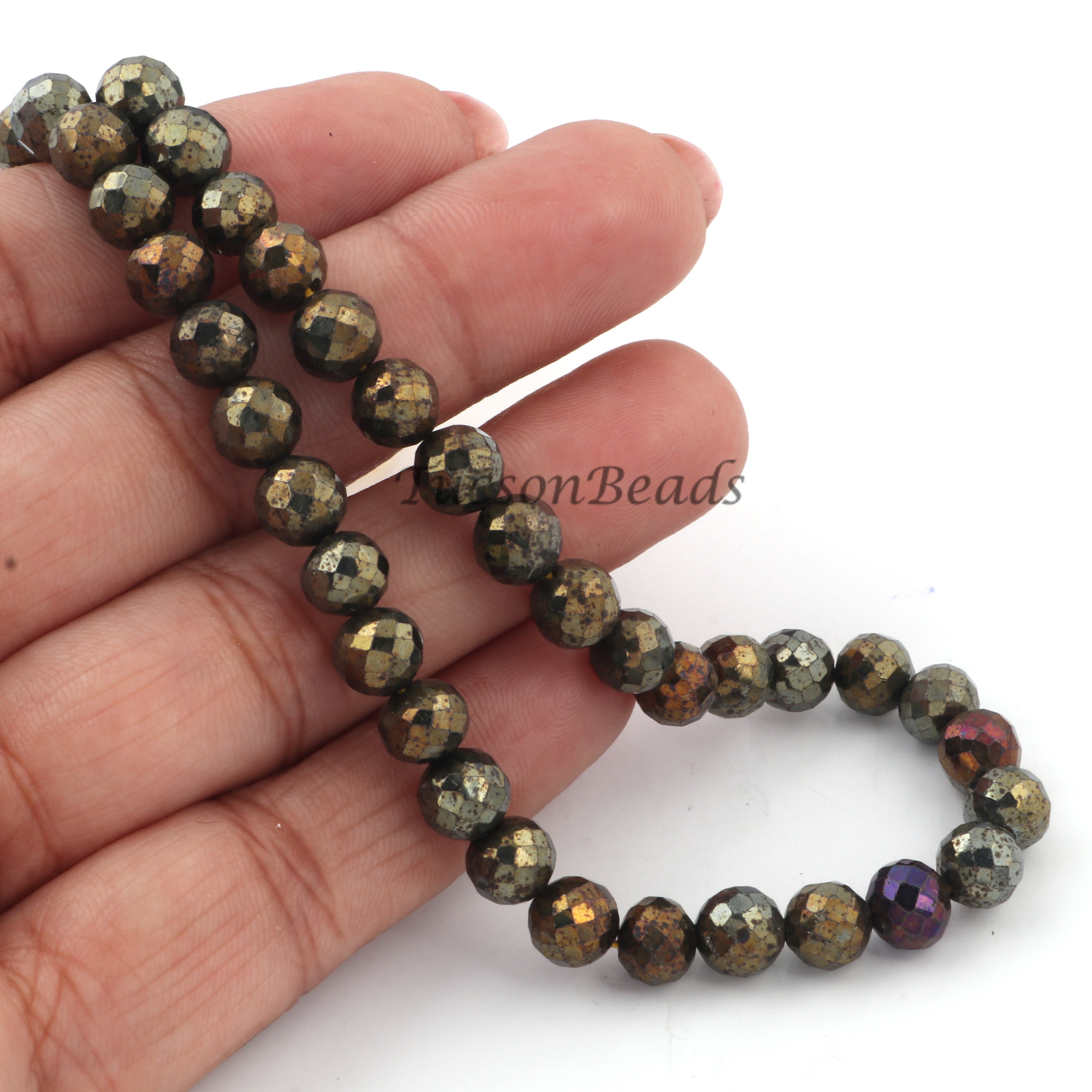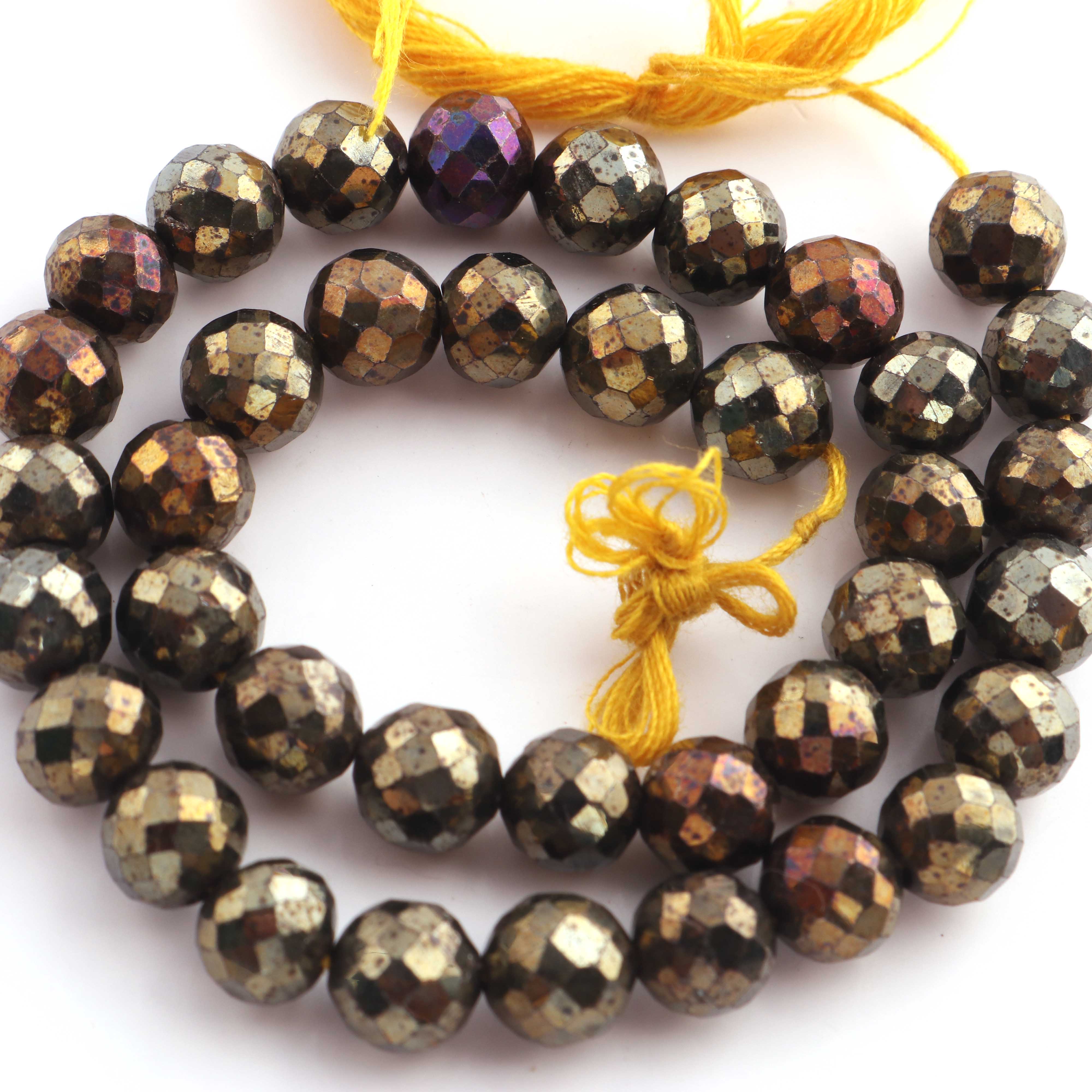 1 Strand Black Spinel Golden Coated Faceted Rondelles -Faceted Round Shape Rondelles - 6mm -9.5 Inches BR1214