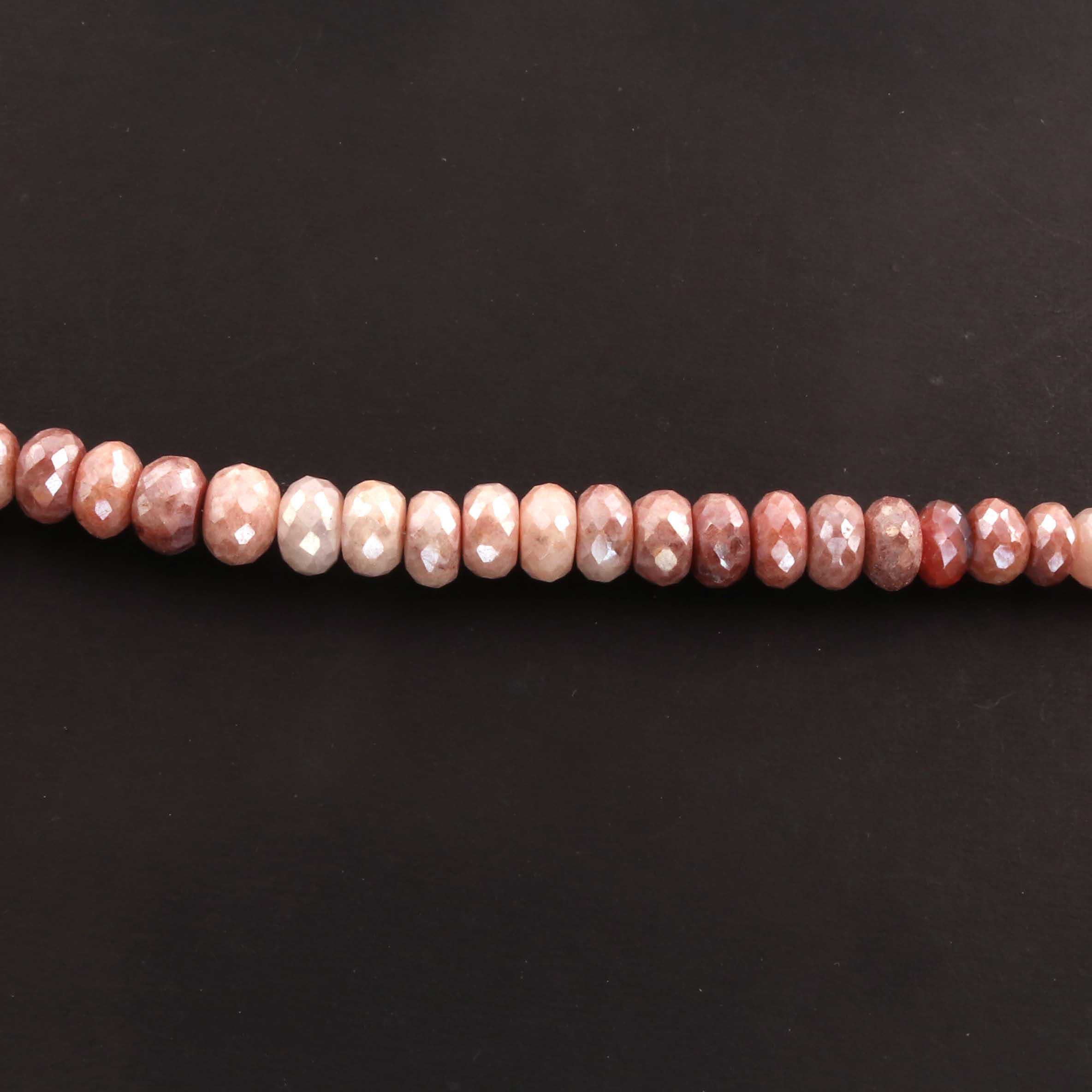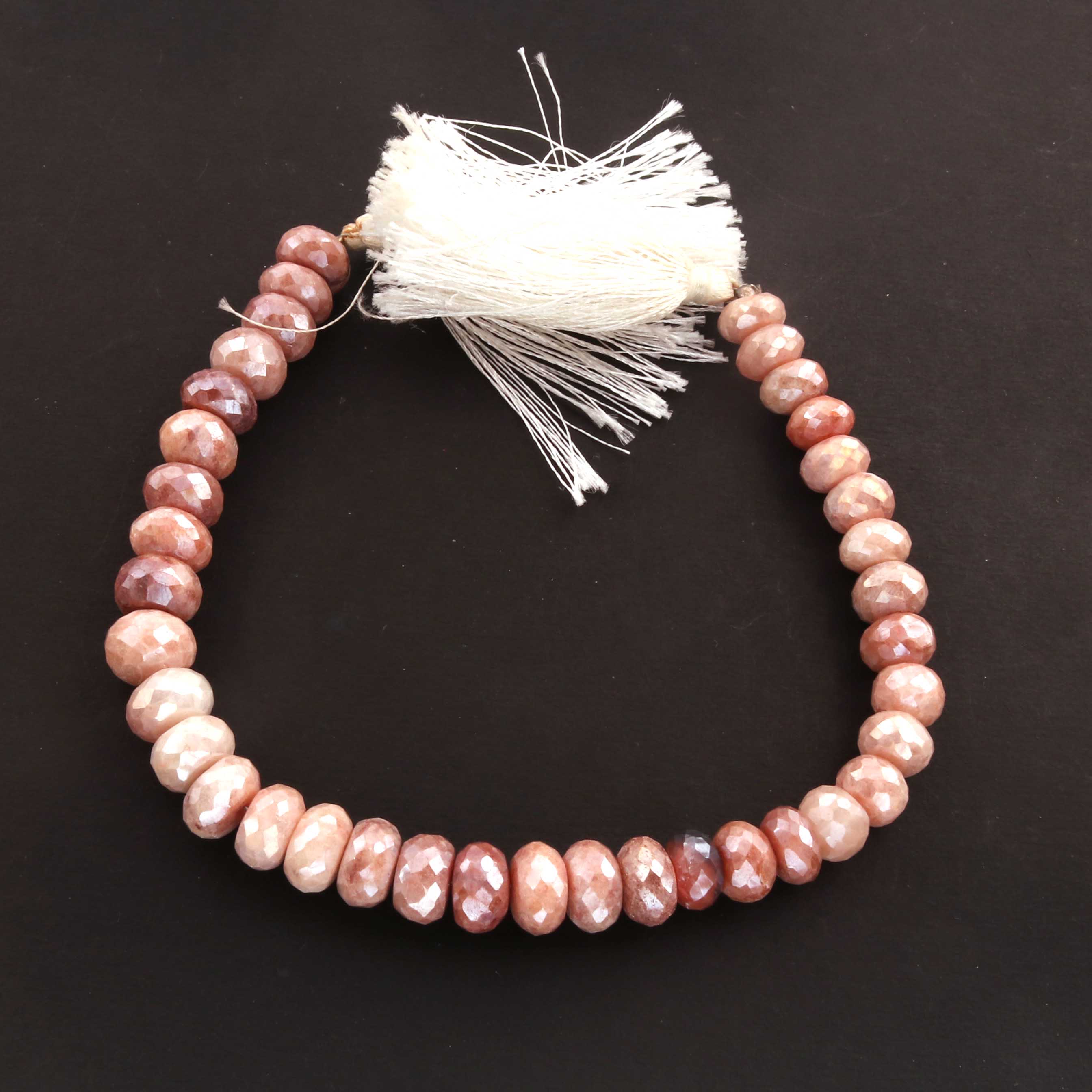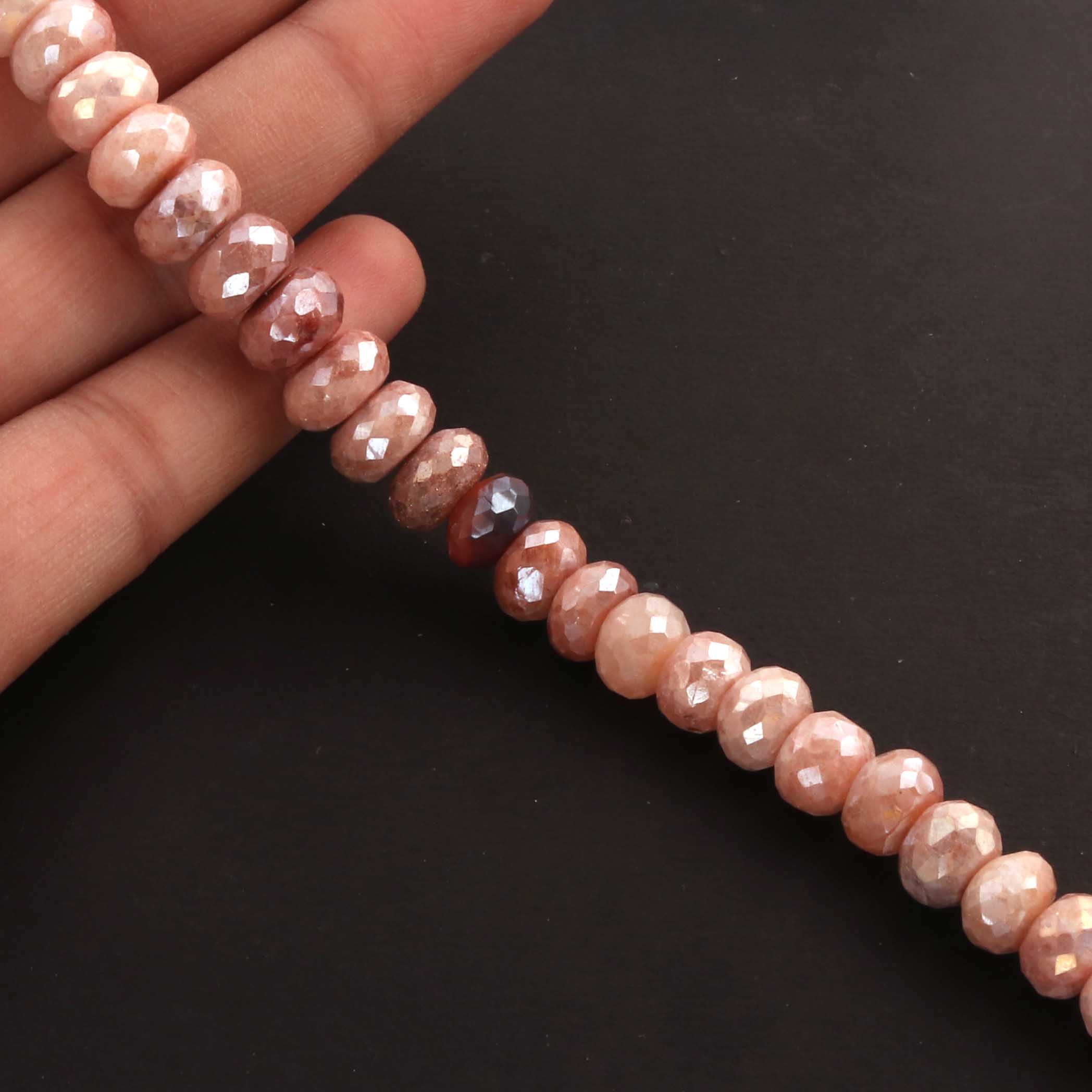 1  Long Strand Peach Moonstone Silver Coated Faceted Roundels -Round Shape Roundels 10mmx8mm 9  Inches BR2252