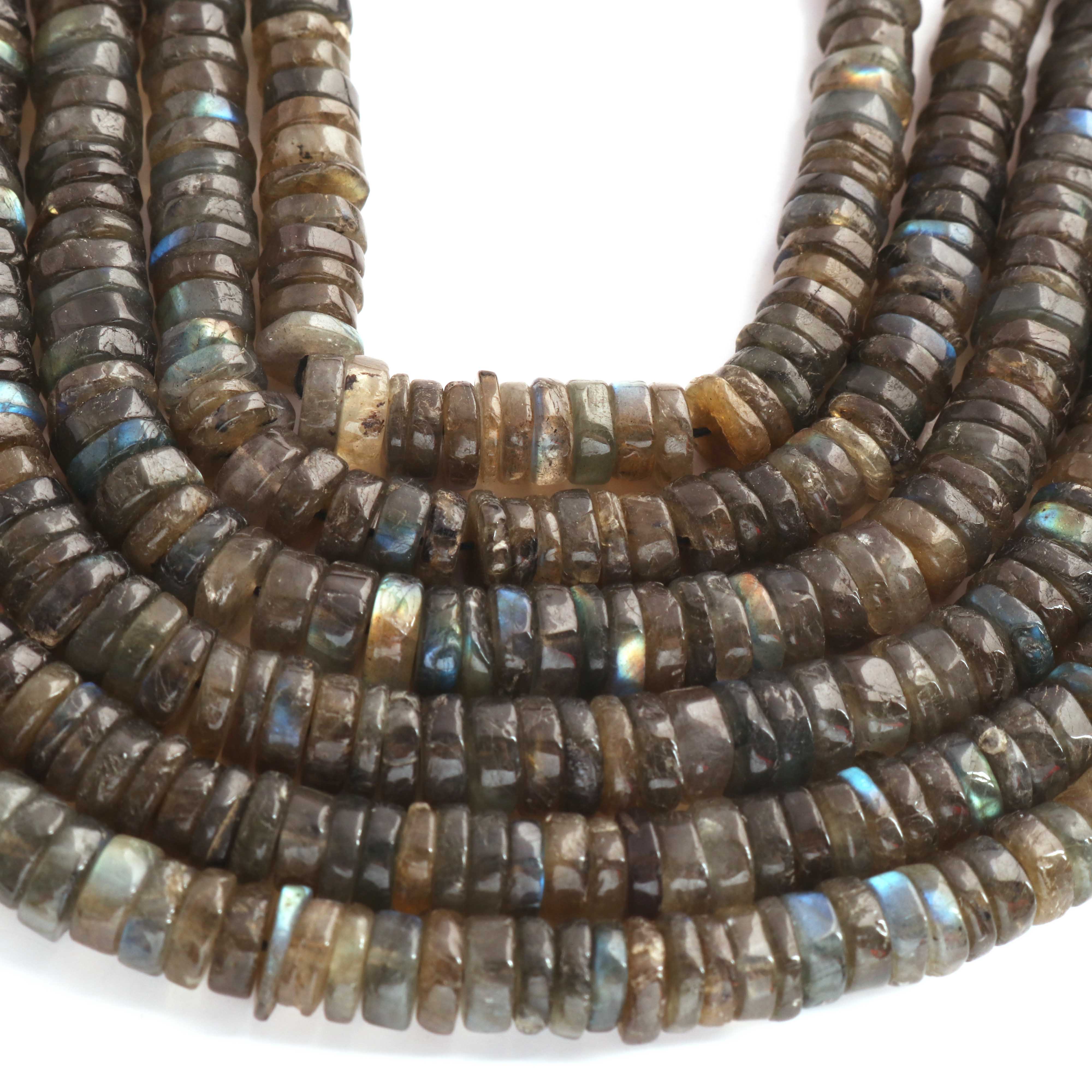 1 Strand AAA+ Labradorite Smooth Tyre, Wheel Shape Beads - Heishi Shape Gemstone Beads 6mm -7mm-16 Inches BR03832