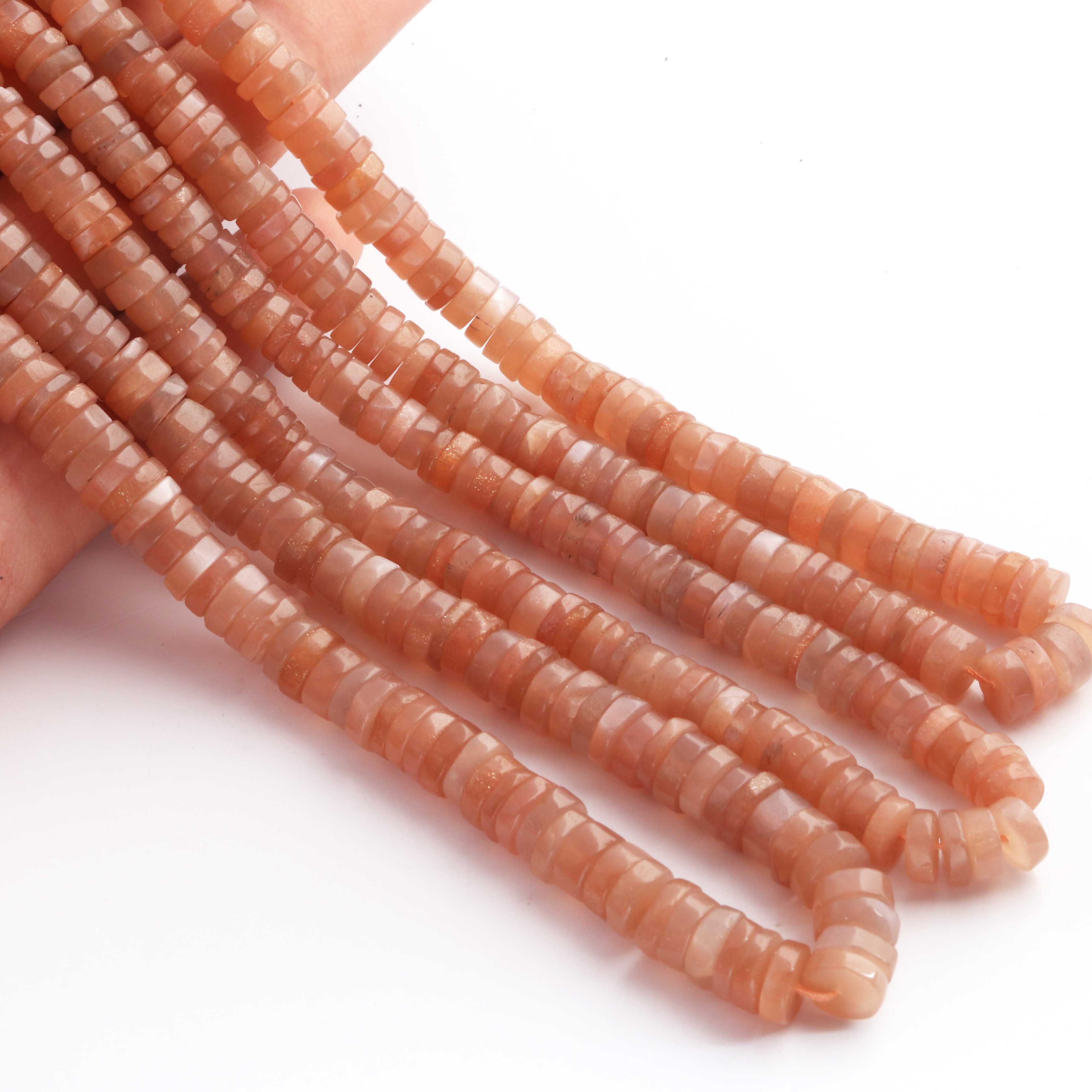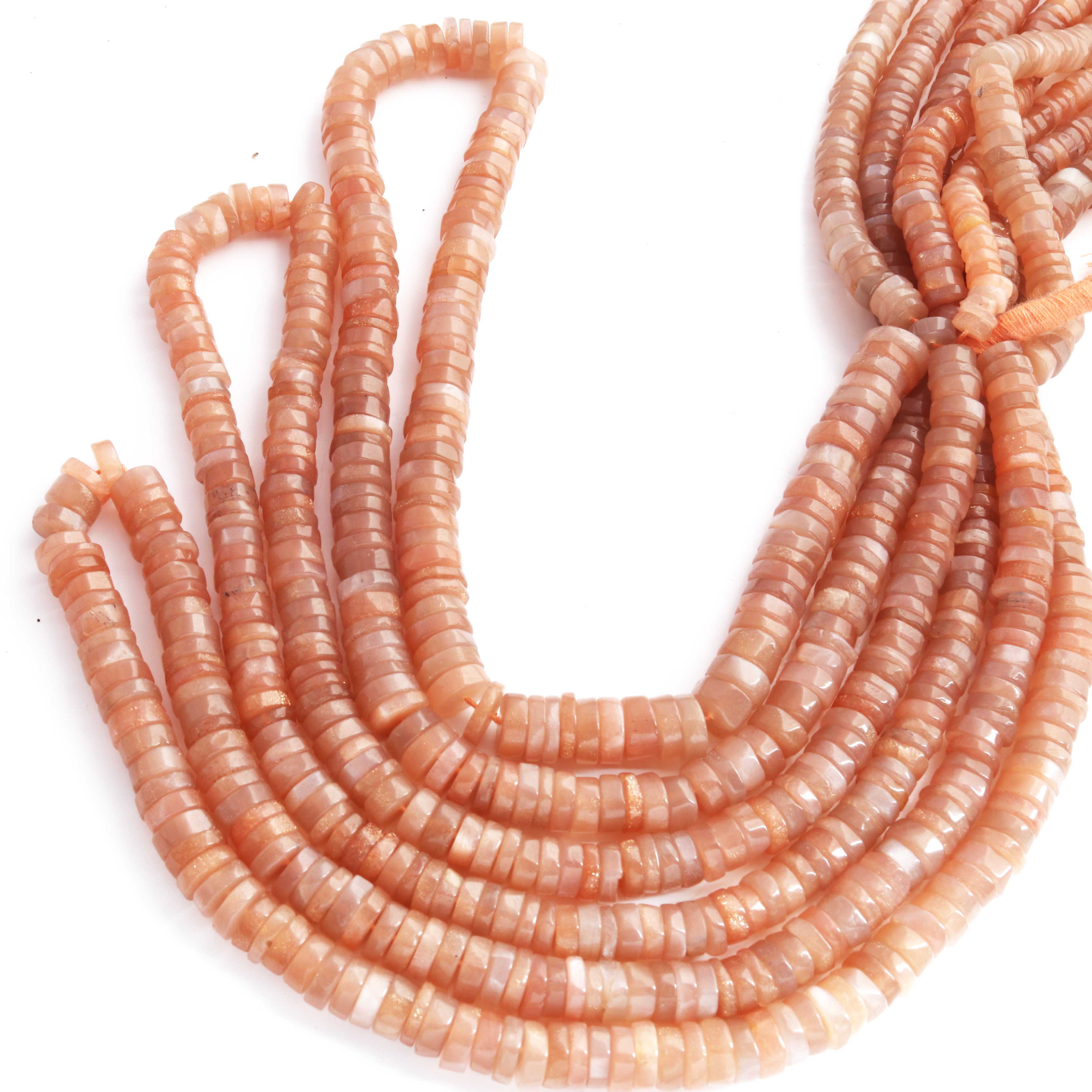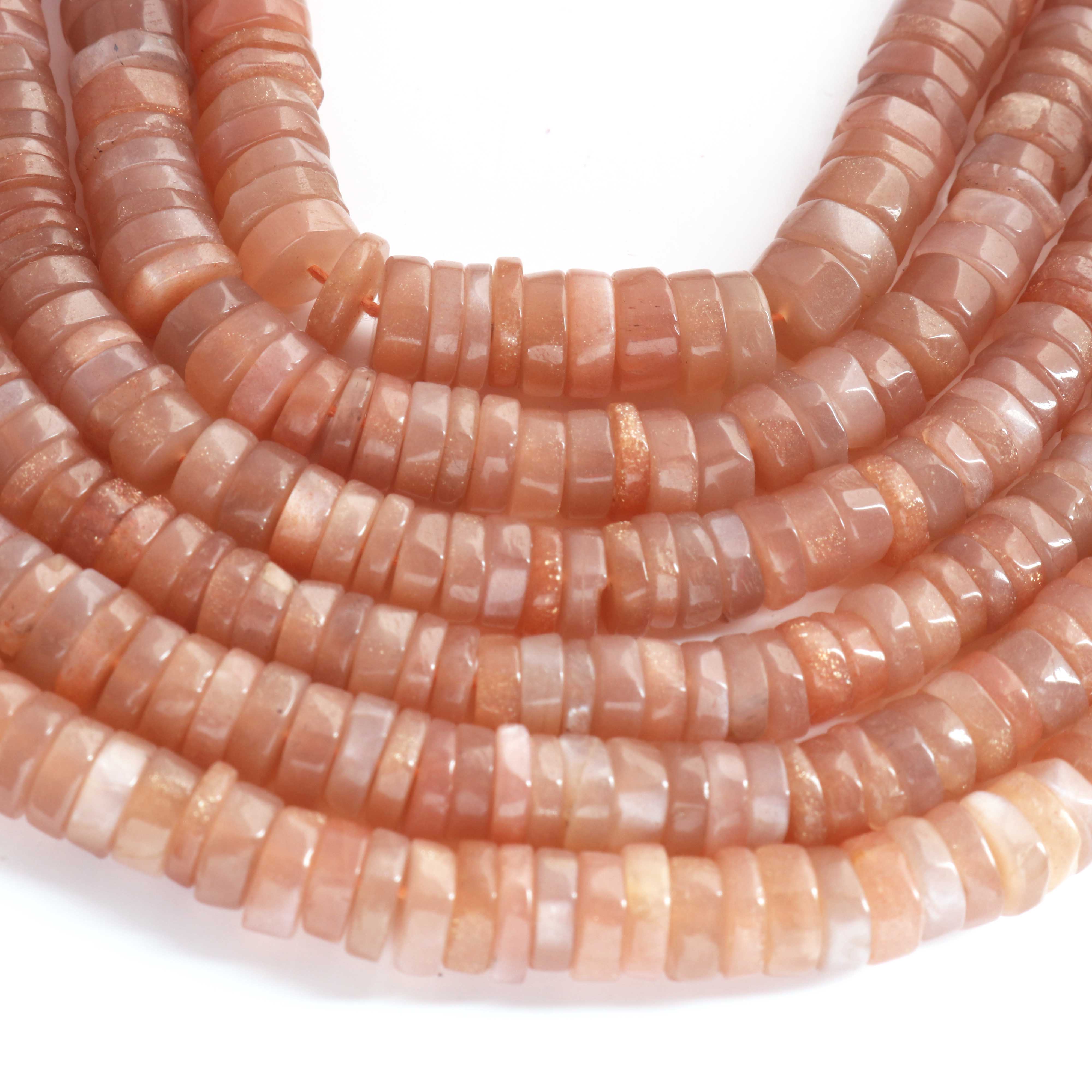 1 Strand AAA+ Peach MoonStone Smooth Tyre, Wheel Shape Beads - Heishi Shape Gemstone Beads 7mm-8mm 16 Inches BR03815