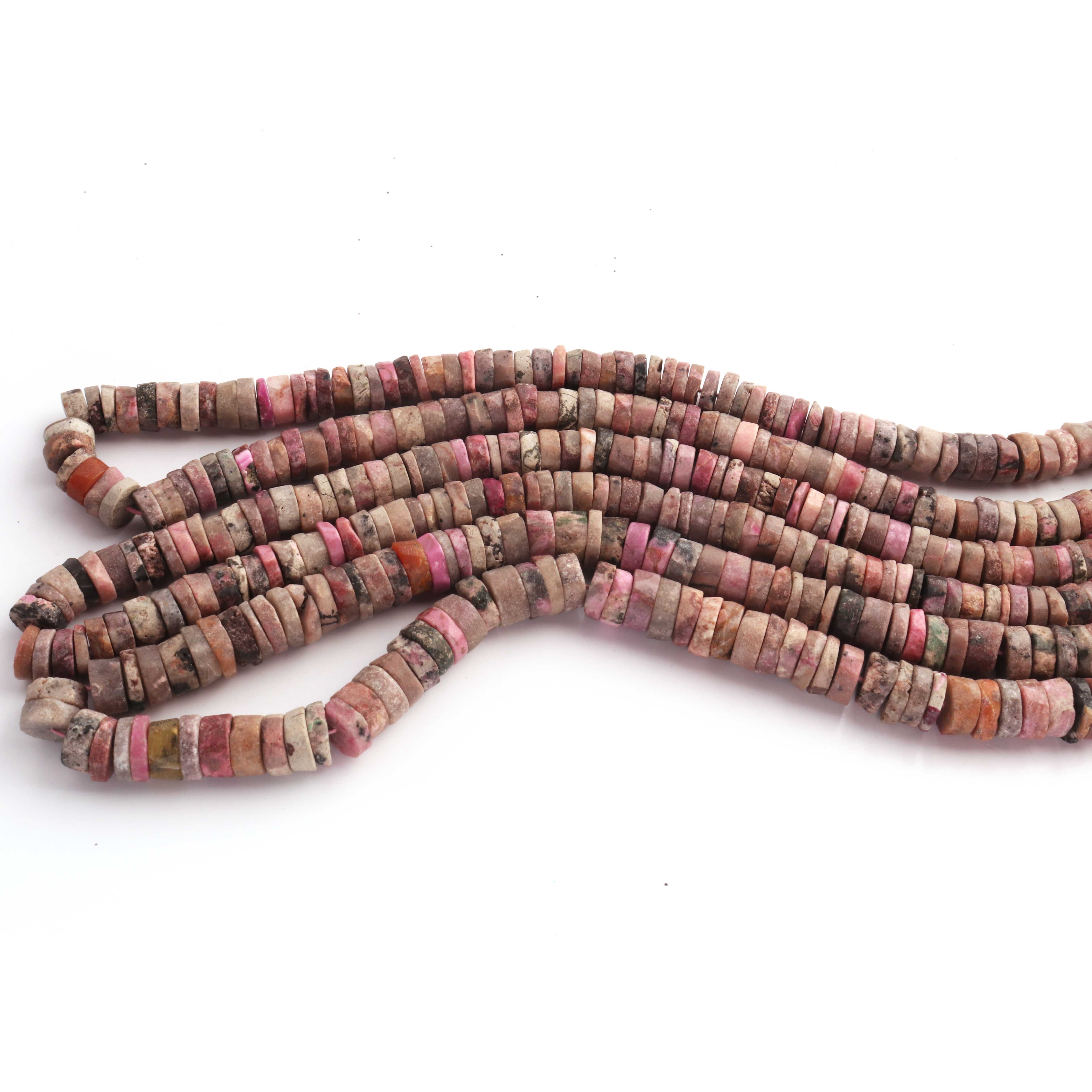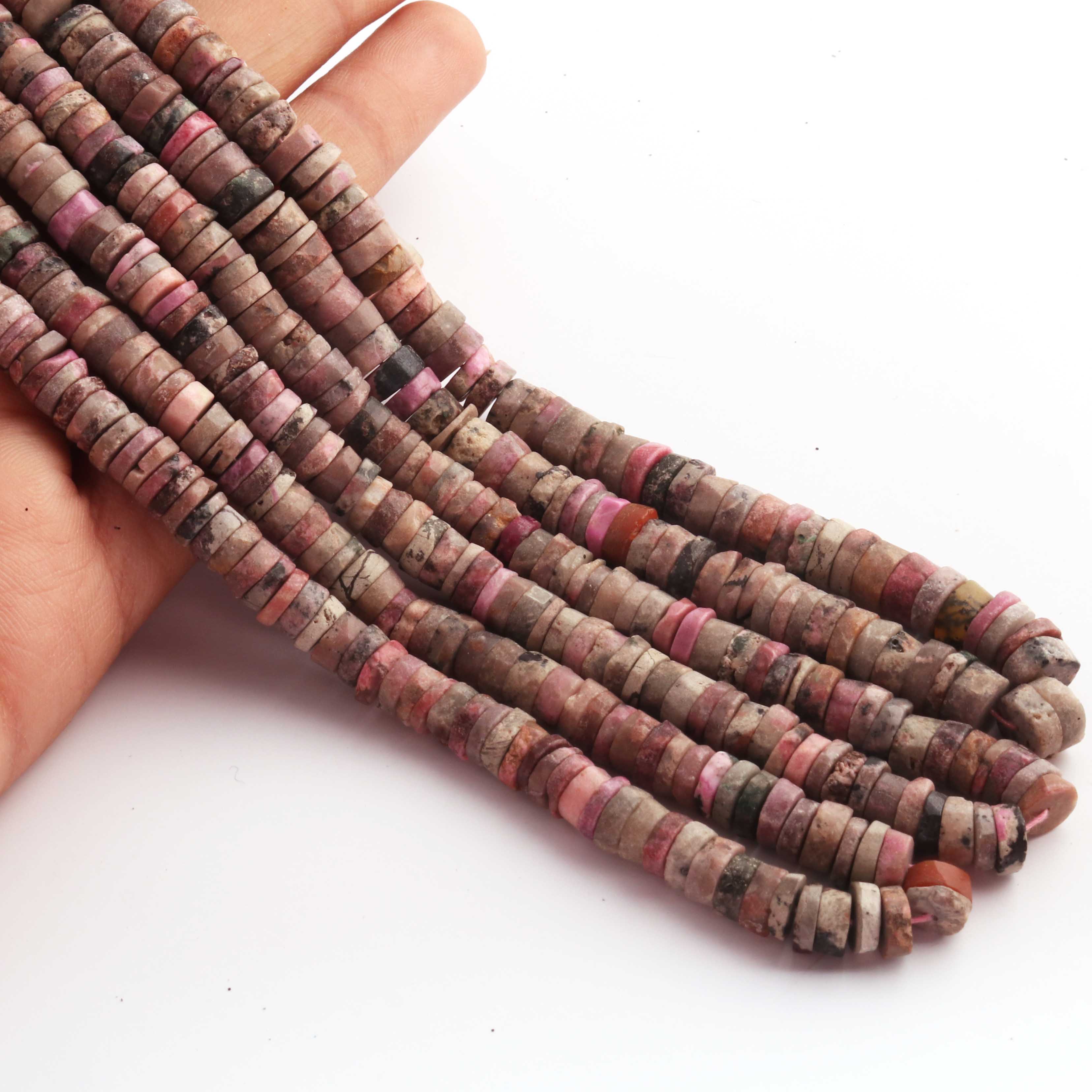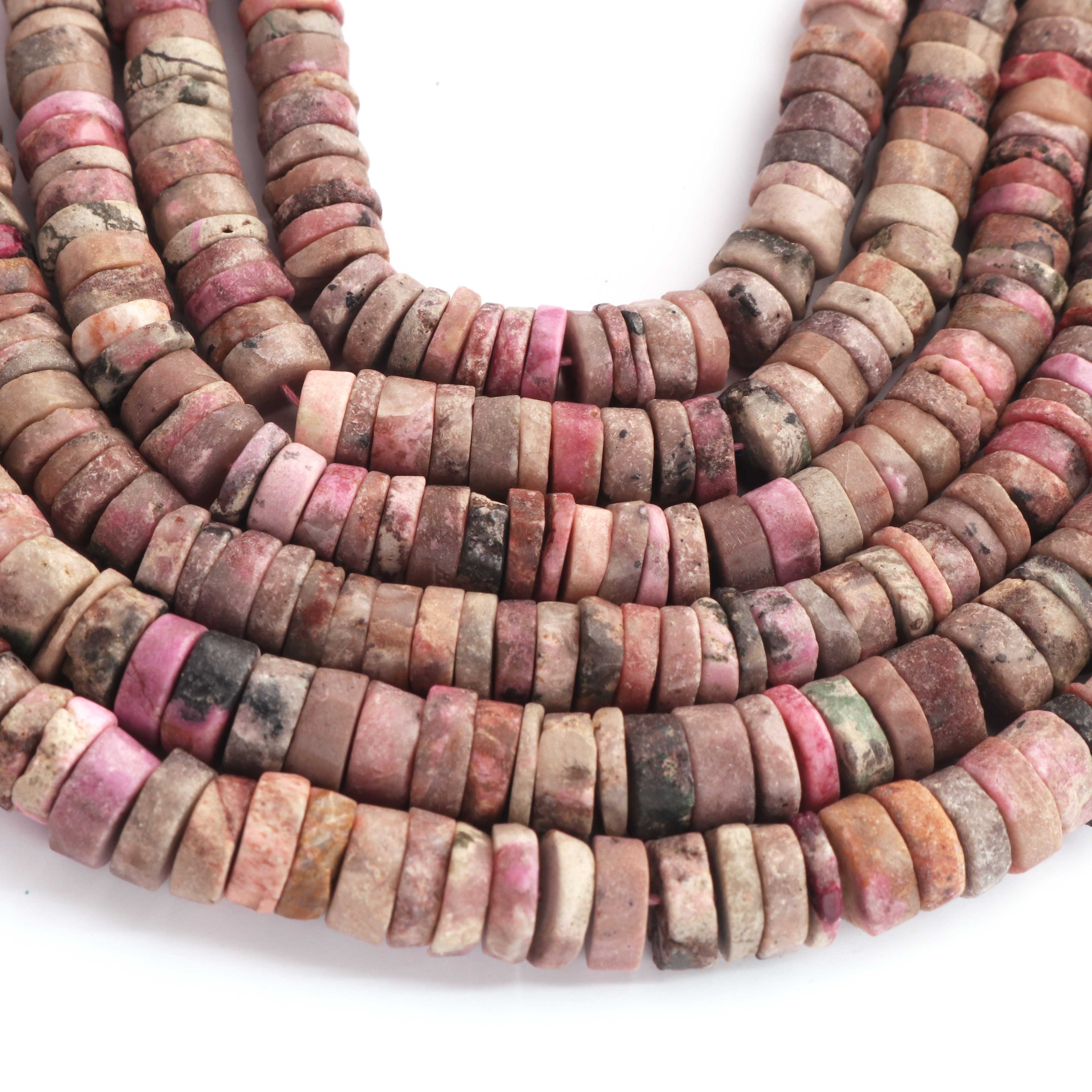 1 Strand AAA+ Rhodochrosite Smooth Tyre, Wheel Shape Beads - Heishi Shape Gemstone Beads 7mm-8mm 16 Inches BR03811