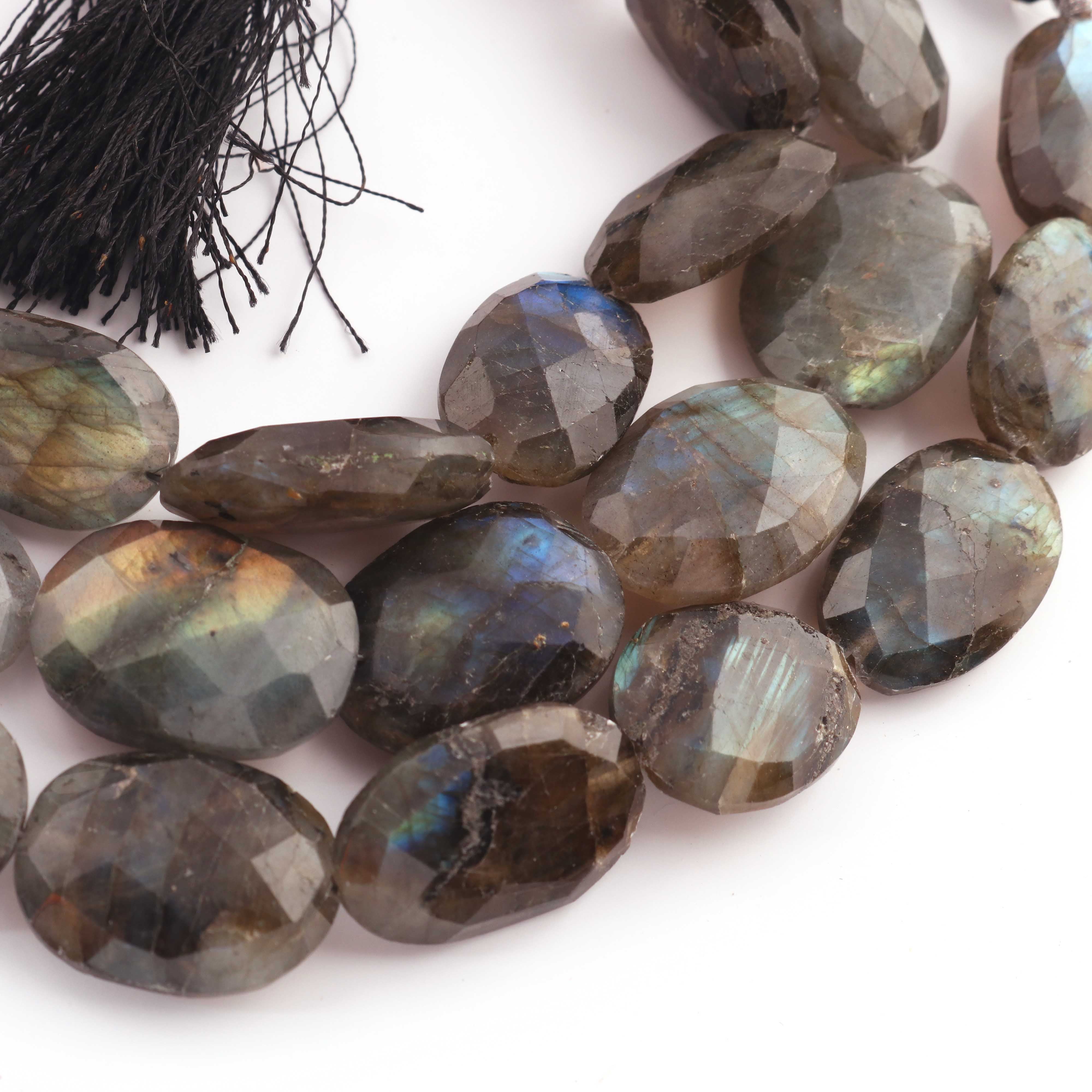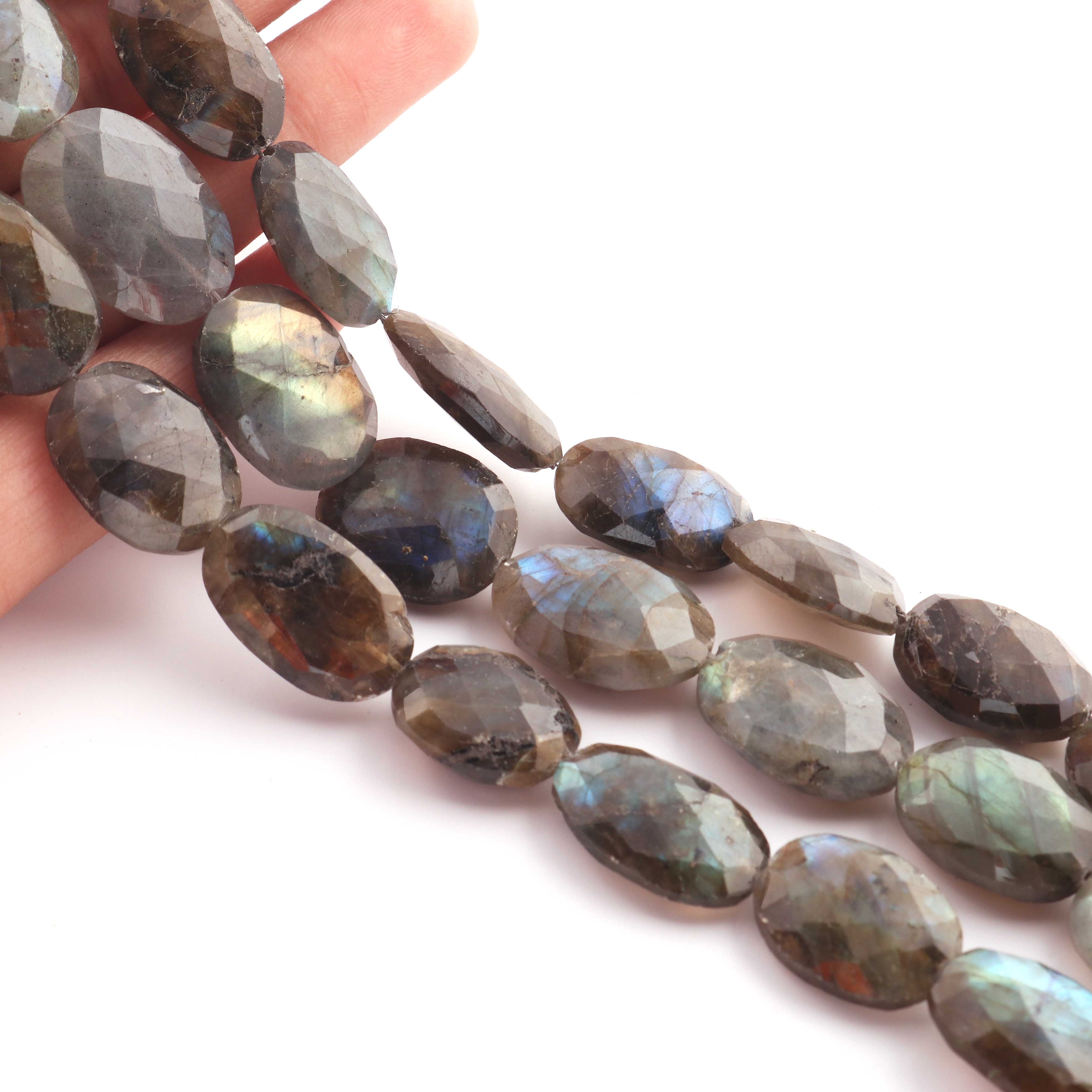 1 Strand Labradorite Faceted Oval shape Briolettes - - 17mmx14mm-23mmx16mm 9 Inches BR1812