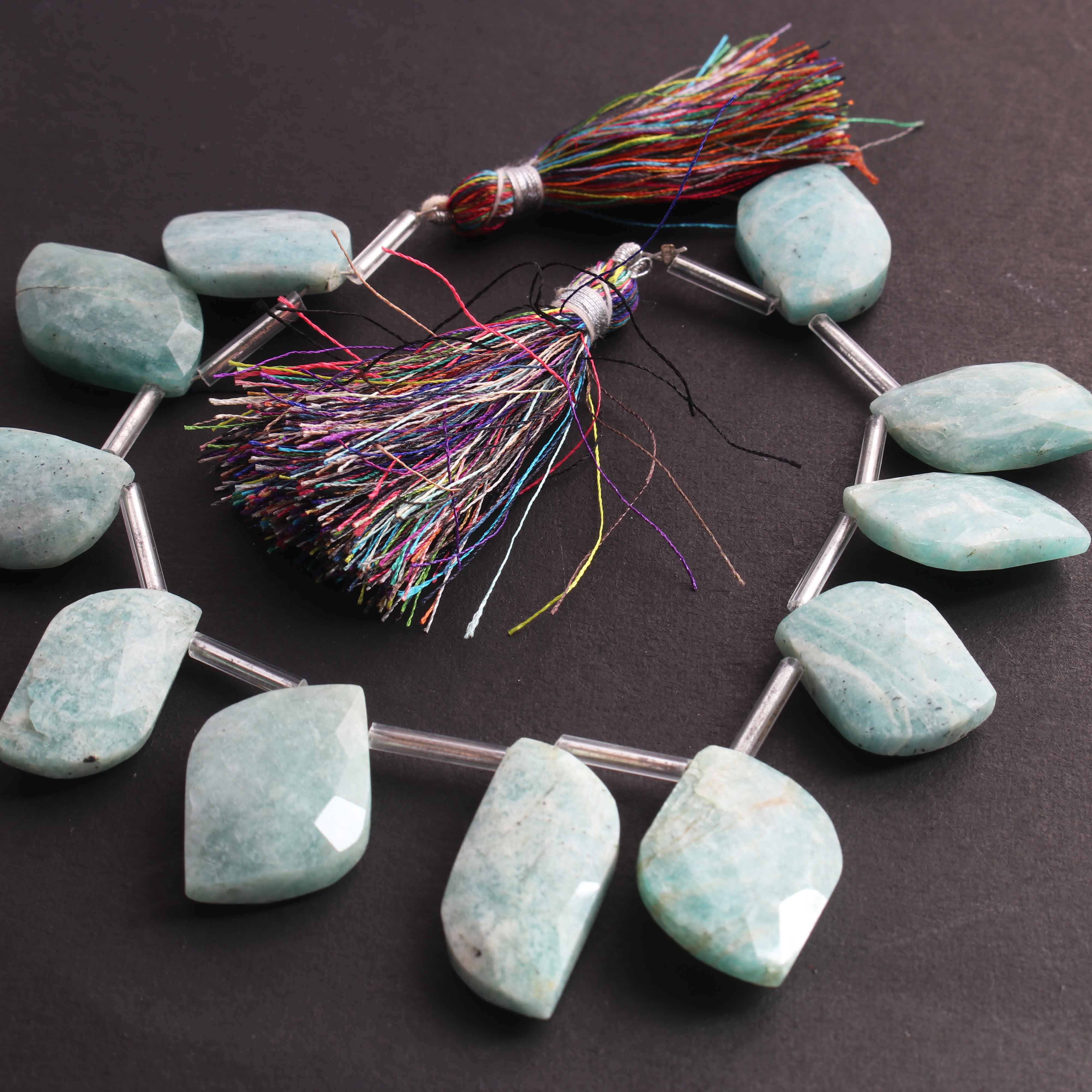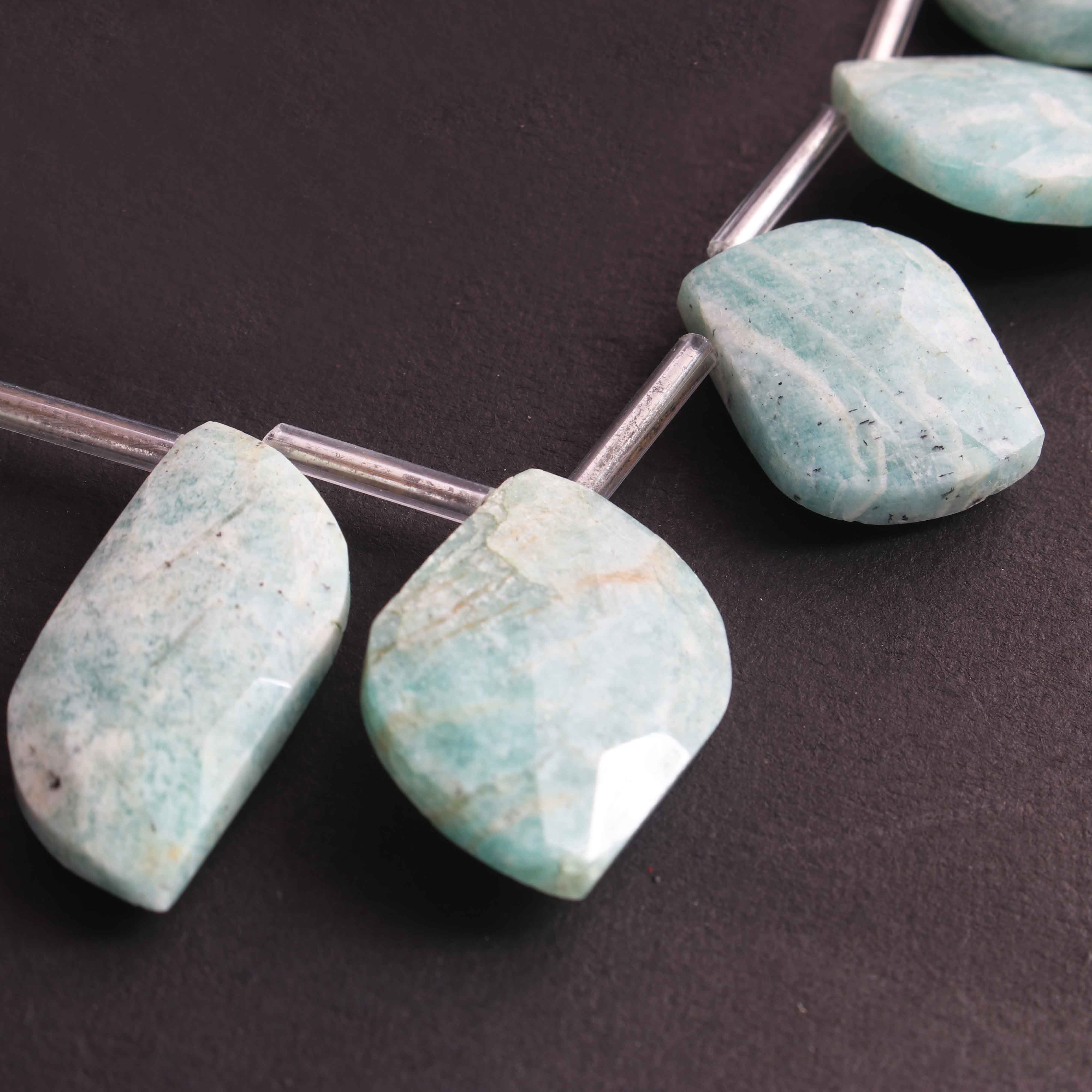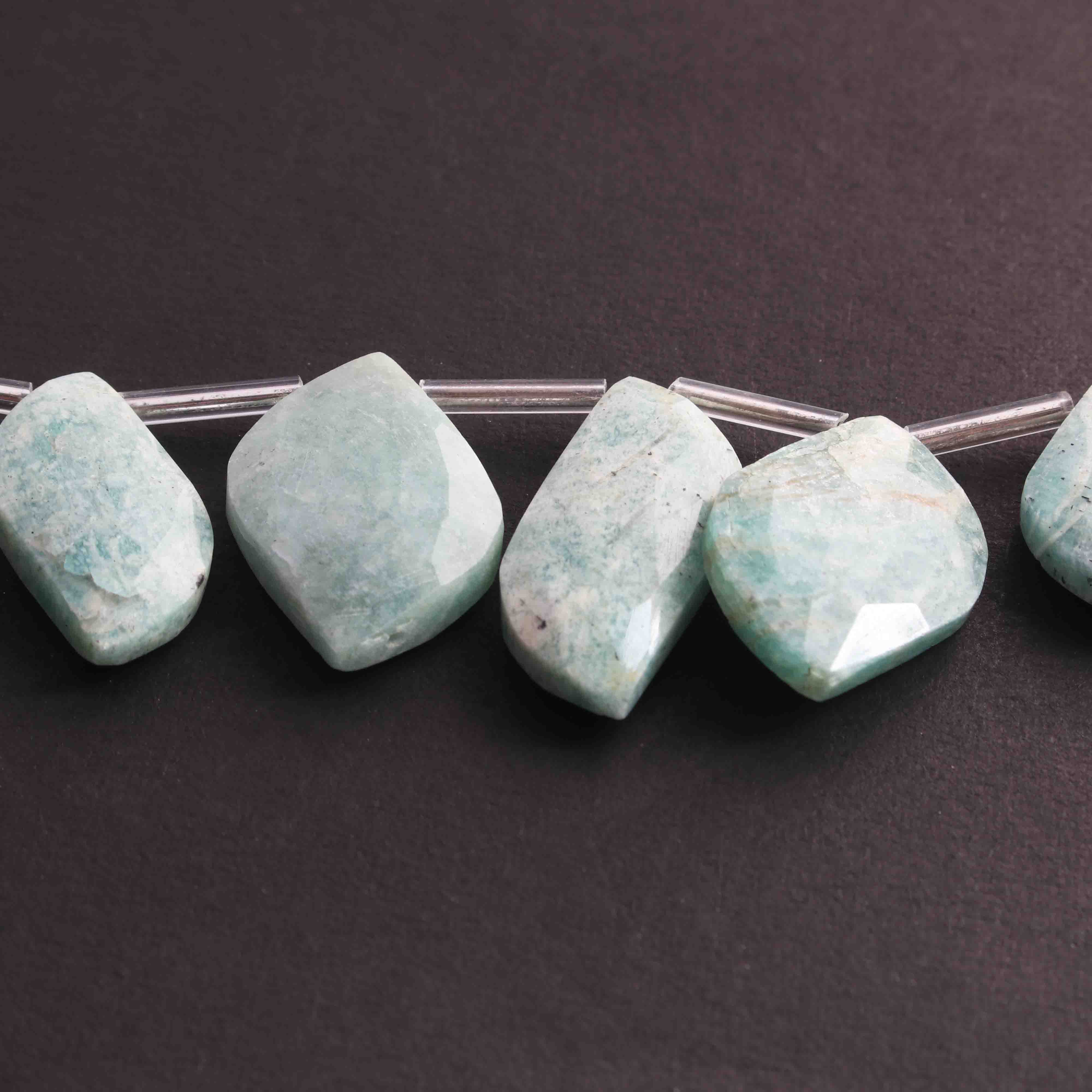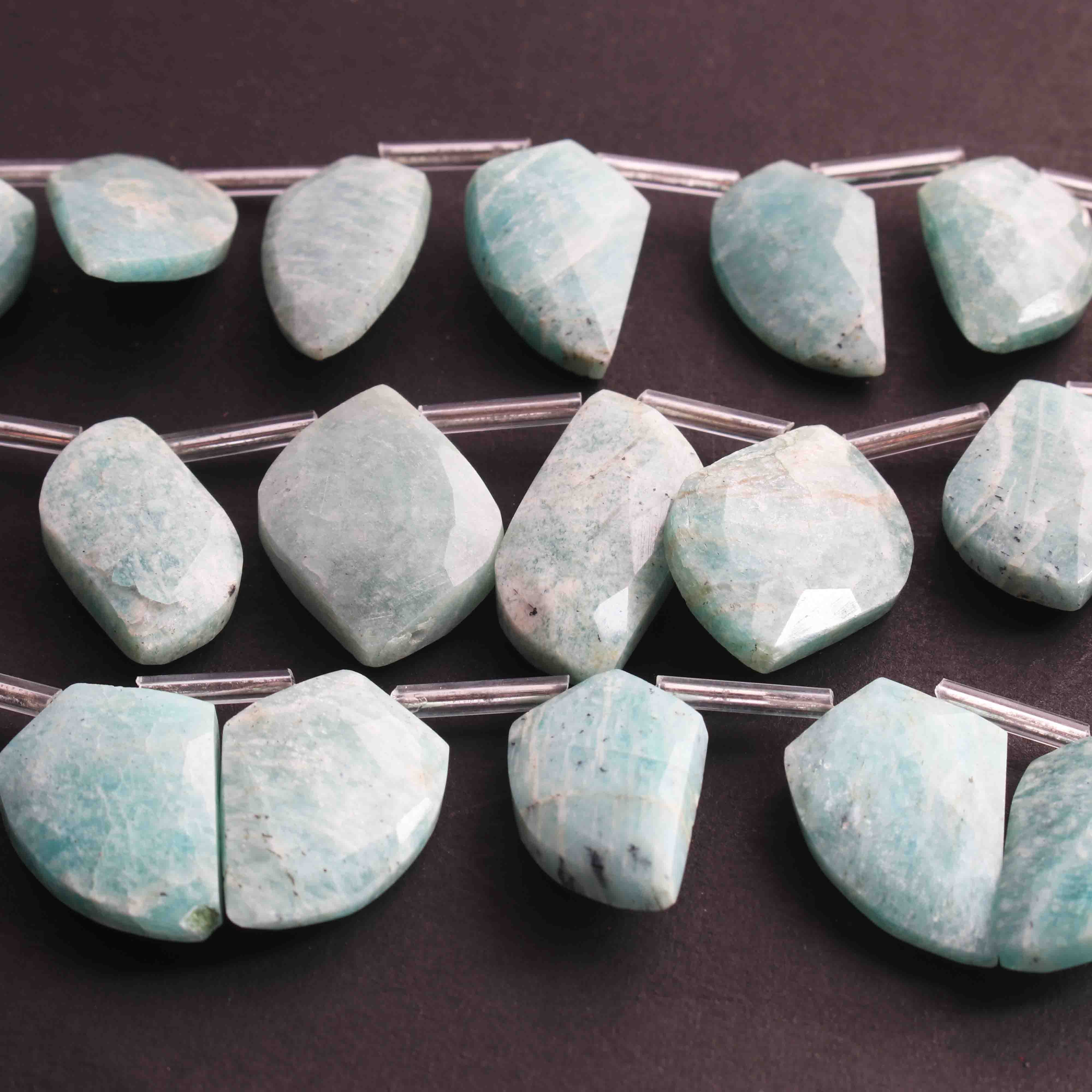 1 Long Strand Amazonite Faceted Briolettes - Fancy Shape Briolettes -21mmx13mm-24mmx14mm- 8 Inches BR02337