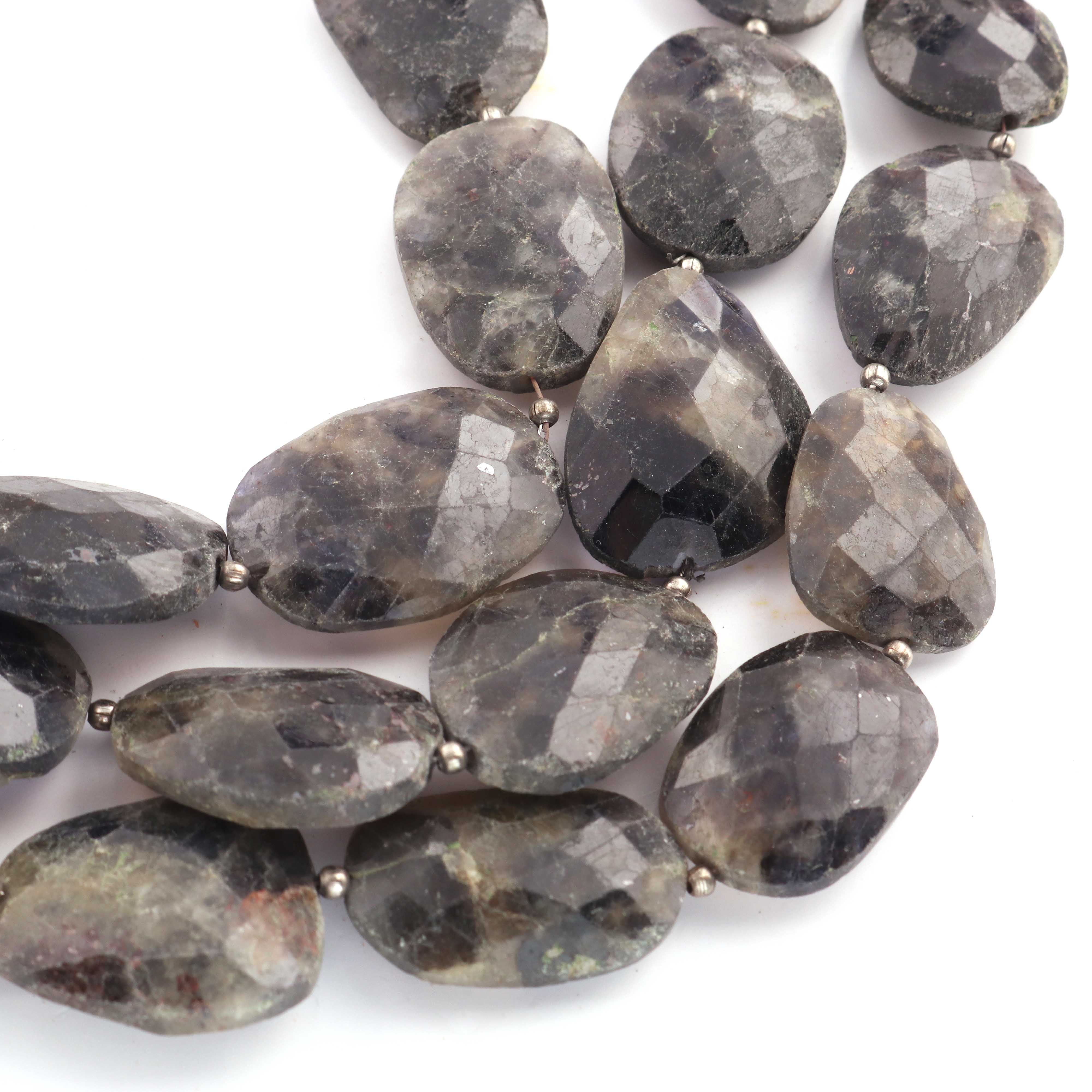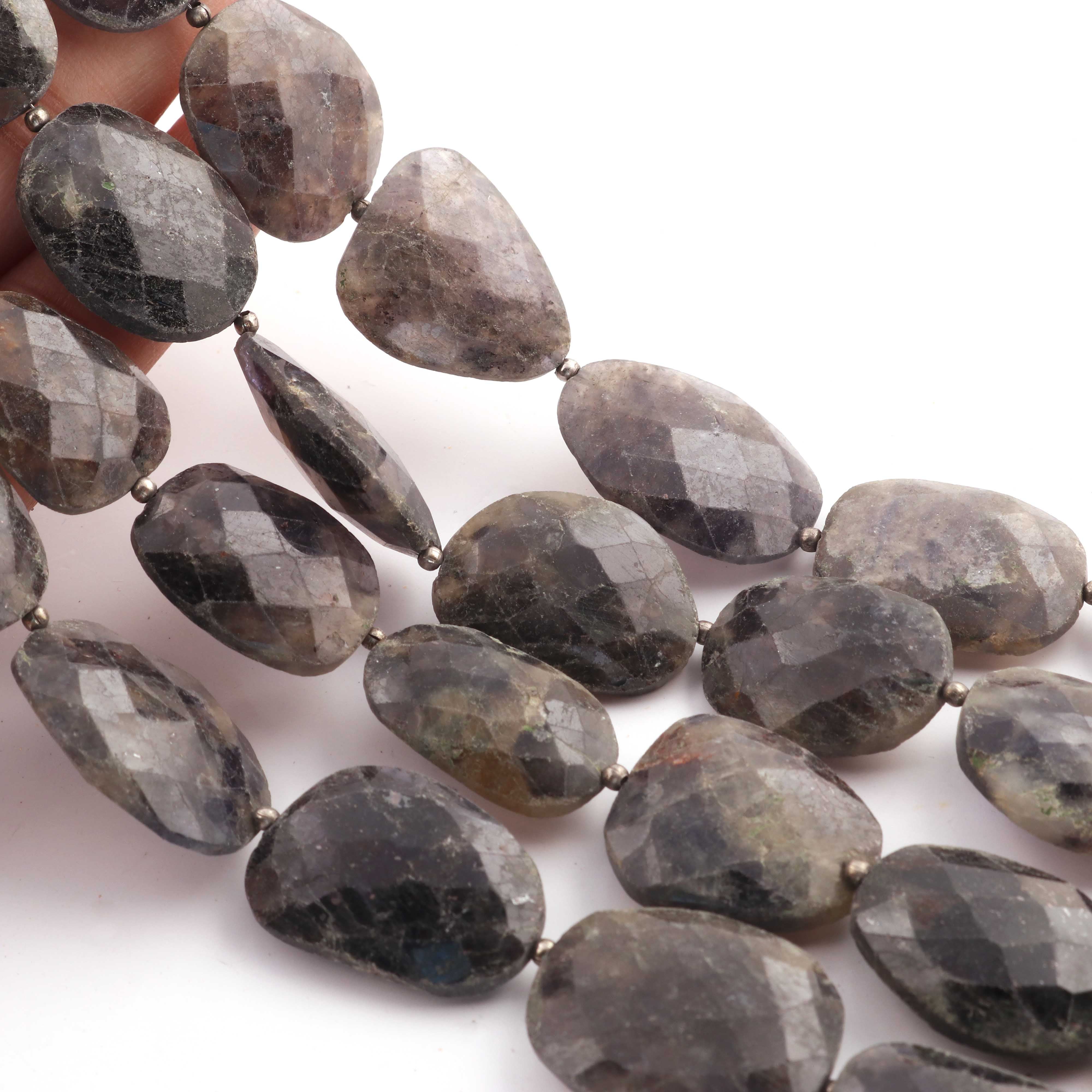 1 Long Strand Black Agate Faceted Assorted Briolettes - Assorted Briolettes 22mmx13mm-18mmx15mm-12 Inches BR1757