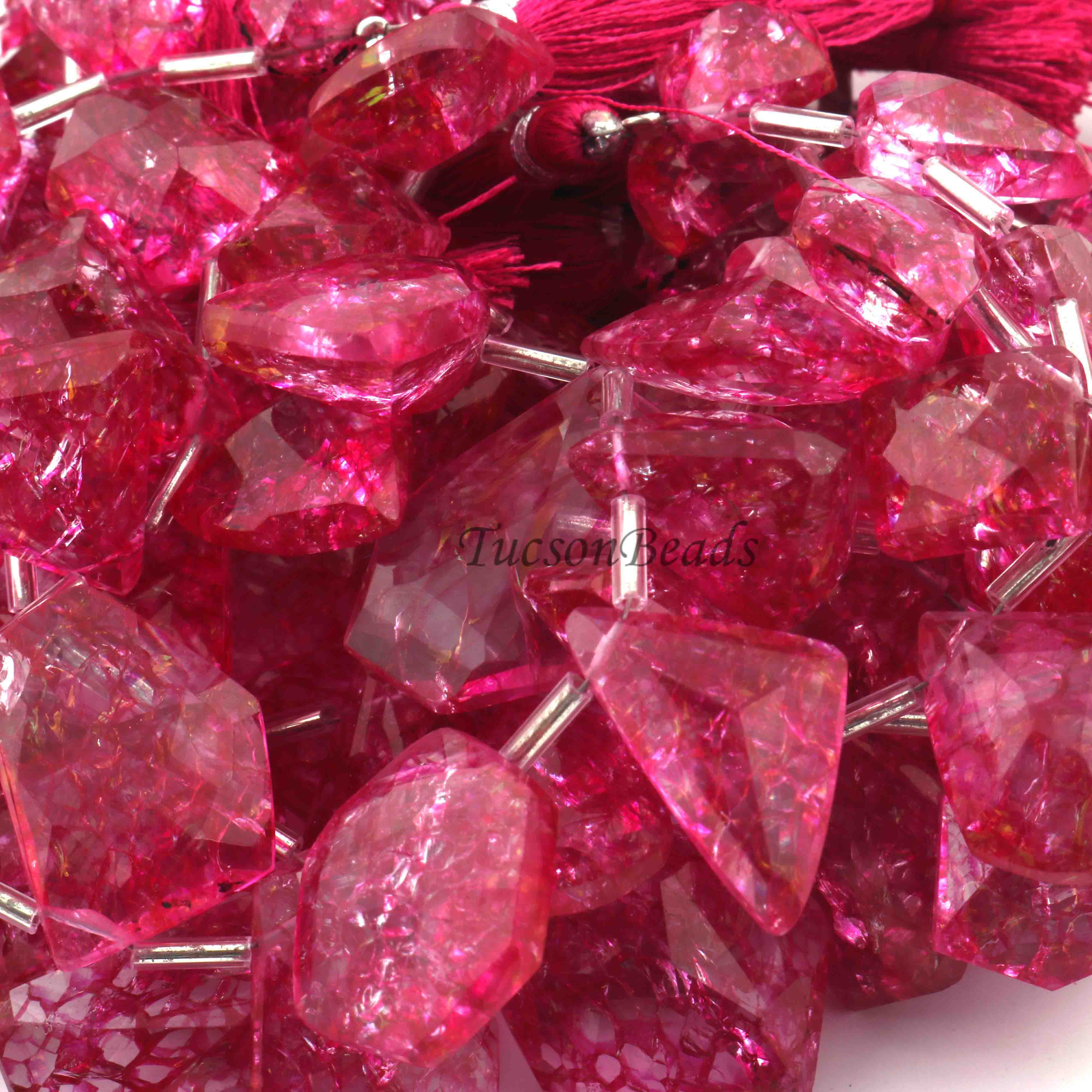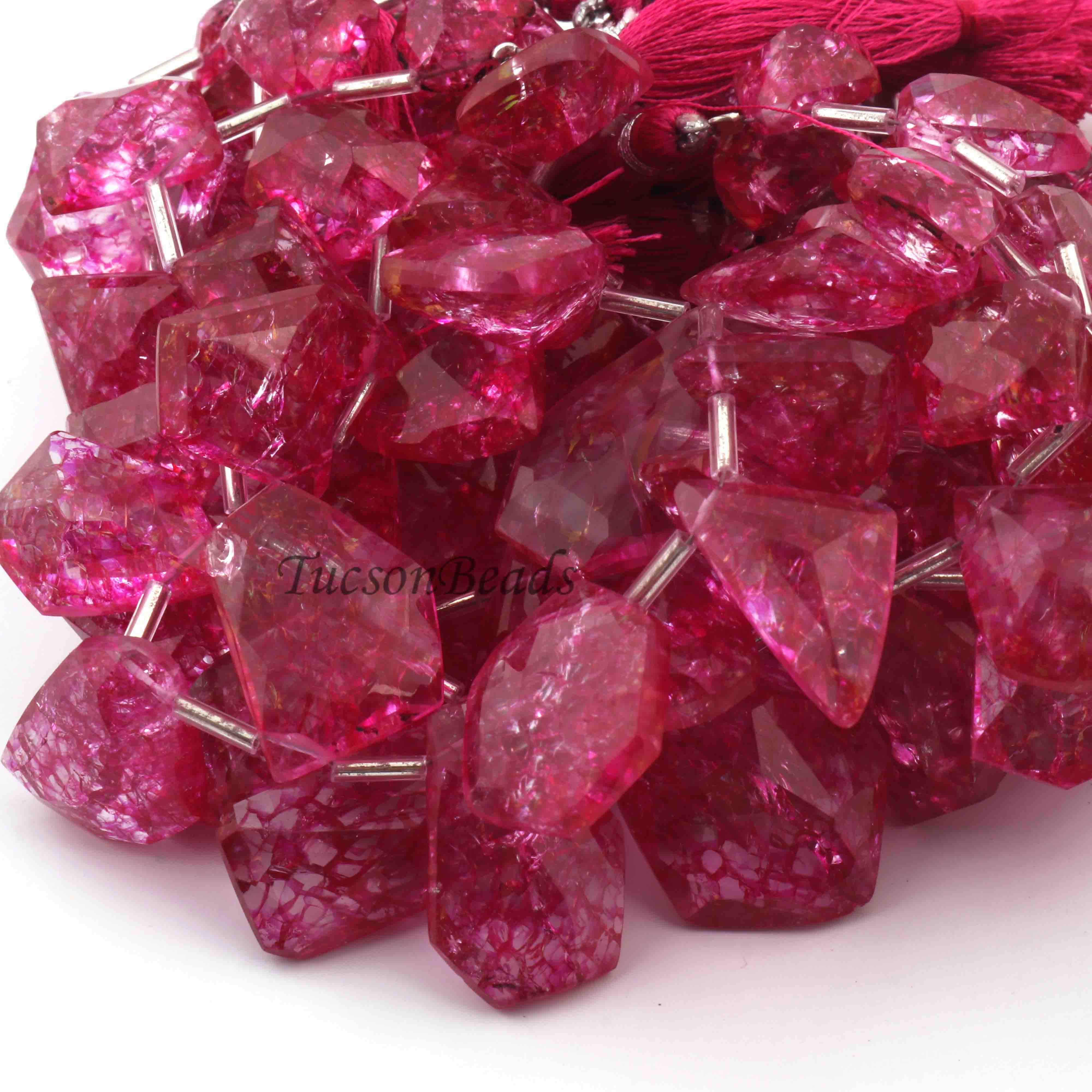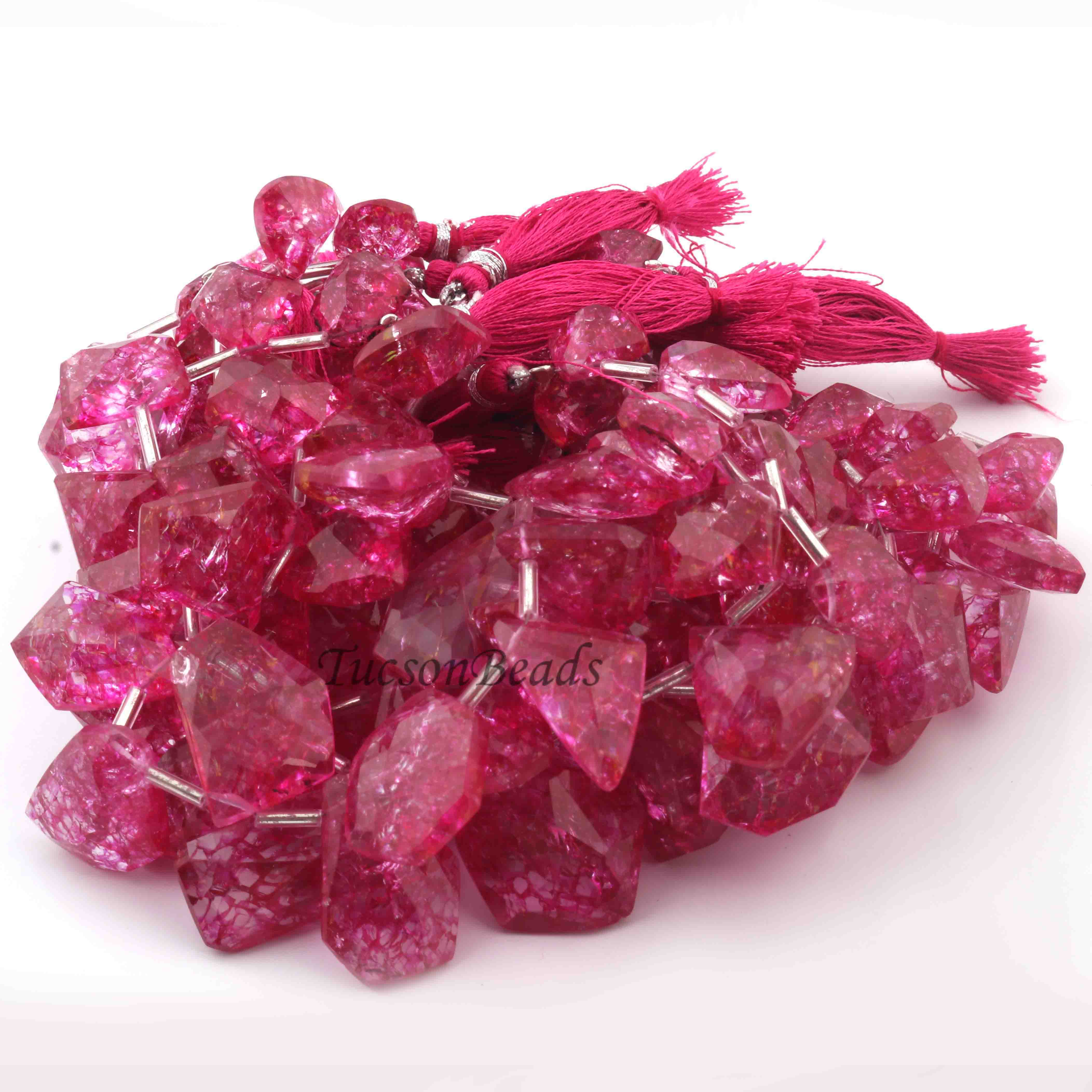 1 Long Strand Pink Crystal Faceted Briolettes-Fancy Shape Briolettes 31mmx25mm-10mmx11mm -8 Inches BR0263