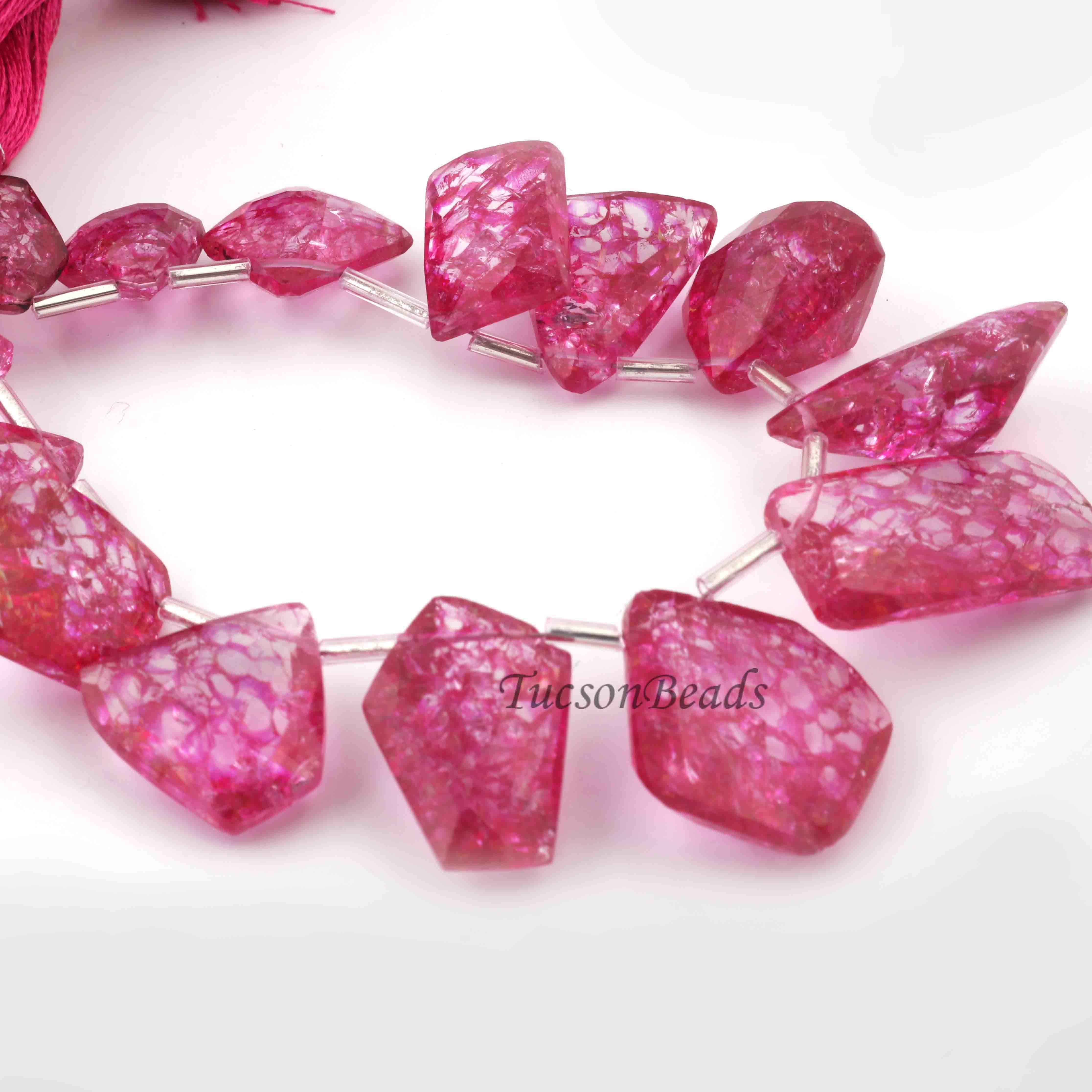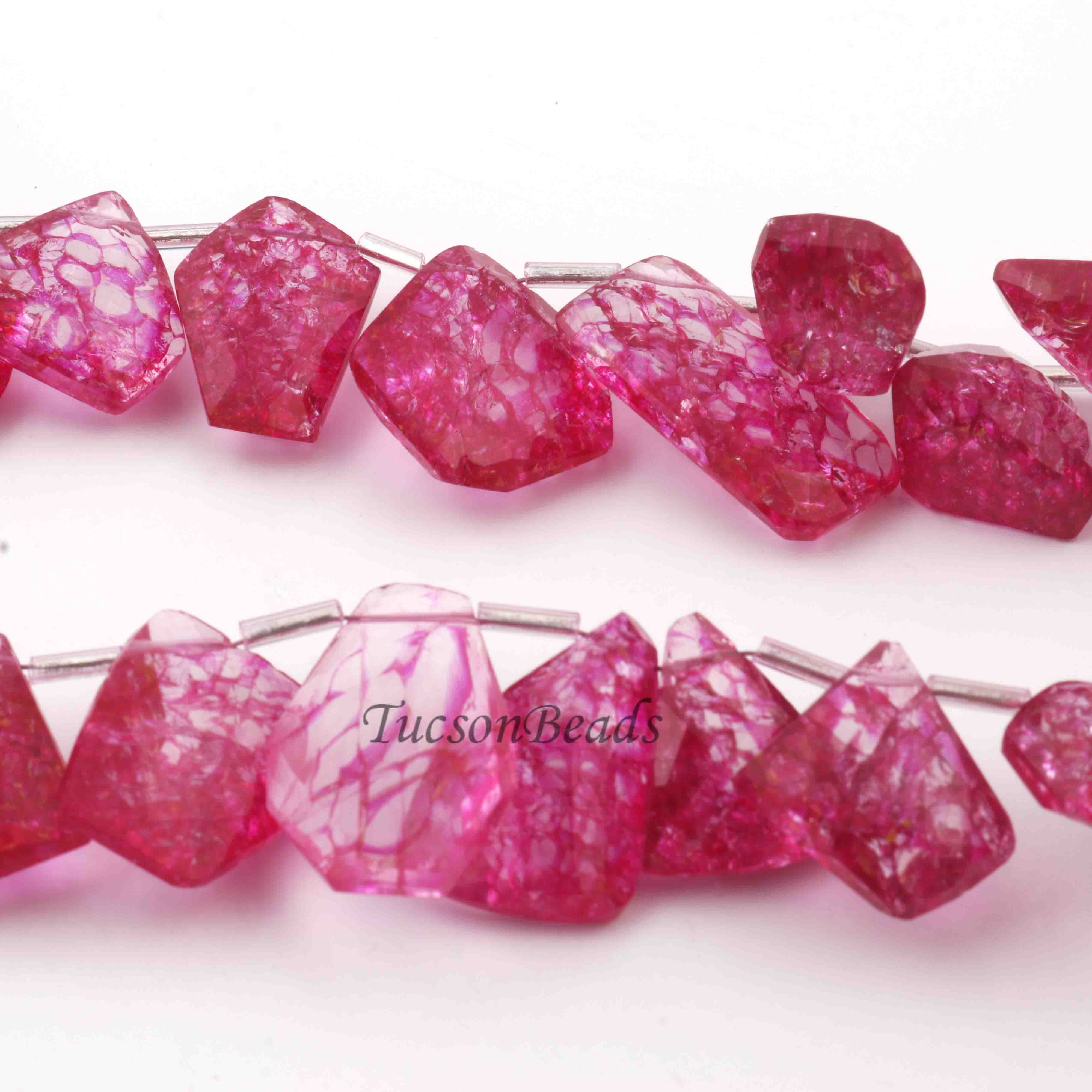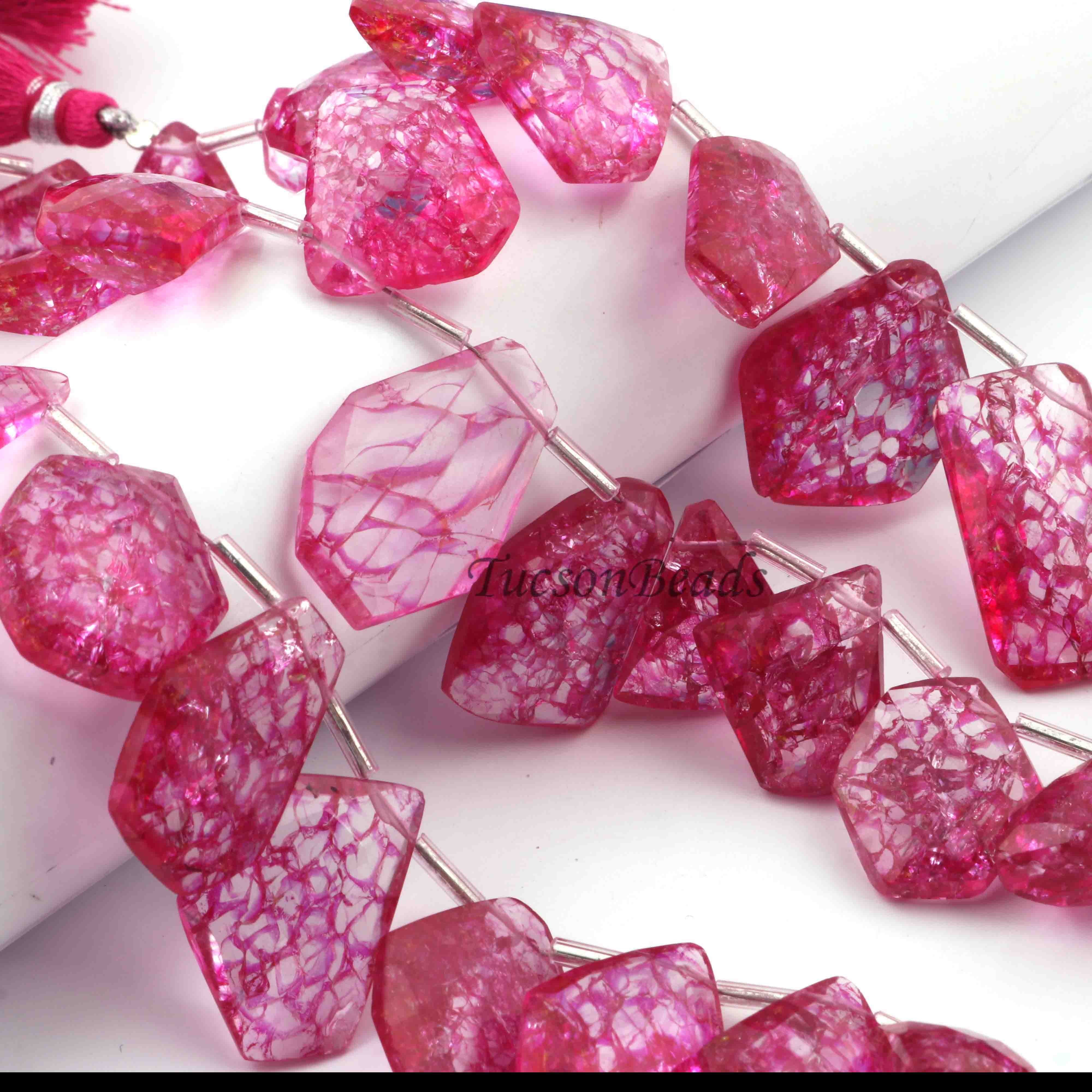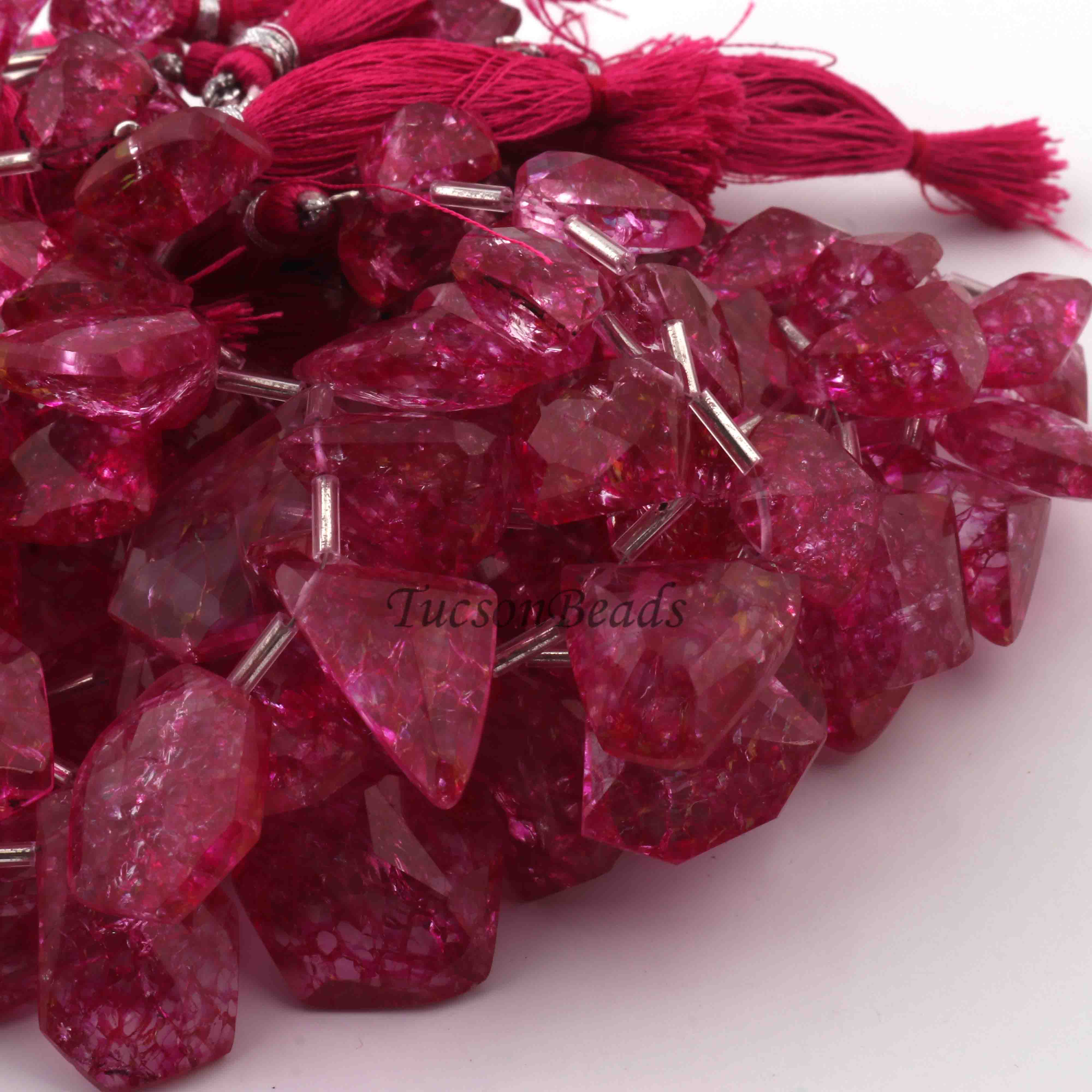 1 Long Strand Pink Crystal Faceted Briolettes-Fancy Shape Briolettes 31mmx25mm-10mmx11mm -8 Inches BR0263