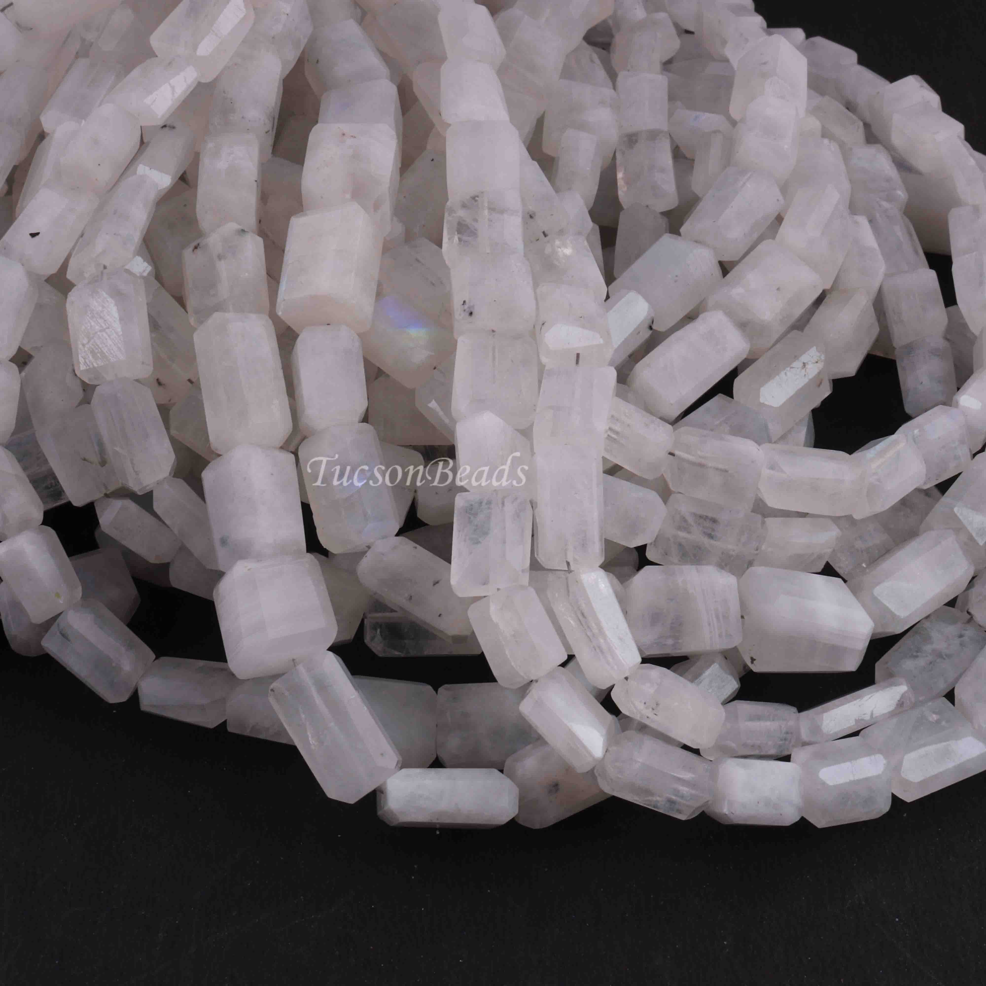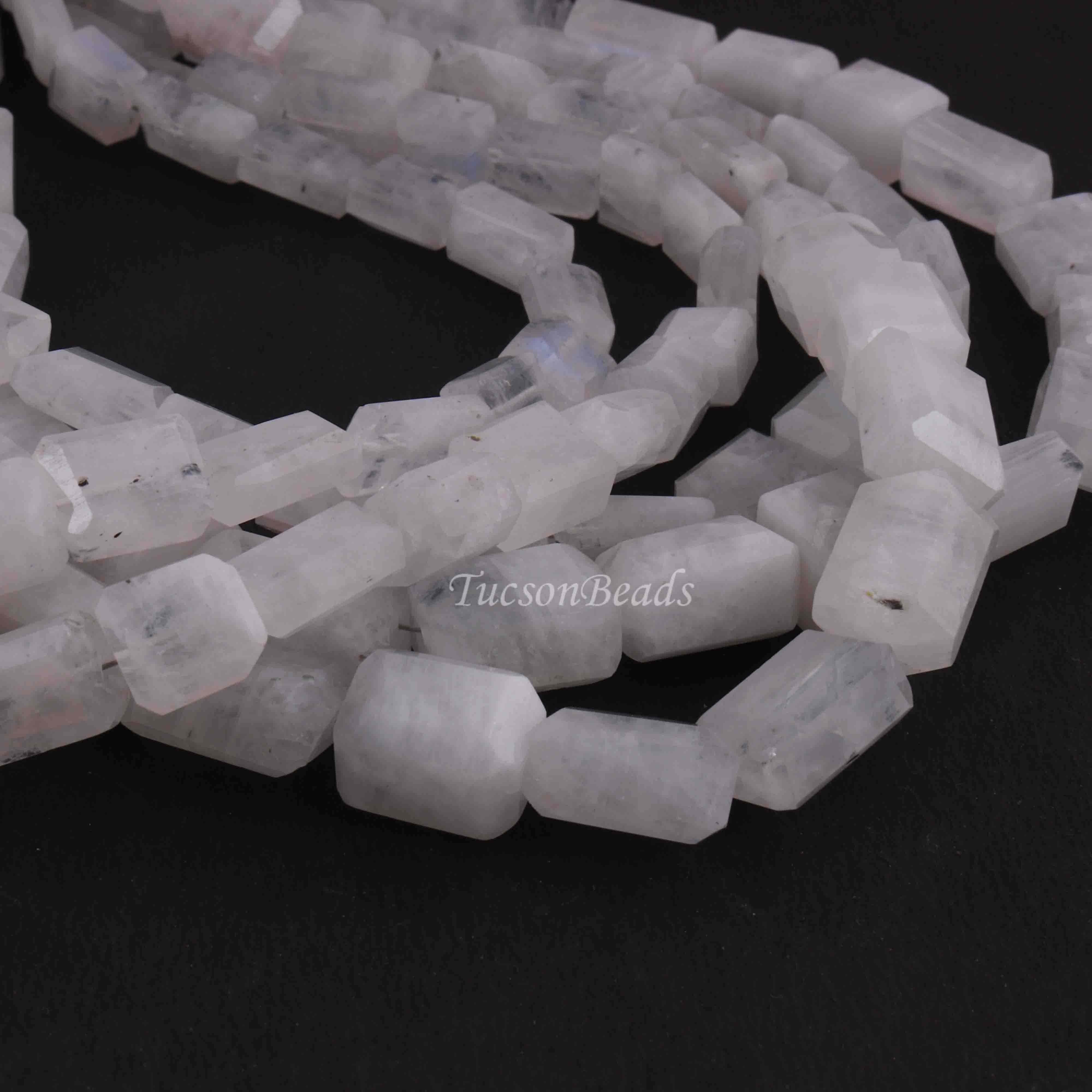 1 Long Strand White Rainbow Moonstone Faceted Tumbled Shape, Nuggets Beads , Step Cut , Briolettes - 15mmx10mm-9mmx5mm- 12.5 inches BR0030