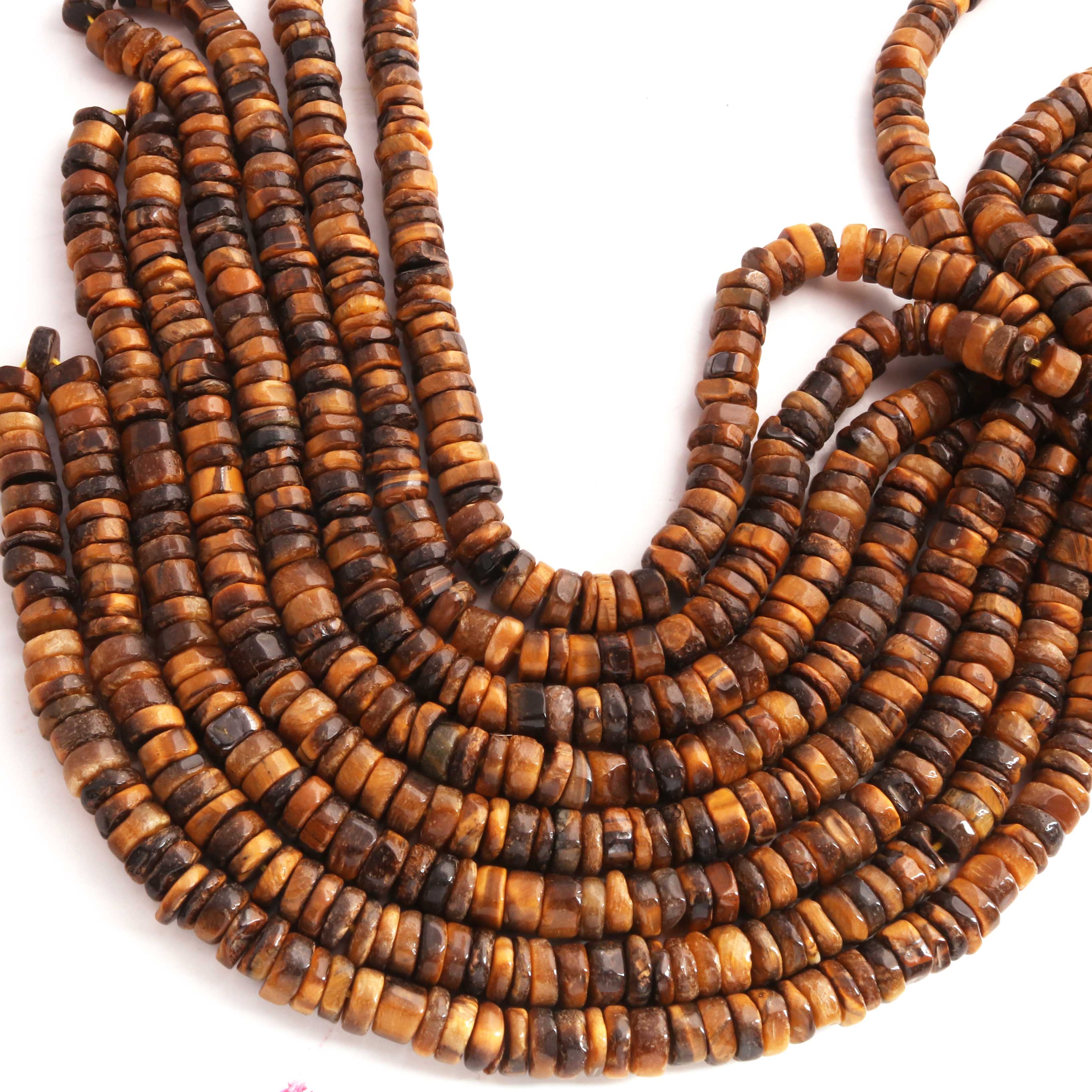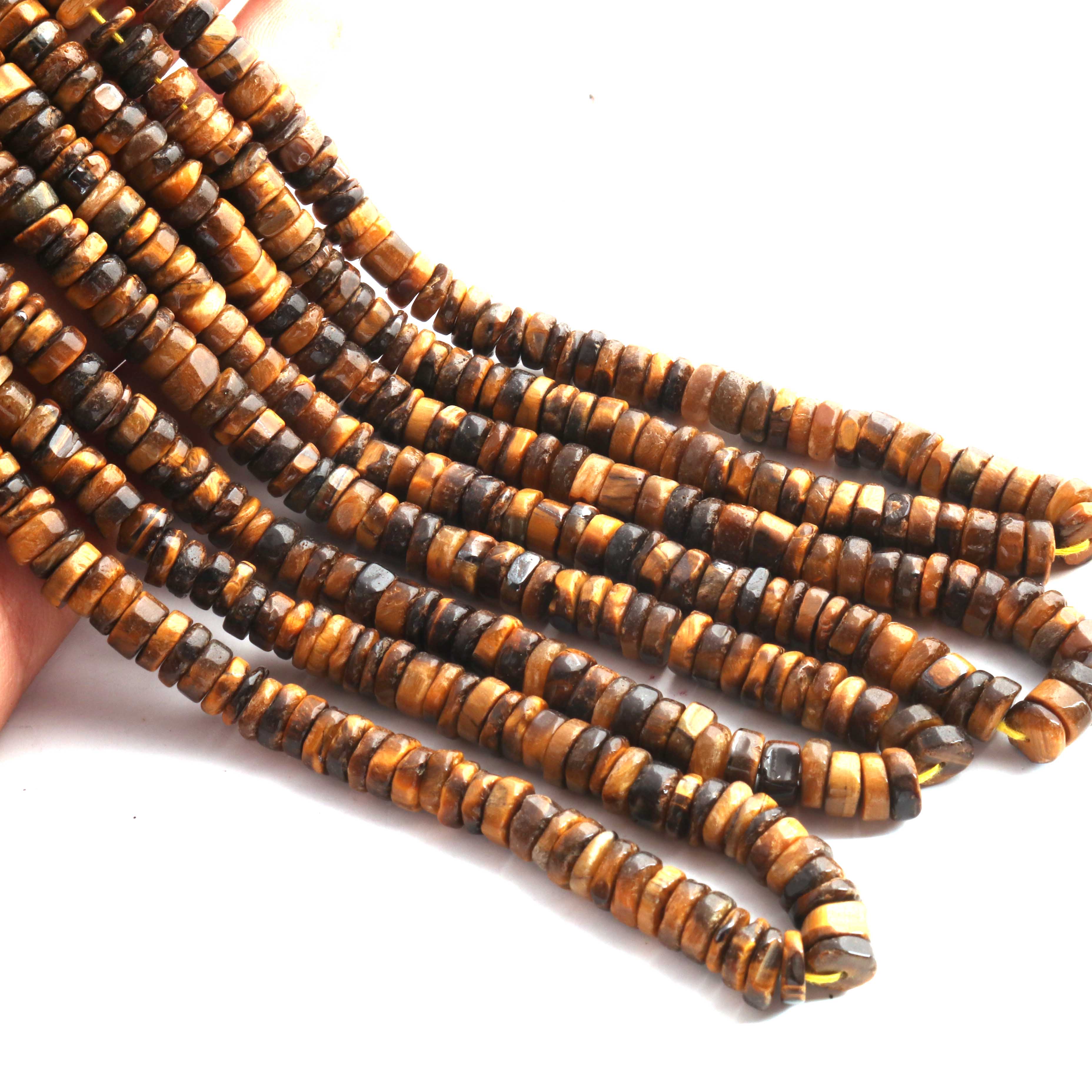 1 Strand AAA+ Brown Tiger Eye Smooth Tyre, Wheel Shape Beads - Heishi Shape Gemstone Beads 5mm-9mm 16 Inches BR03816