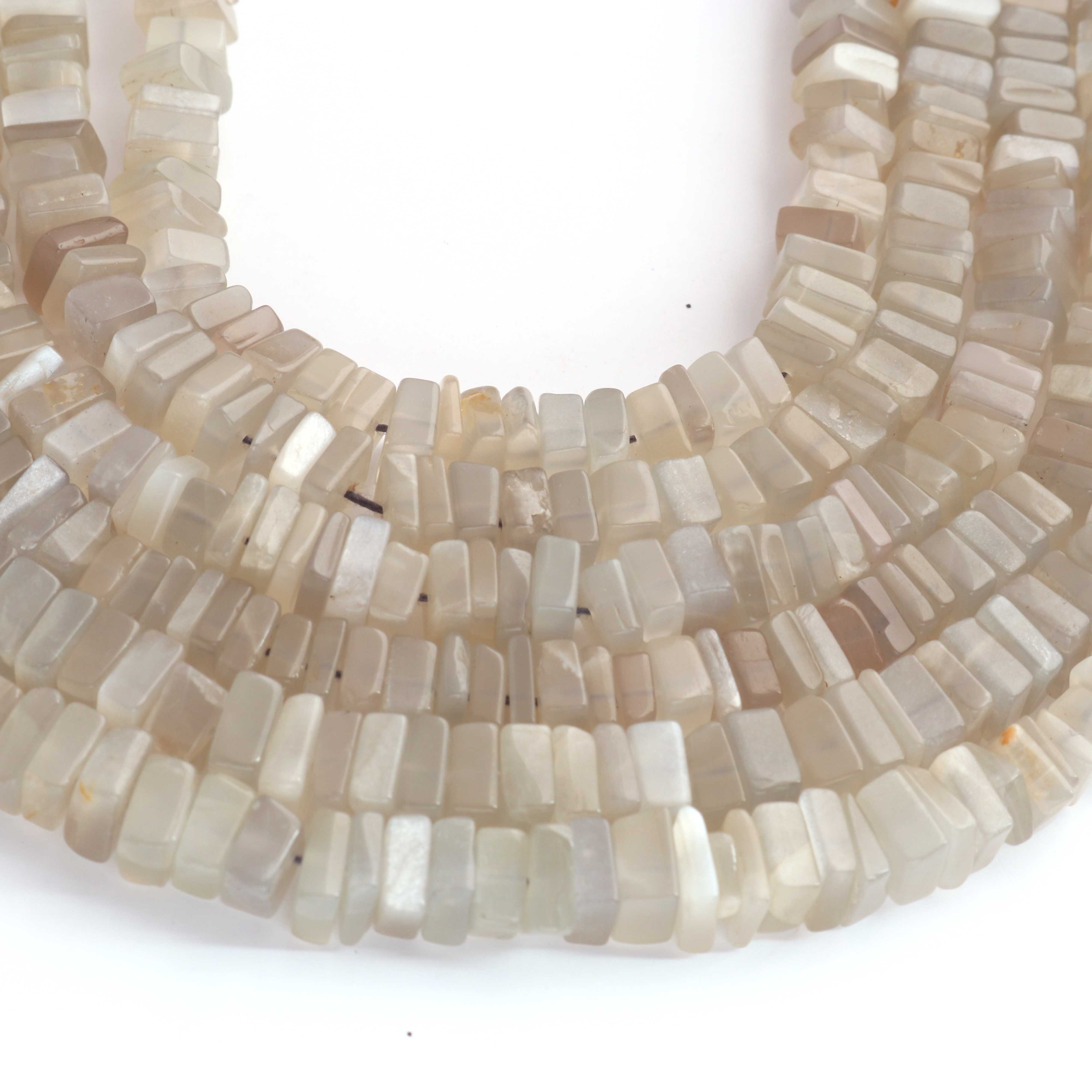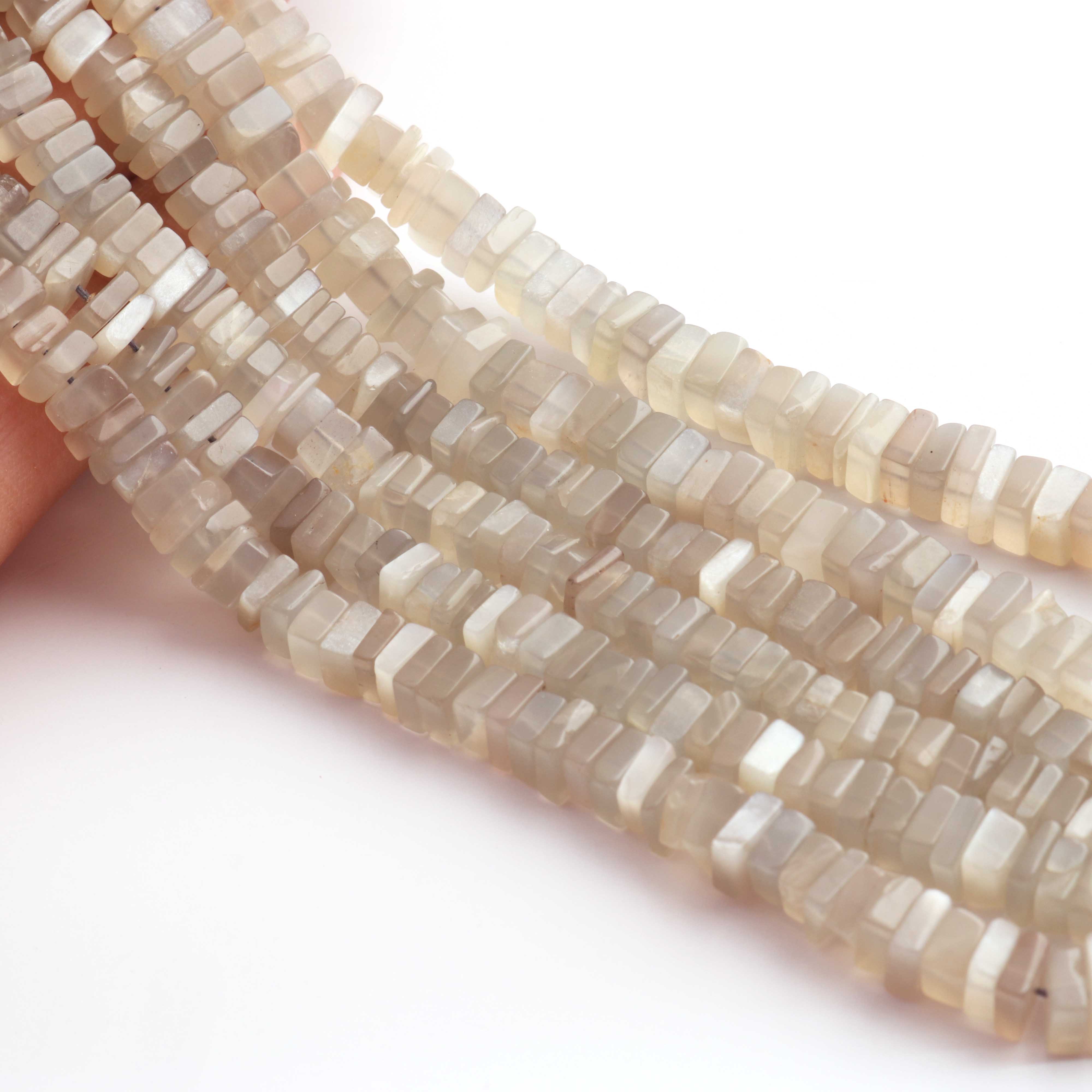 1 Strand AAA+ Grey Moonstone Smooth Square Heishi Shape Beads - Thin Chips Gemstone Beads 6mm-7mm 16 Inches BR03807