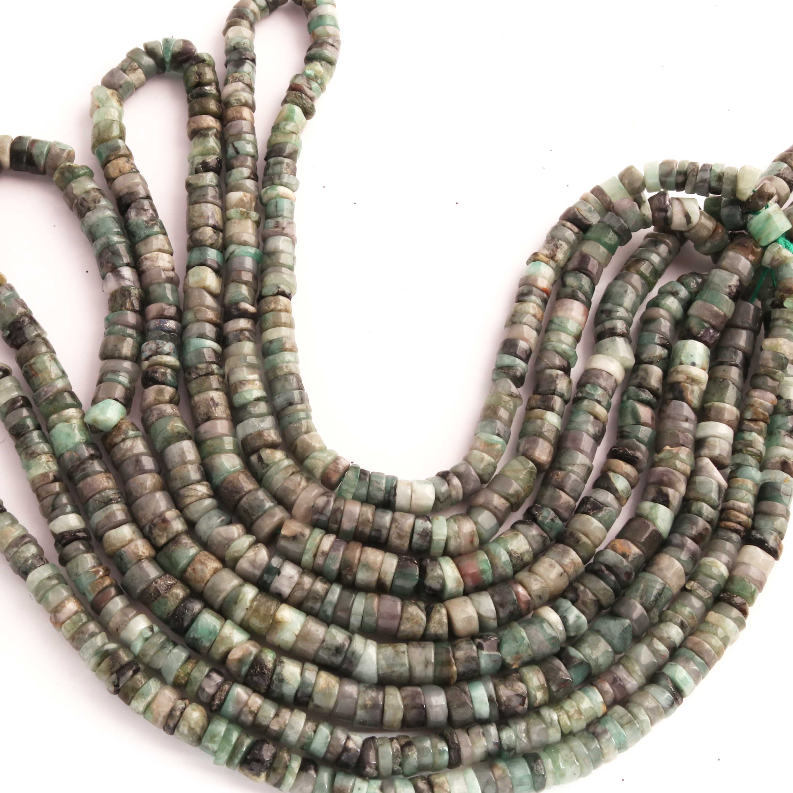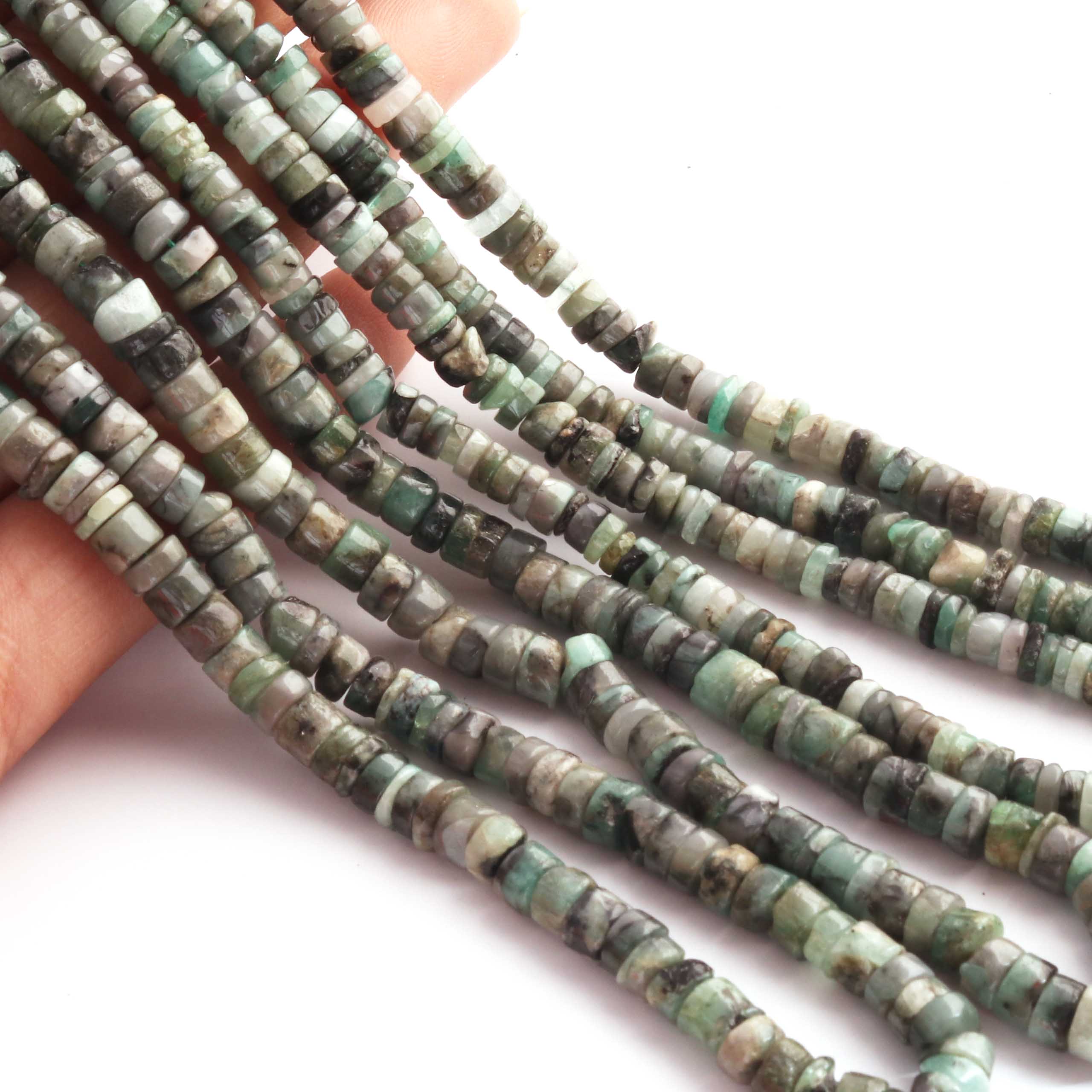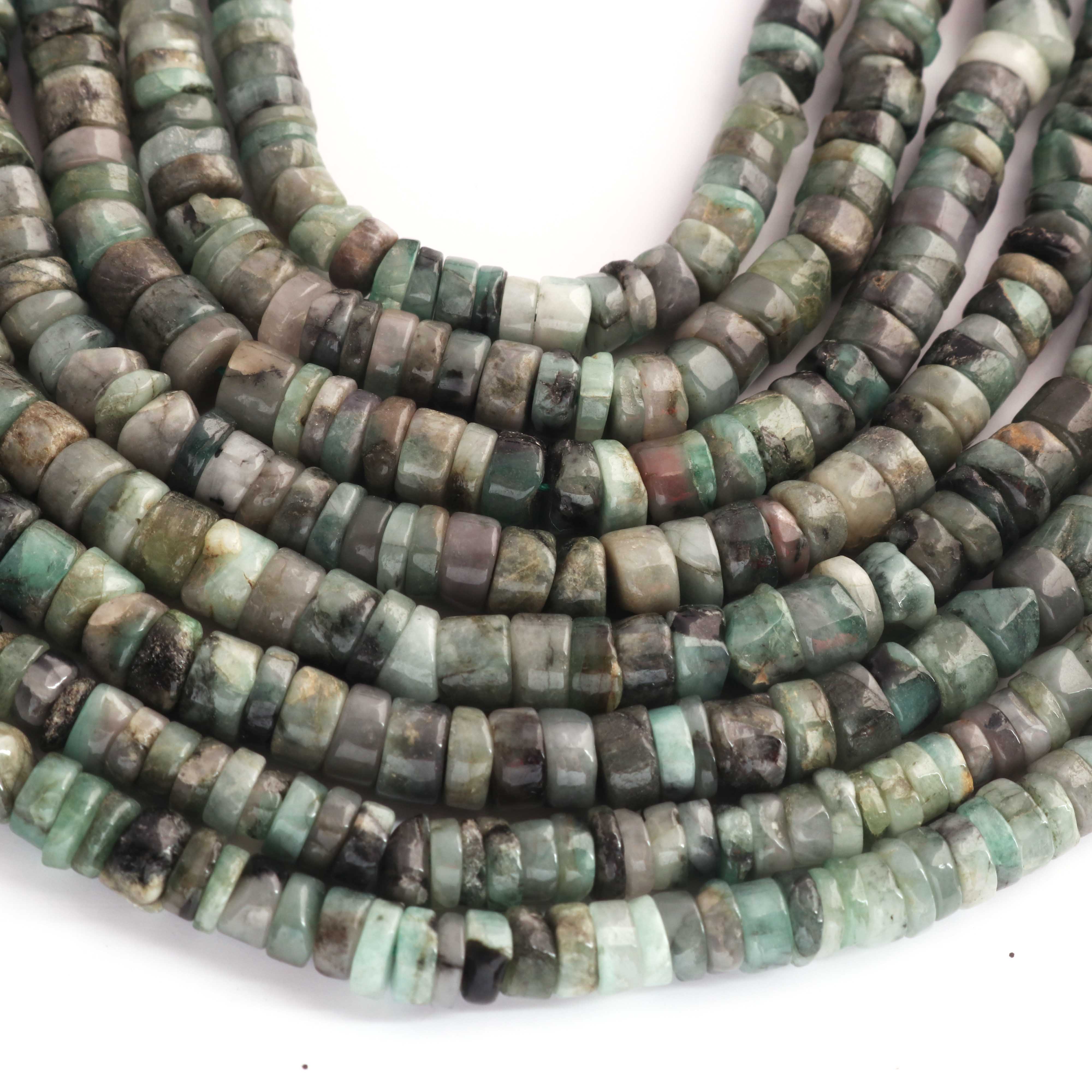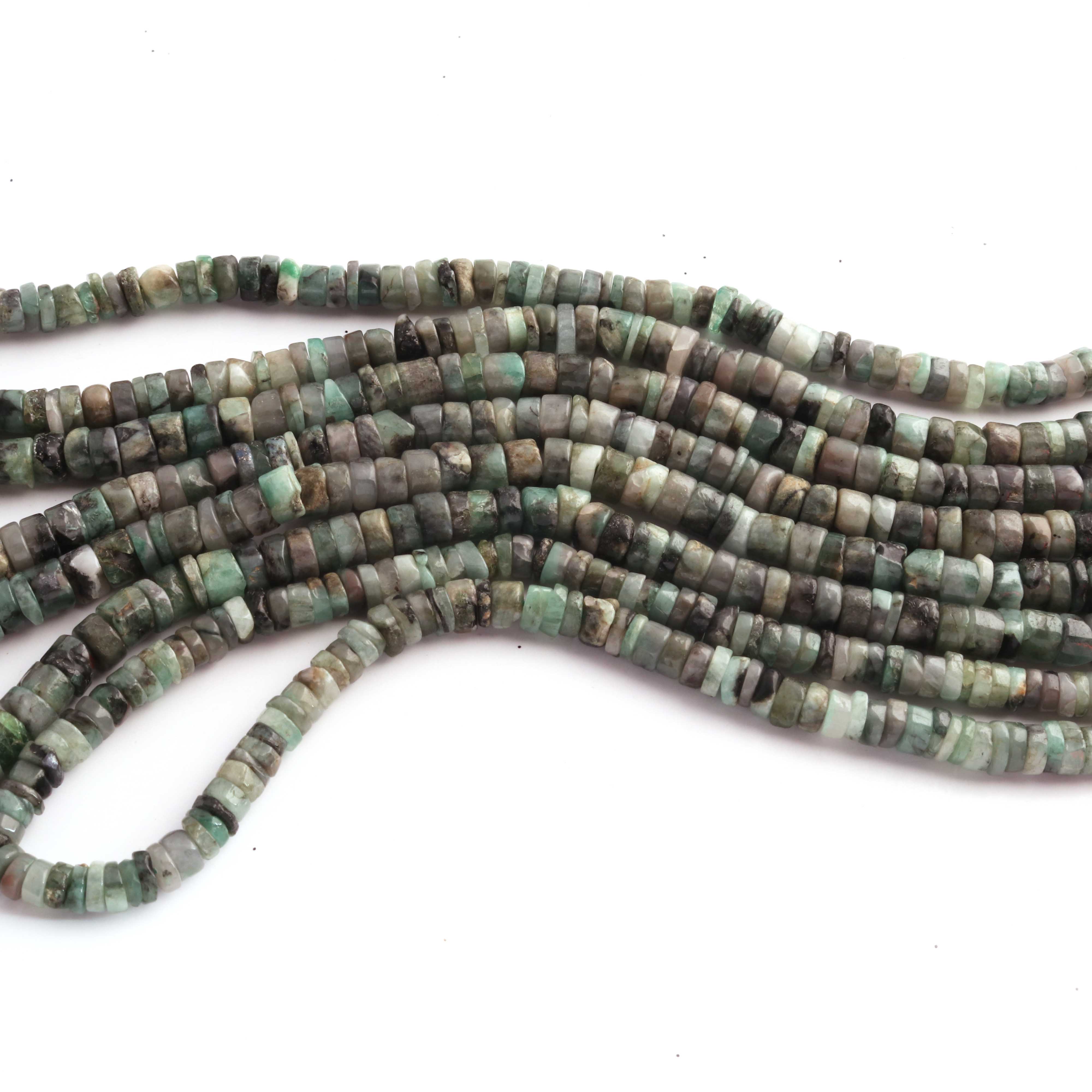 1 Strand AAA+ Shaded Emerald Smooth Tyre, Wheel Shape Beads - Heishi Shape Gemstone Beads 5mm-6mm 16 Inches BR03803